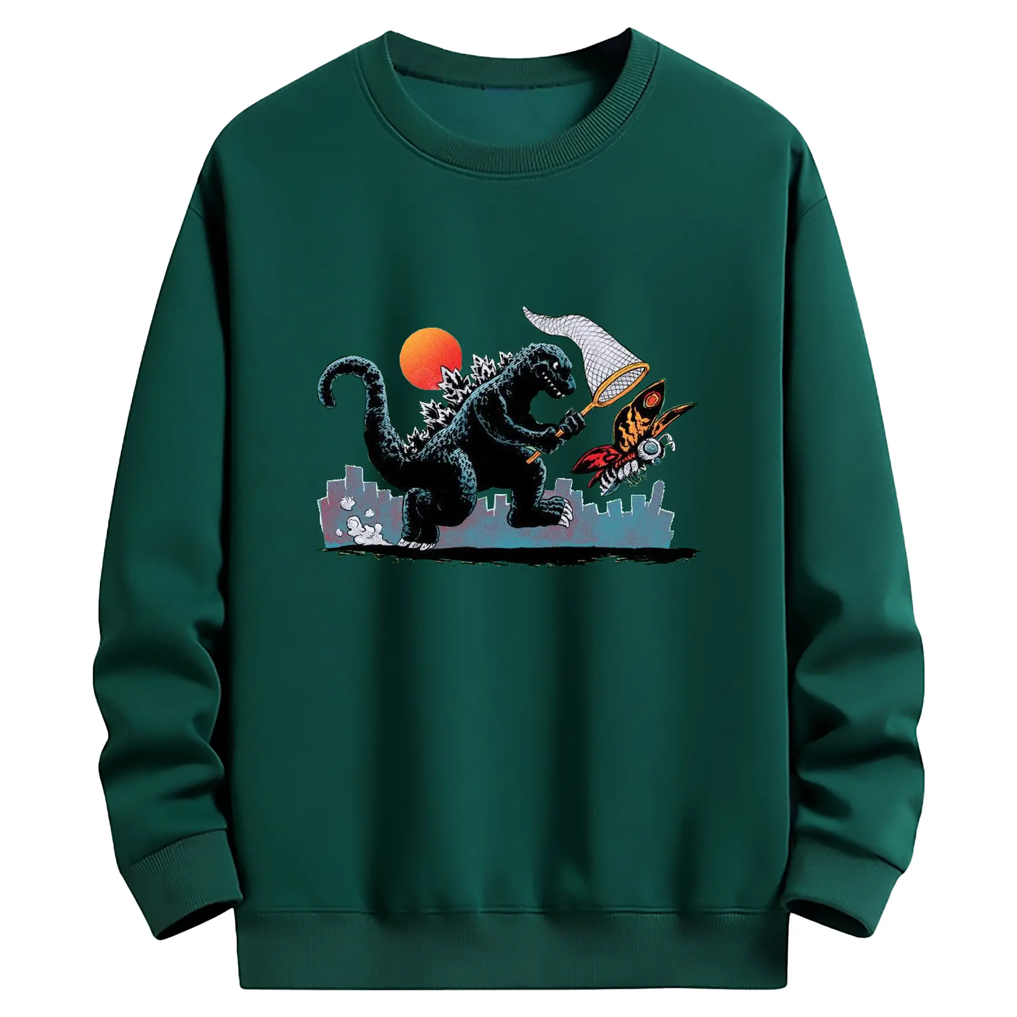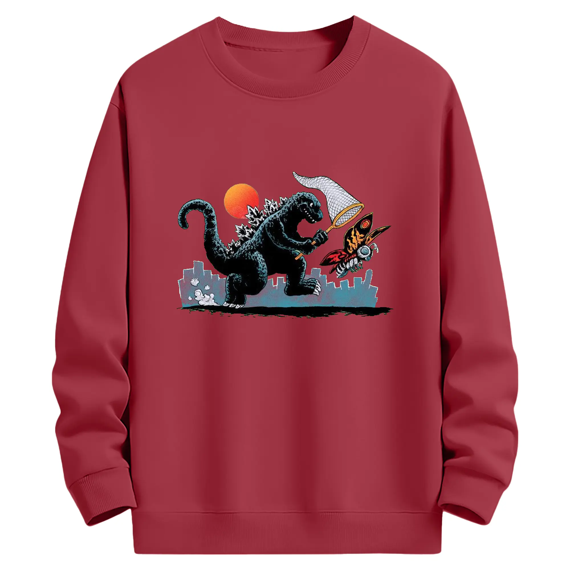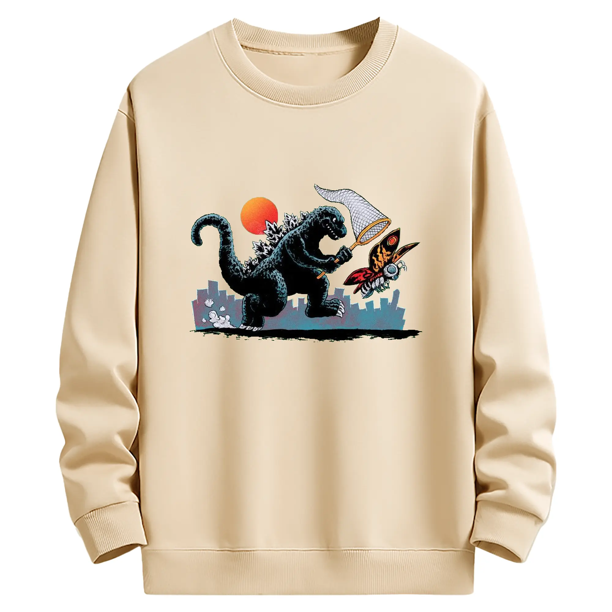 ゴジラとモスラ 怪獣アート - 高品質 クルーネック スウェット ・ コットン59% ポリエステル41% ・ ユニセックス 長袖 トレーナー ・ カジュアル デイリー スポーツ 散歩用
