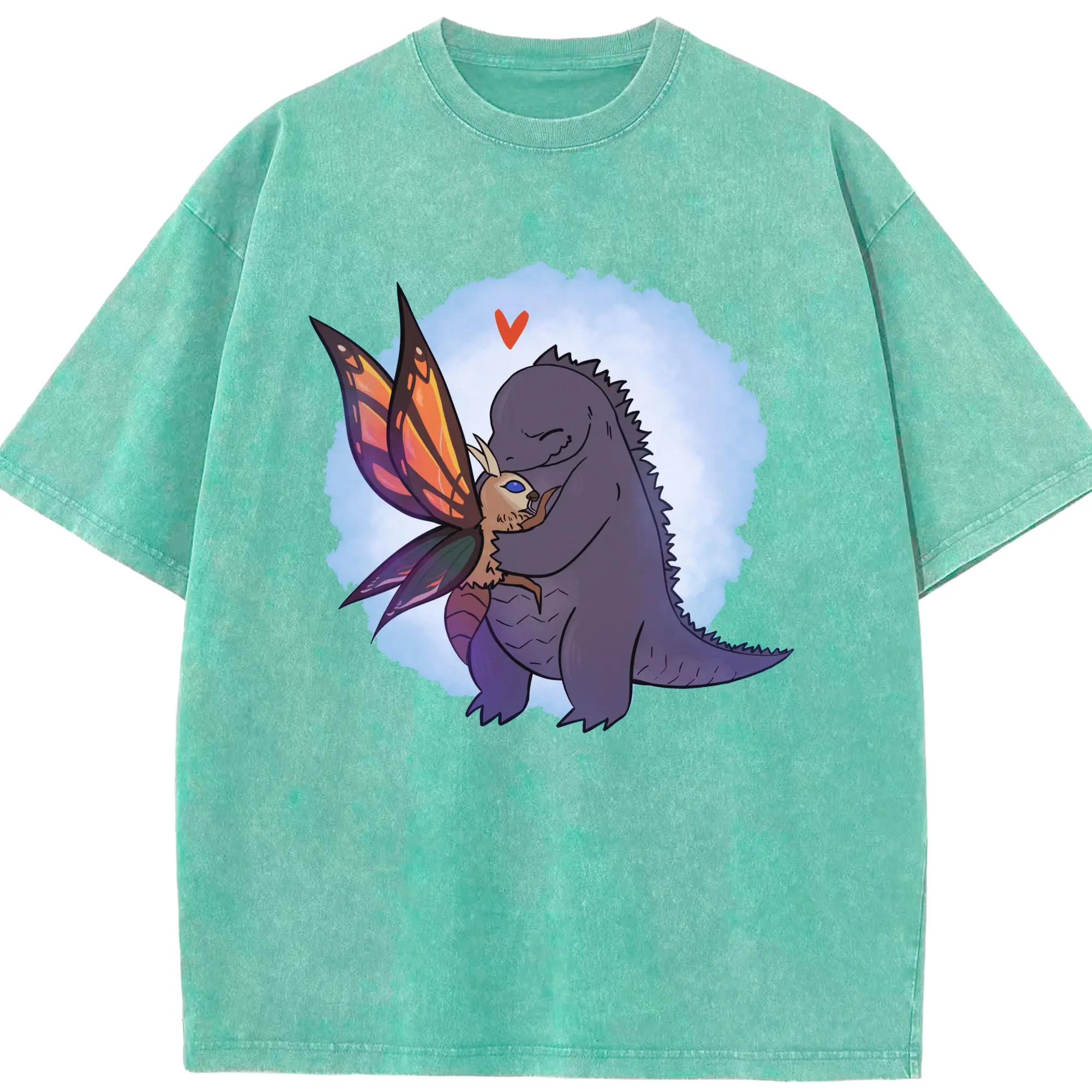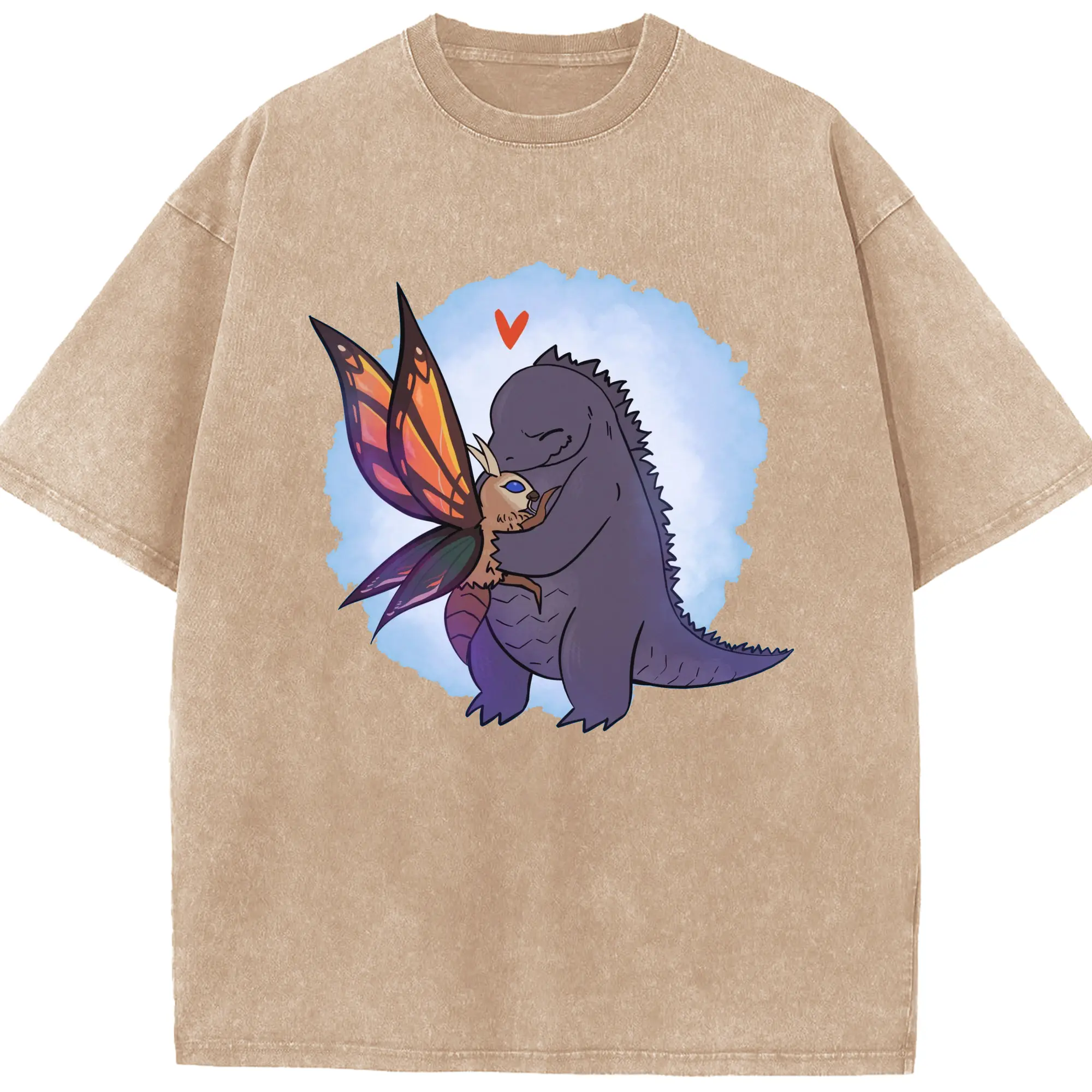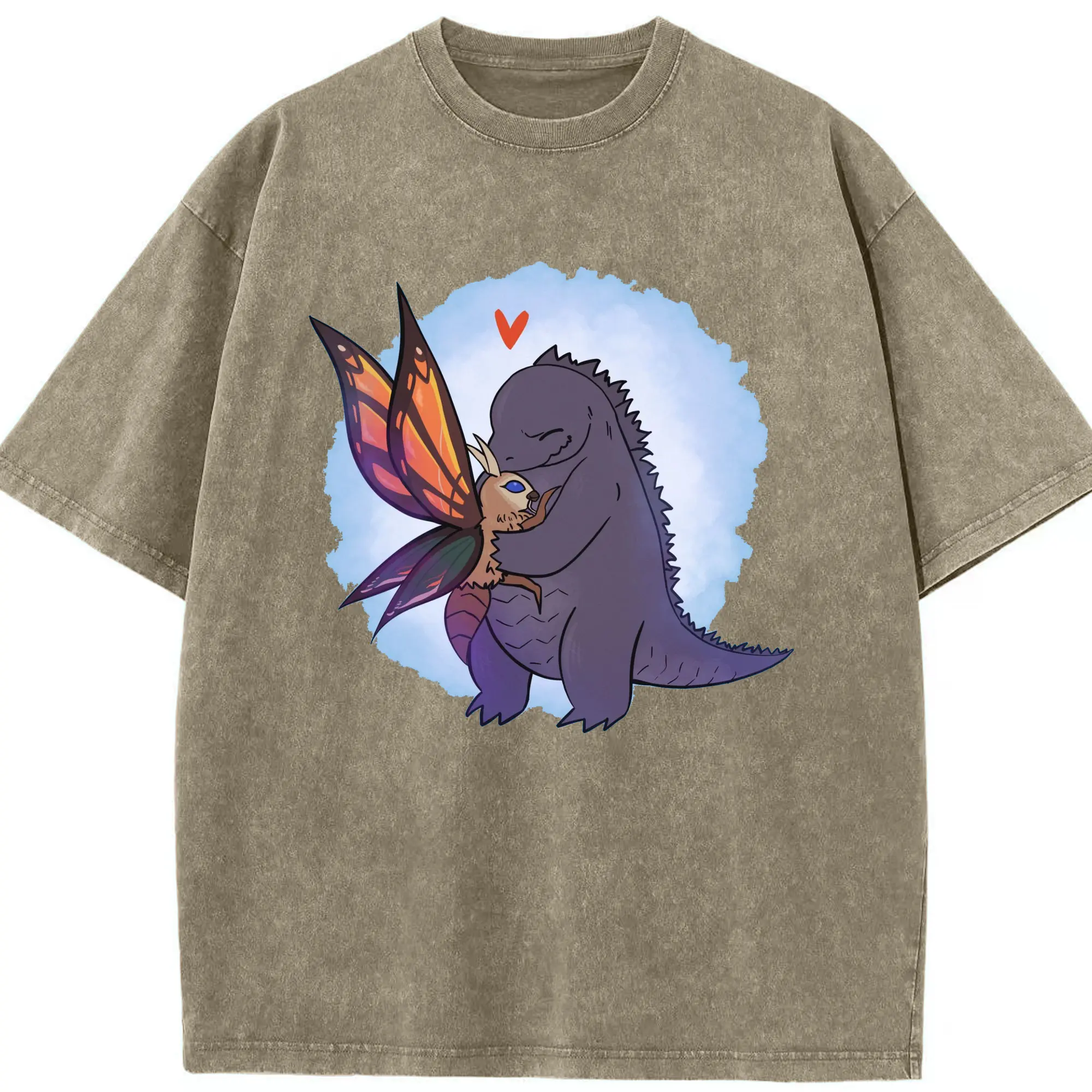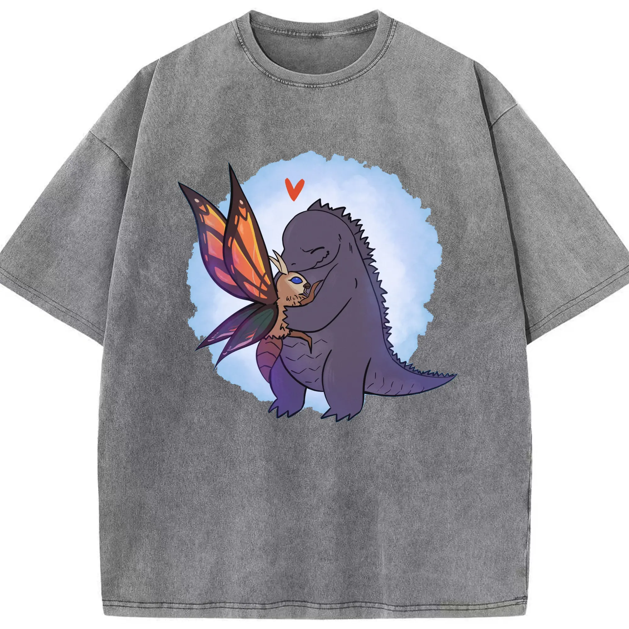 ゴジラとモスラ Godzilla - 綿100% ヴィンテージ風 半袖Tシャツ ・ フロントプリント ・ 柔らか肌触り ・ 通気性 快適 ・ スポーツ カジュアル 外出用