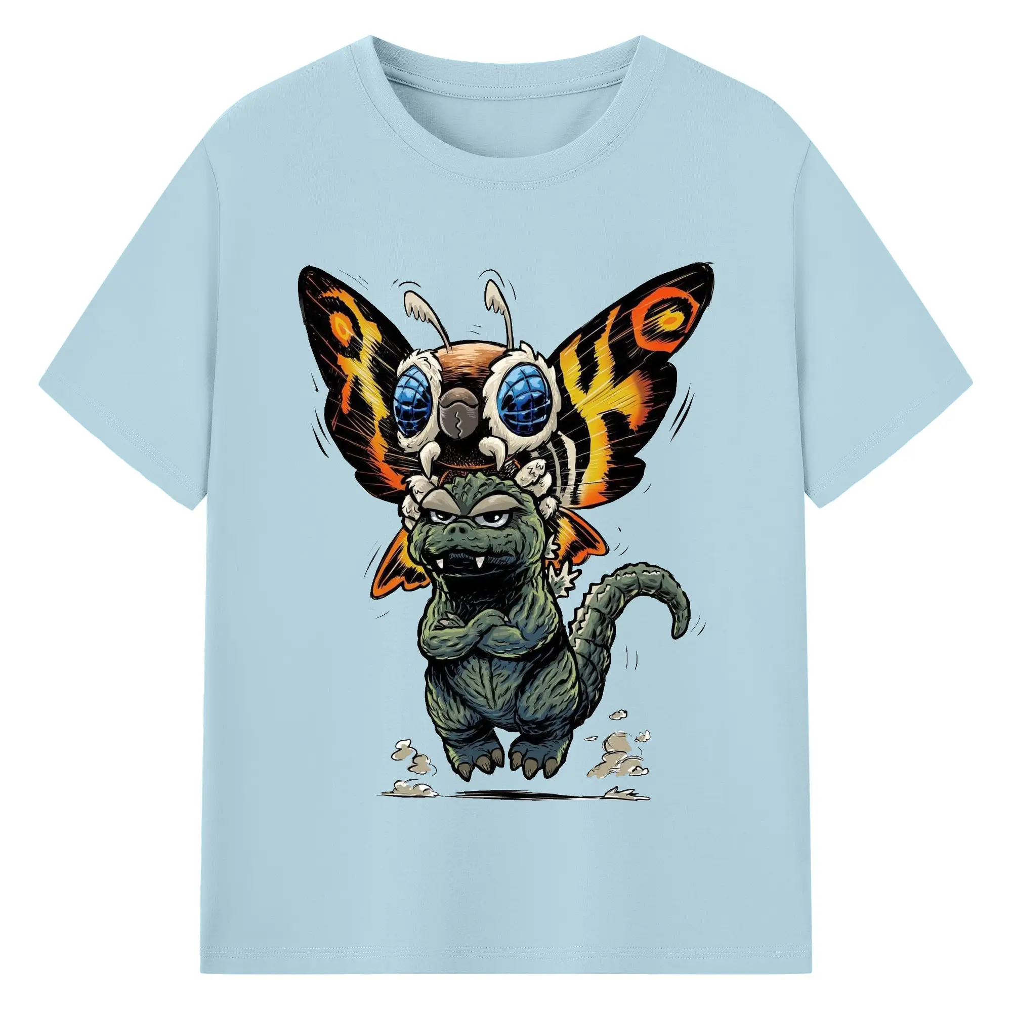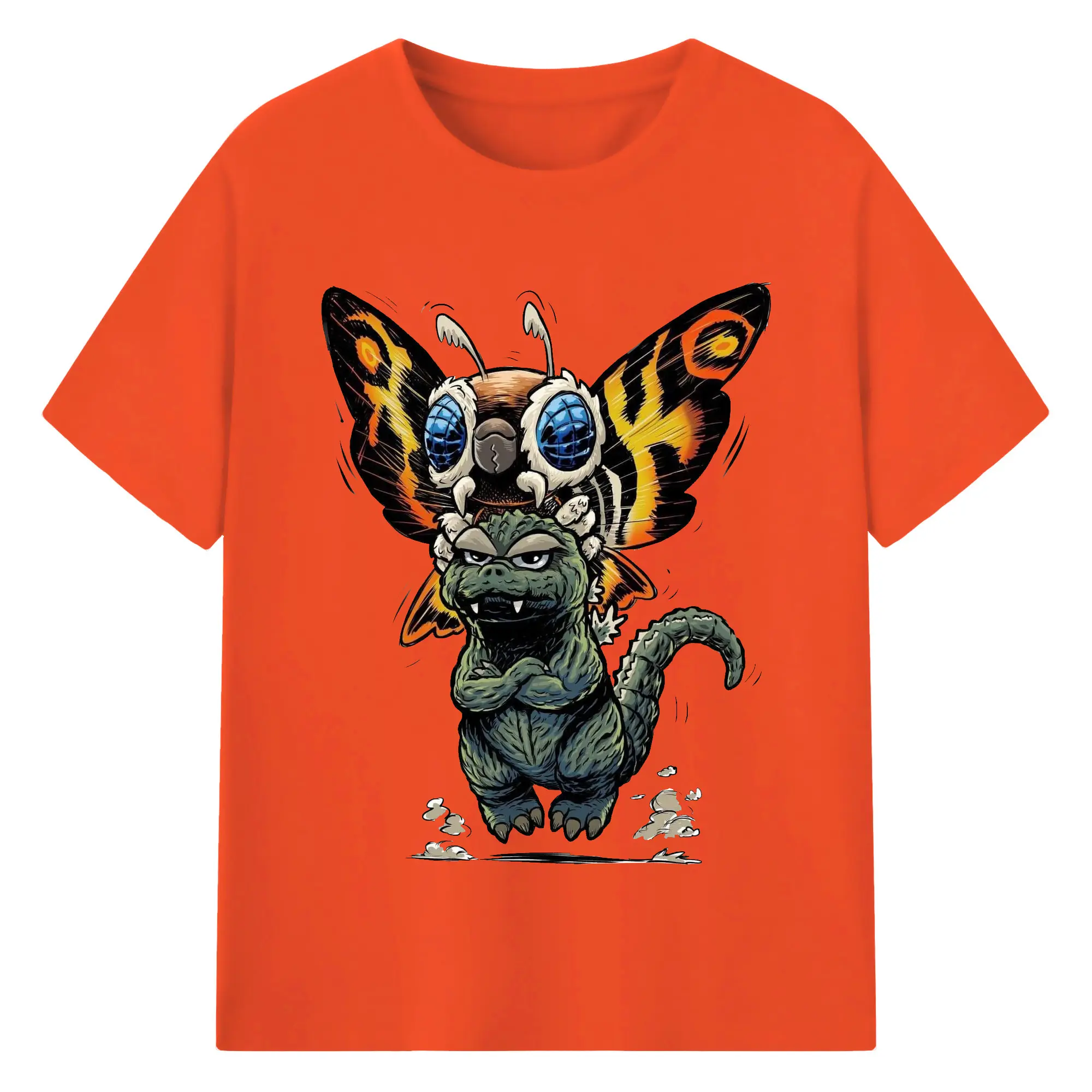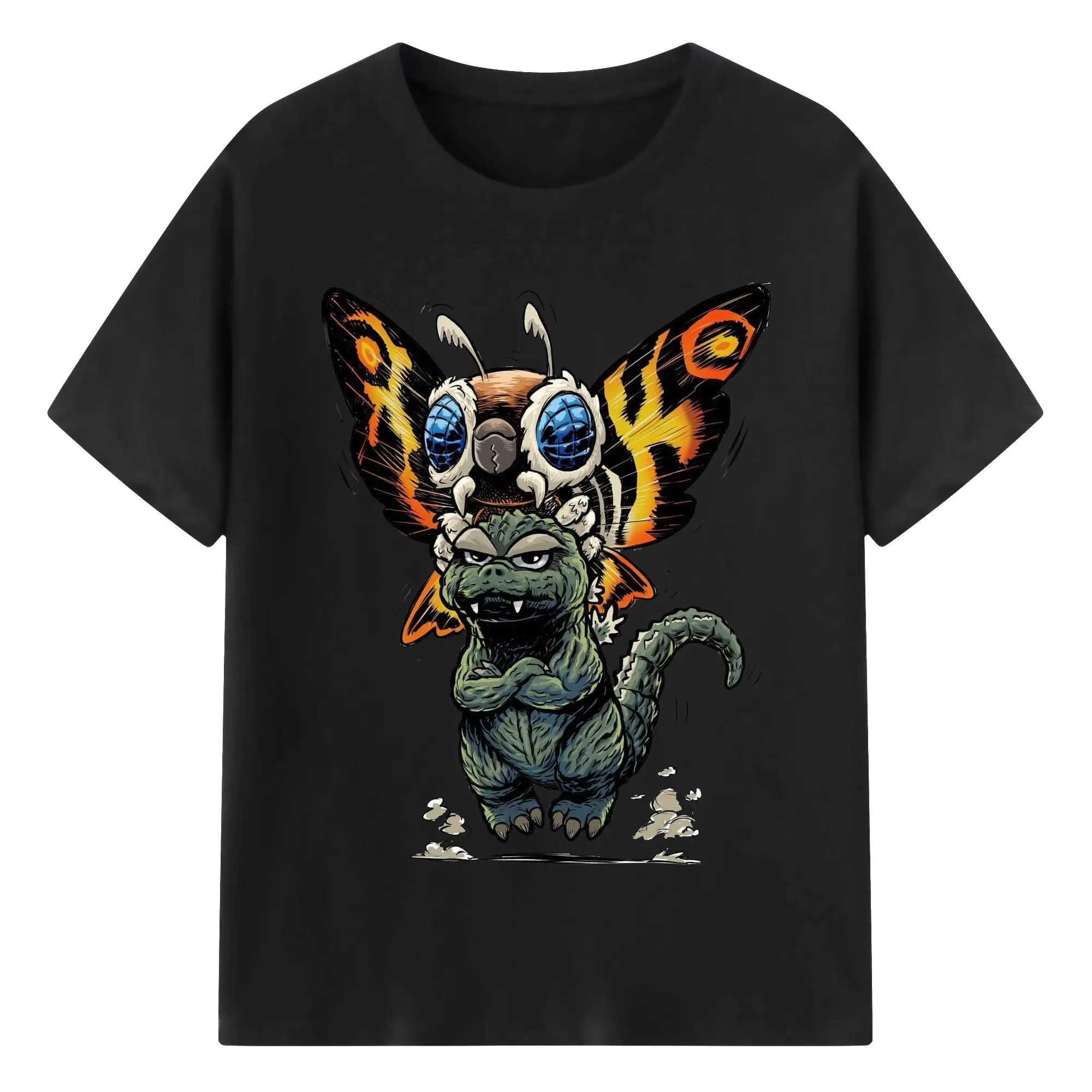 ゴジラとモスラ Mothra ゴジラ対モスラ60周年 - 綿100% 半袖Tシャツ ・ フロントプリント ・ 快適 通気性 ・ 日常使い 散歩 スポーツ用