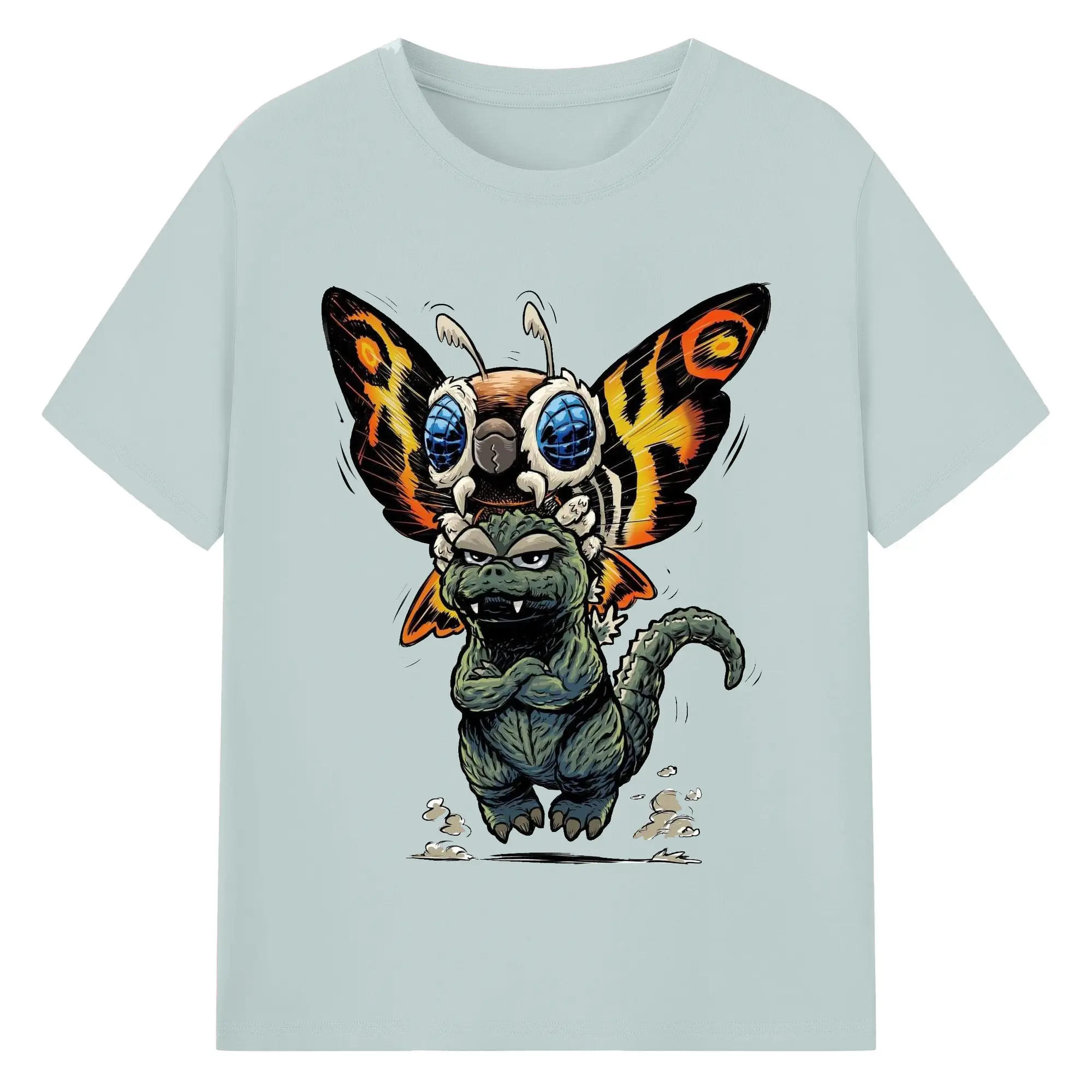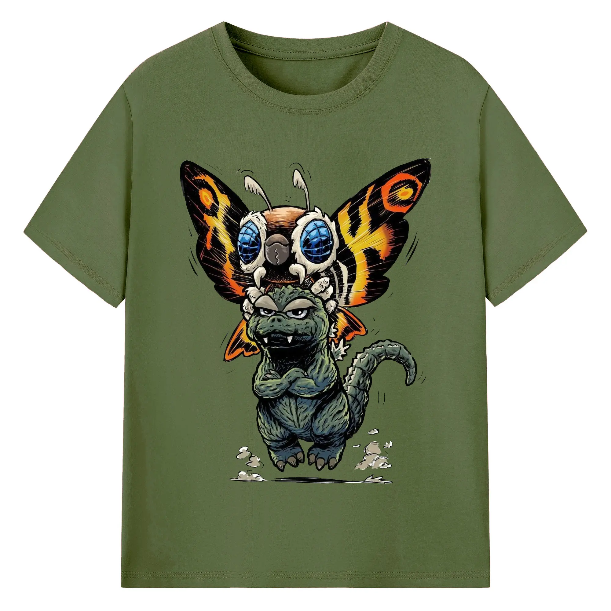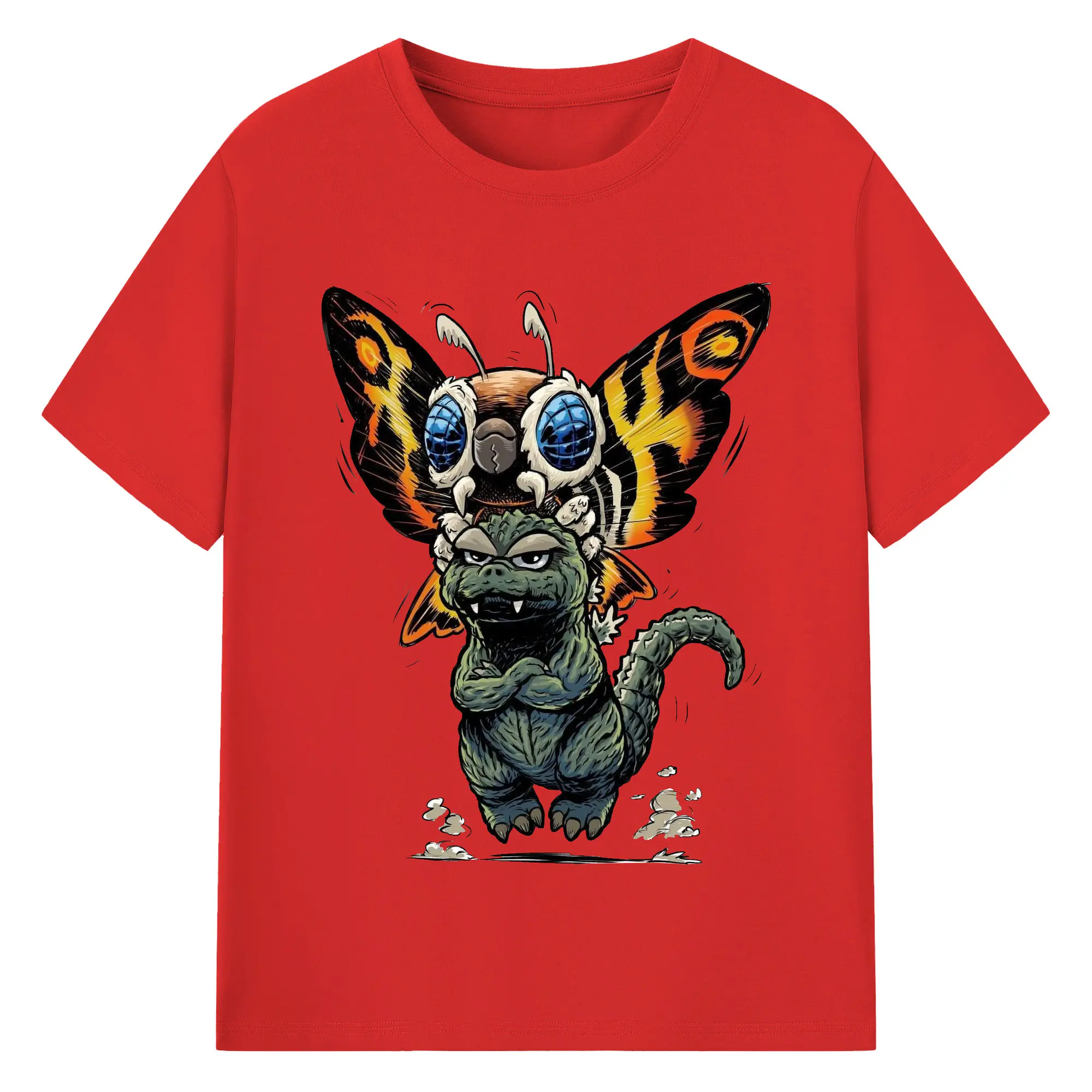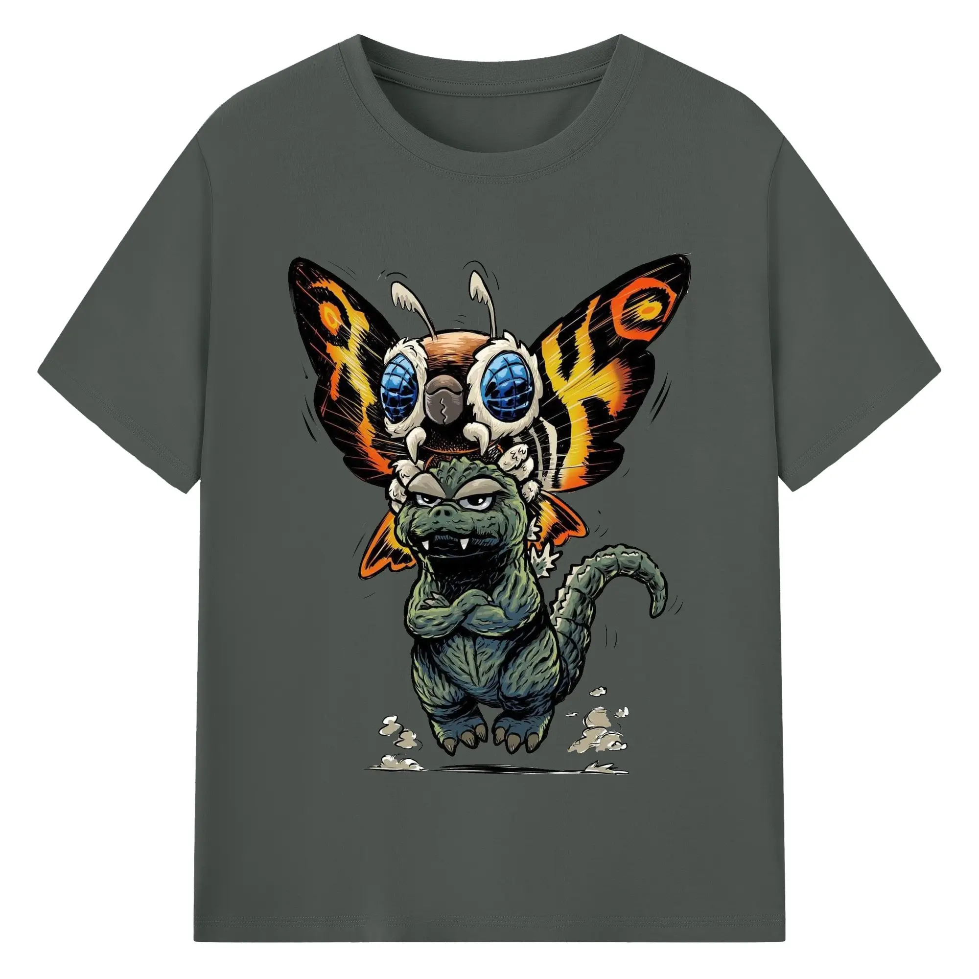 ゴジラとモスラ Mothra ゴジラ対モスラ60周年 - 綿100% 半袖Tシャツ ・ フロントプリント ・ 快適 通気性 ・ 日常使い 散歩 スポーツ用