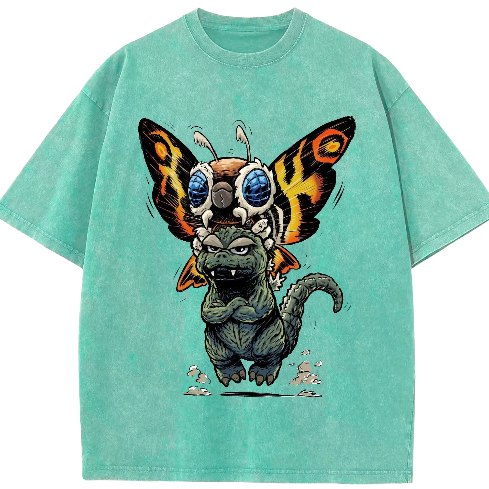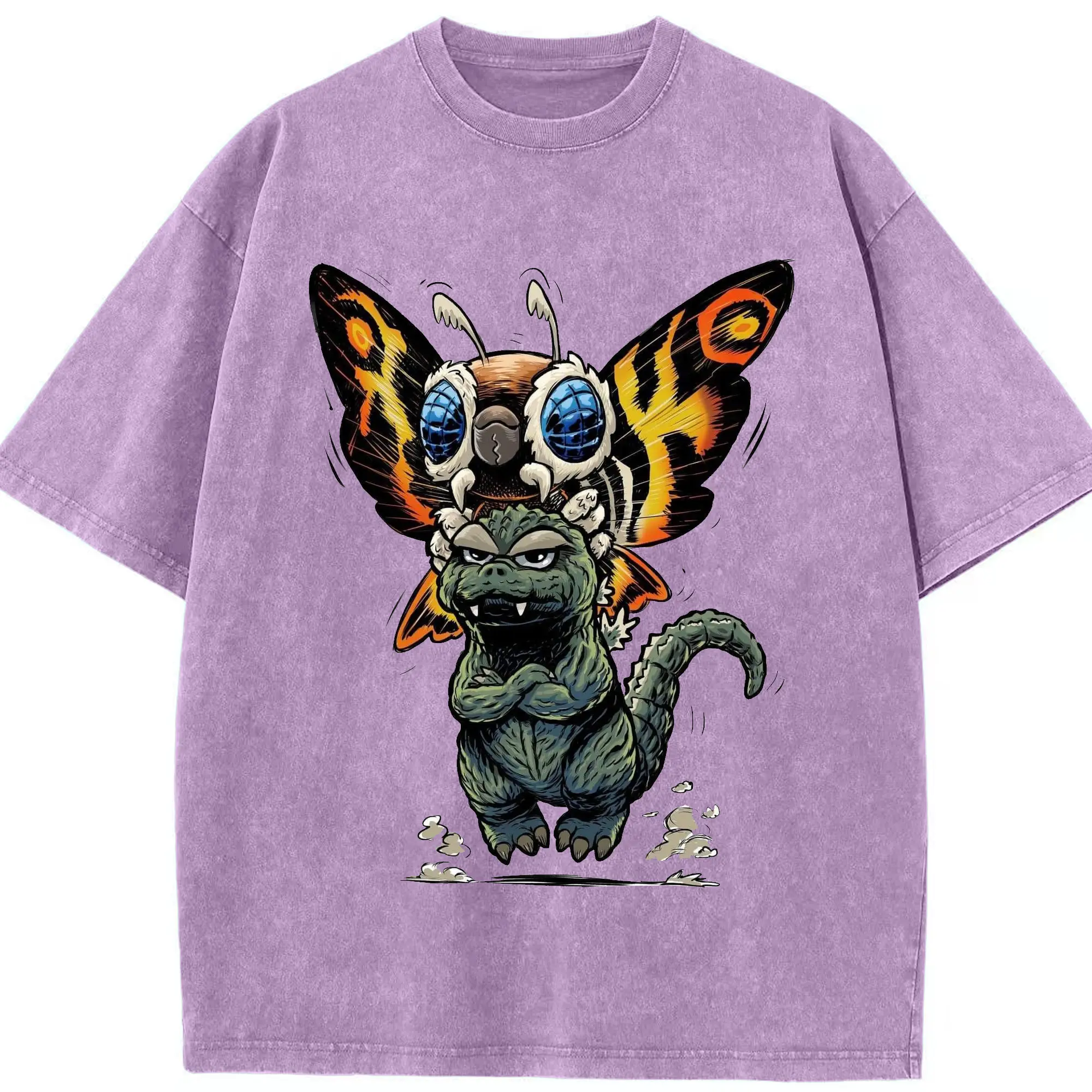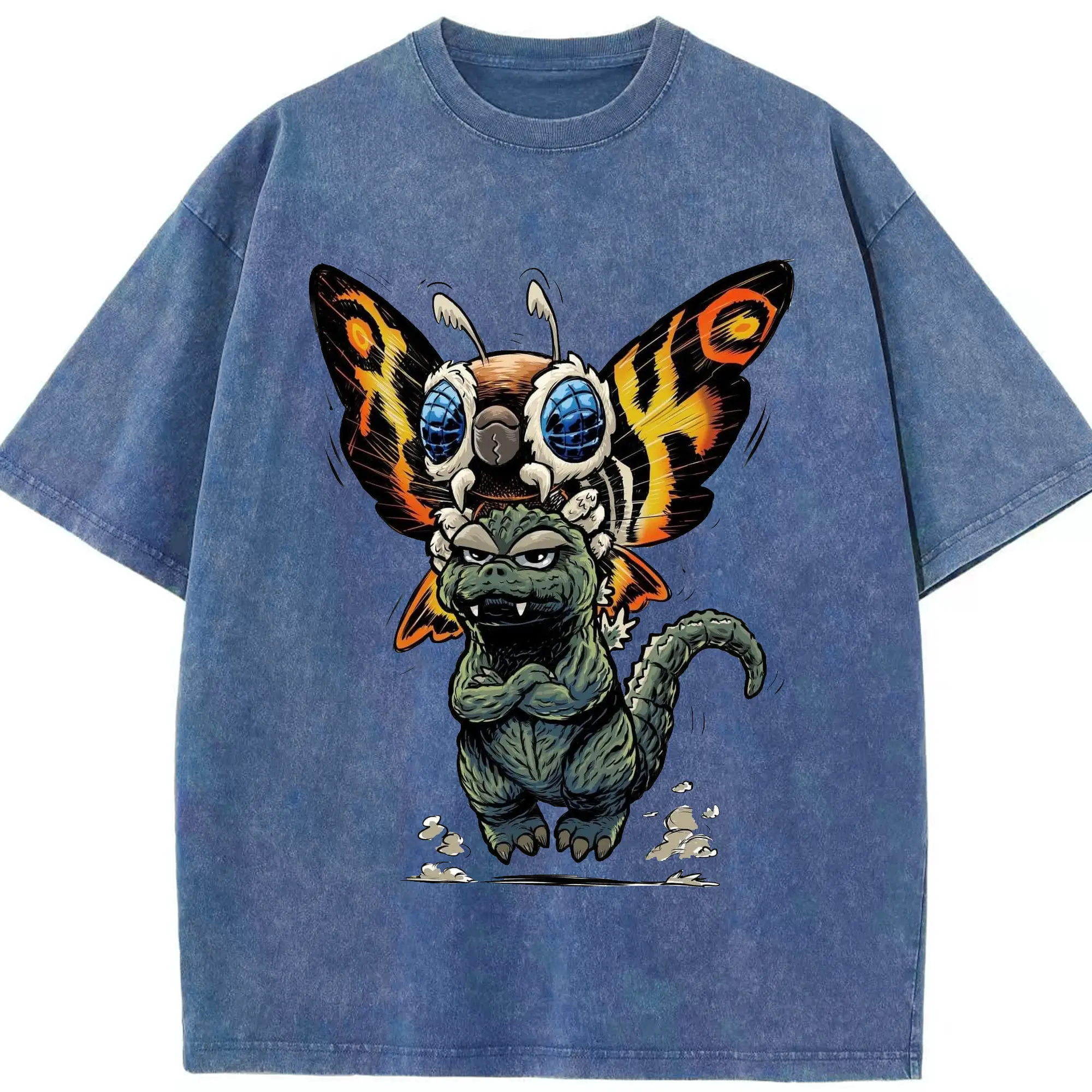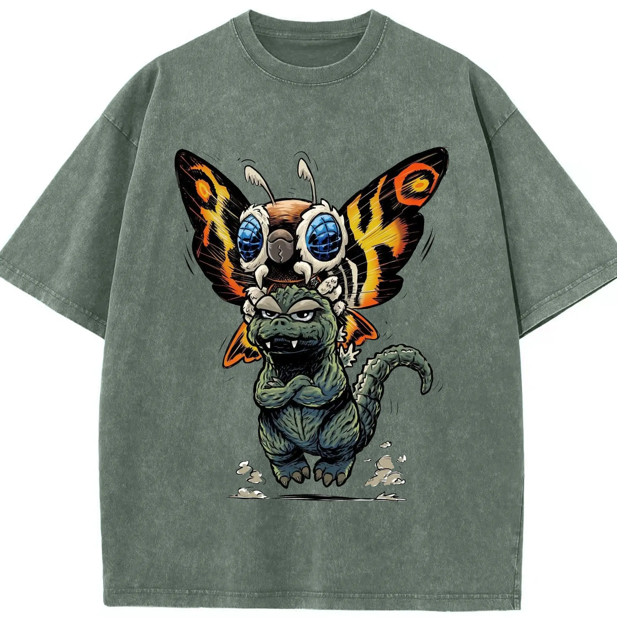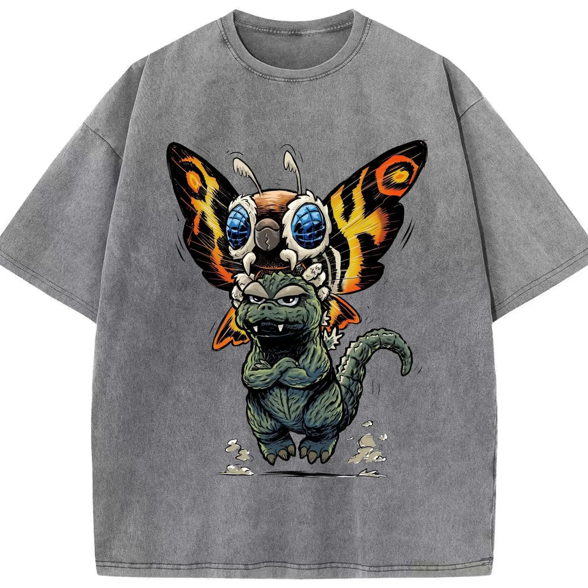 ゴジラとモスラ Mothra ゴジラ対モスラ60周年 - 綿100% ヴィンテージ風 半袖Tシャツ ・ フロントプリント ・ 柔らか肌触り ・ 通気性 快適 ・ スポーツ カジュアル 外出用