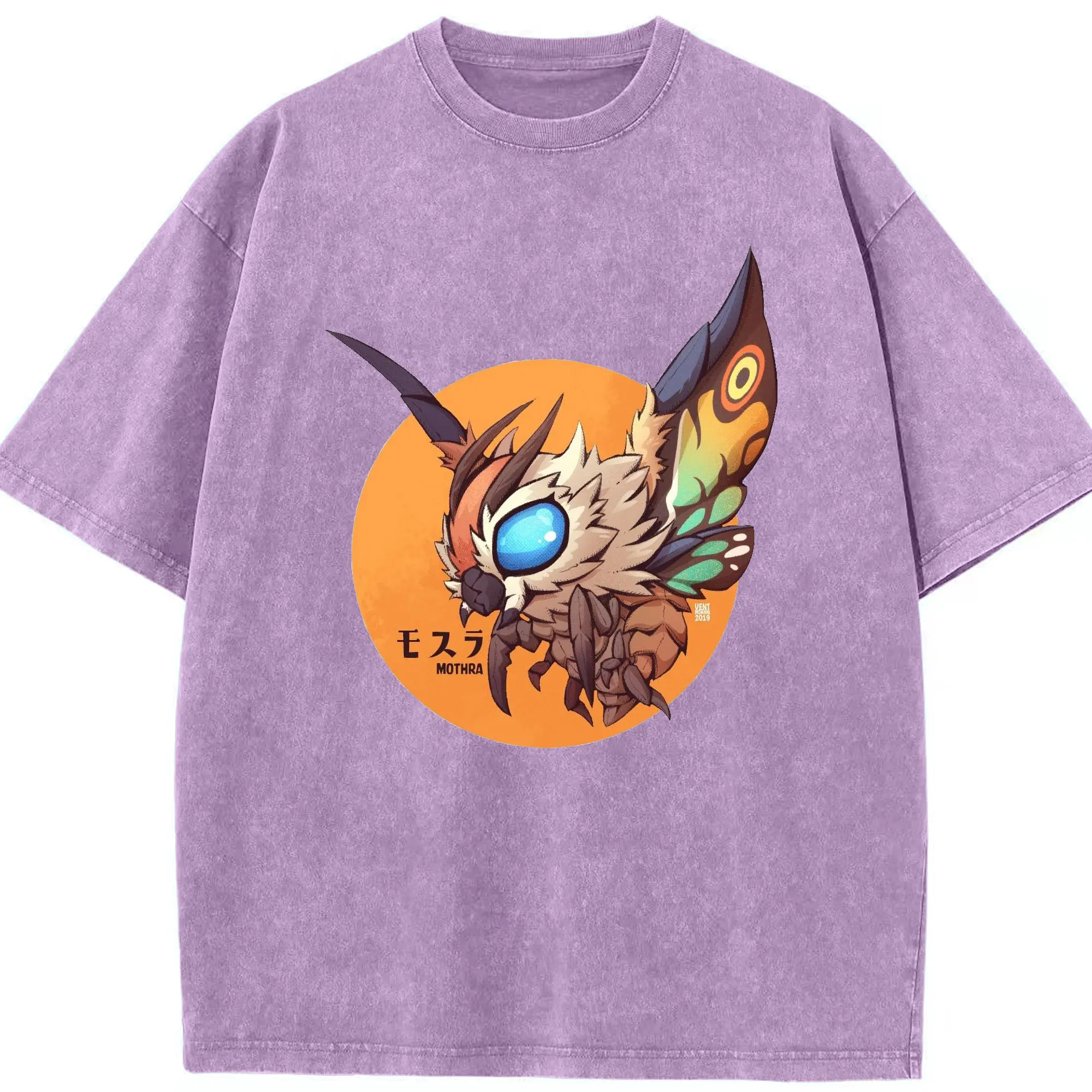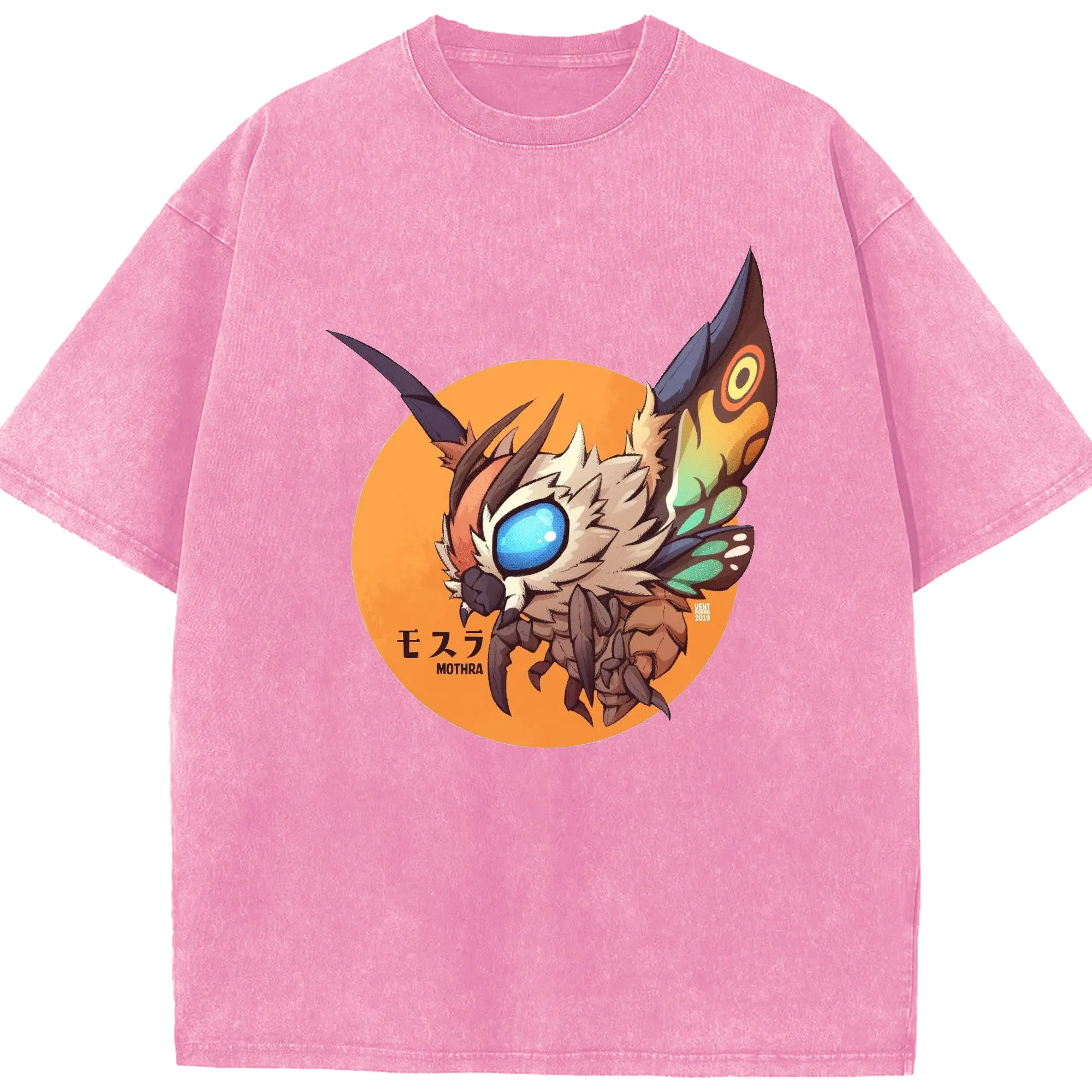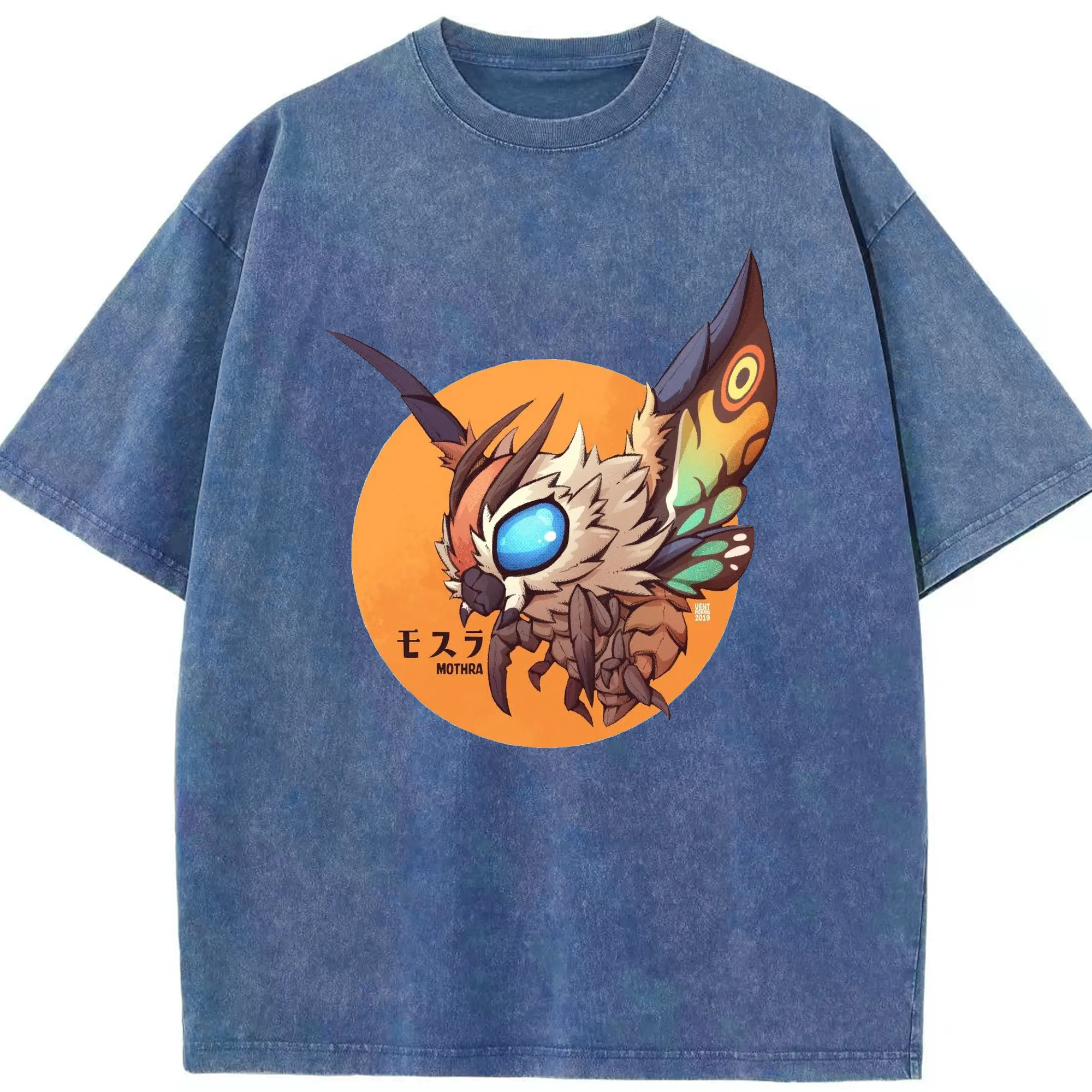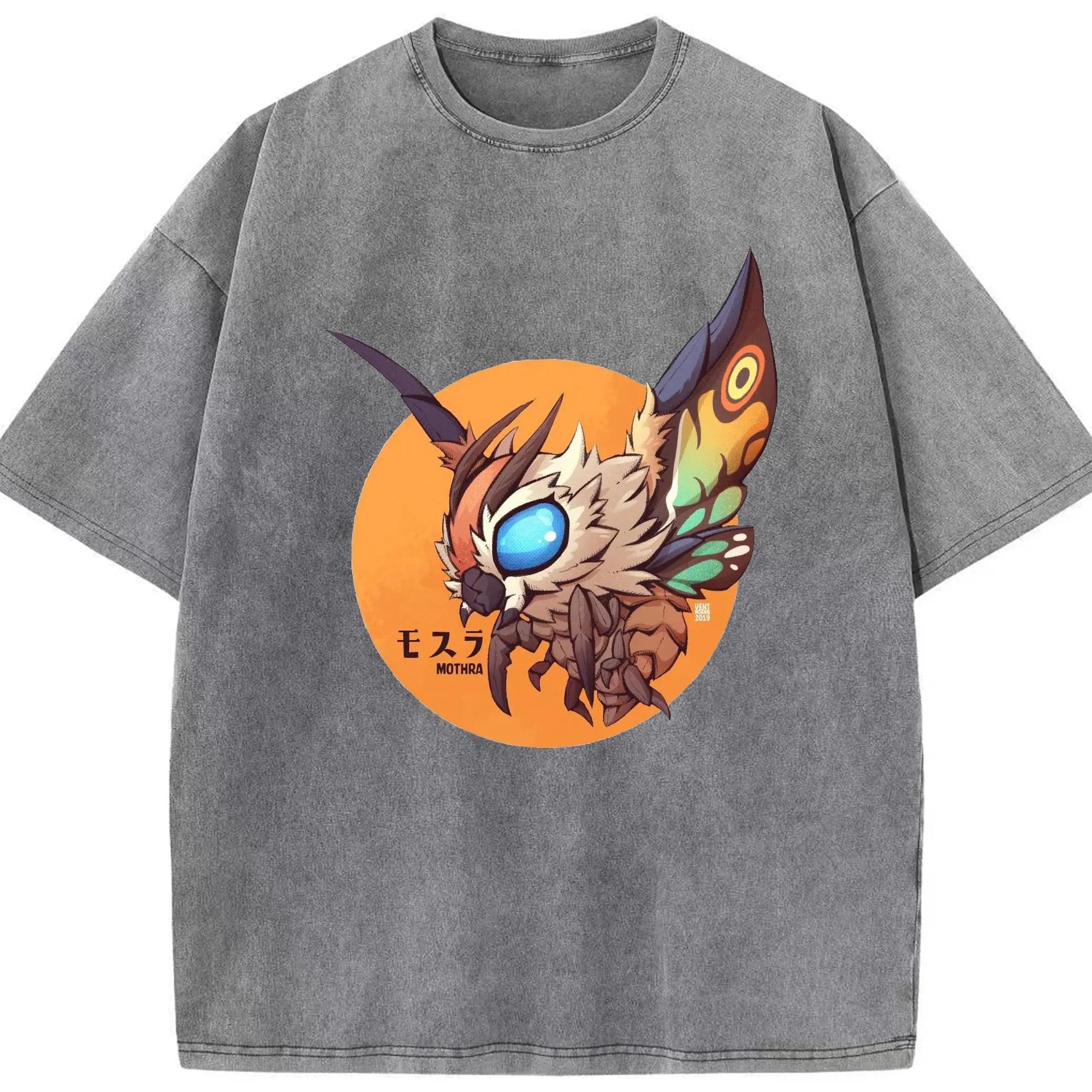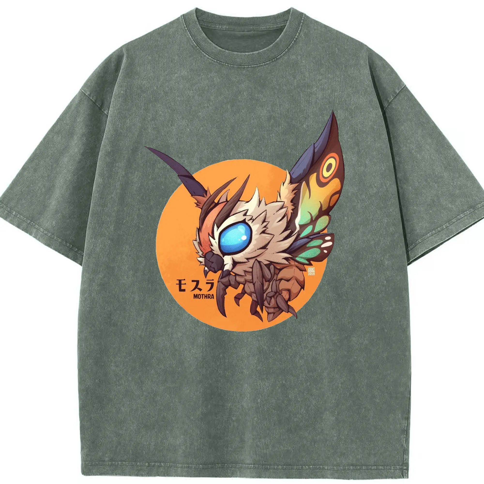 ゴジラとモスラ Mothra - 綿100% ヴィンテージ風 半袖Tシャツ ・ フロントプリント ・ 柔らか肌触り ・ 通気性 快適 ・ スポーツ カジュアル 外出用