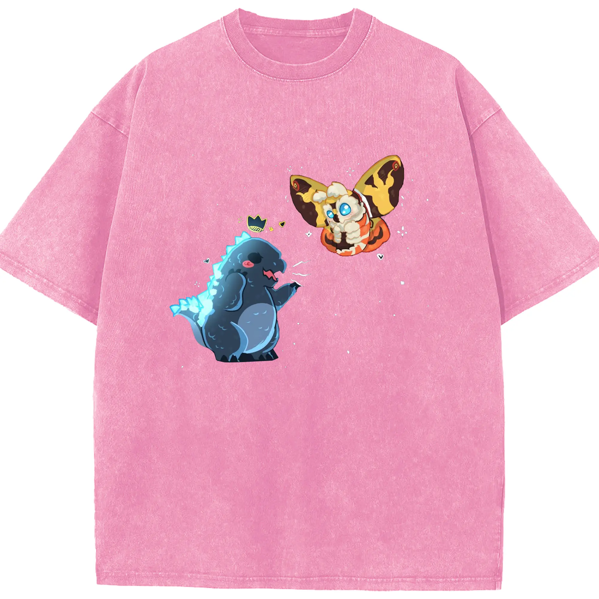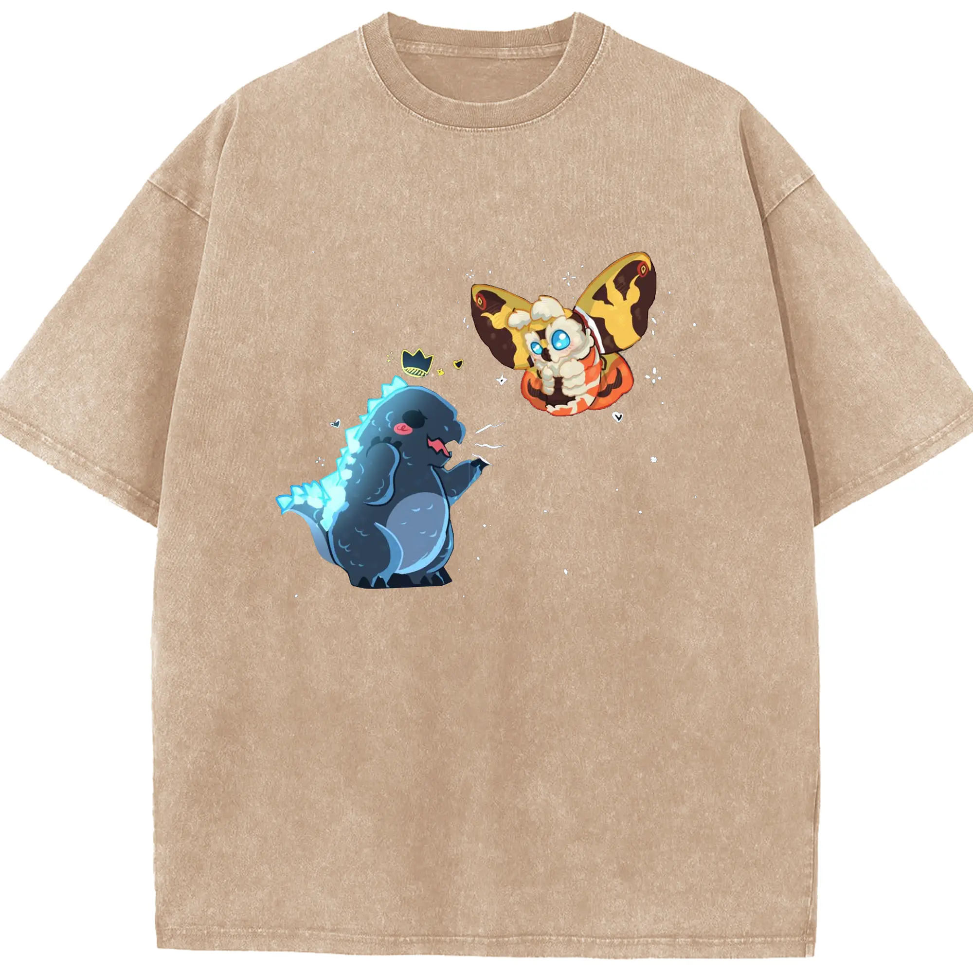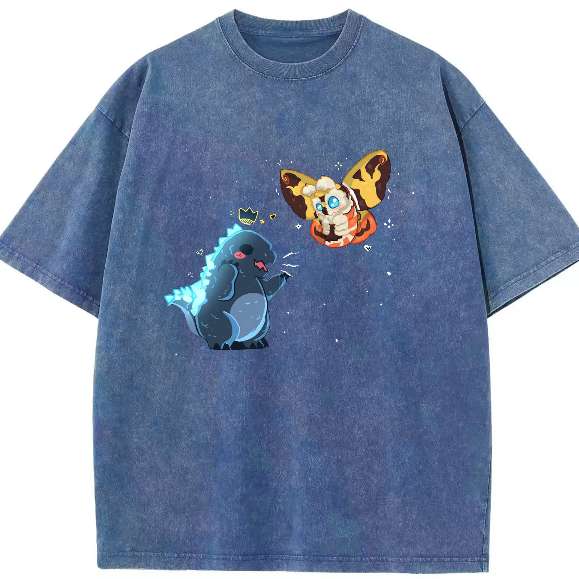 ゴジラとモスラ Mothra - 綿100% ヴィンテージ風 半袖Tシャツ ・ フロントプリント ・ 柔らか肌触り ・ 通気性 快適 ・ スポーツ カジュアル 外出用
