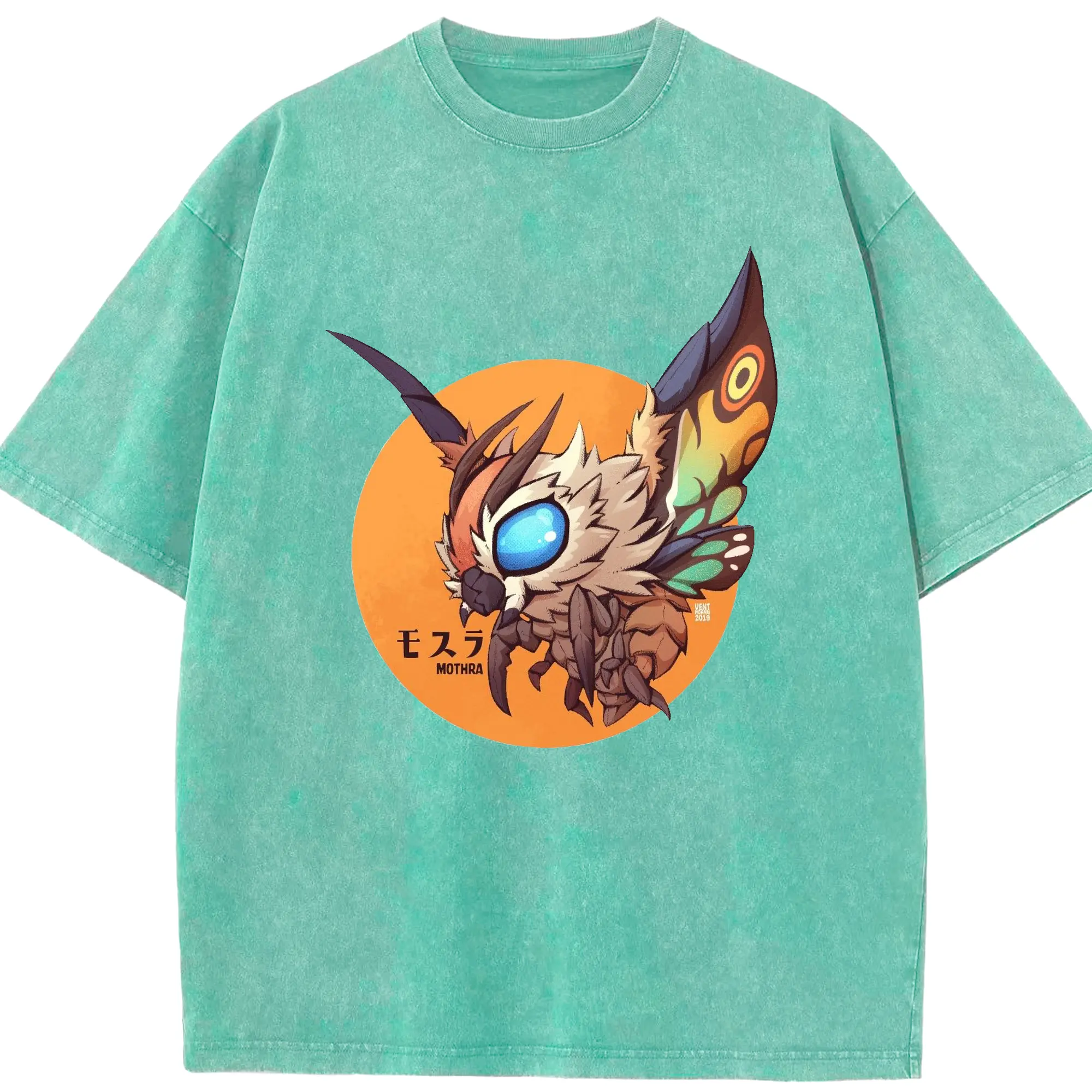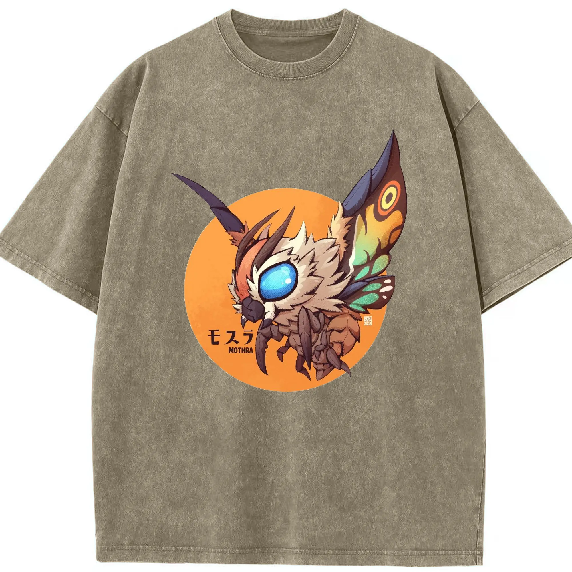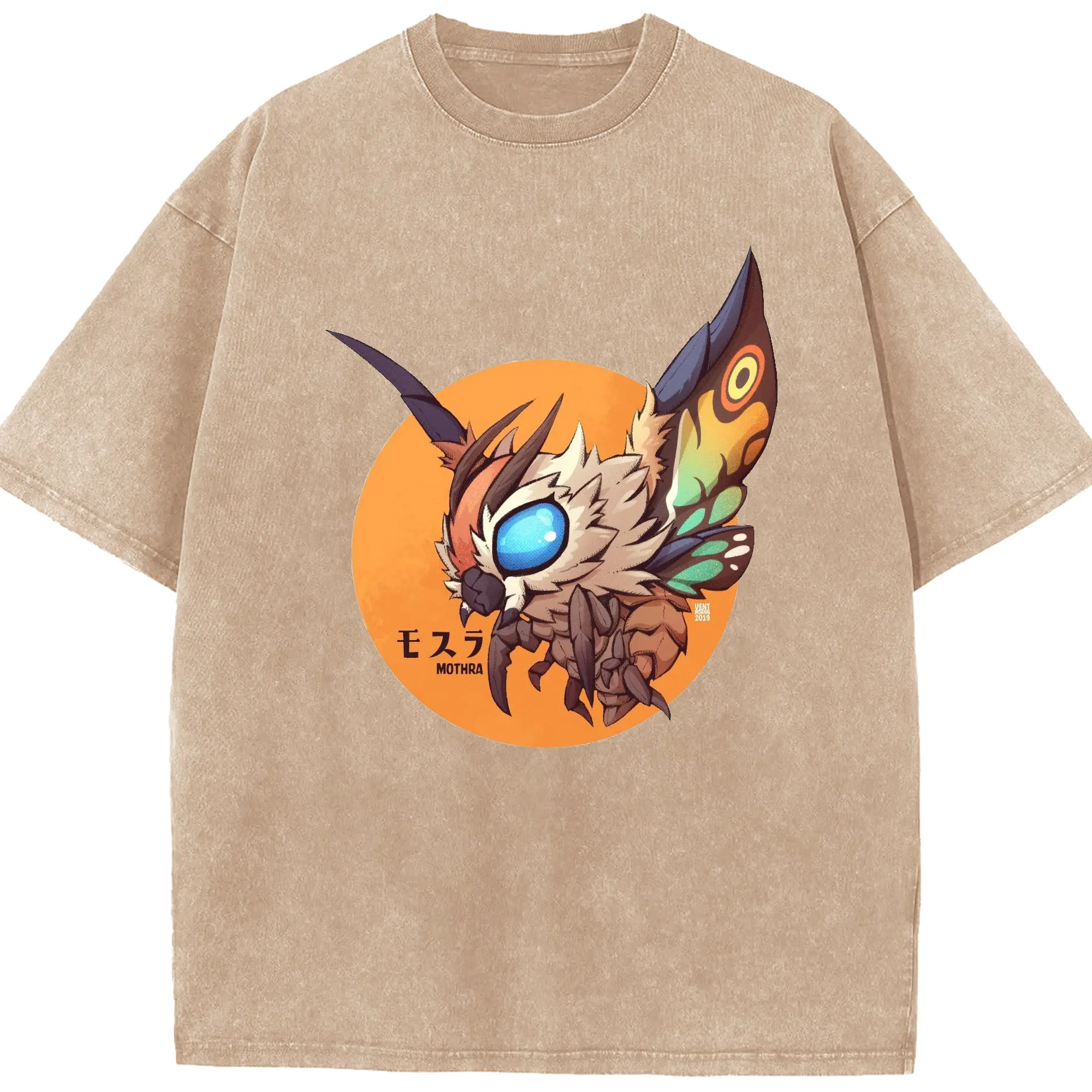 ゴジラとモスラ Mothra - 綿100% ヴィンテージ風 半袖Tシャツ ・ フロントプリント ・ 柔らか肌触り ・ 通気性 快適 ・ スポーツ カジュアル 外出用