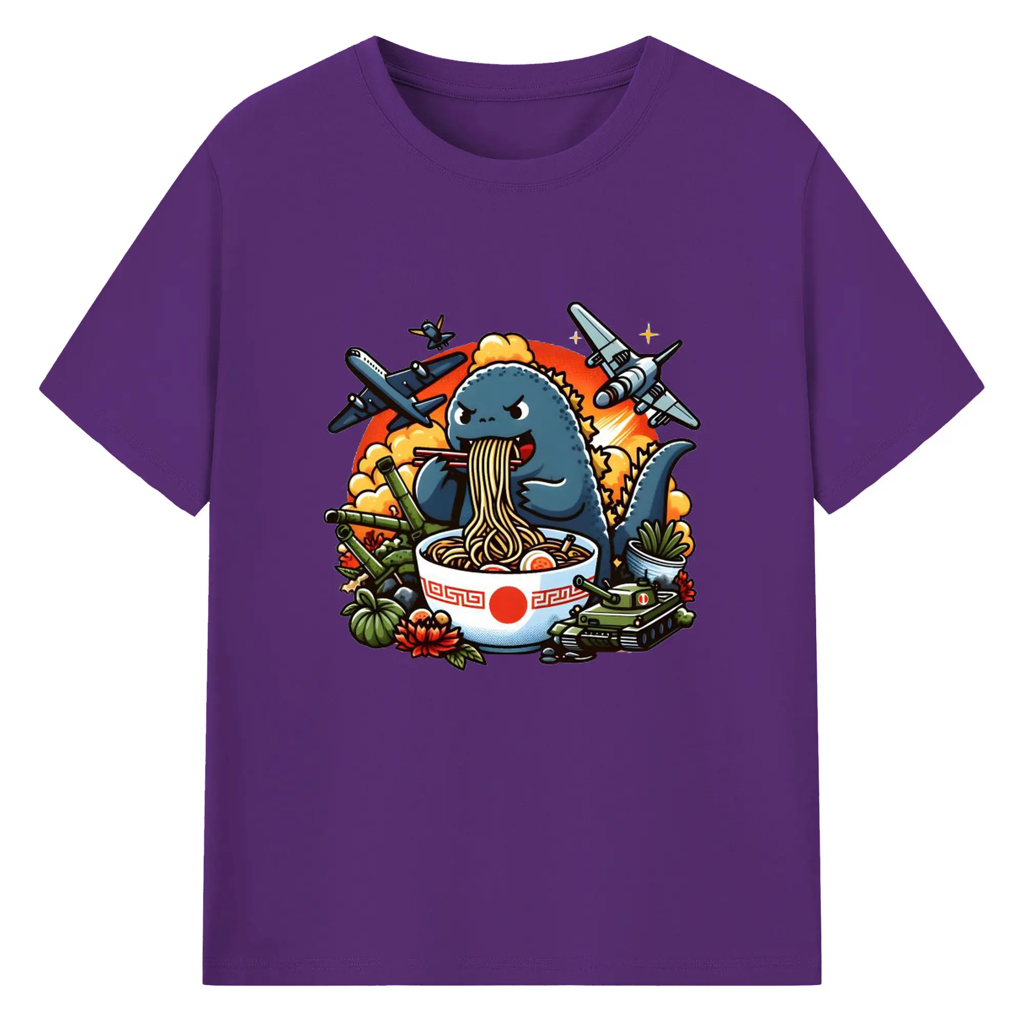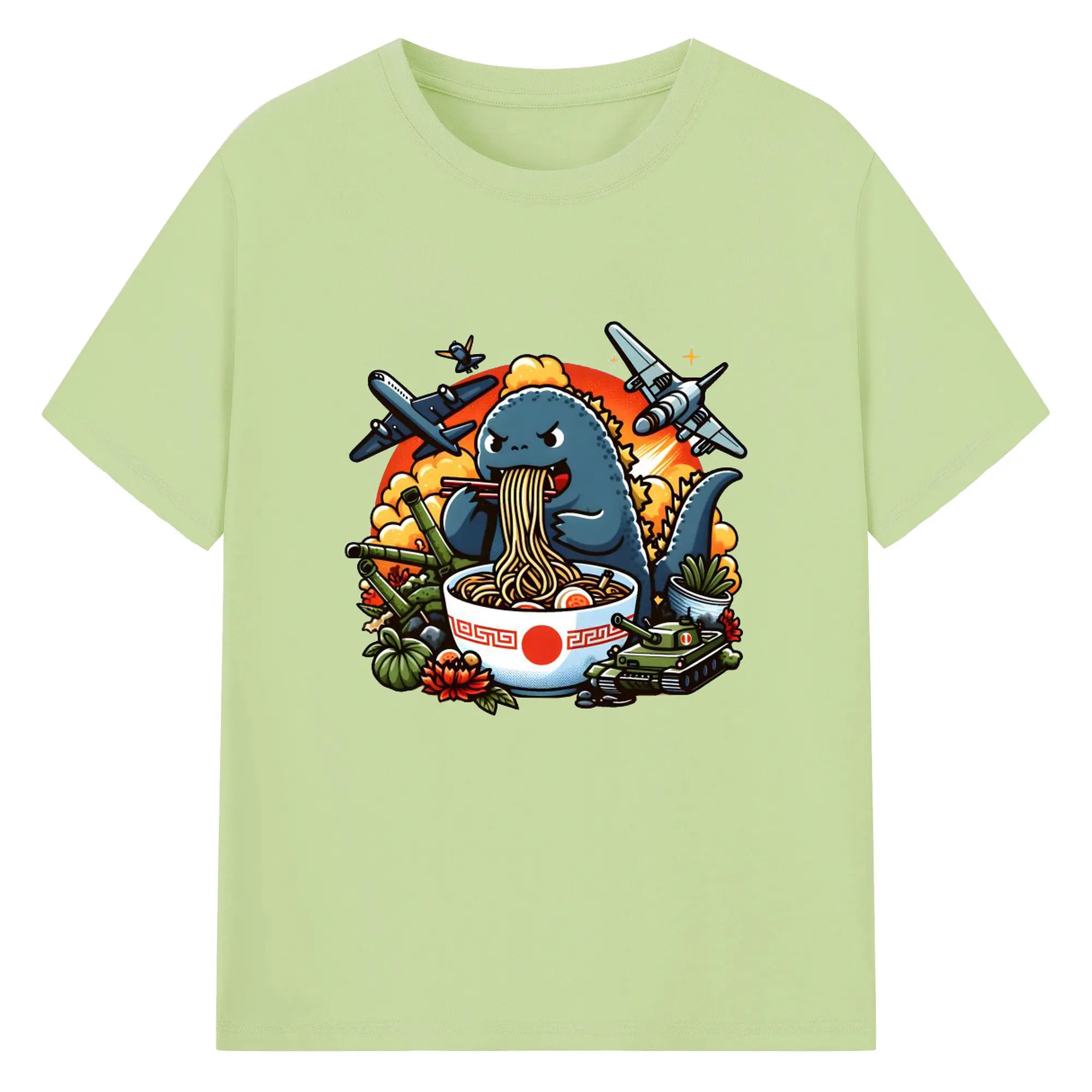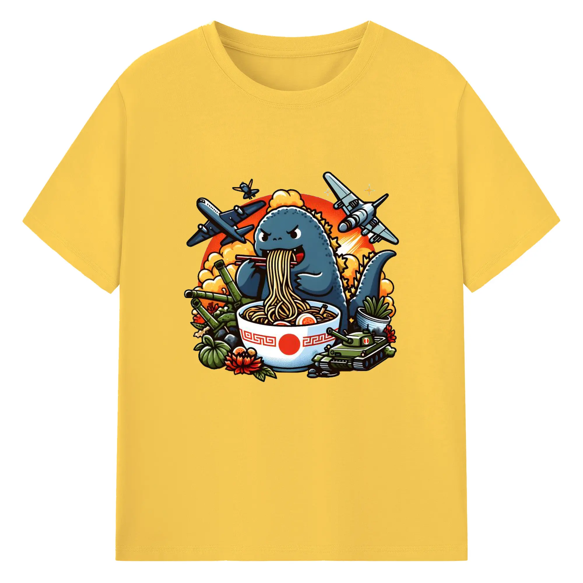 ゴジラの食事タイム - 綿100% 半袖Tシャツ ・ フロントプリント ・ 快適 通気性 ・ 日常使い 散歩 スポーツ用