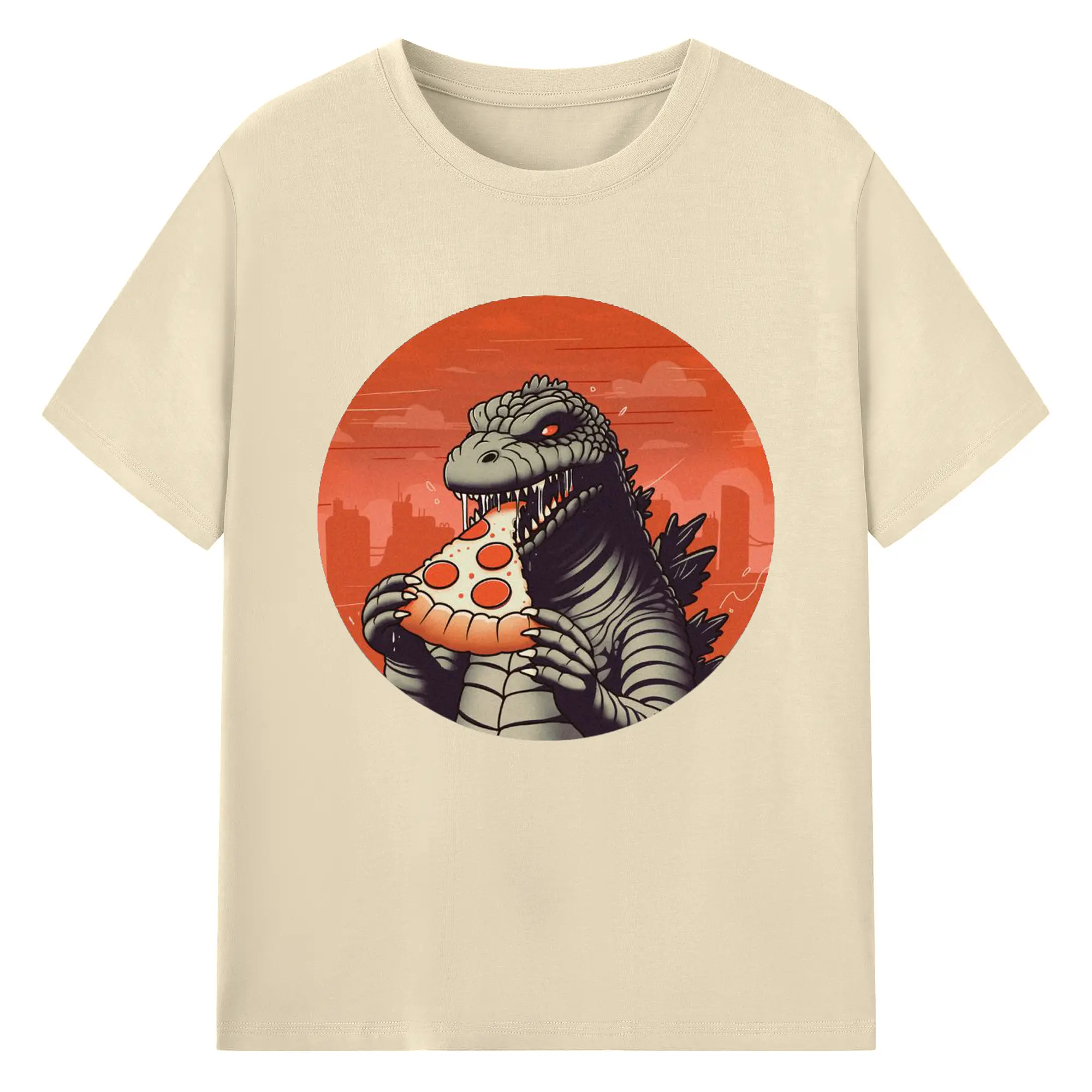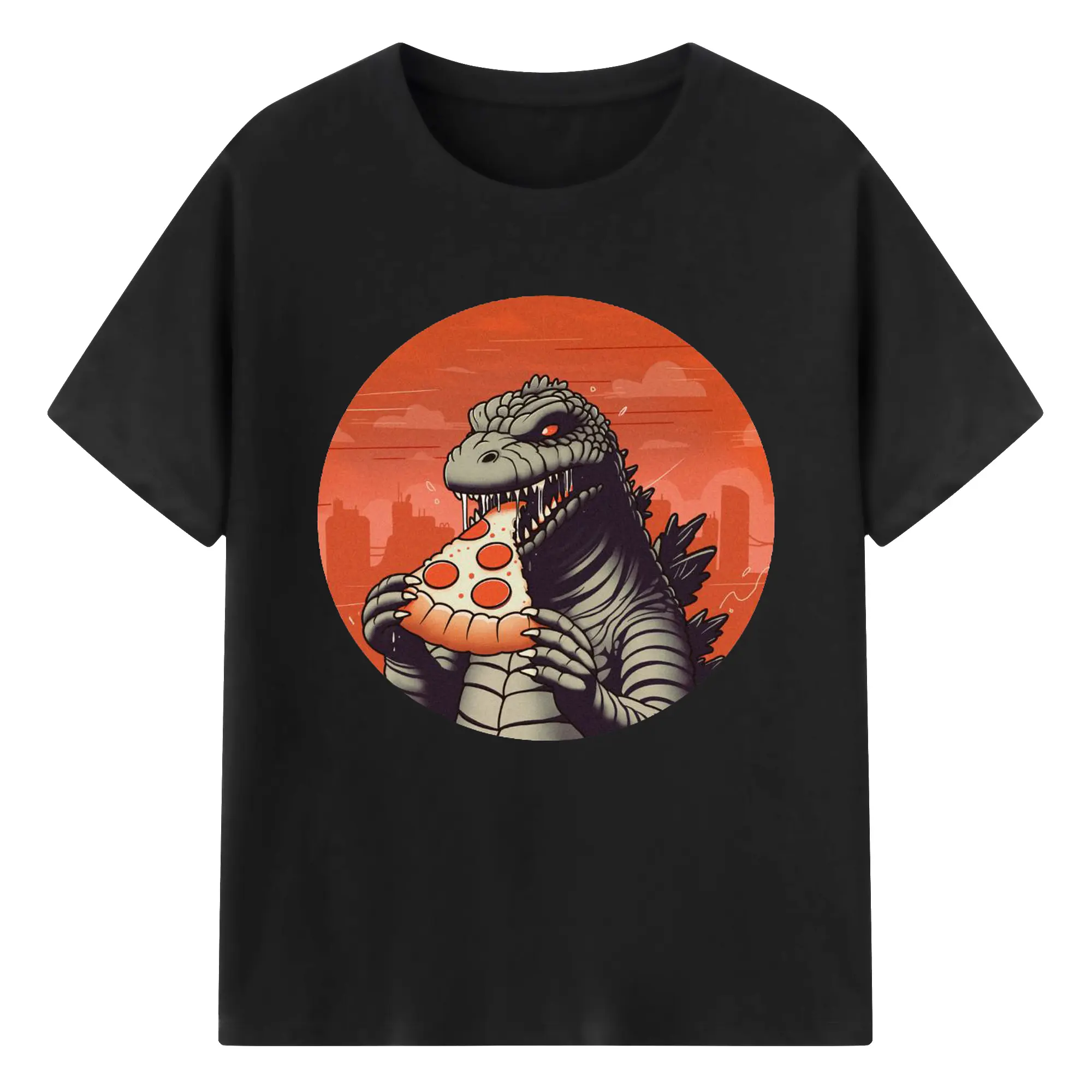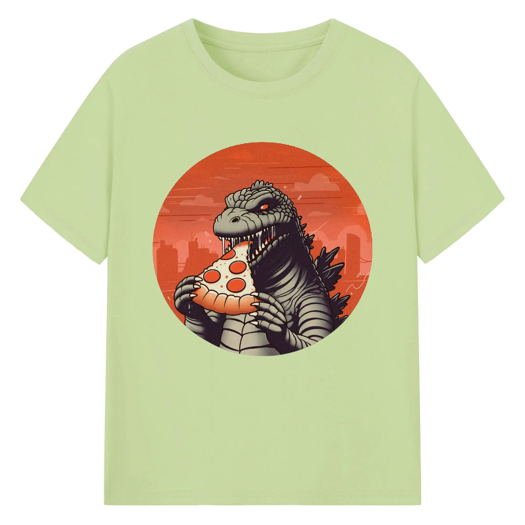 ゴジラの食事タイム - 綿100% 半袖Tシャツ ・ フロントプリント ・ 快適 通気性 ・ 日常使い 散歩 スポーツ用