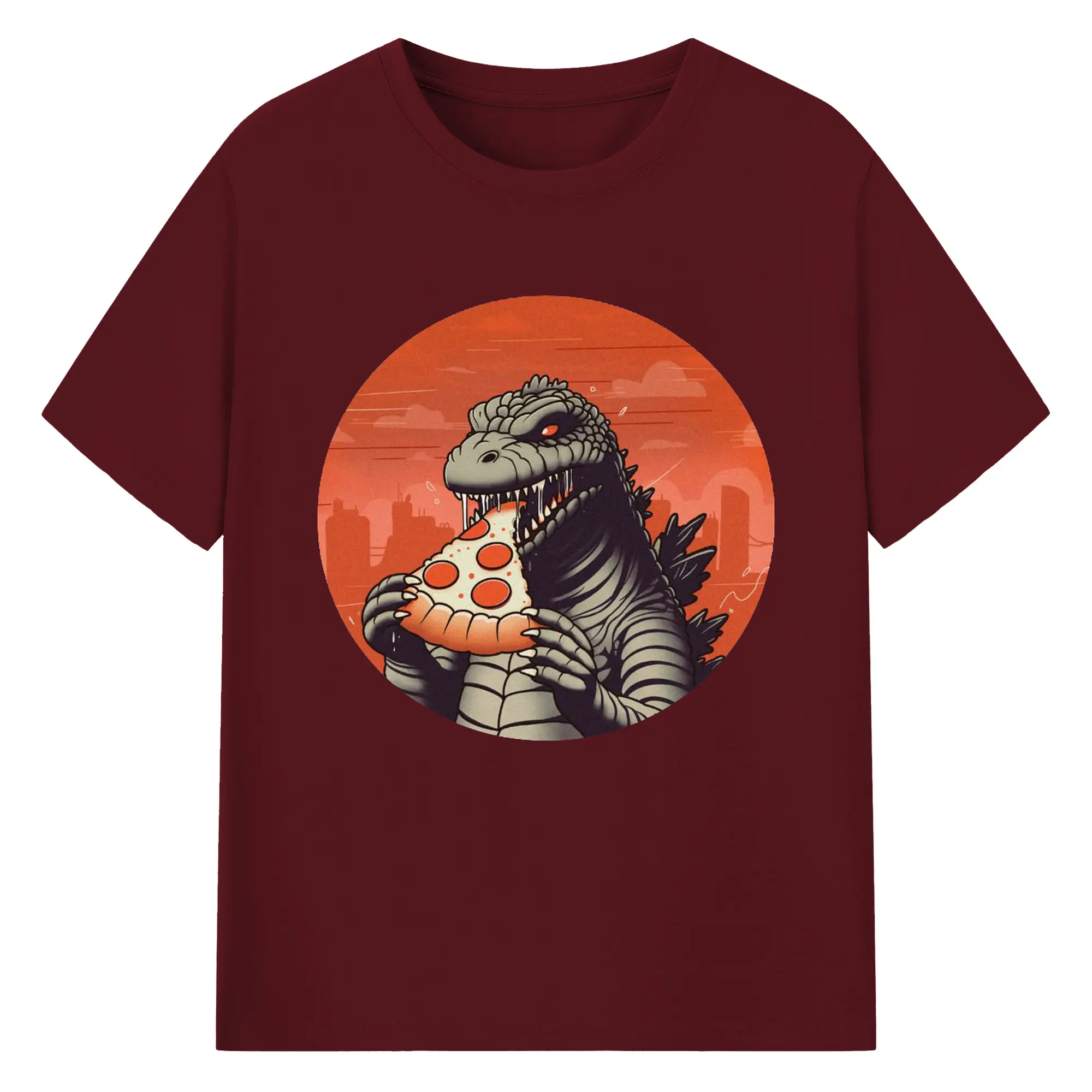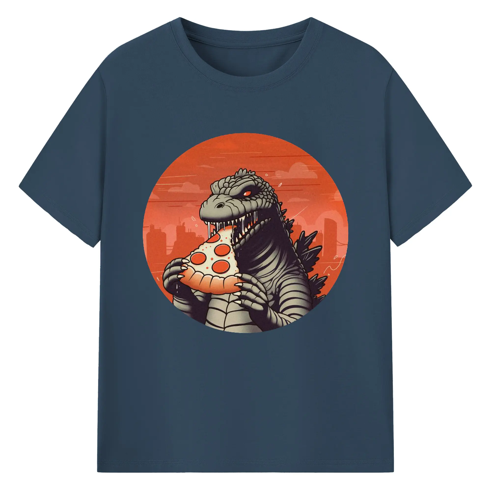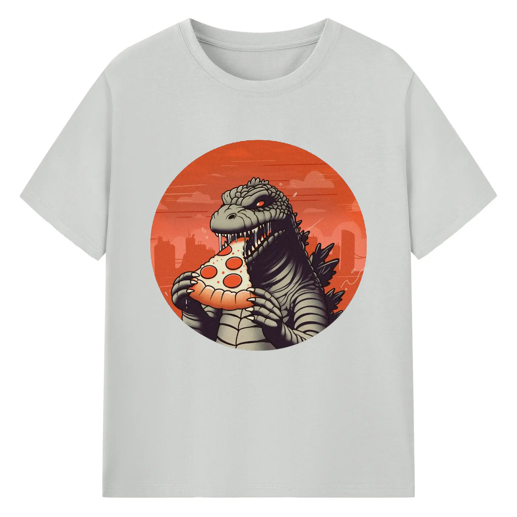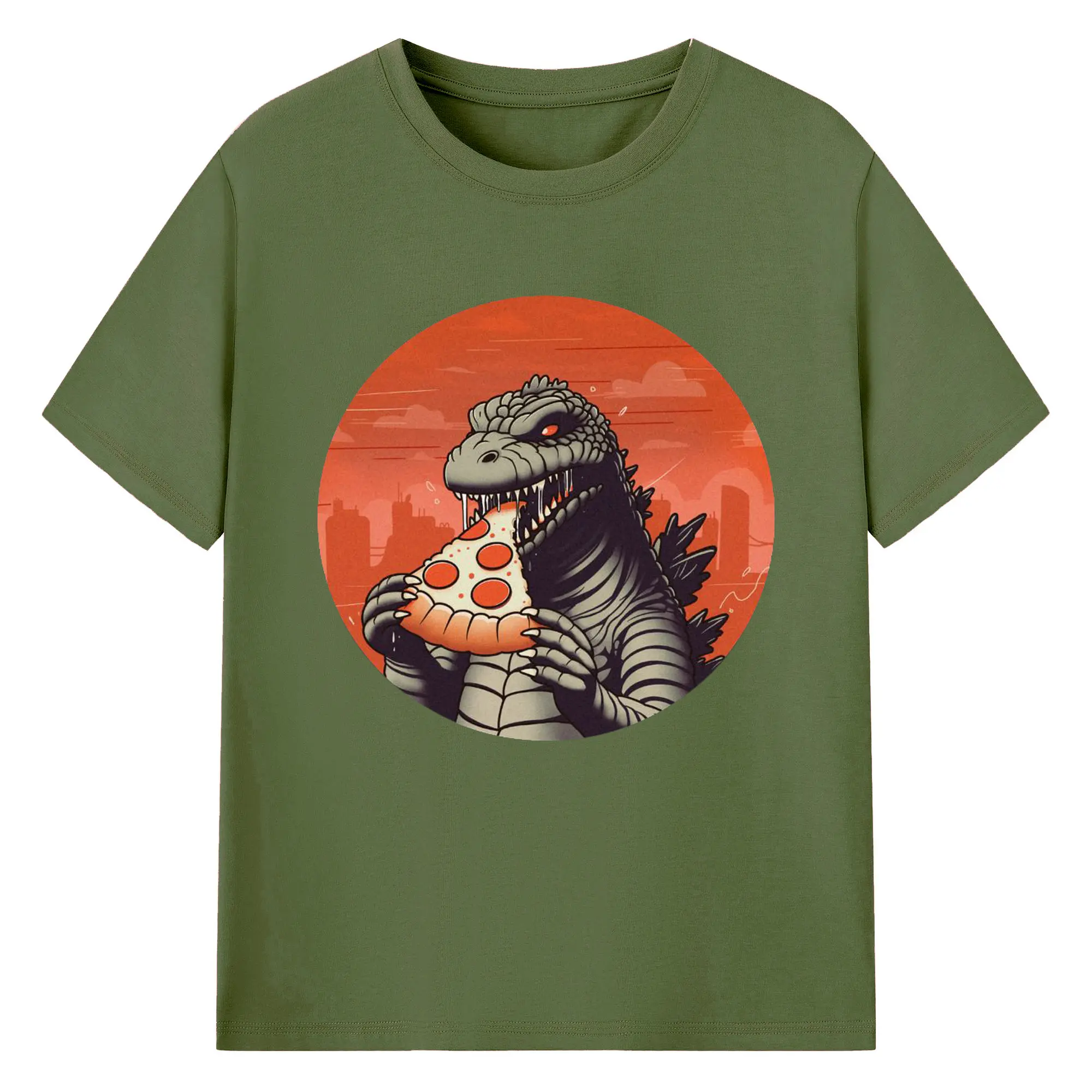 ゴジラの食事タイム - 綿100% 半袖Tシャツ ・ フロントプリント ・ 快適 通気性 ・ 日常使い 散歩 スポーツ用