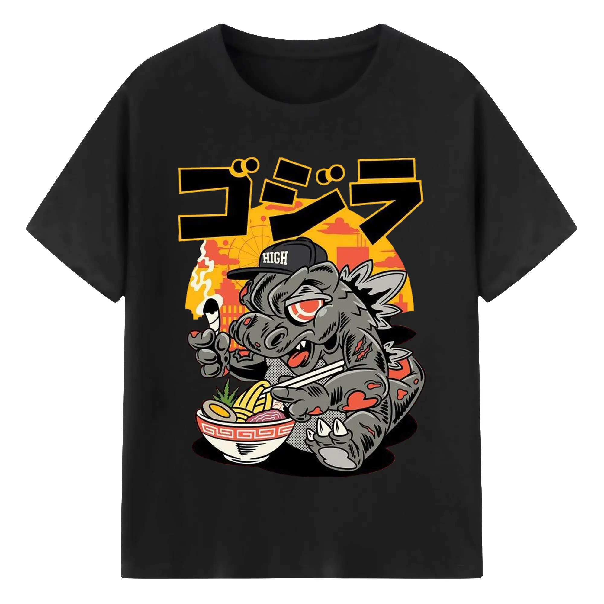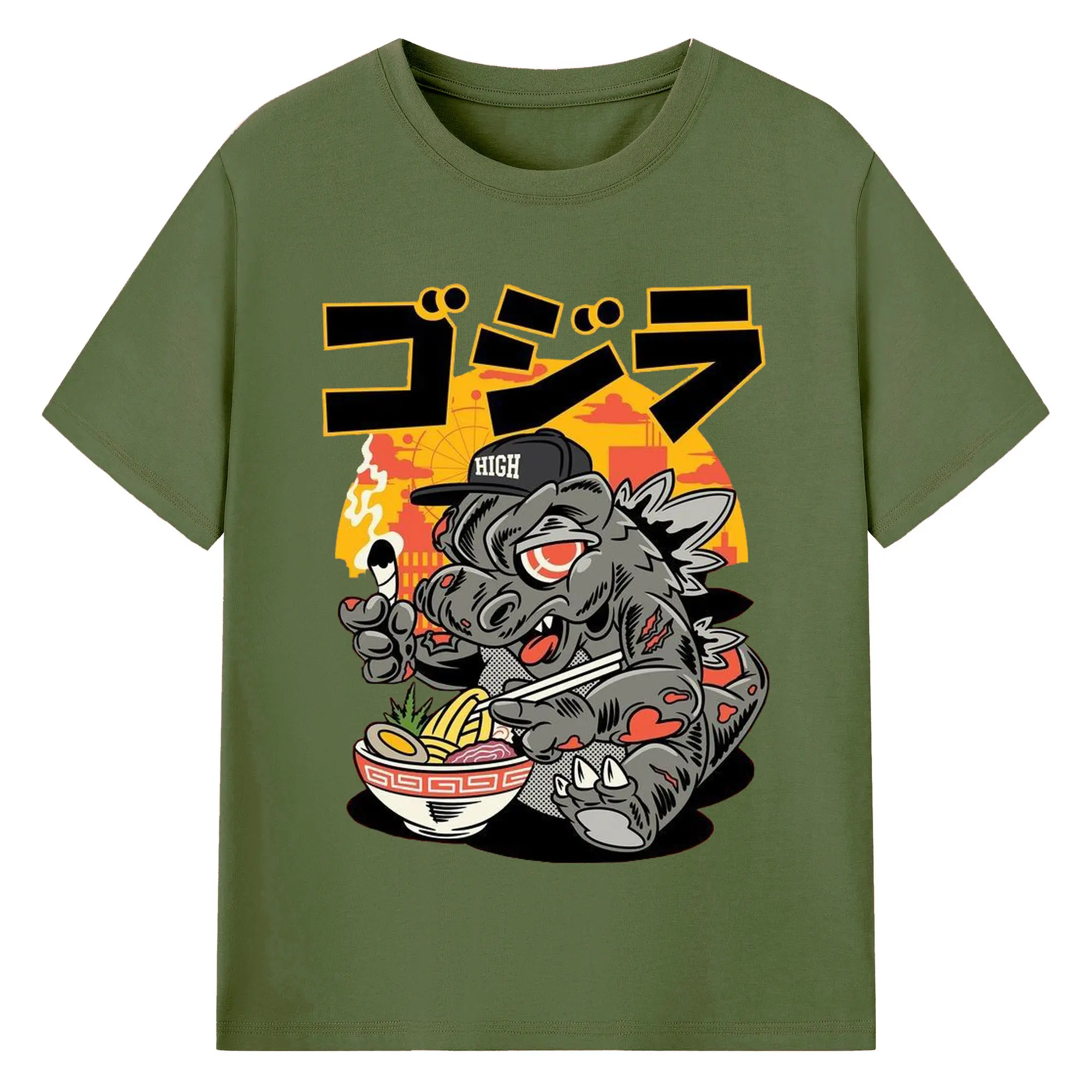 ゴジラの食事タイム - 綿100% 半袖Tシャツ ・ フロントプリント ・ 快適 通気性 ・ 日常使い 散歩 スポーツ用