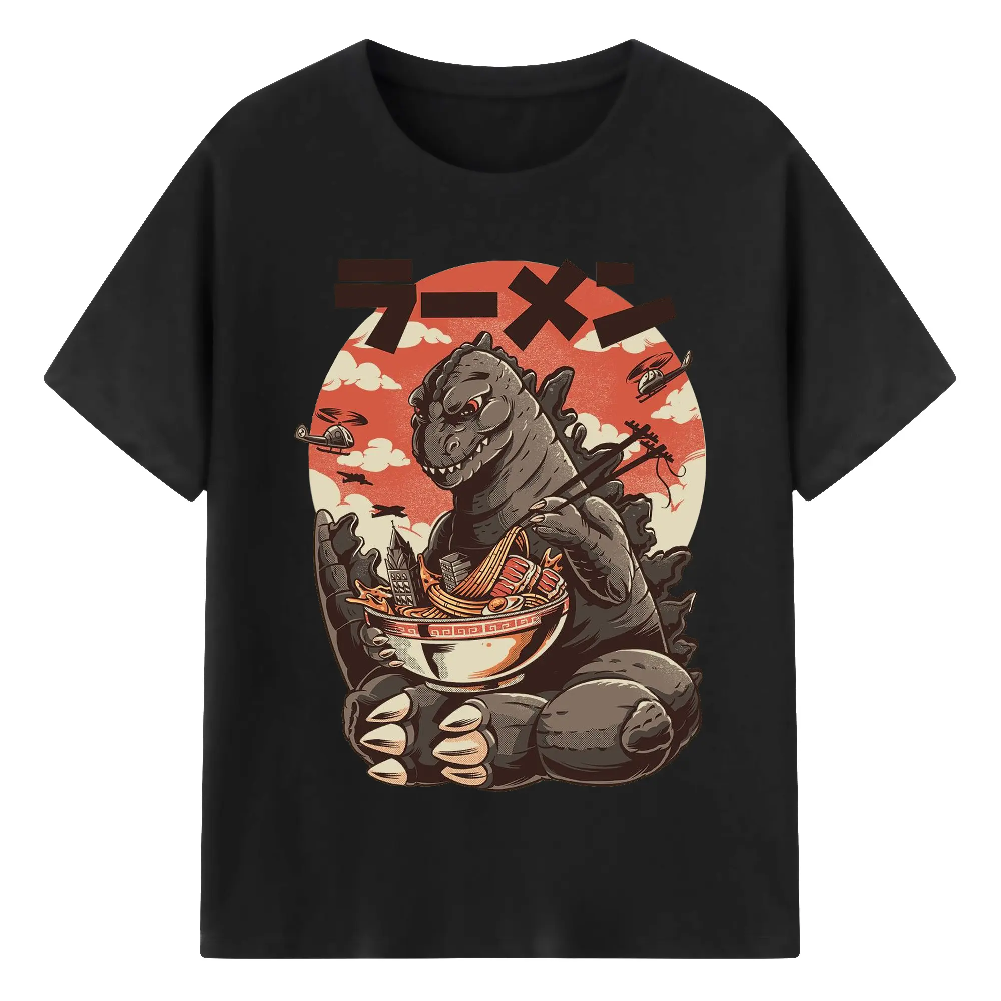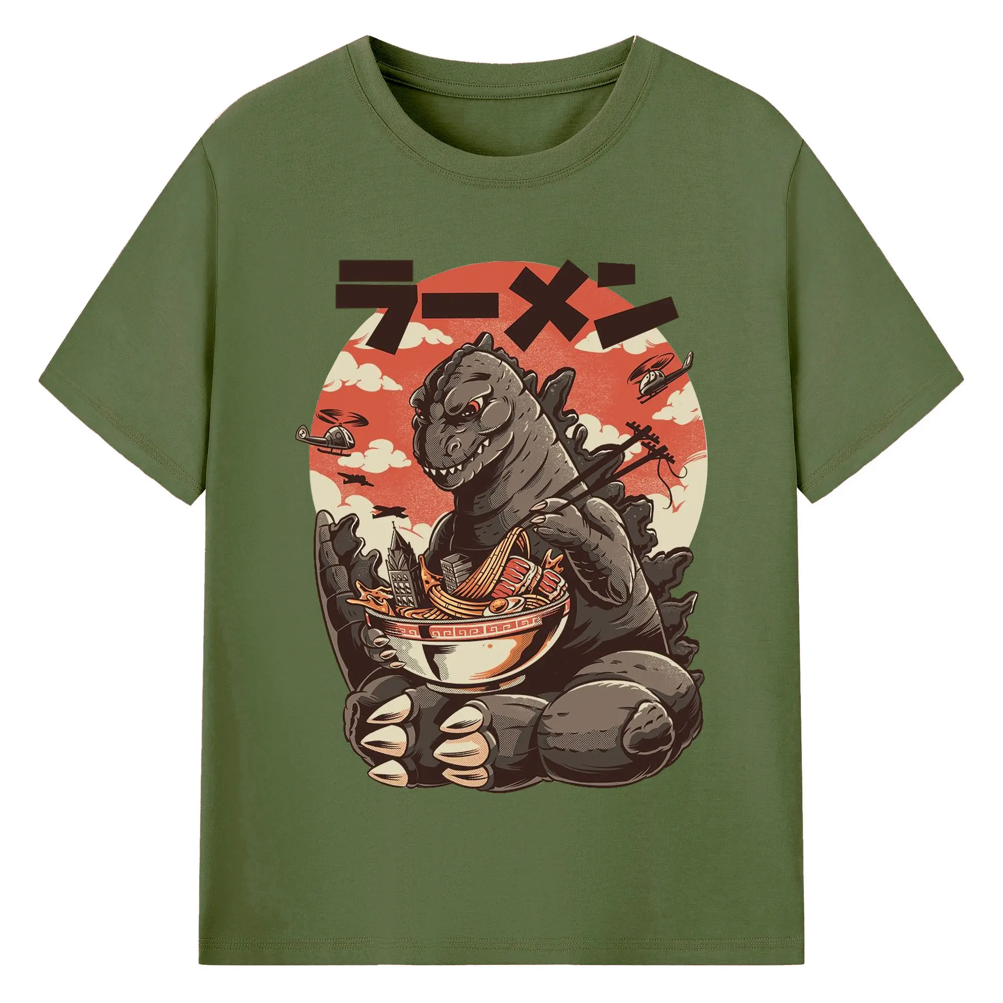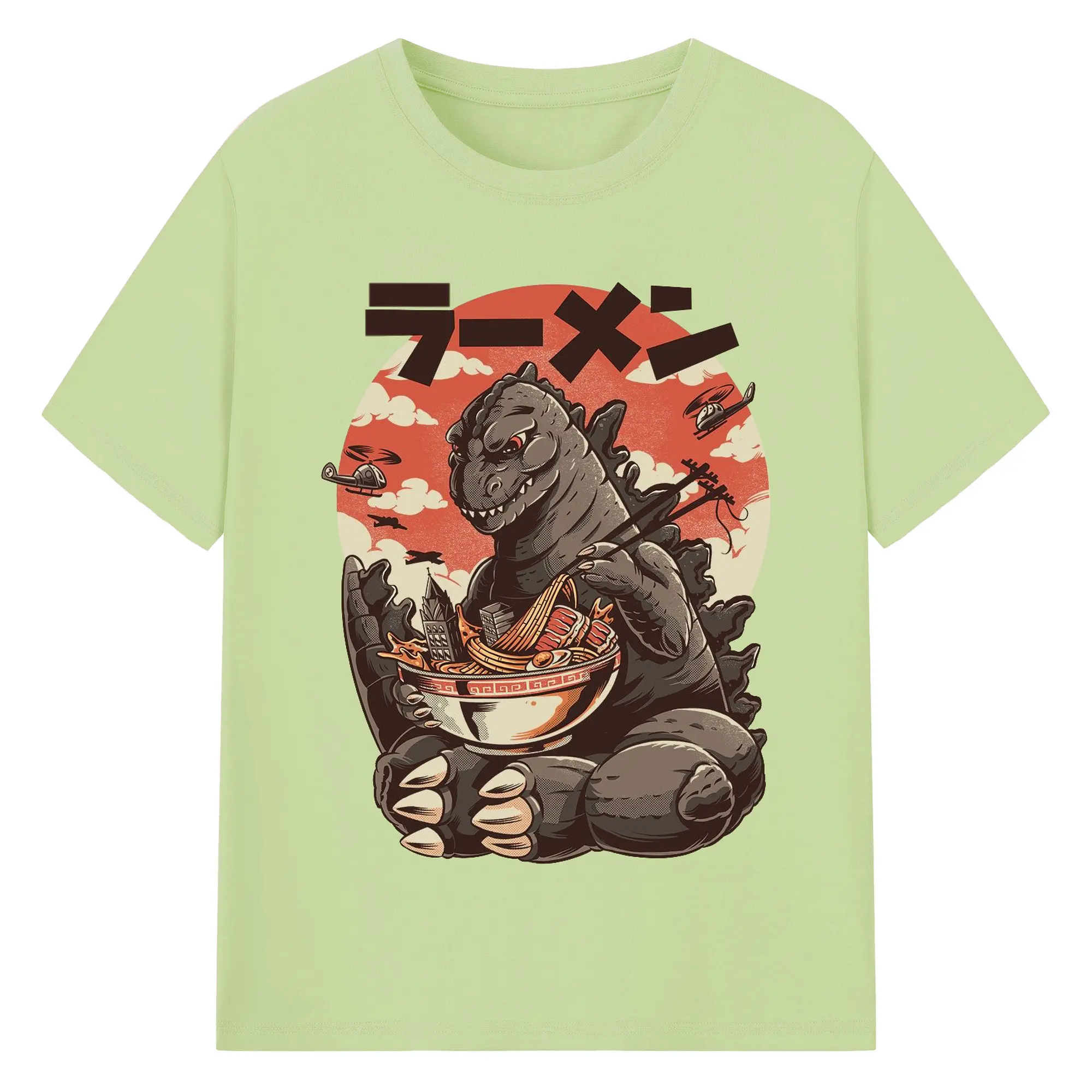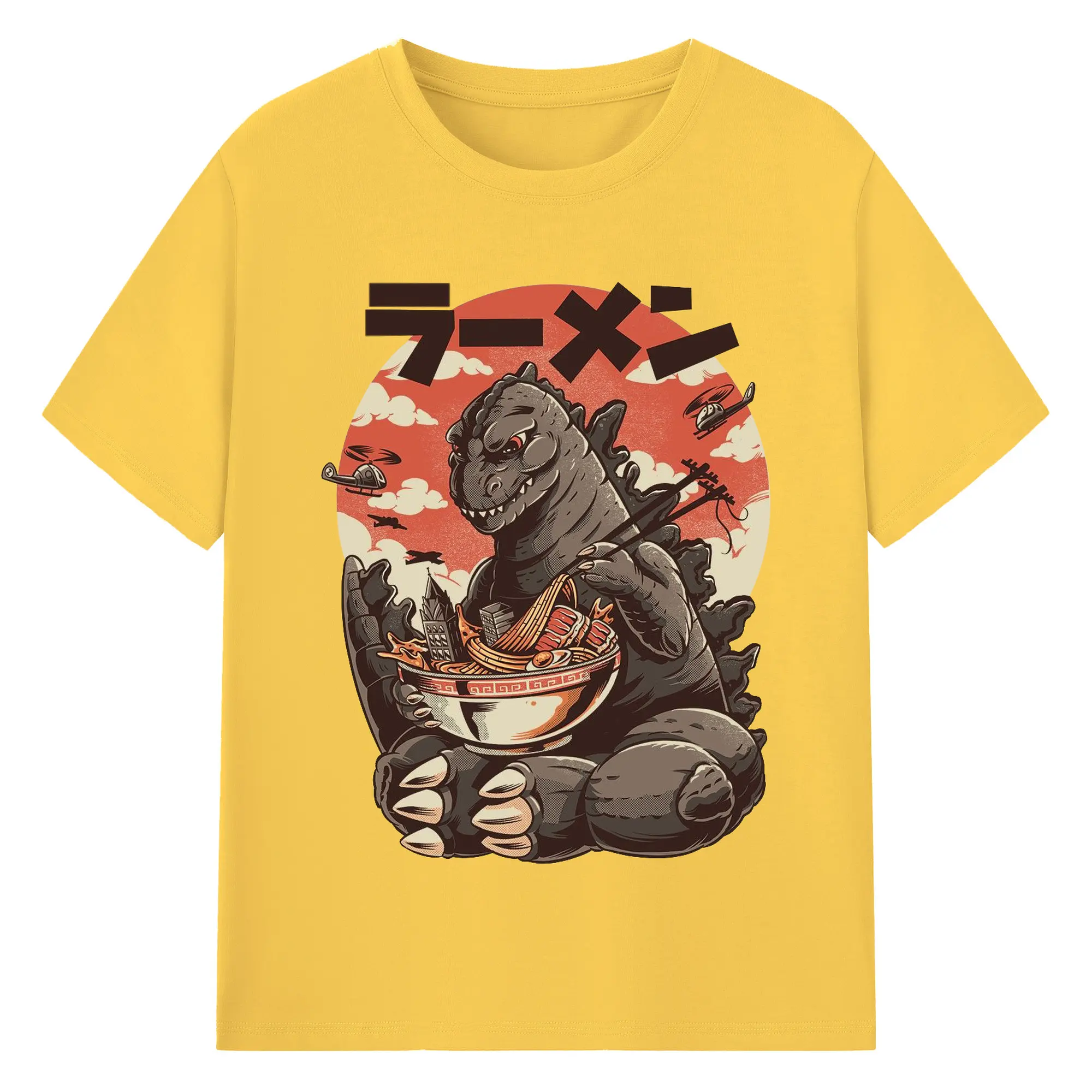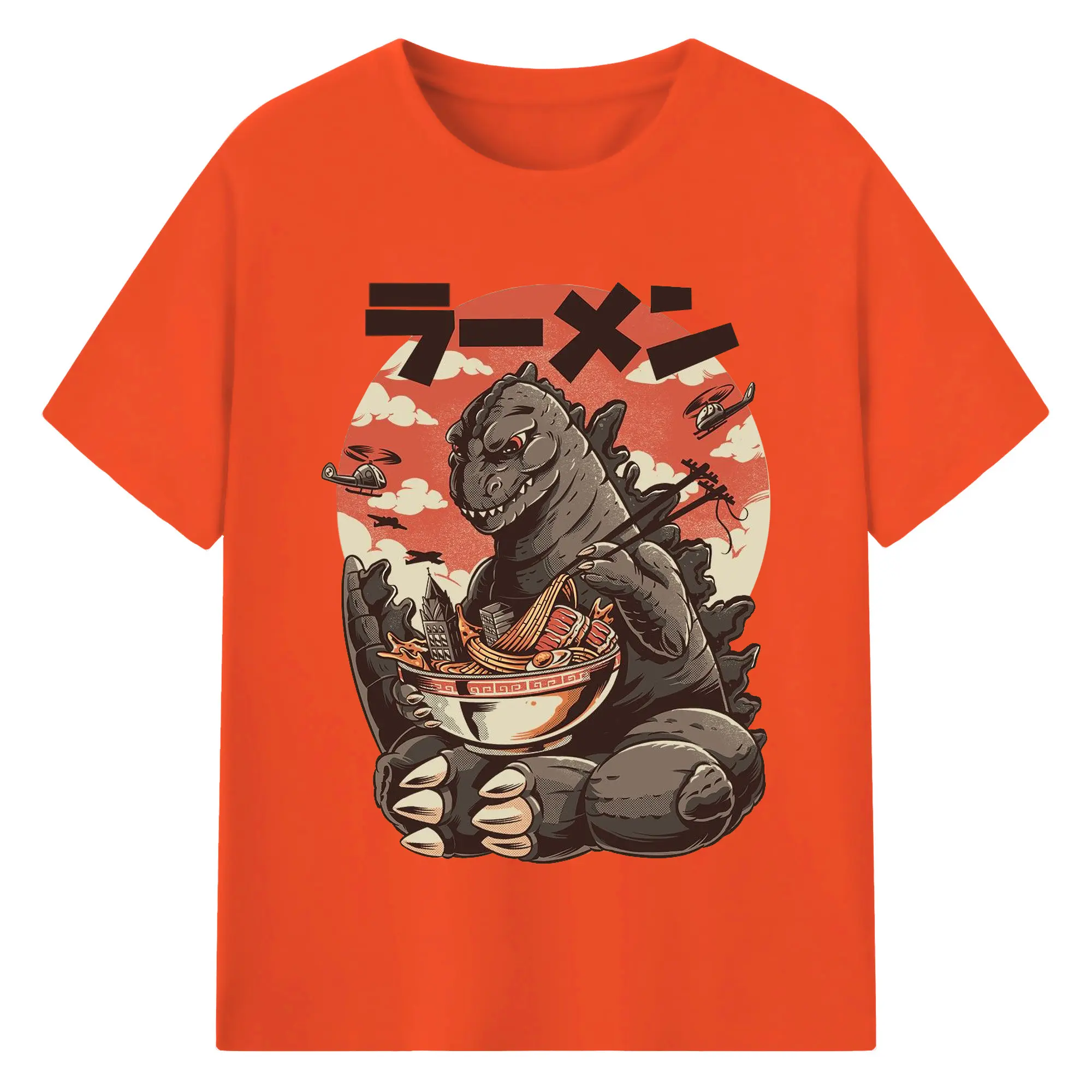 ゴジラの食事タイム - 綿100% 半袖Tシャツ ・ フロントプリント ・ 快適 通気性 ・ 日常使い 散歩 スポーツ用