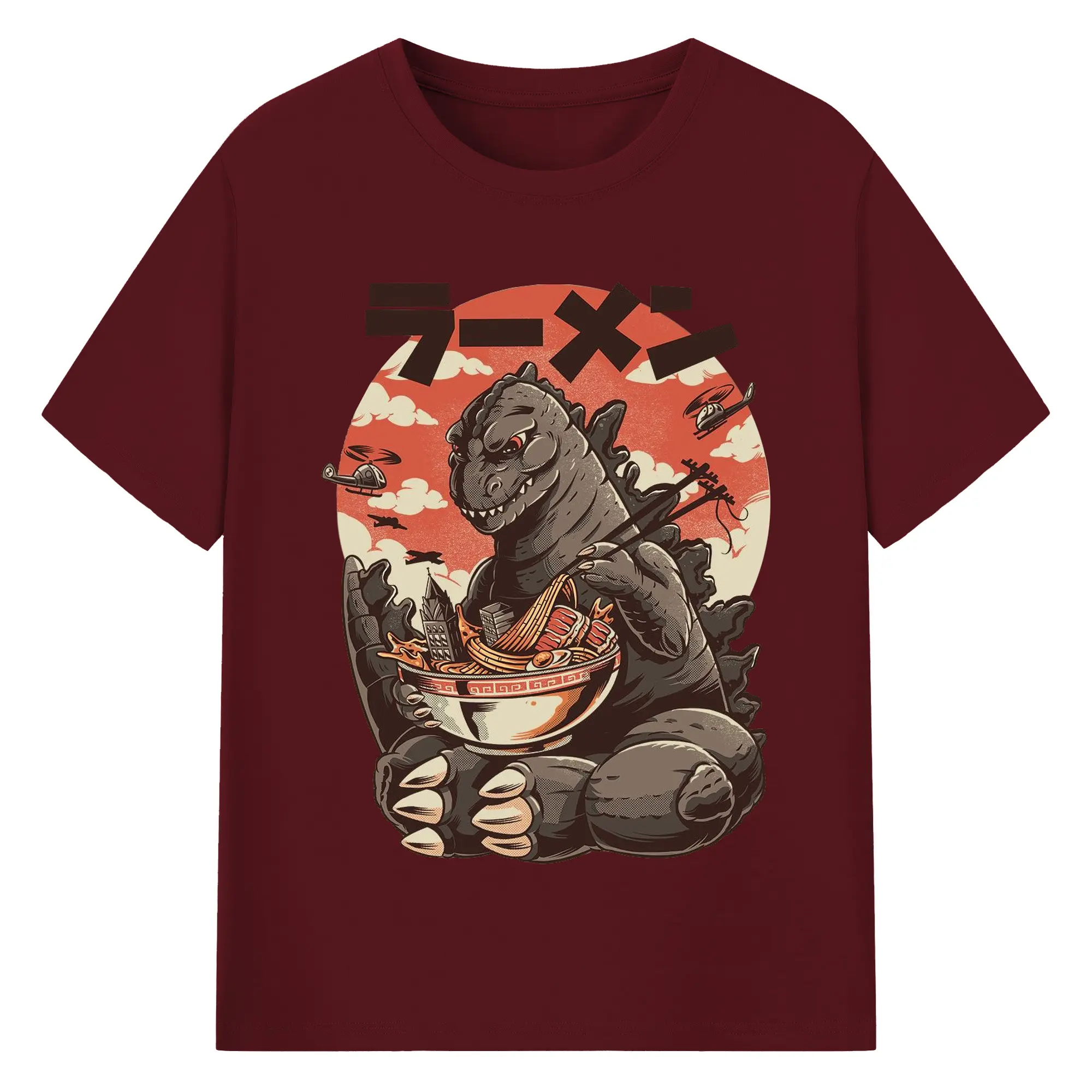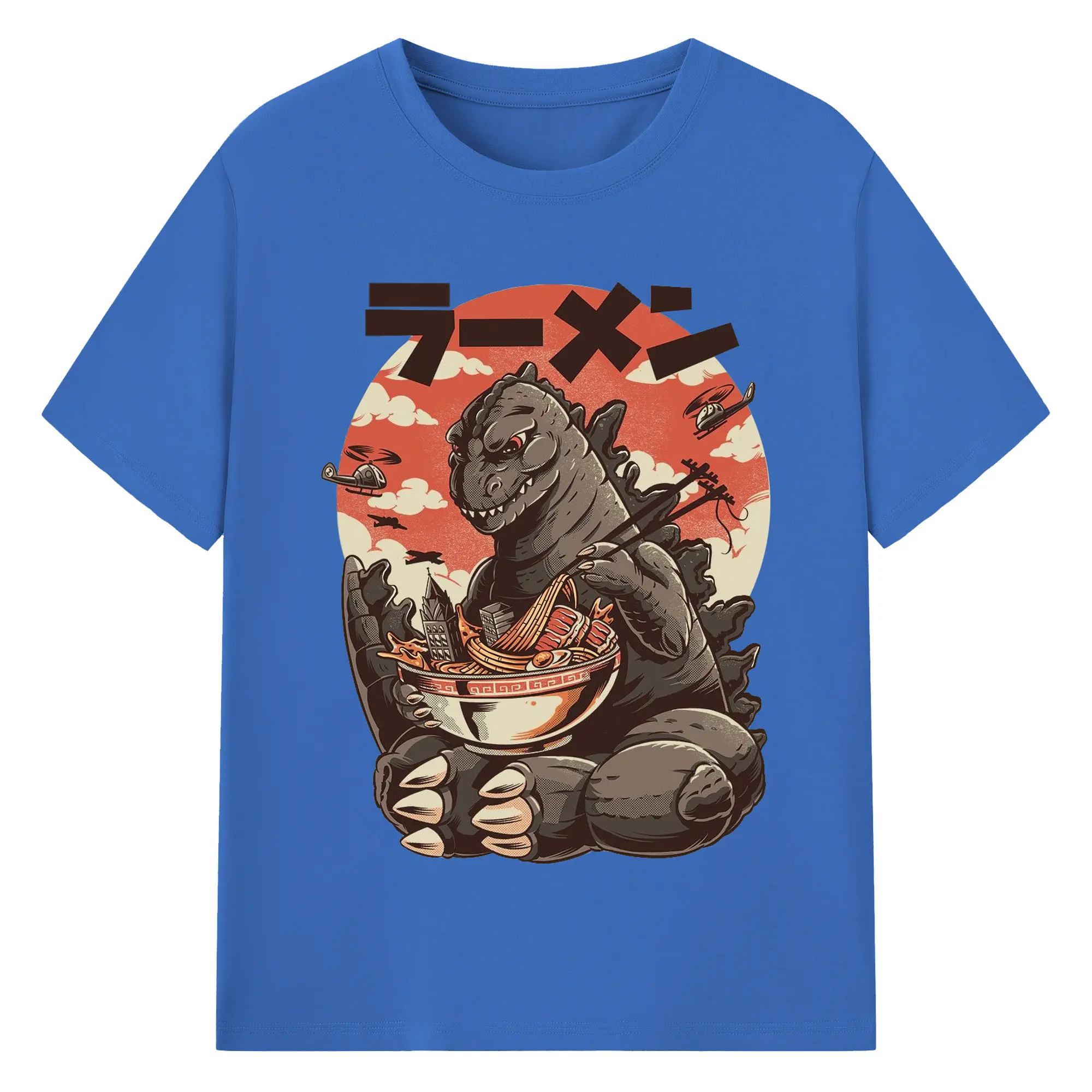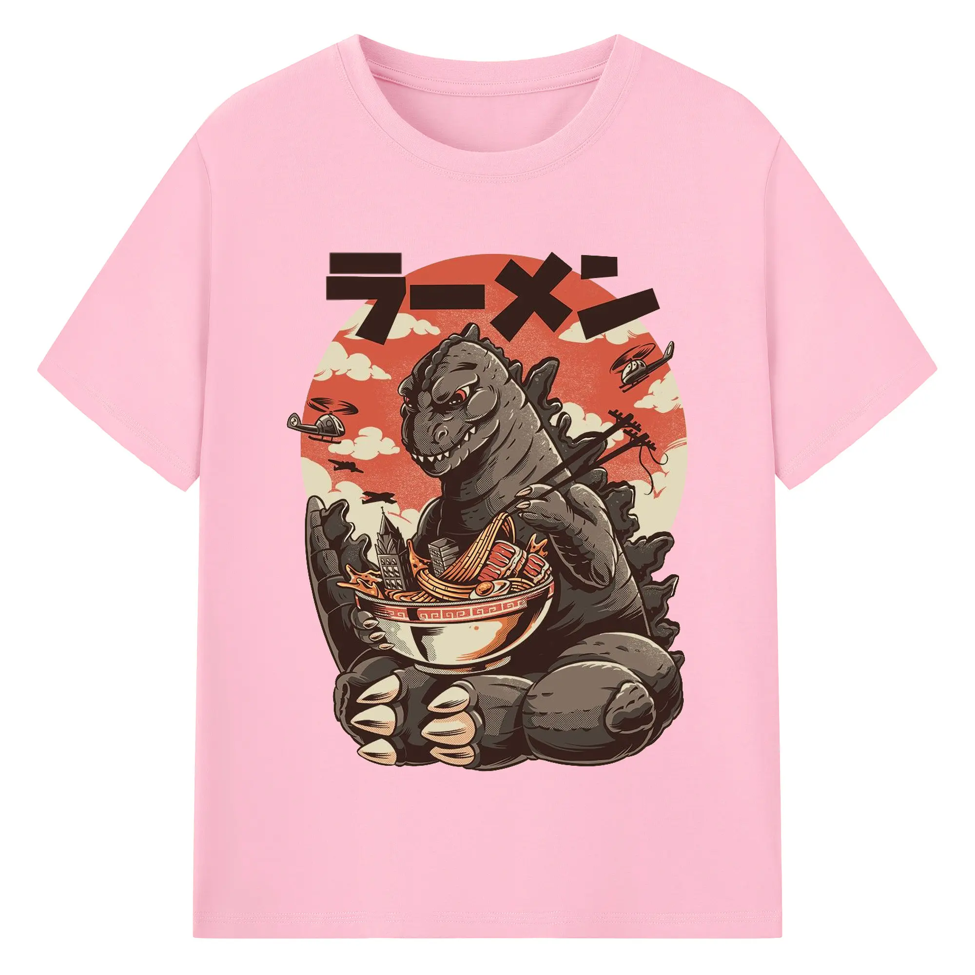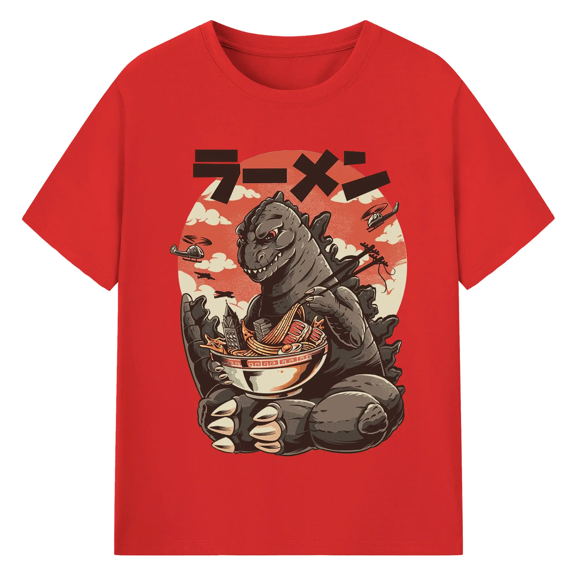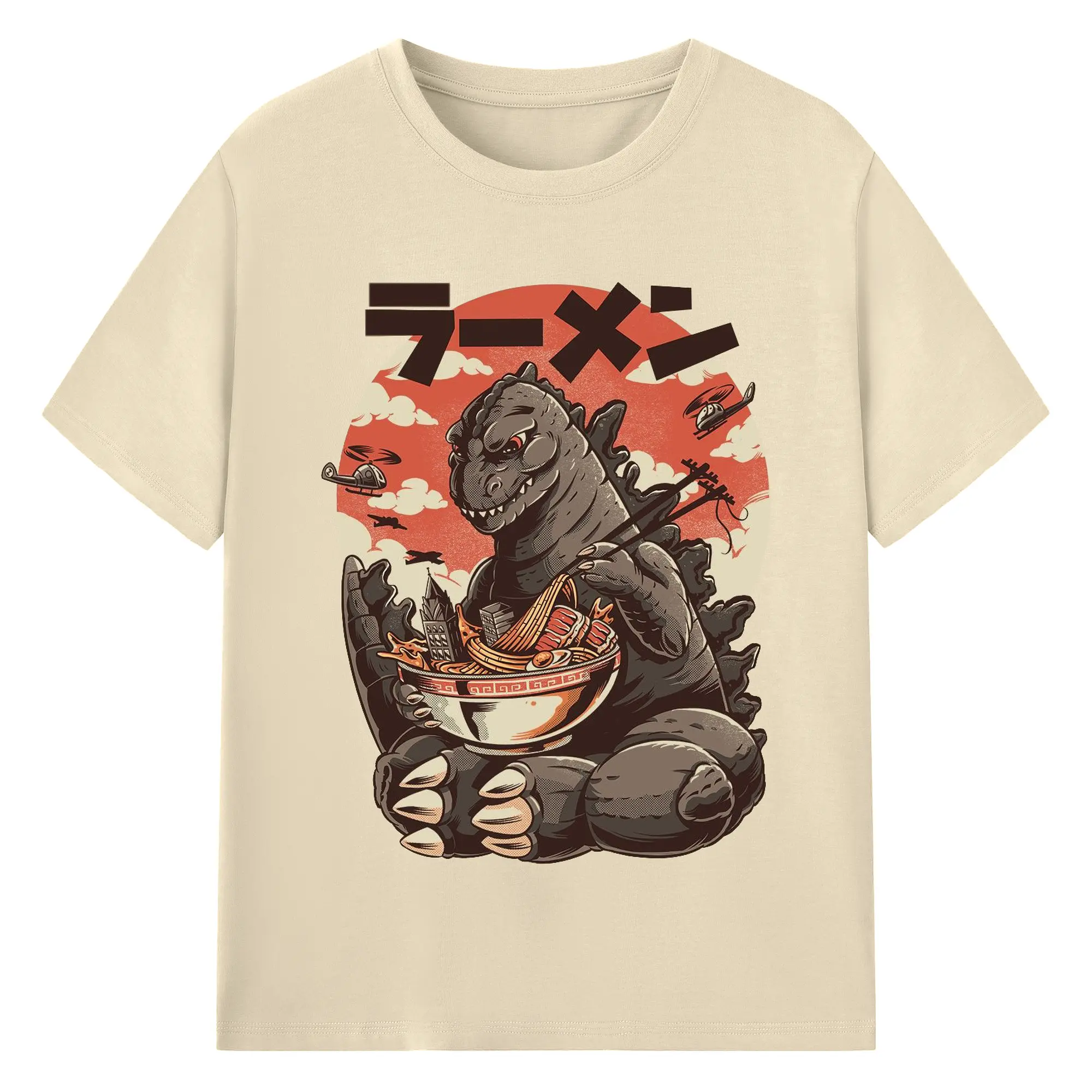 ゴジラの食事タイム - 綿100% 半袖Tシャツ ・ フロントプリント ・ 快適 通気性 ・ 日常使い 散歩 スポーツ用