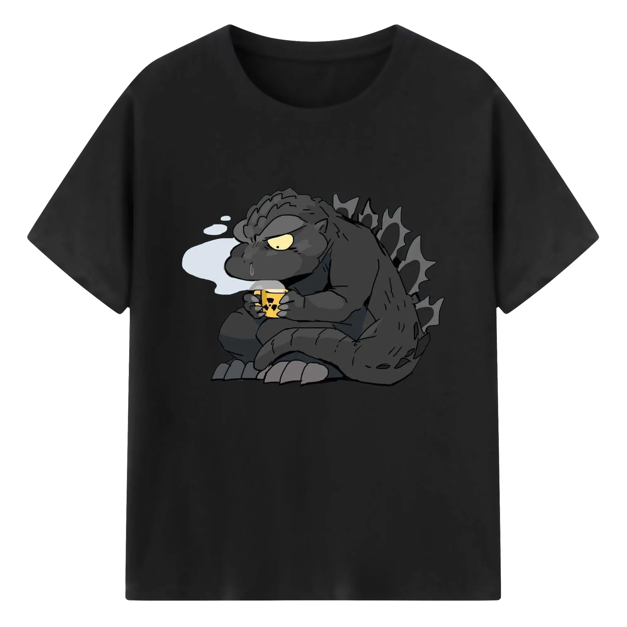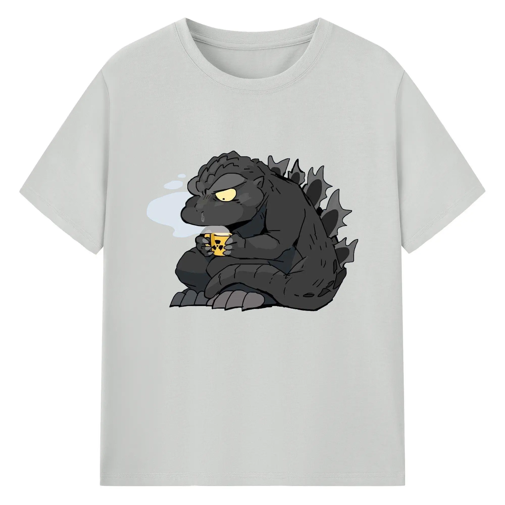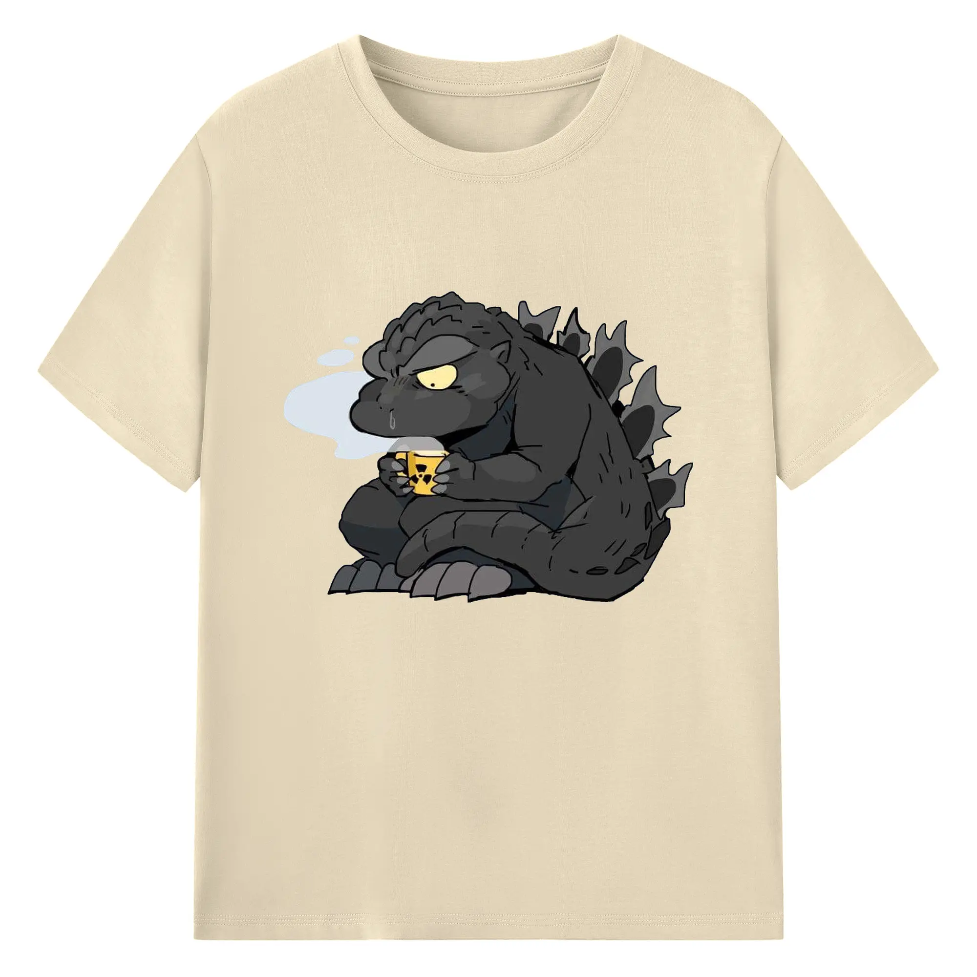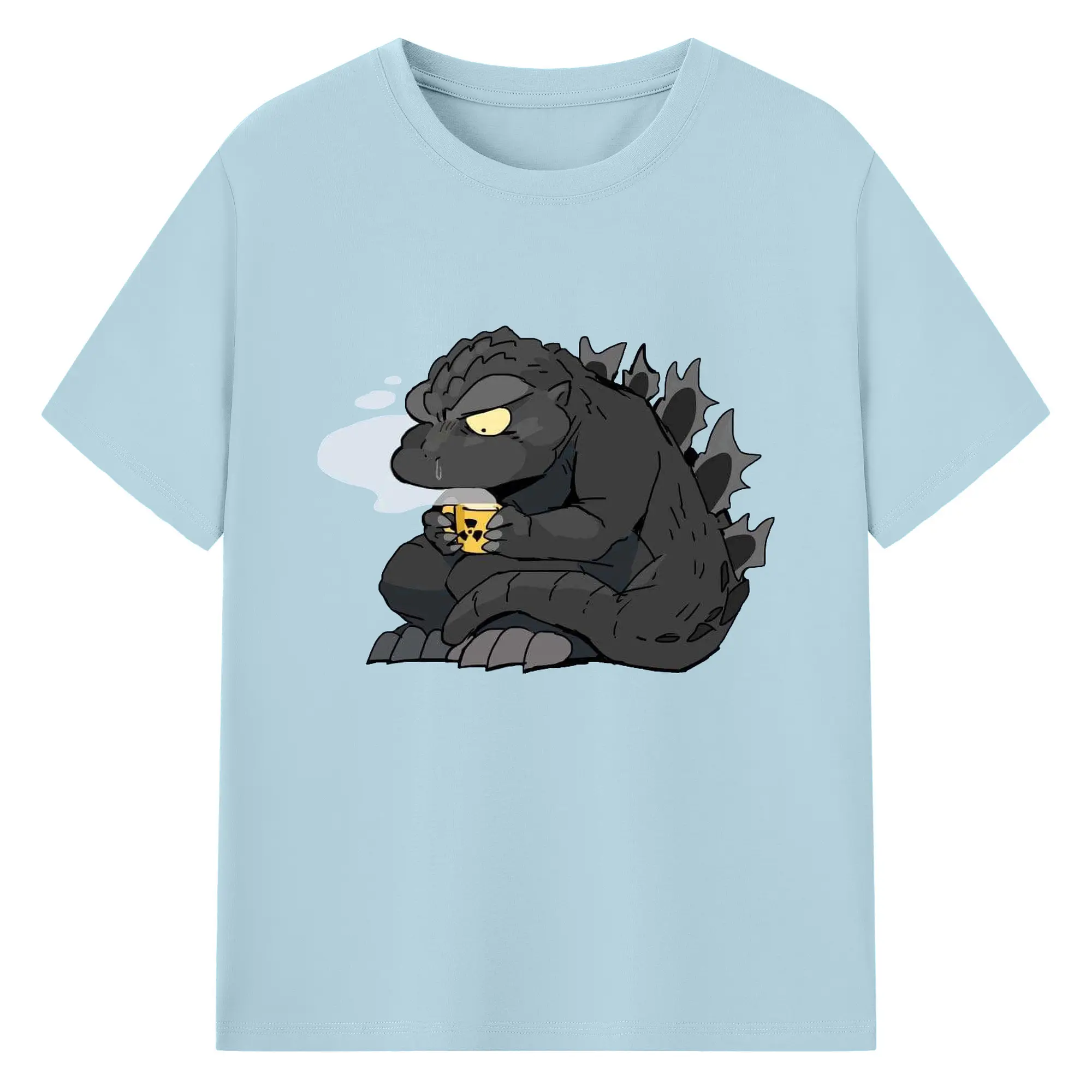ゴジラの食事タイム - 綿100% 半袖Tシャツ ・ フロントプリント ・ 快適 通気性 ・ 日常使い 散歩 スポーツ用