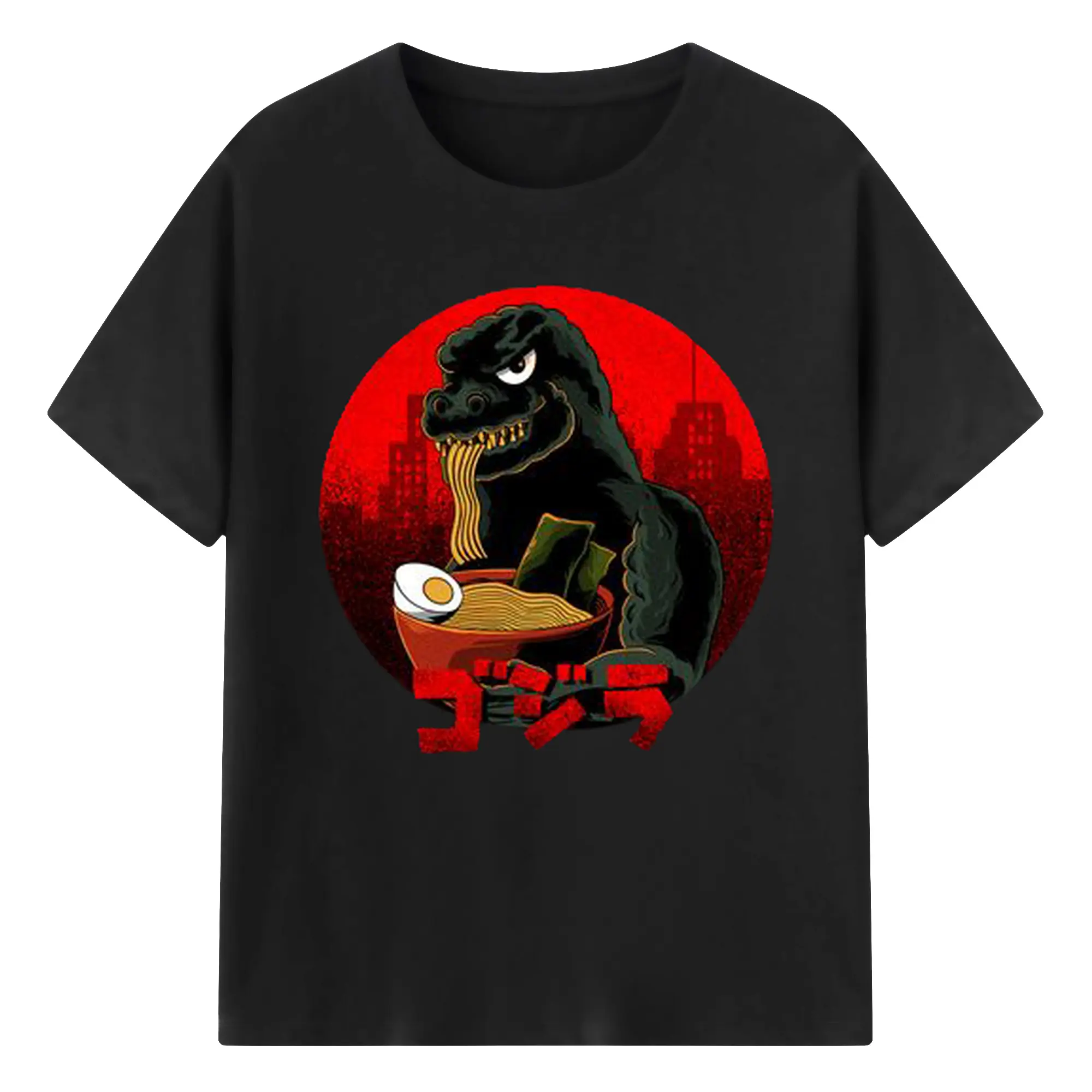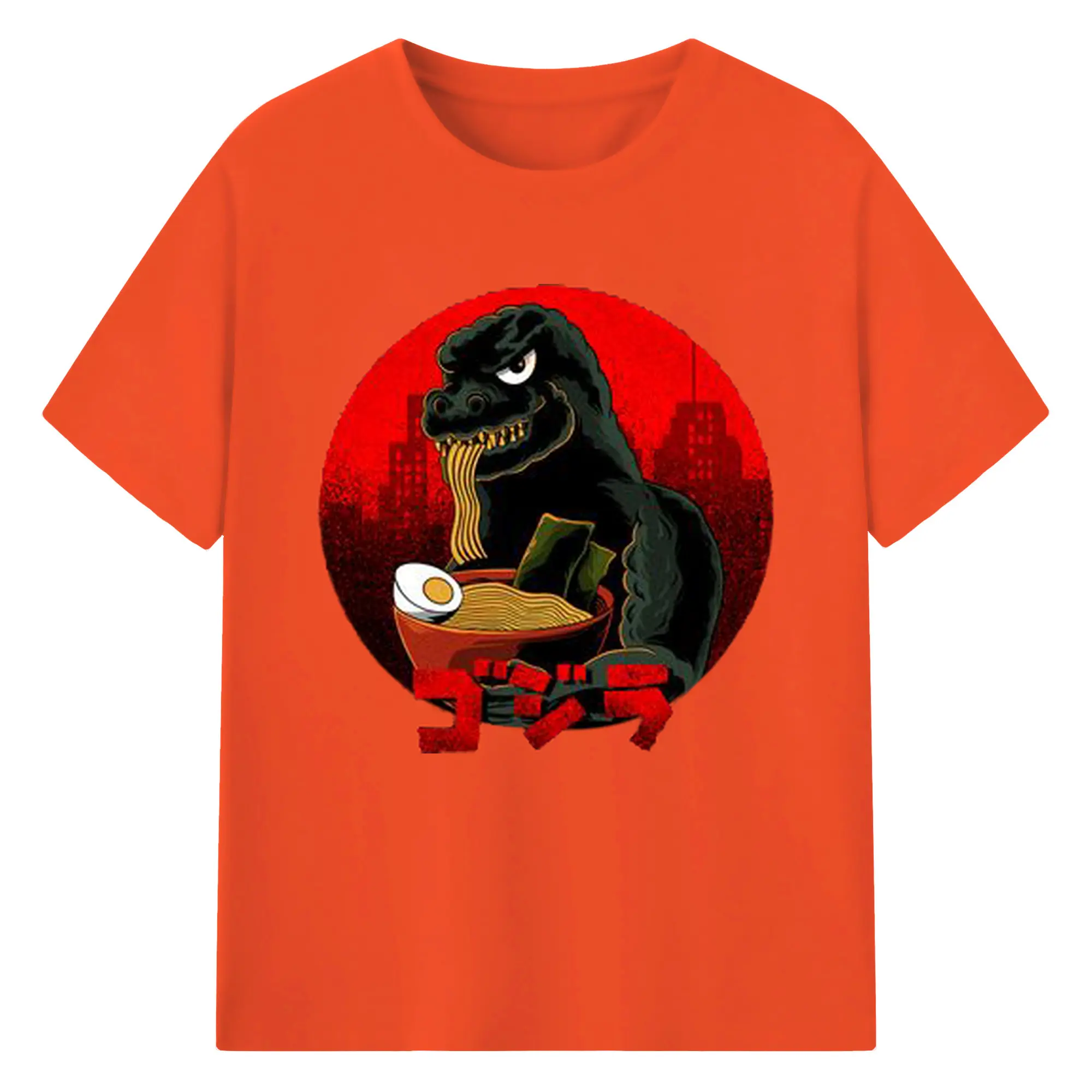 ゴジラの食事タイム - 綿100% 半袖Tシャツ ・ フロントプリント ・ 快適 通気性 ・ 日常使い 散歩 スポーツ用