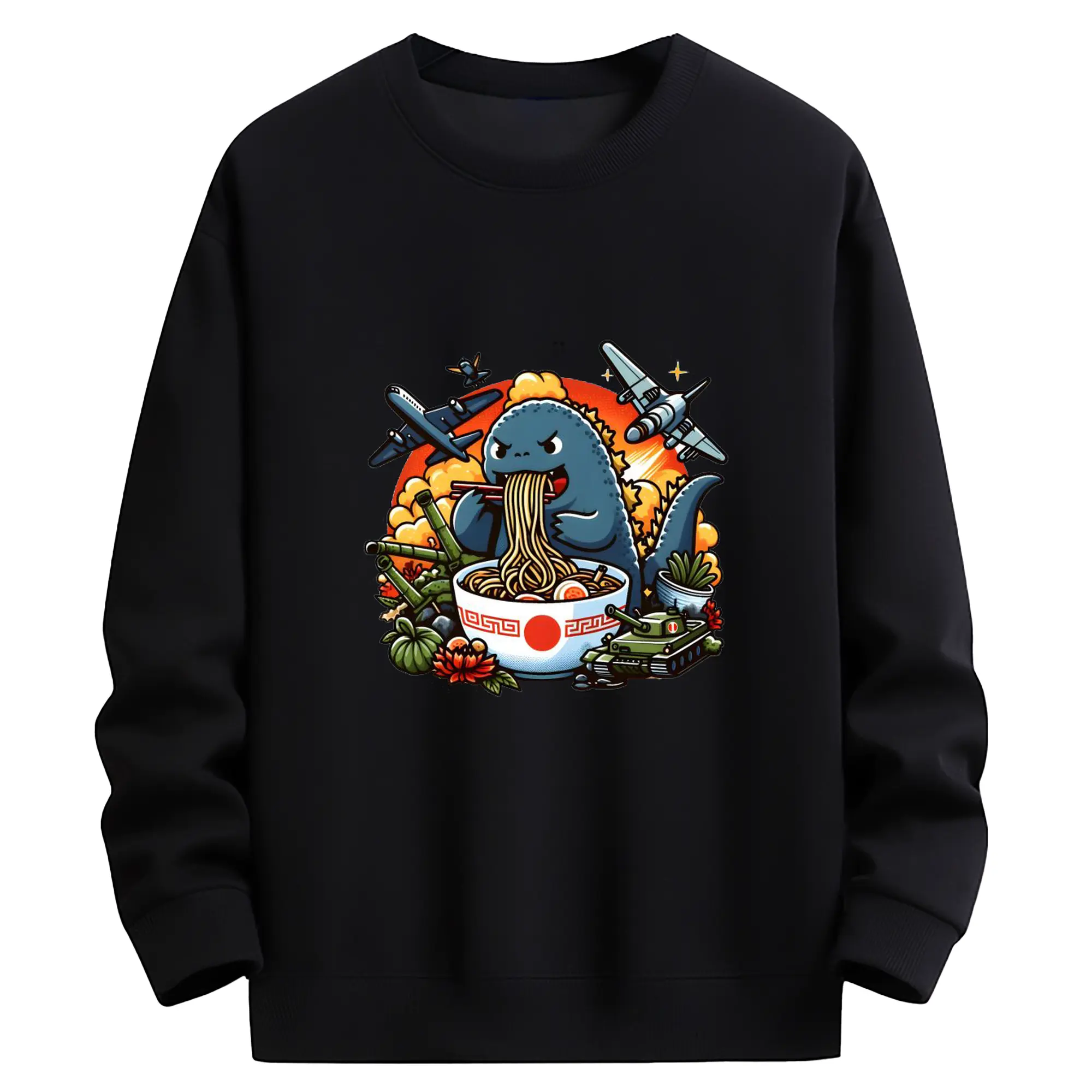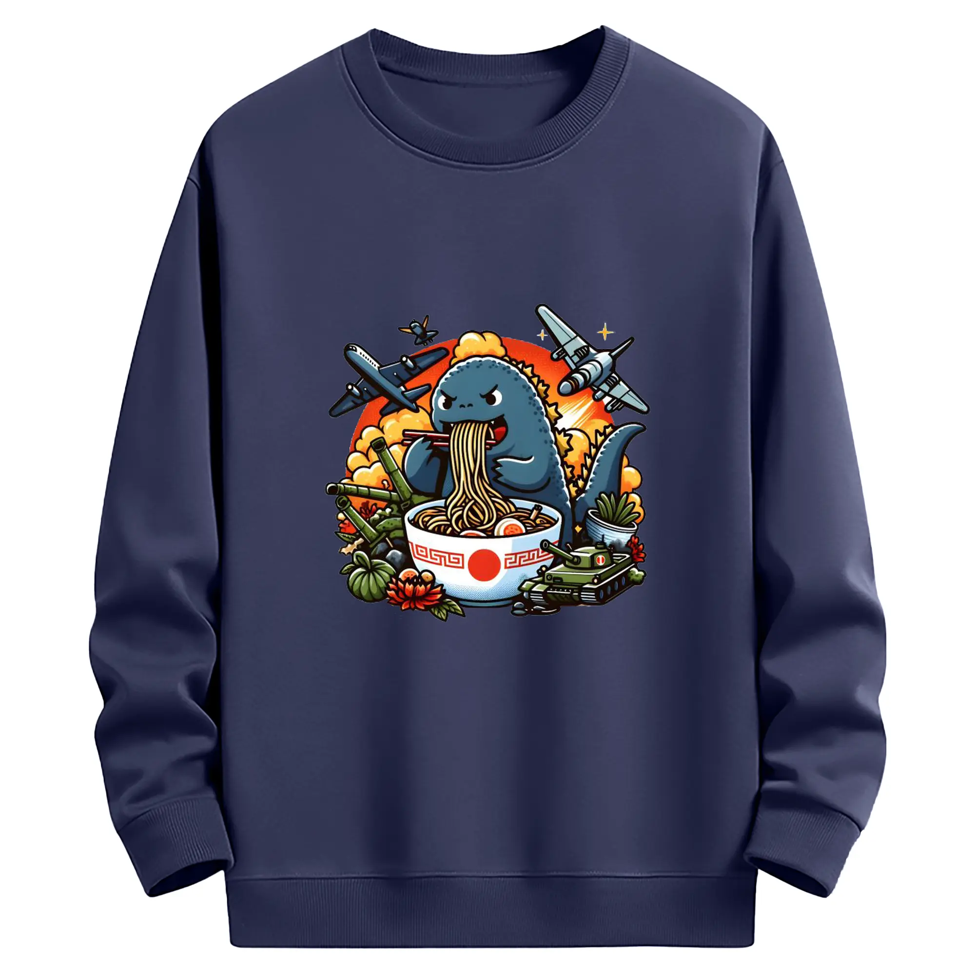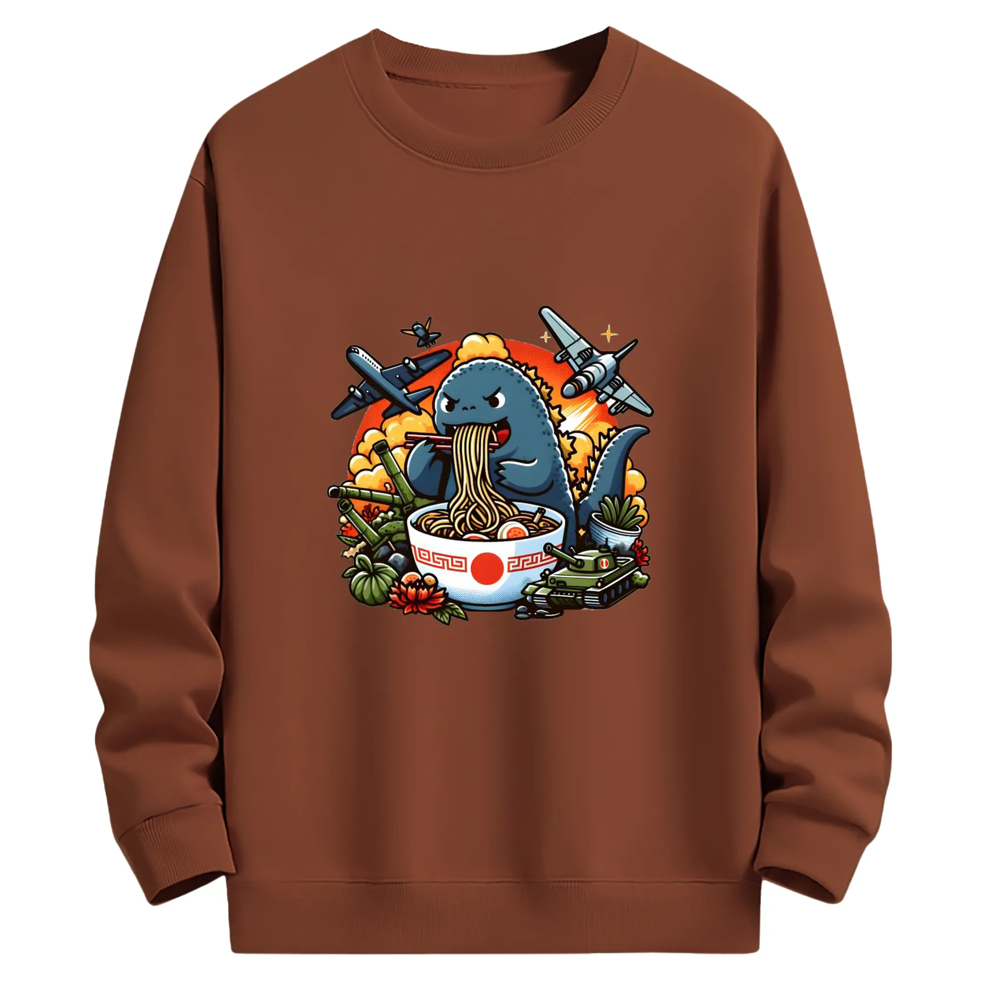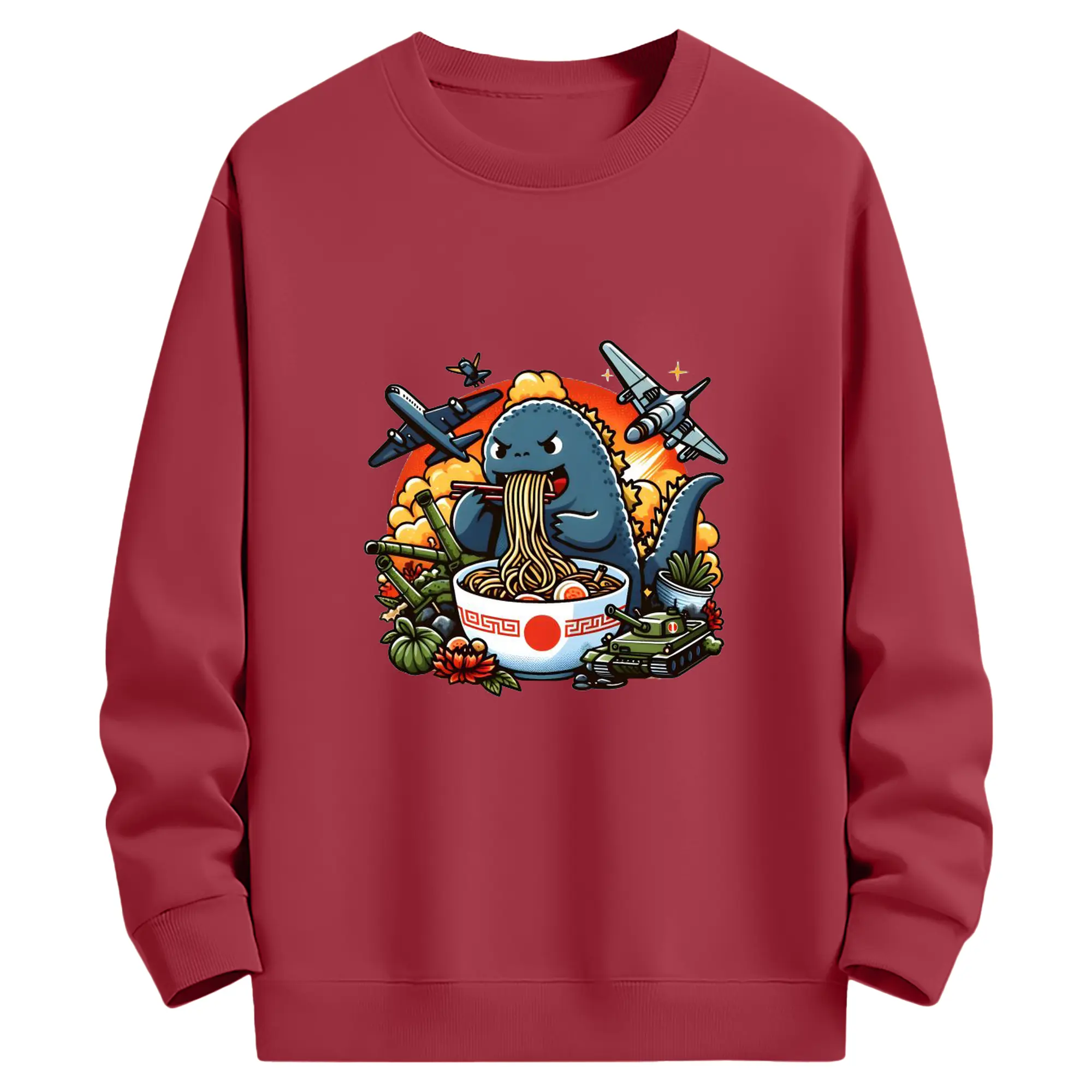 ゴジラの食事タイム - 高品質 クルーネック スウェット ・ コットン59% ポリエステル41% ・ ユニセックス 長袖 トレーナー ・ カジュアル デイリー スポーツ 散歩用