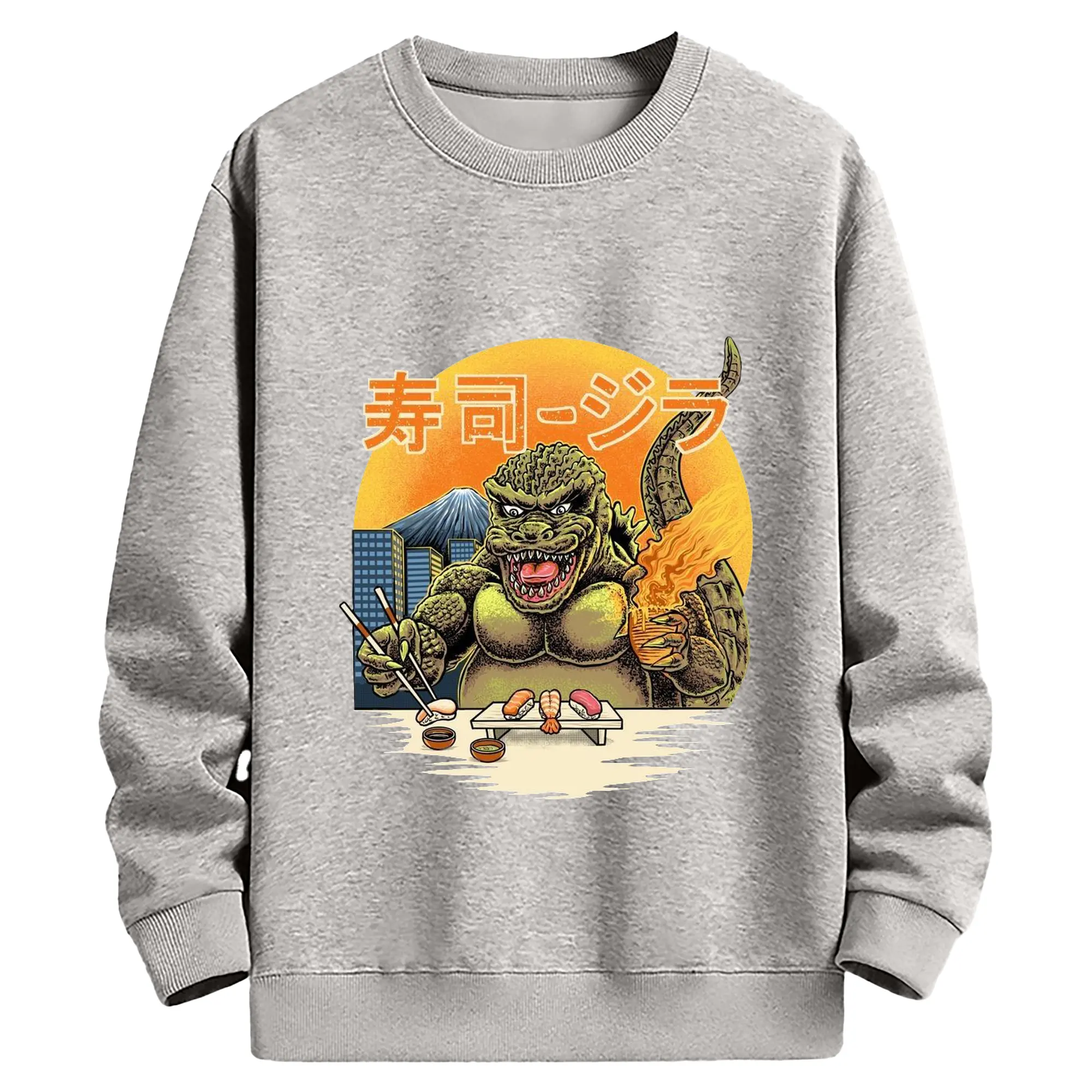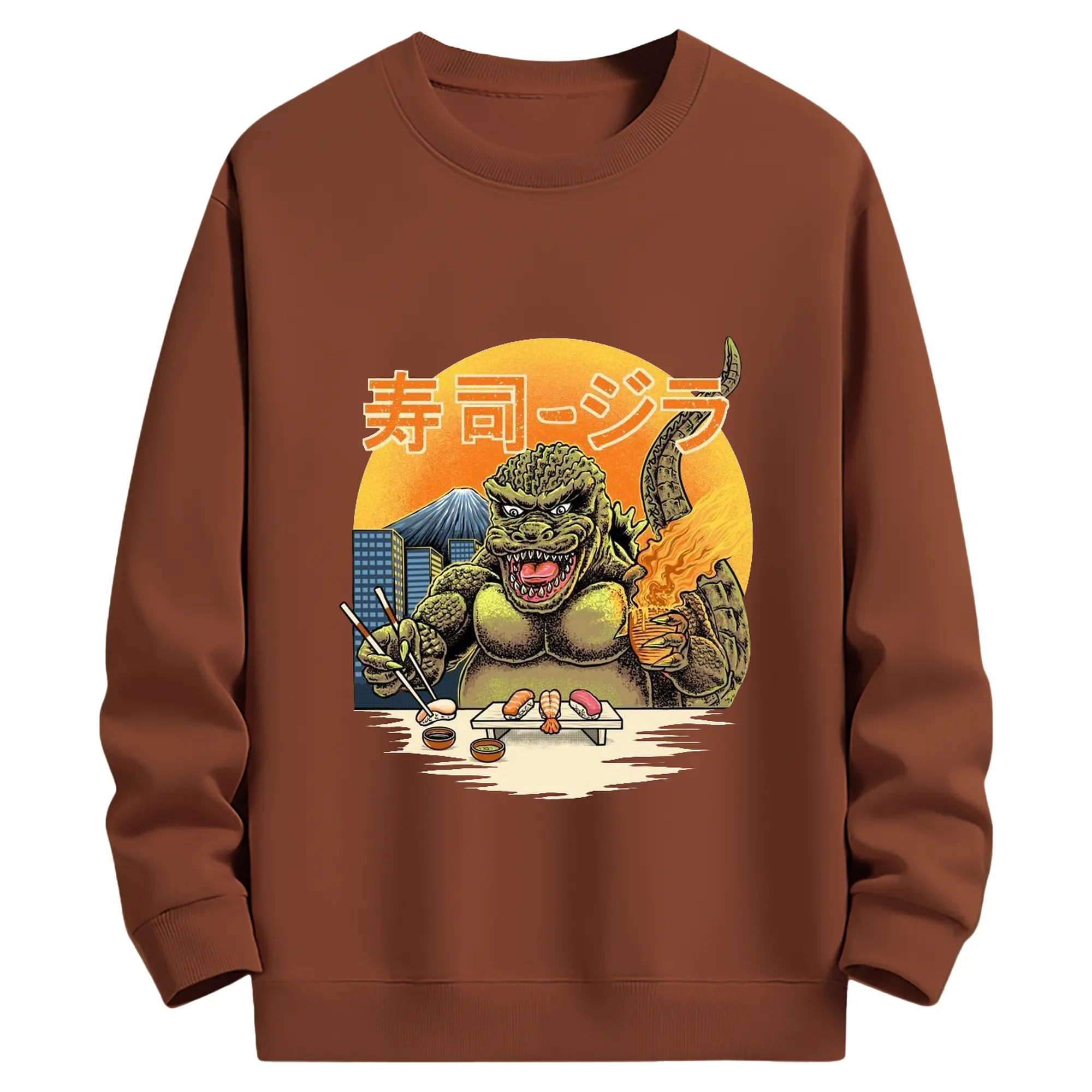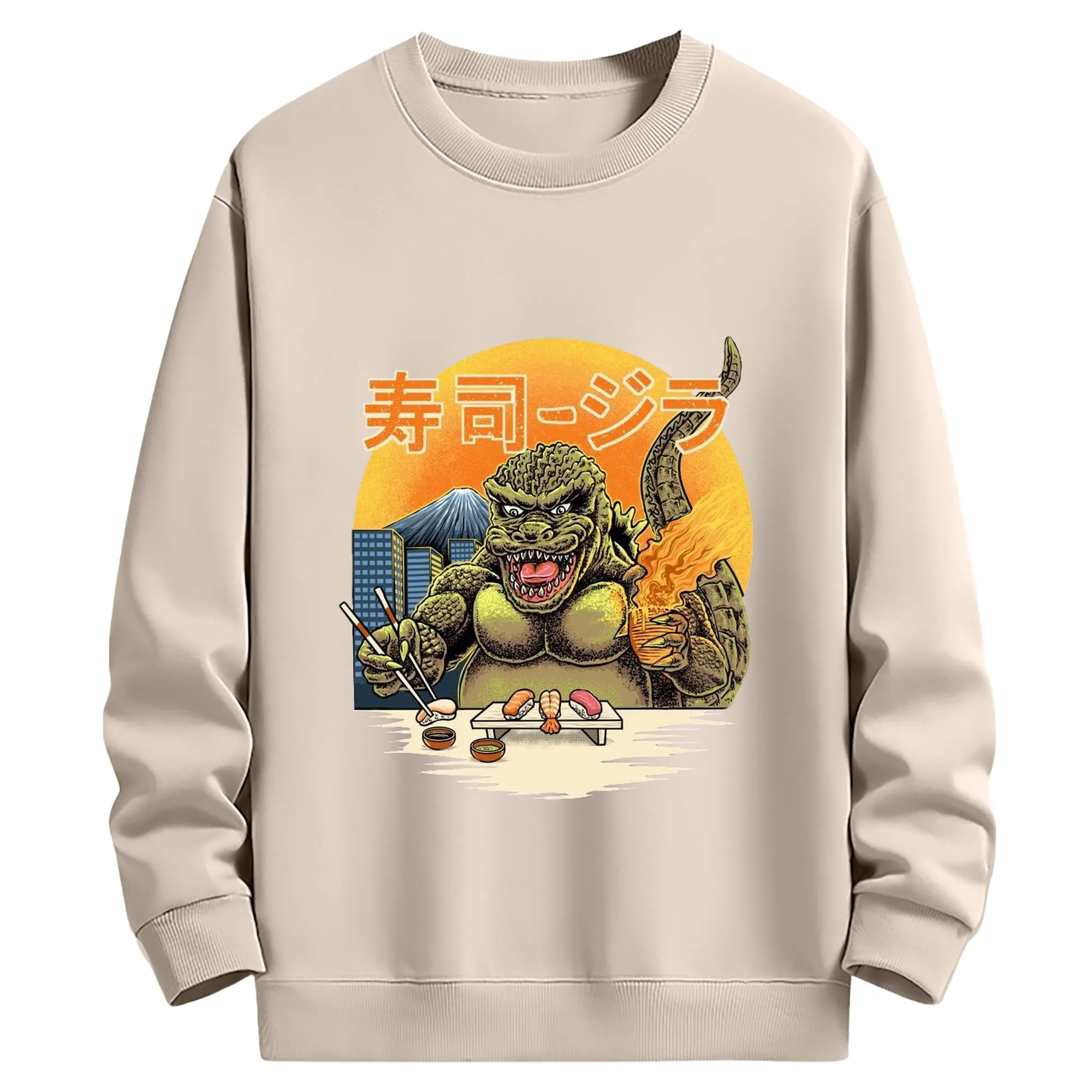 ゴジラの食事タイム - 高品質 クルーネック スウェット ・ コットン59% ポリエステル41% ・ ユニセックス 長袖 トレーナー ・ カジュアル デイリー スポーツ 散歩用
