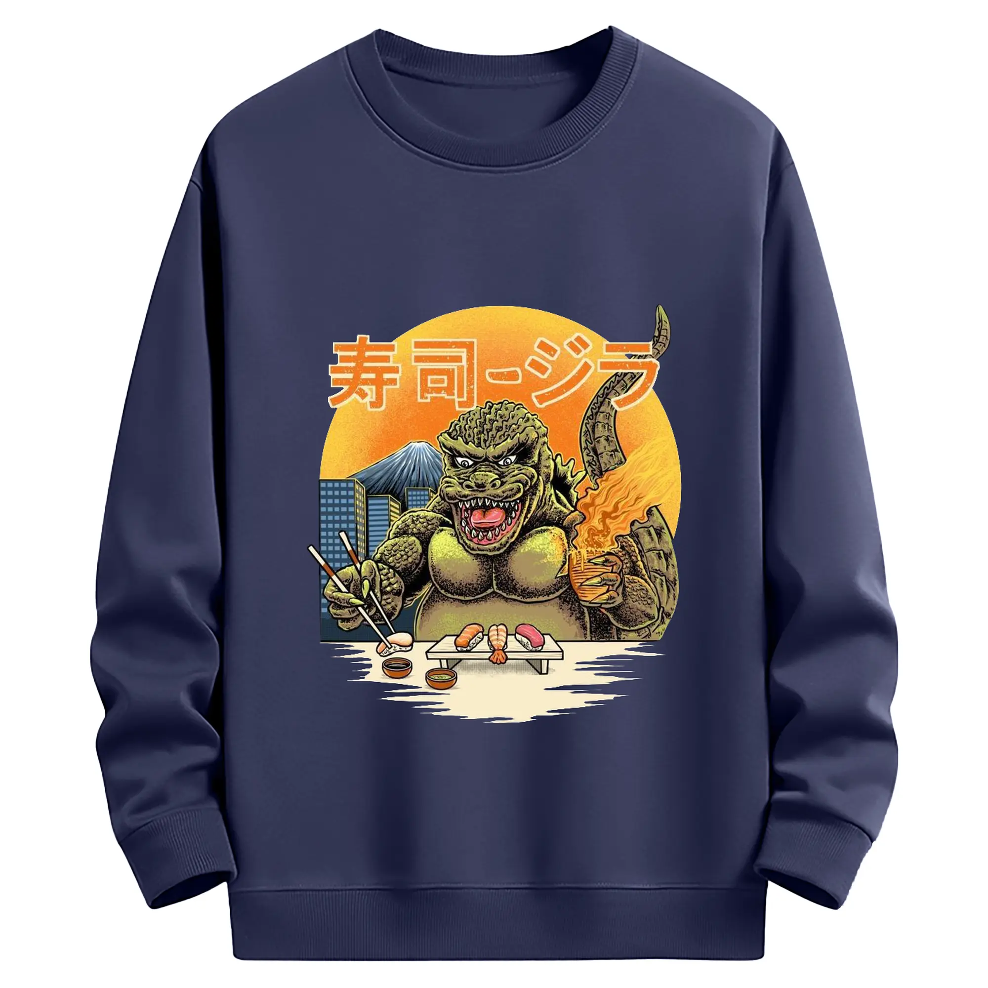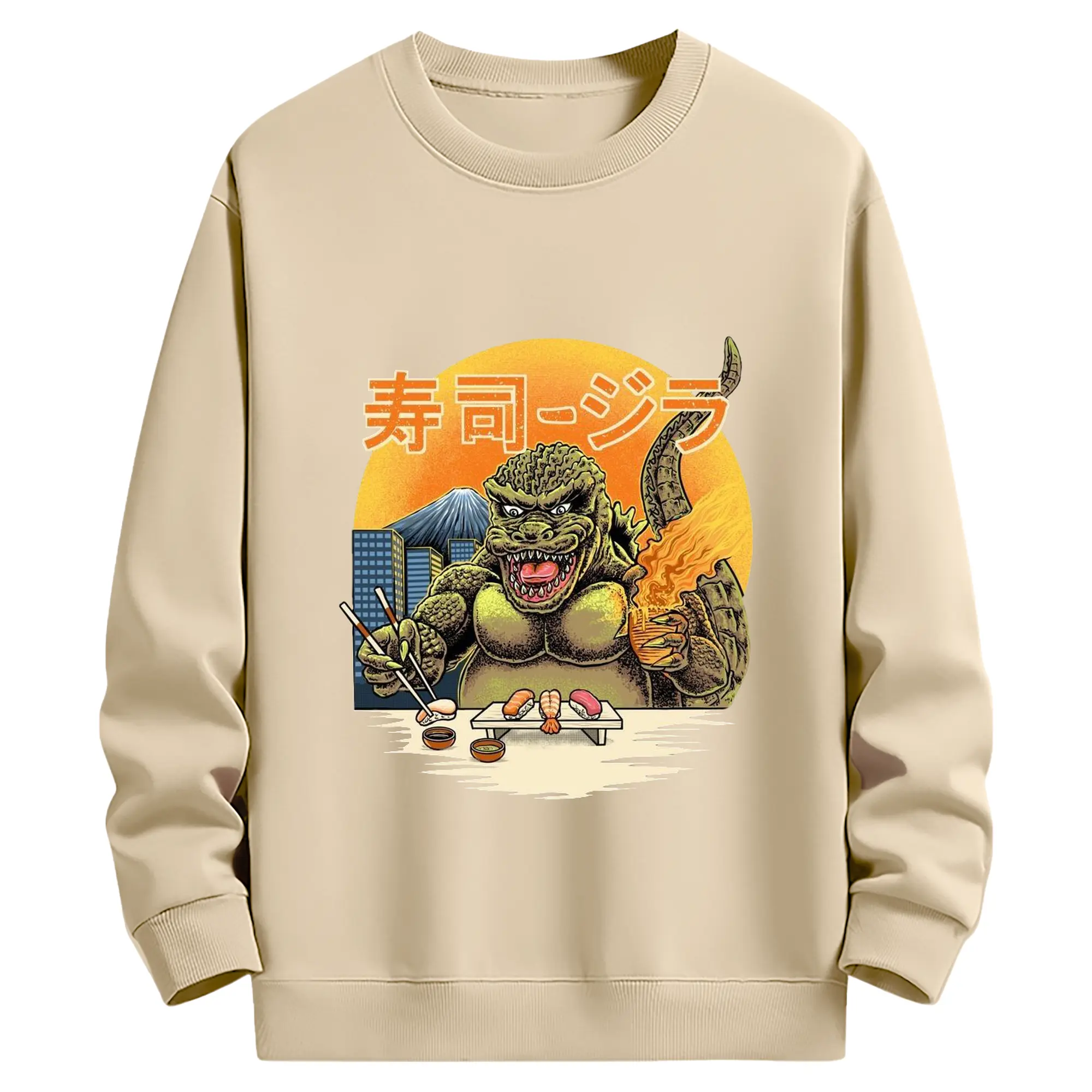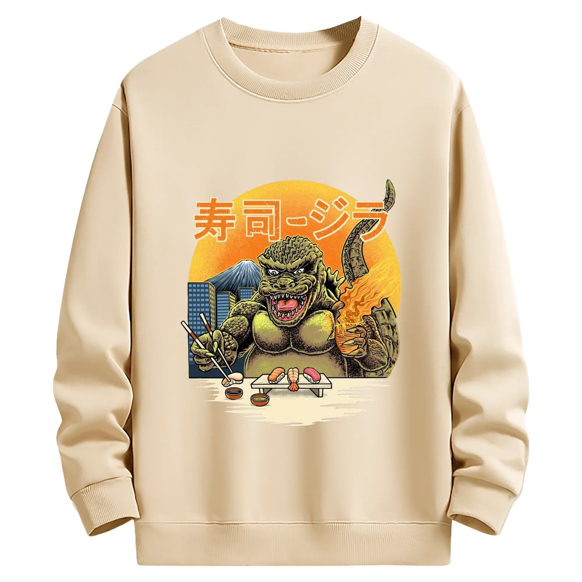 ゴジラの食事タイム - 高品質 クルーネック スウェット ・ コットン59% ポリエステル41% ・ ユニセックス 長袖 トレーナー ・ カジュアル デイリー スポーツ 散歩用