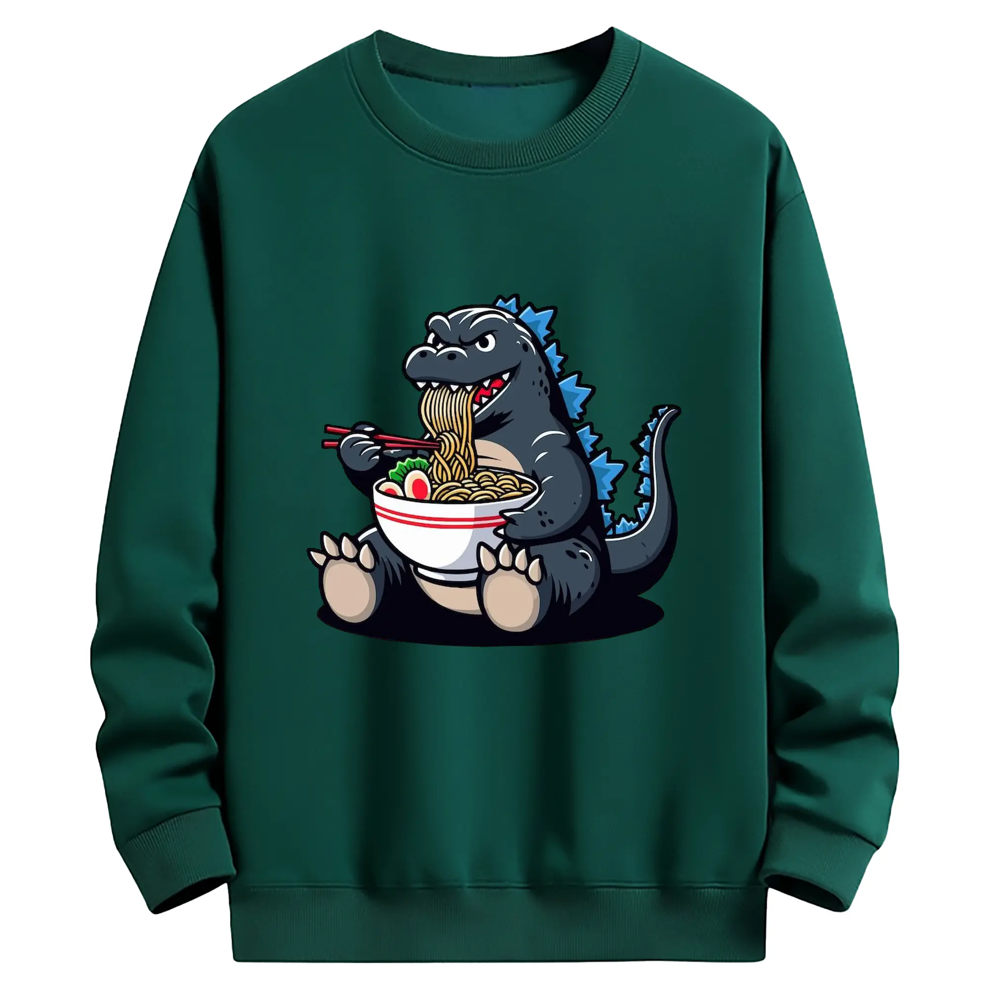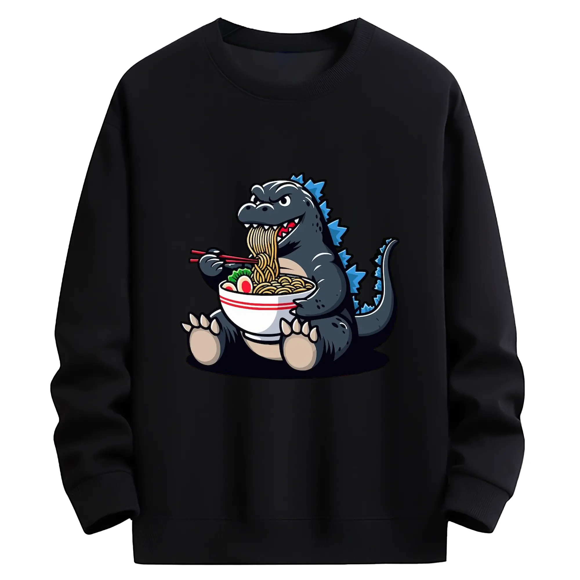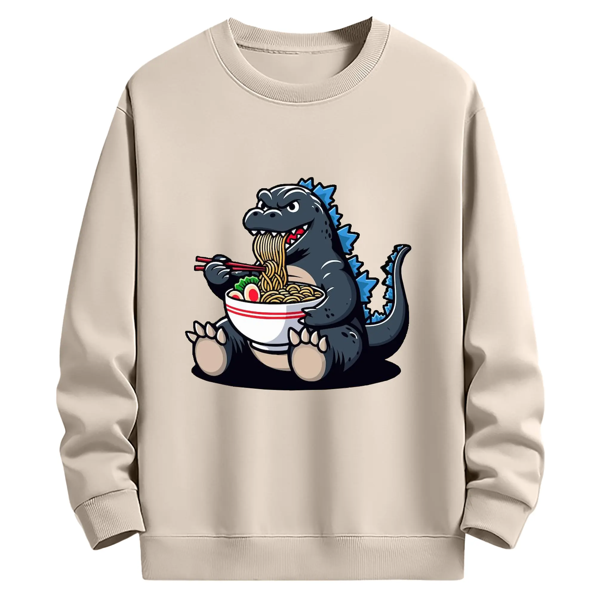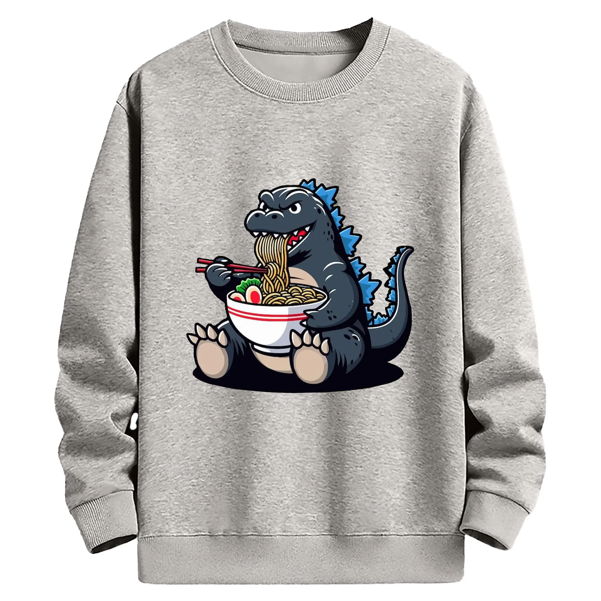 ゴジラの食事タイム - 高品質 クルーネック スウェット ・ コットン59% ポリエステル41% ・ ユニセックス 長袖 トレーナー ・ カジュアル デイリー スポーツ 散歩用