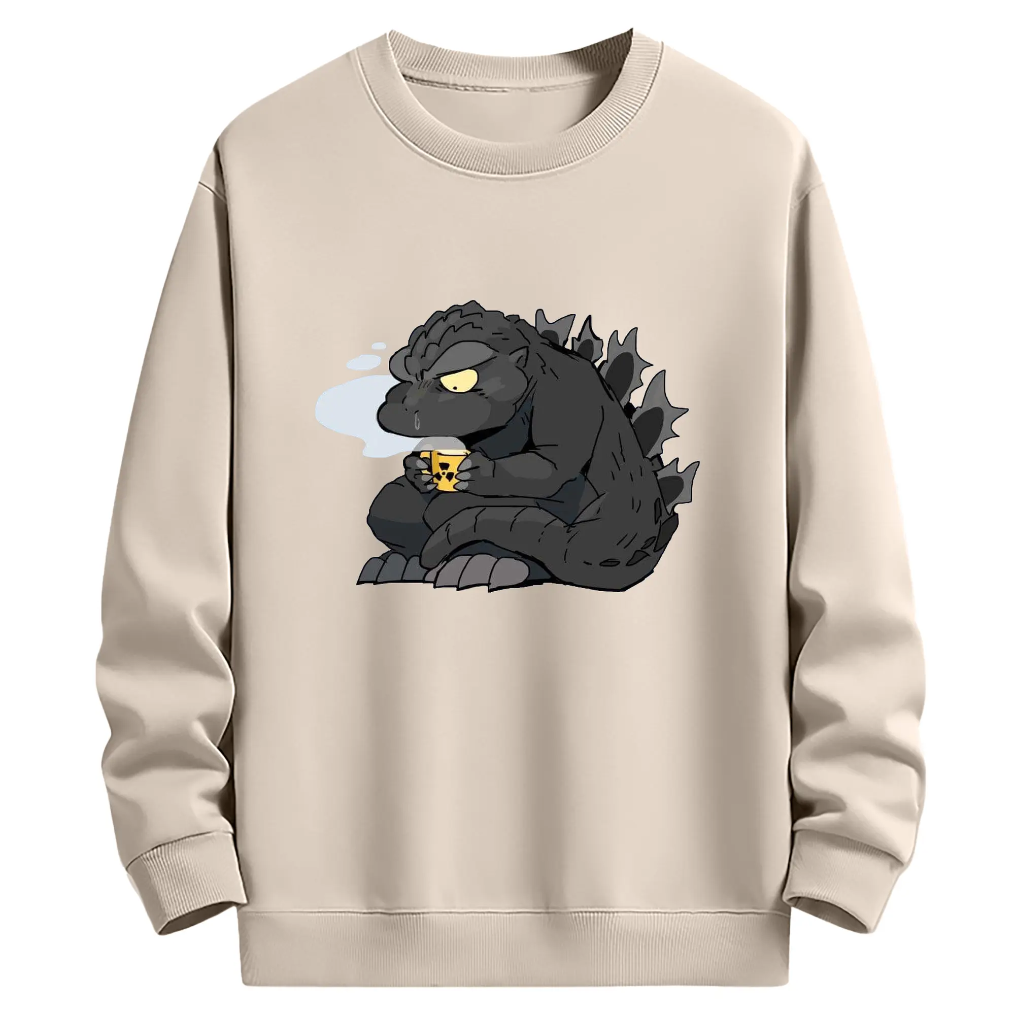 ゴジラの食事タイム - 高品質 クルーネック スウェット ・ コットン59% ポリエステル41% ・ ユニセックス 長袖 トレーナー ・ カジュアル デイリー スポーツ 散歩用