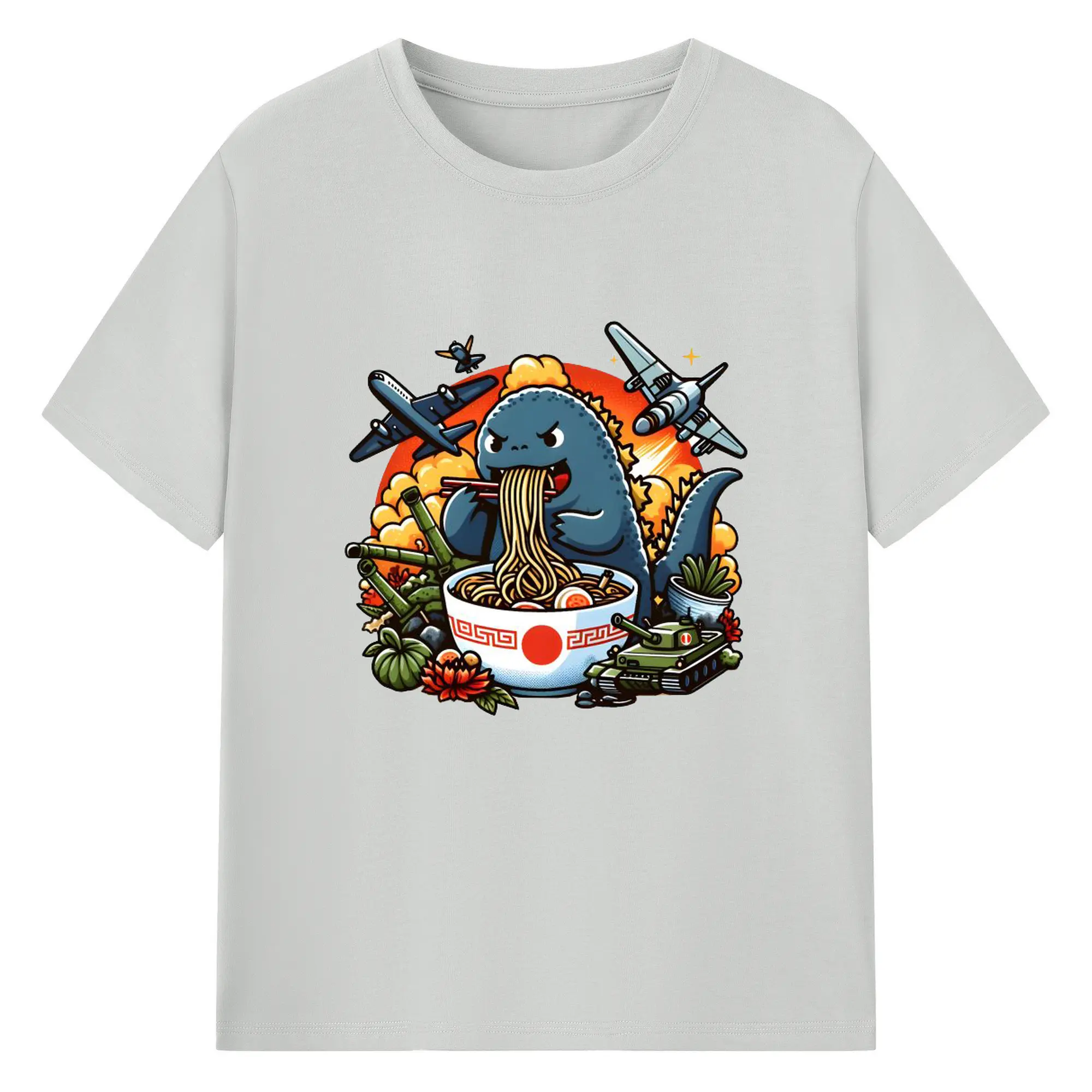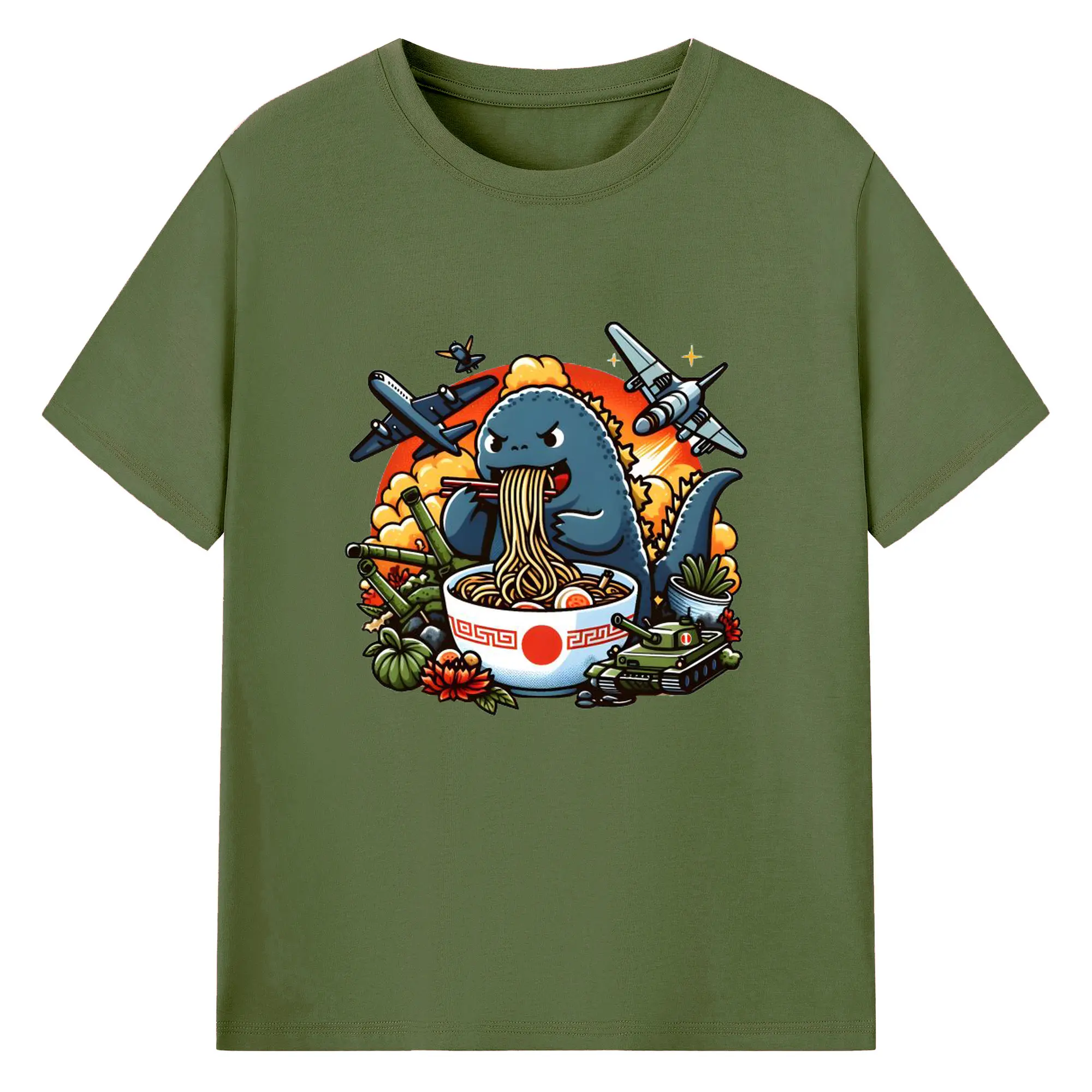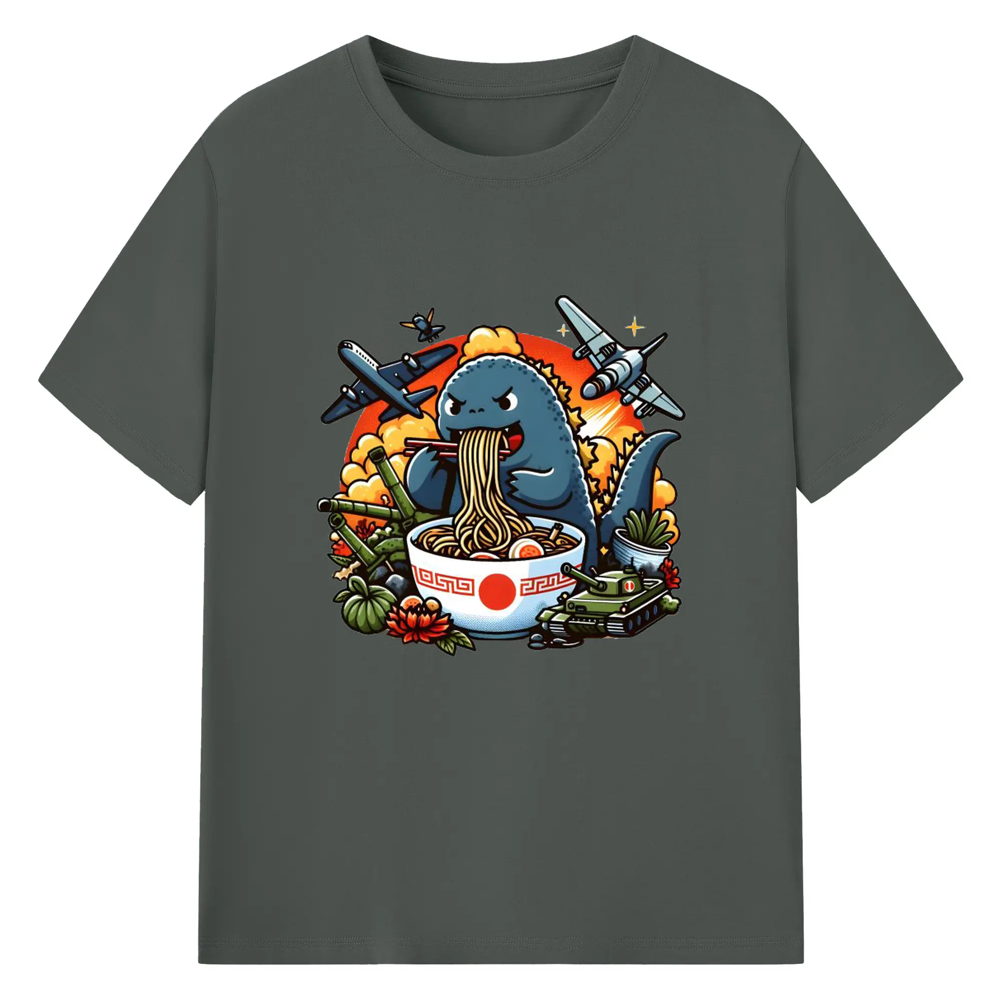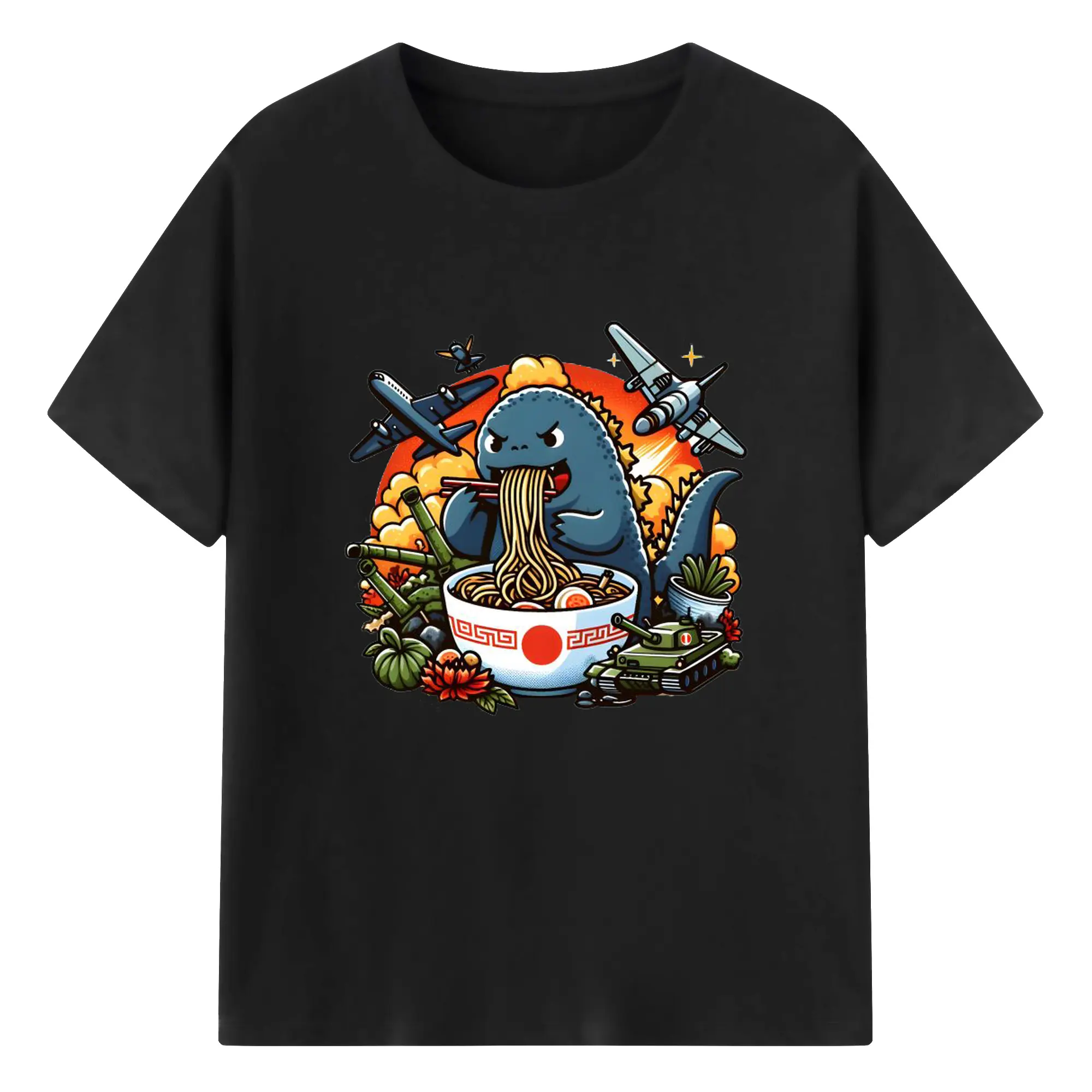 ゴジラの食事タイム - 綿100% 半袖Tシャツ ・ フロントプリント ・ 快適 通気性 ・ 日常使い 散歩 スポーツ用