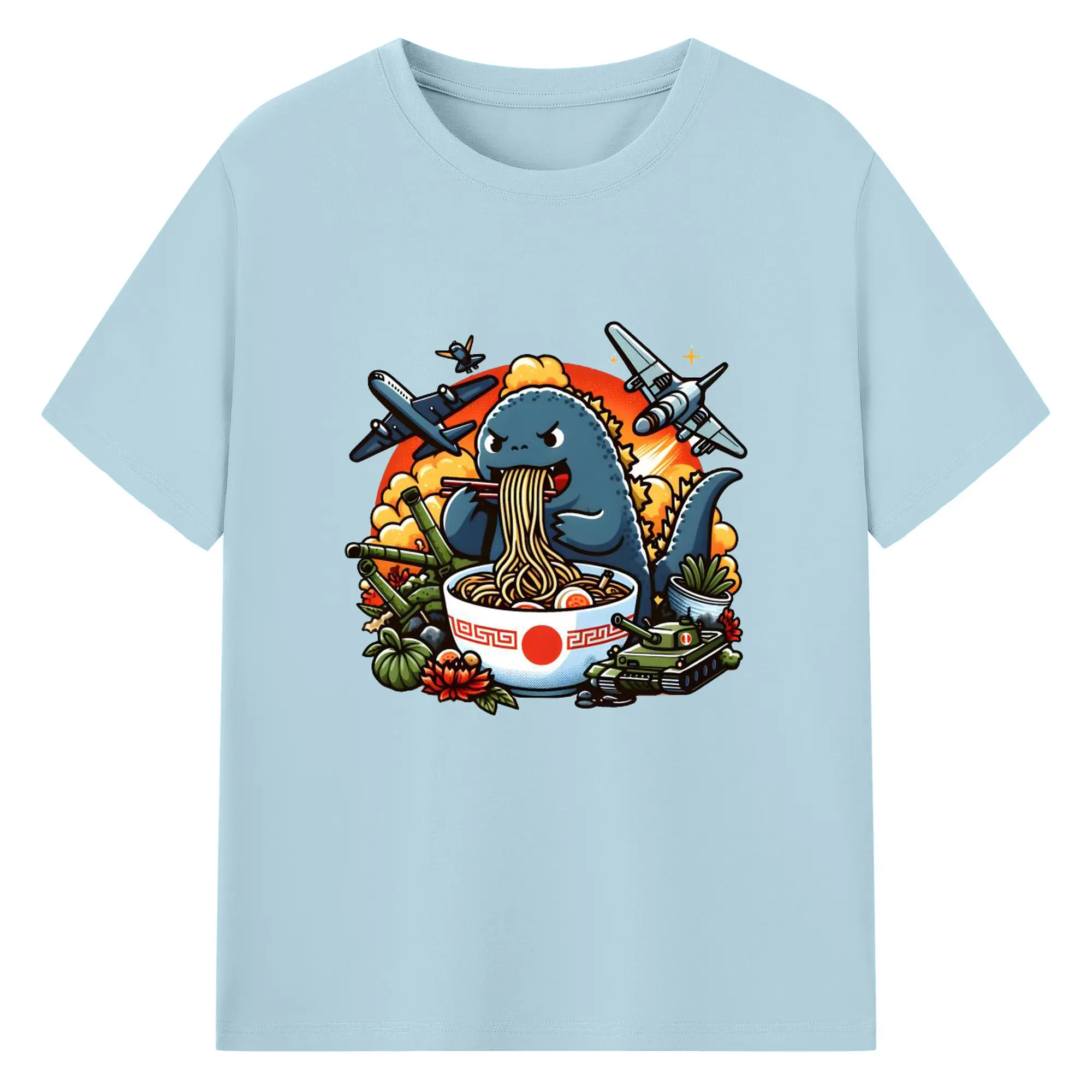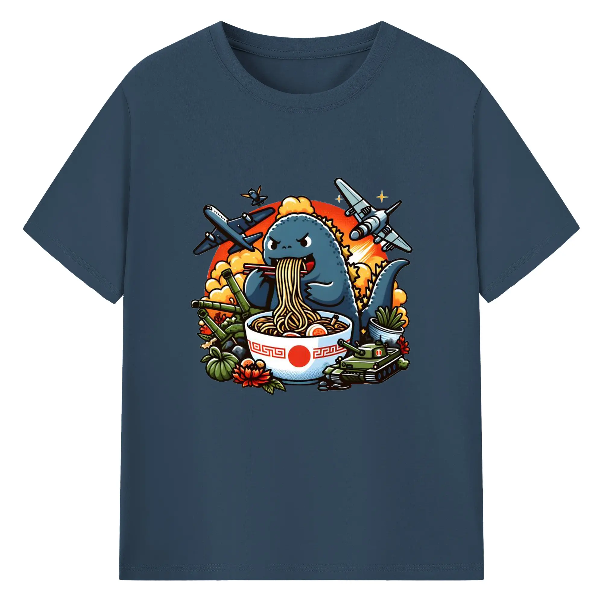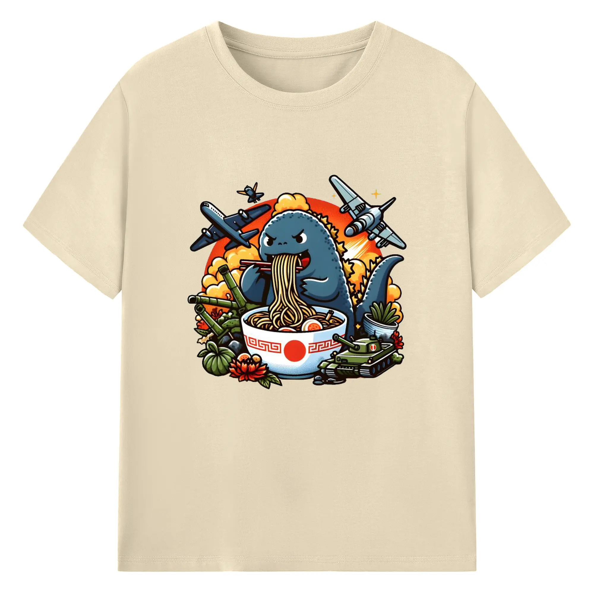 ゴジラの食事タイム - 綿100% 半袖Tシャツ ・ フロントプリント ・ 快適 通気性 ・ 日常使い 散歩 スポーツ用
