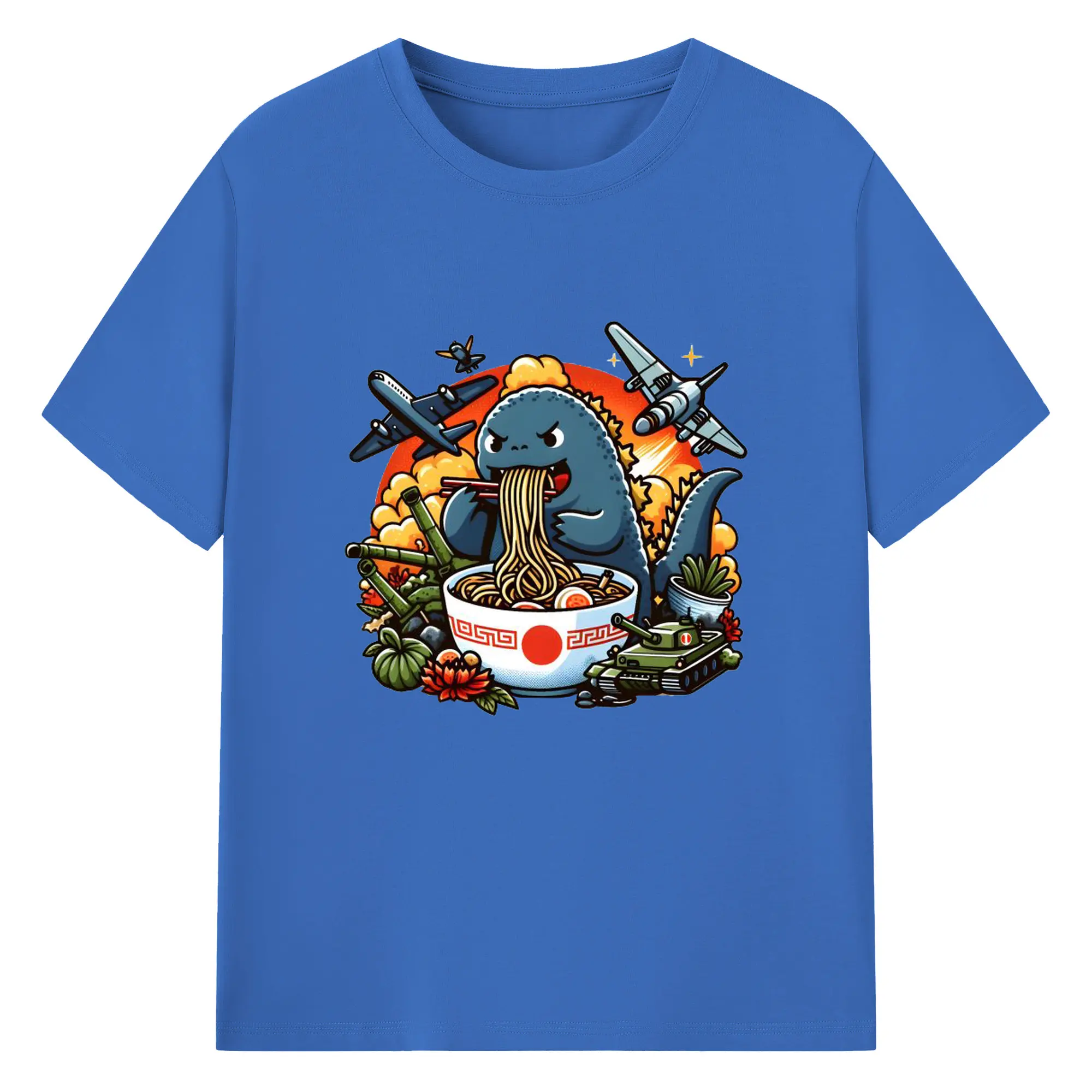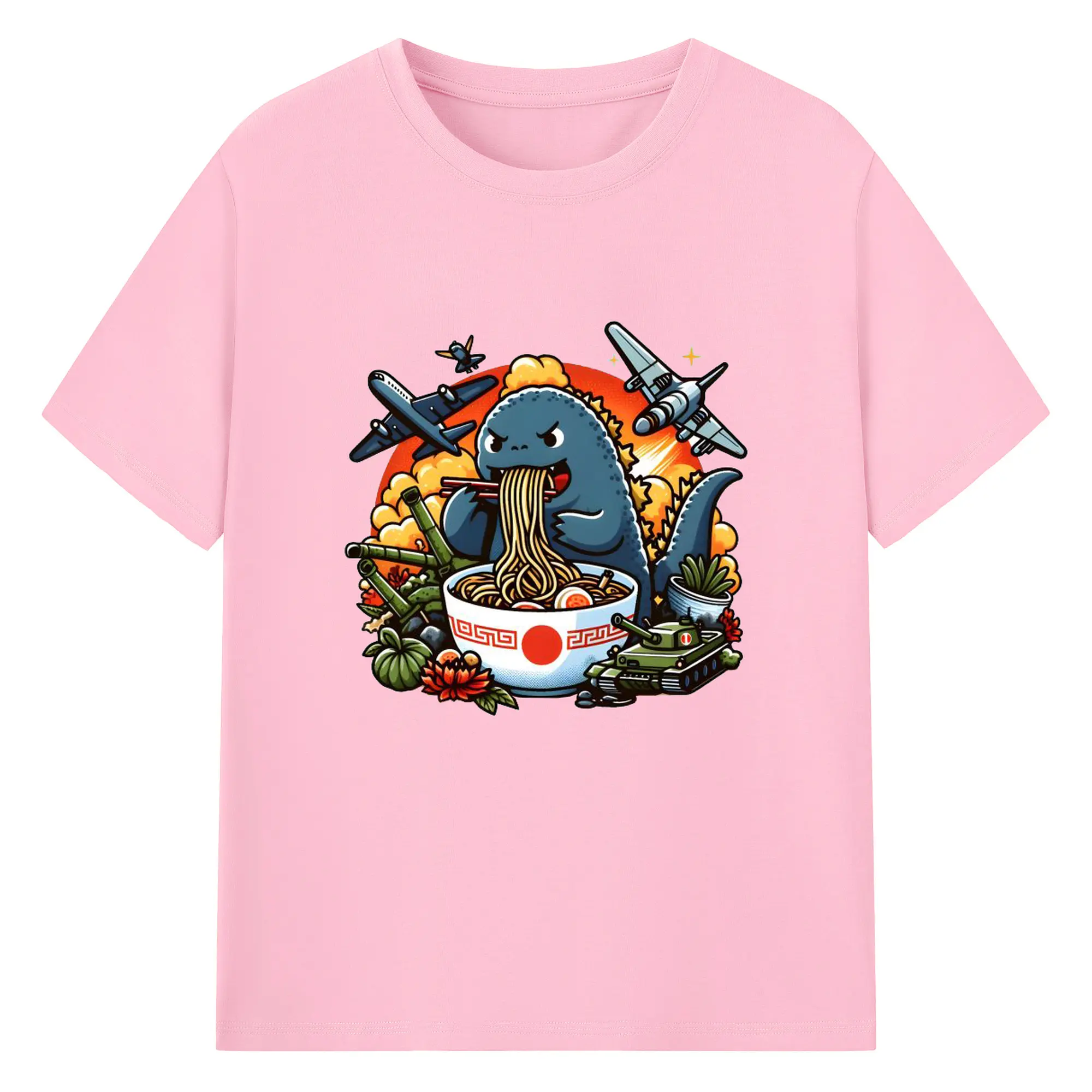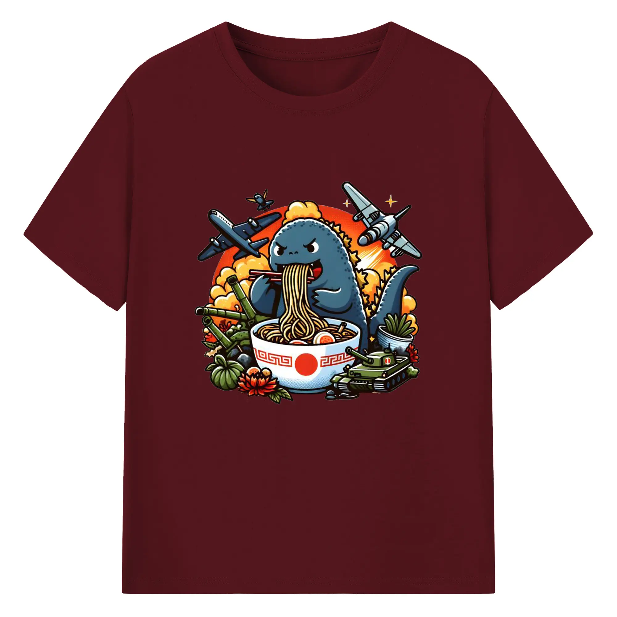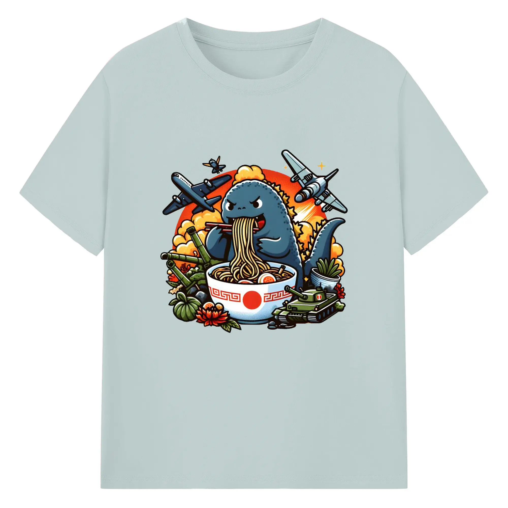 ゴジラの食事タイム - 綿100% 半袖Tシャツ ・ フロントプリント ・ 快適 通気性 ・ 日常使い 散歩 スポーツ用