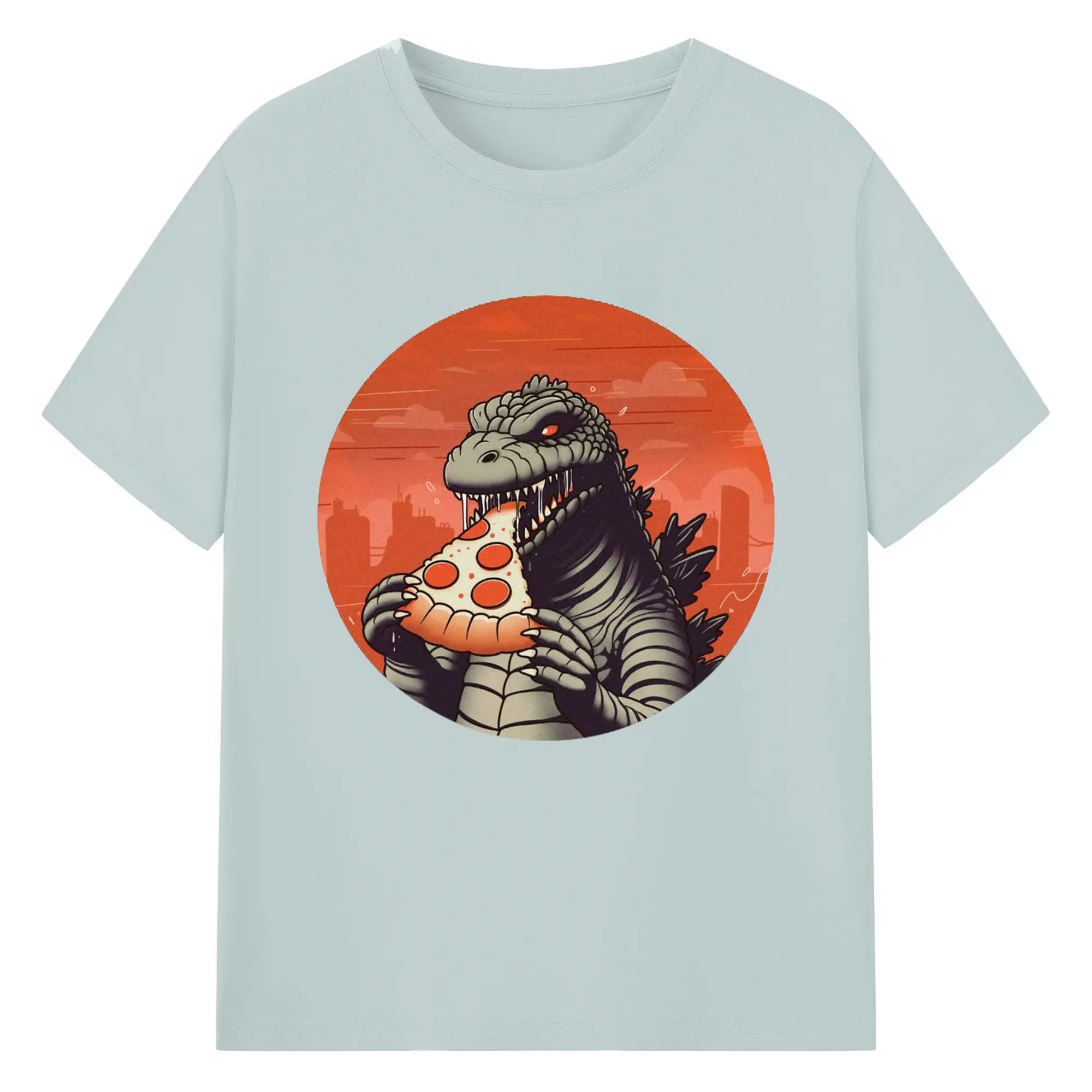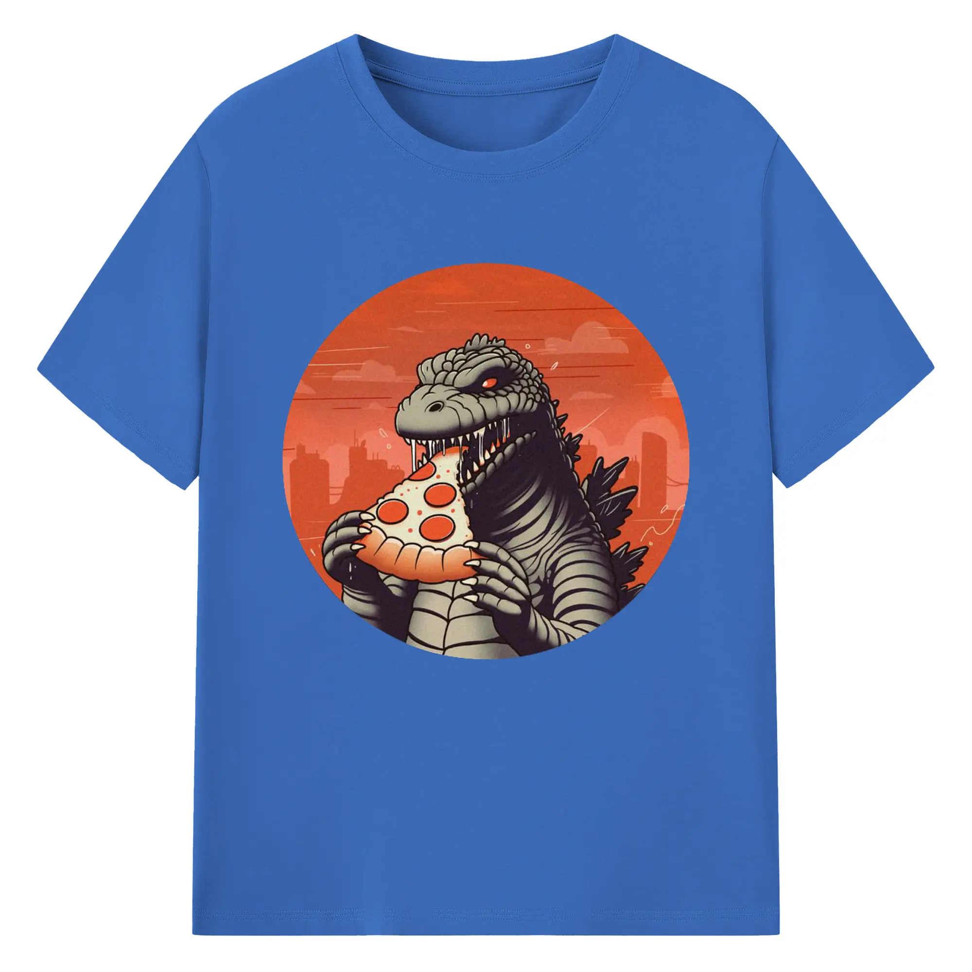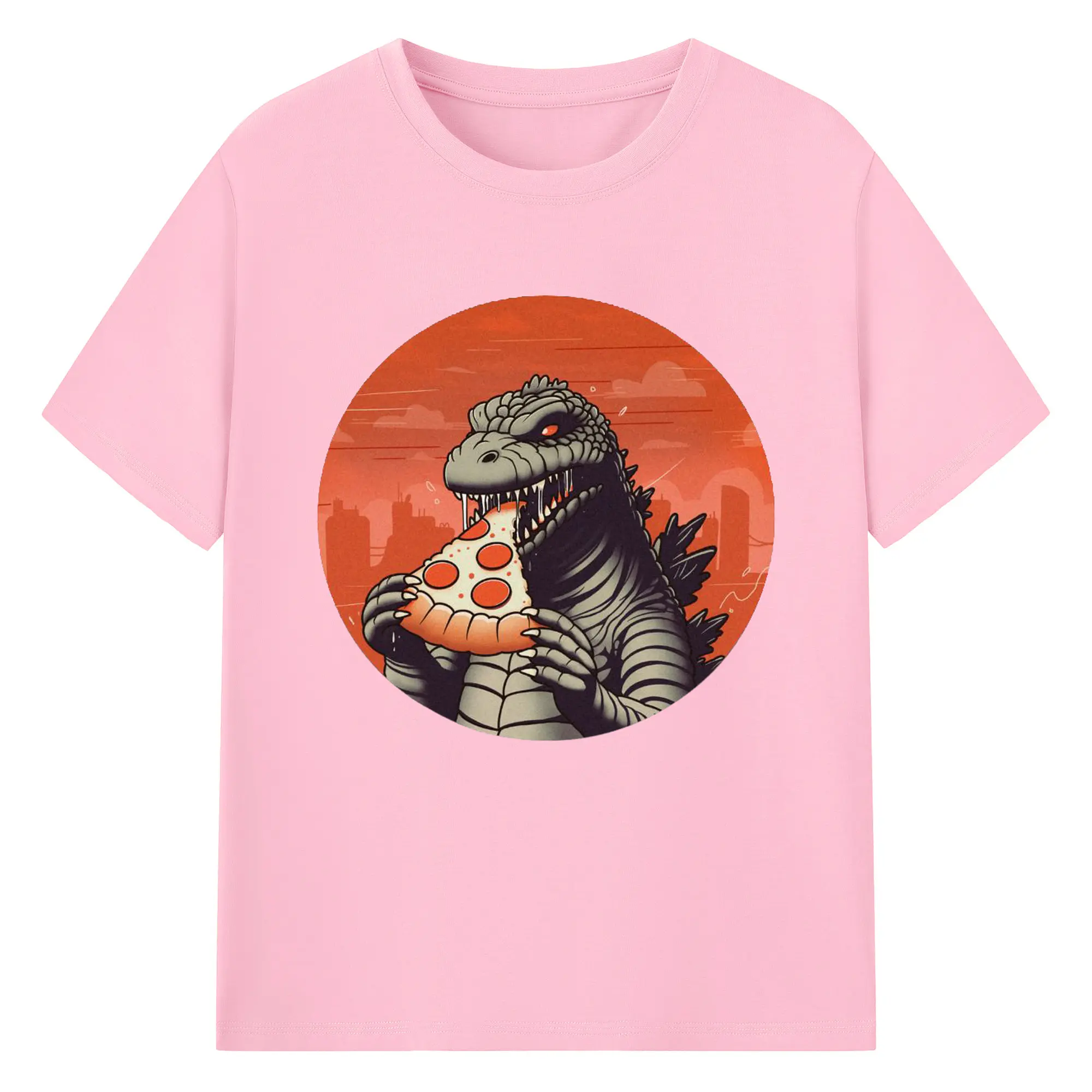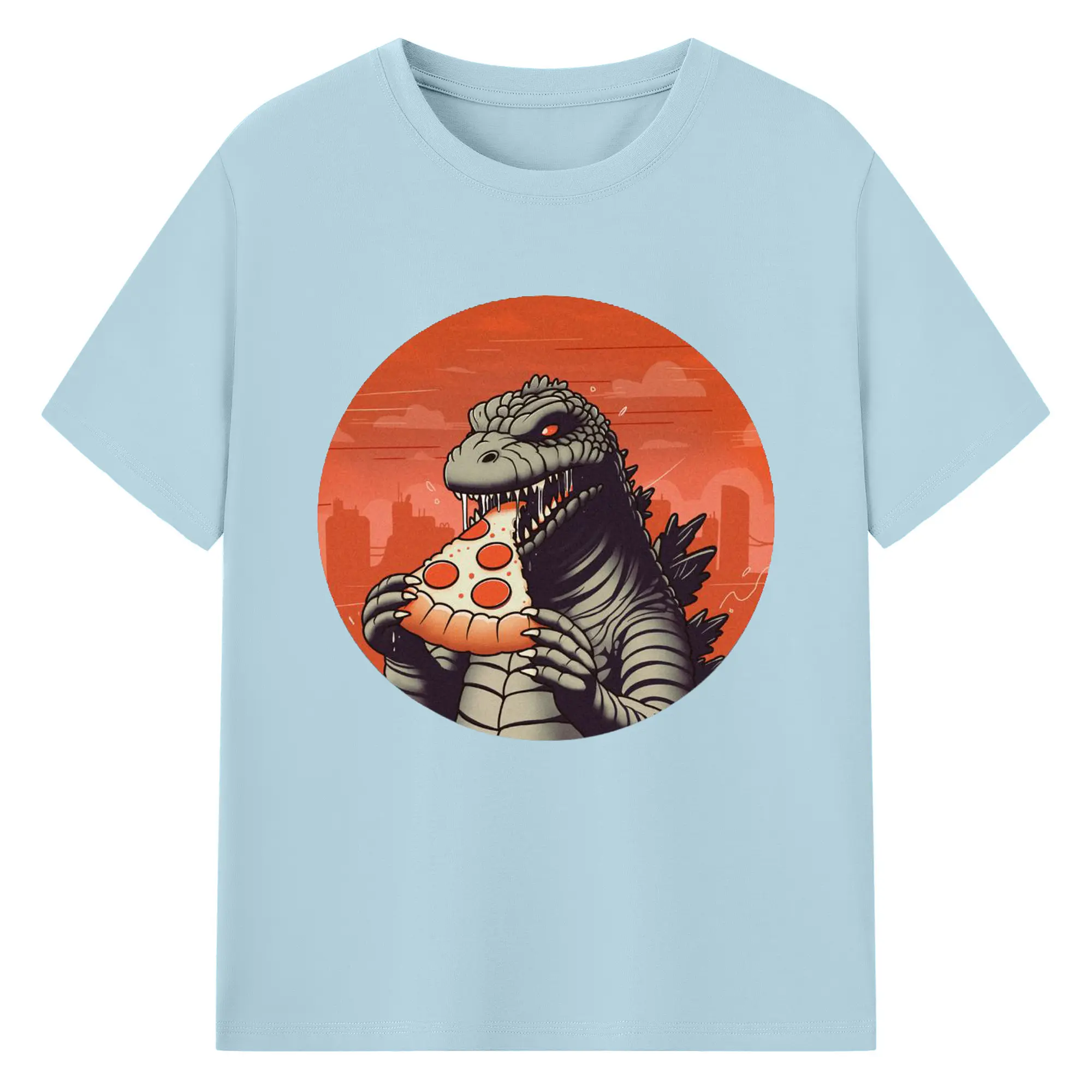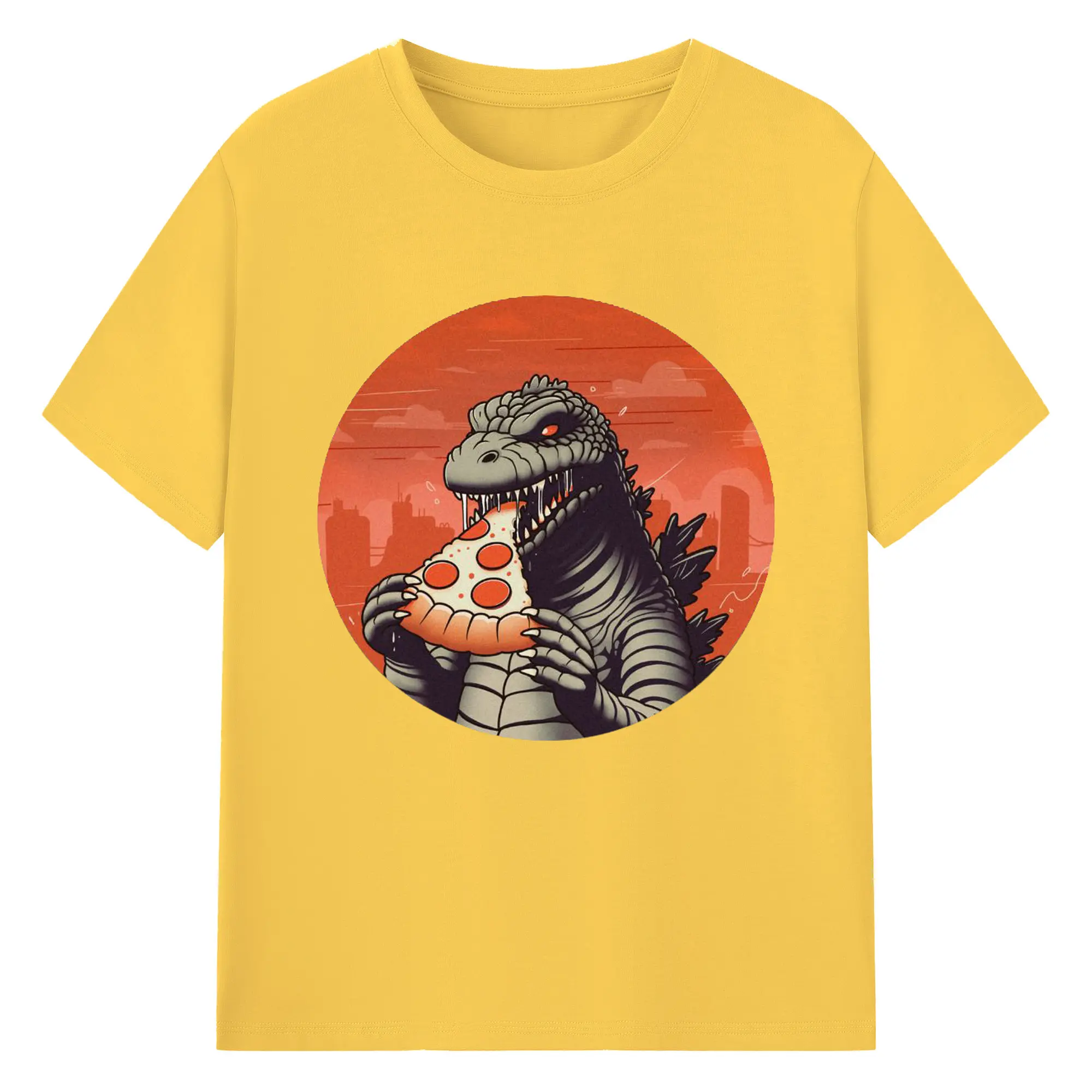 ゴジラの食事タイム - 綿100% 半袖Tシャツ ・ フロントプリント ・ 快適 通気性 ・ 日常使い 散歩 スポーツ用