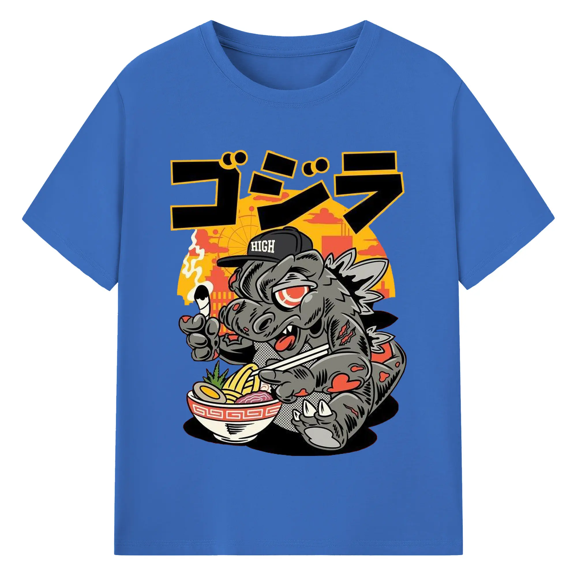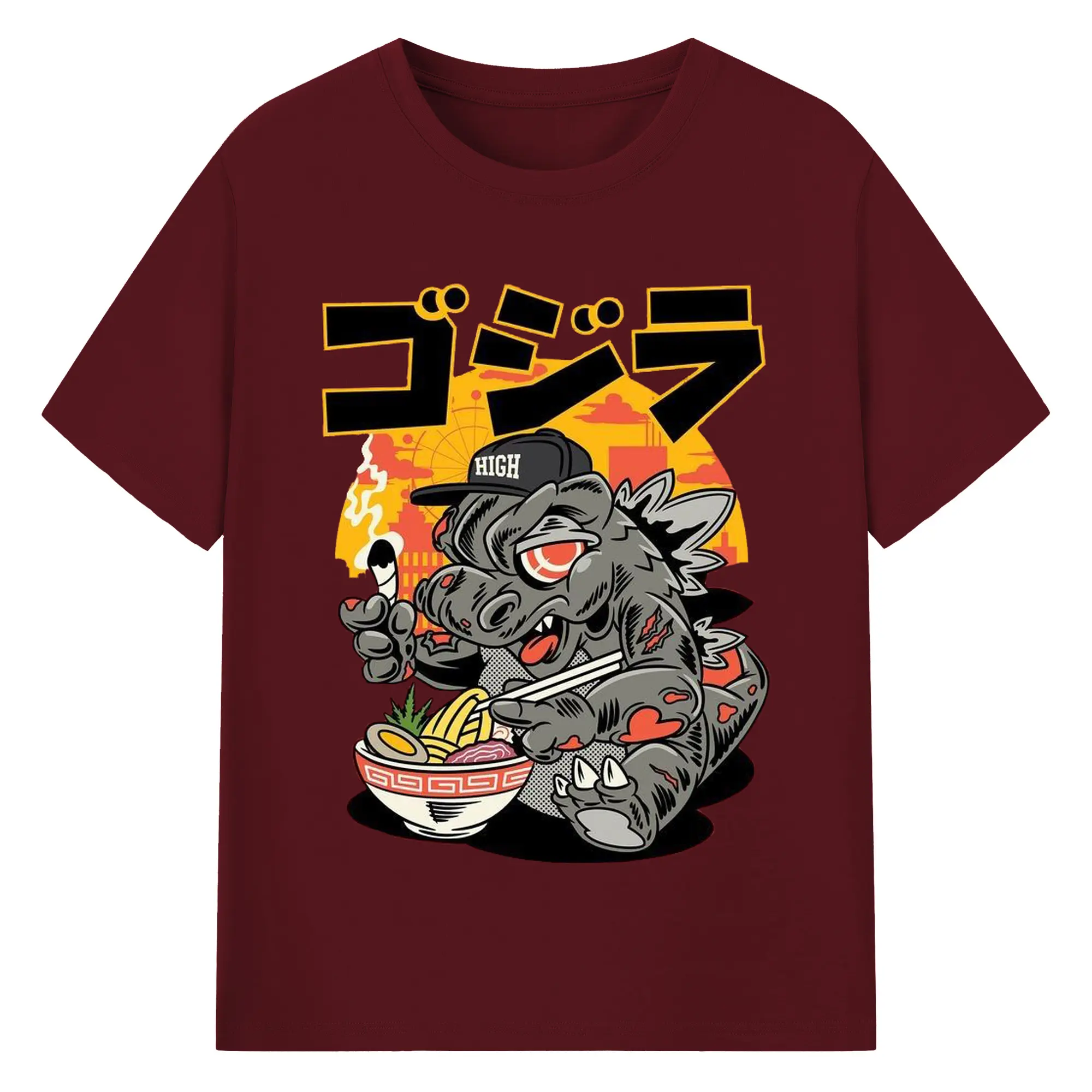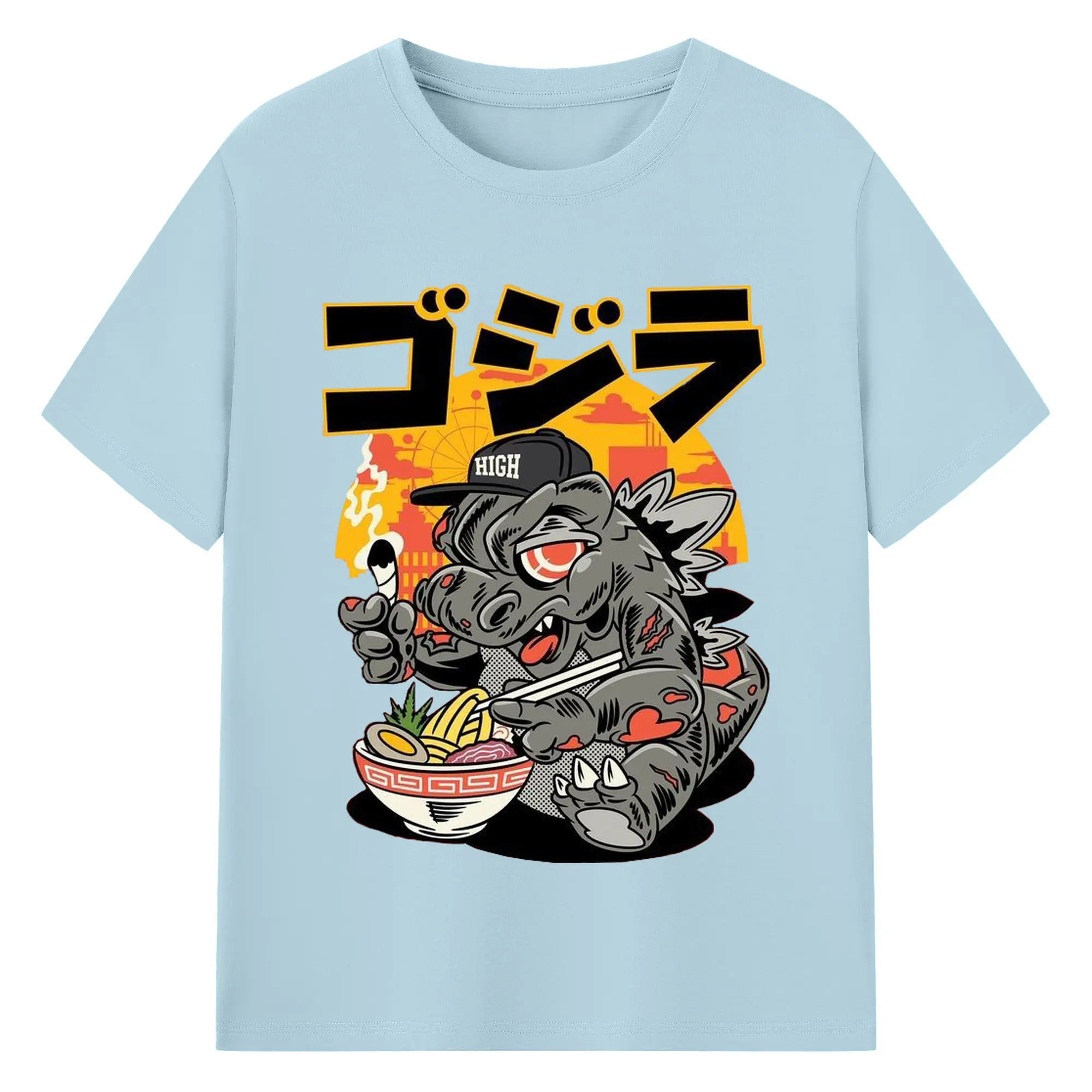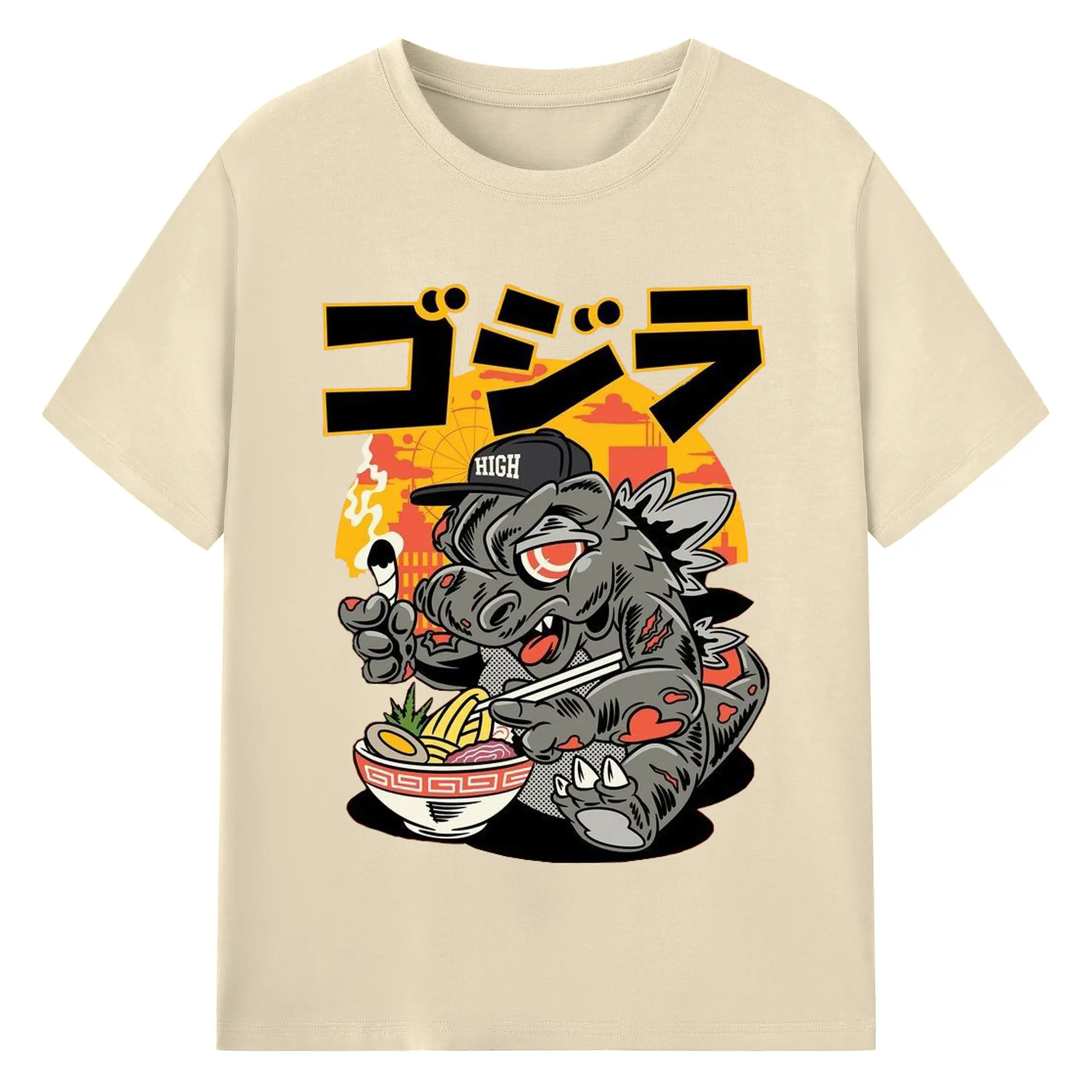 ゴジラの食事タイム - 綿100% 半袖Tシャツ ・ フロントプリント ・ 快適 通気性 ・ 日常使い 散歩 スポーツ用