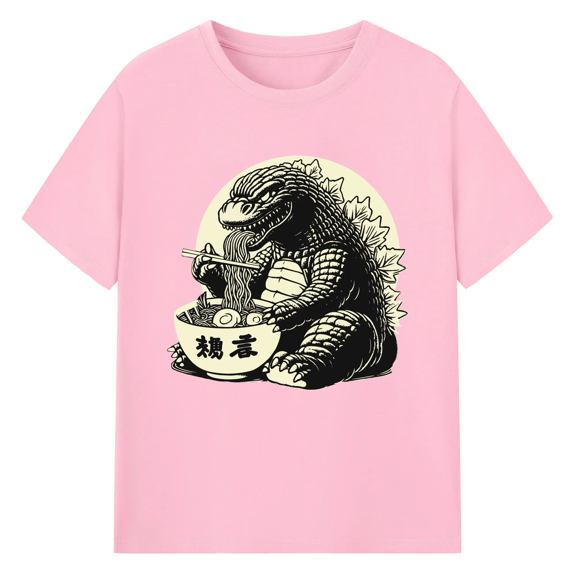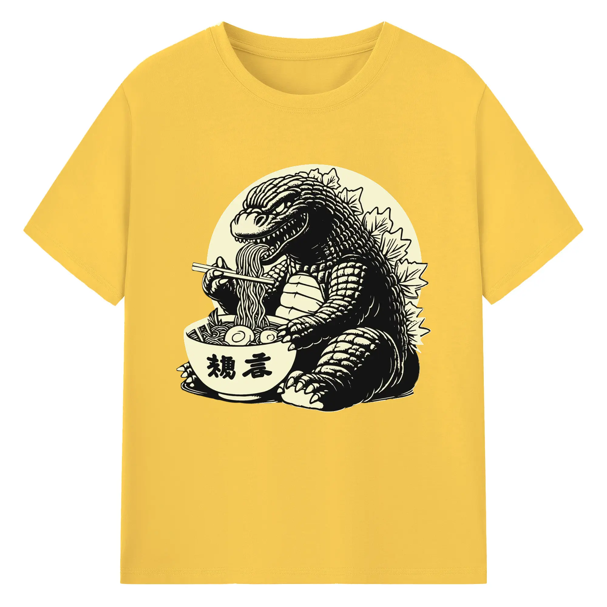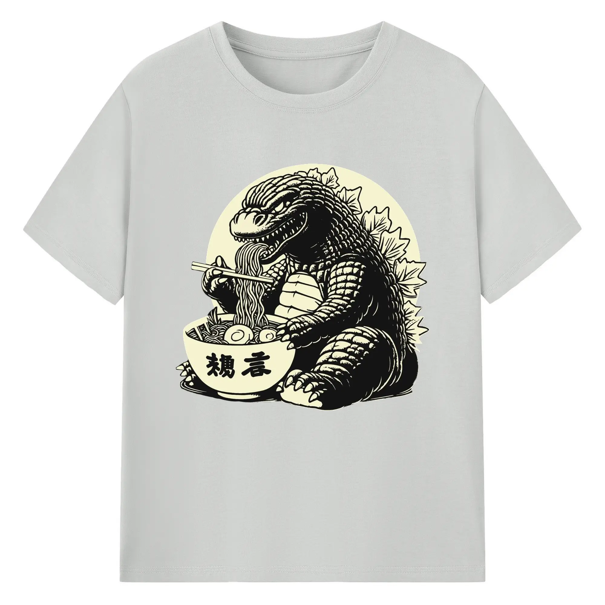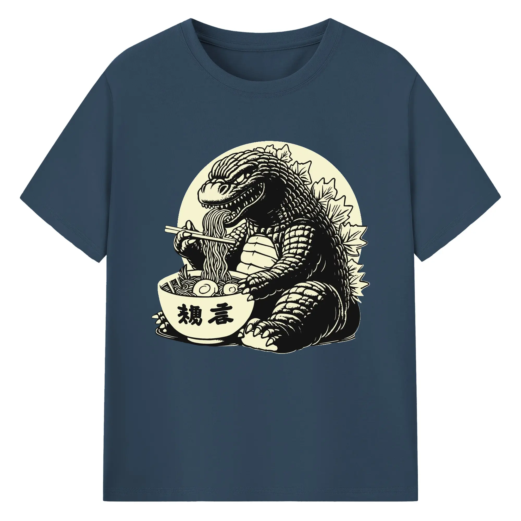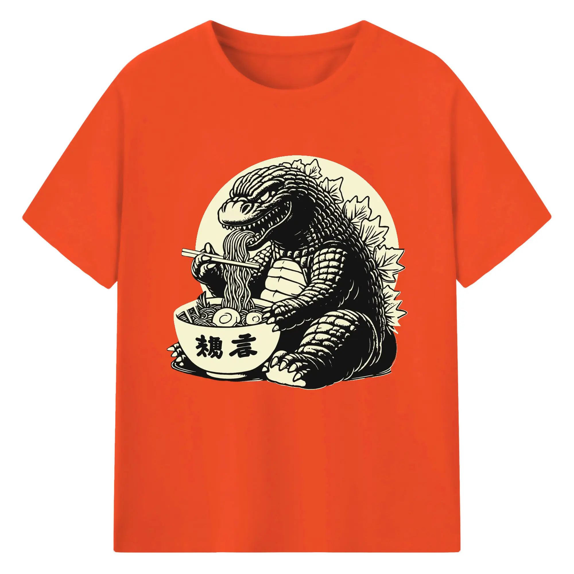 ゴジラの食事タイム - 綿100% 半袖Tシャツ ・ フロントプリント ・ 快適 通気性 ・ 日常使い 散歩 スポーツ用