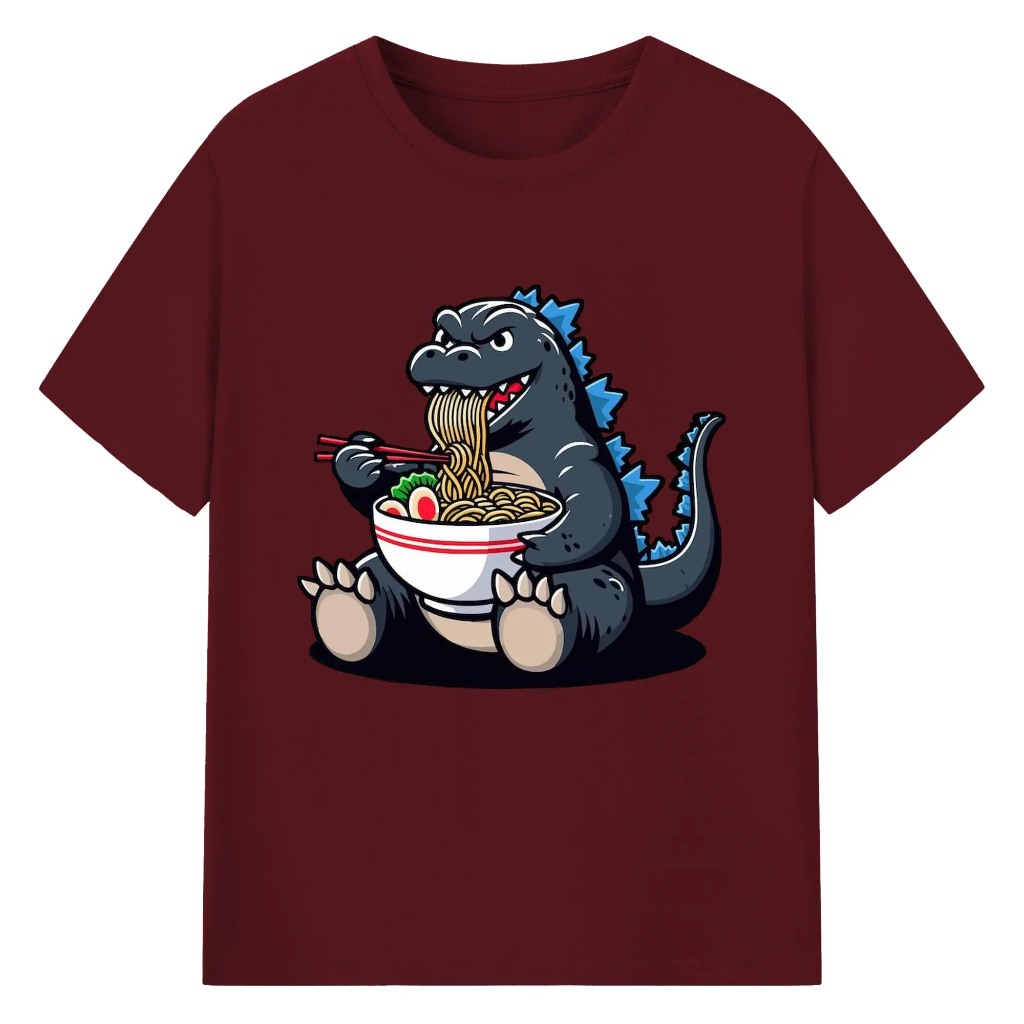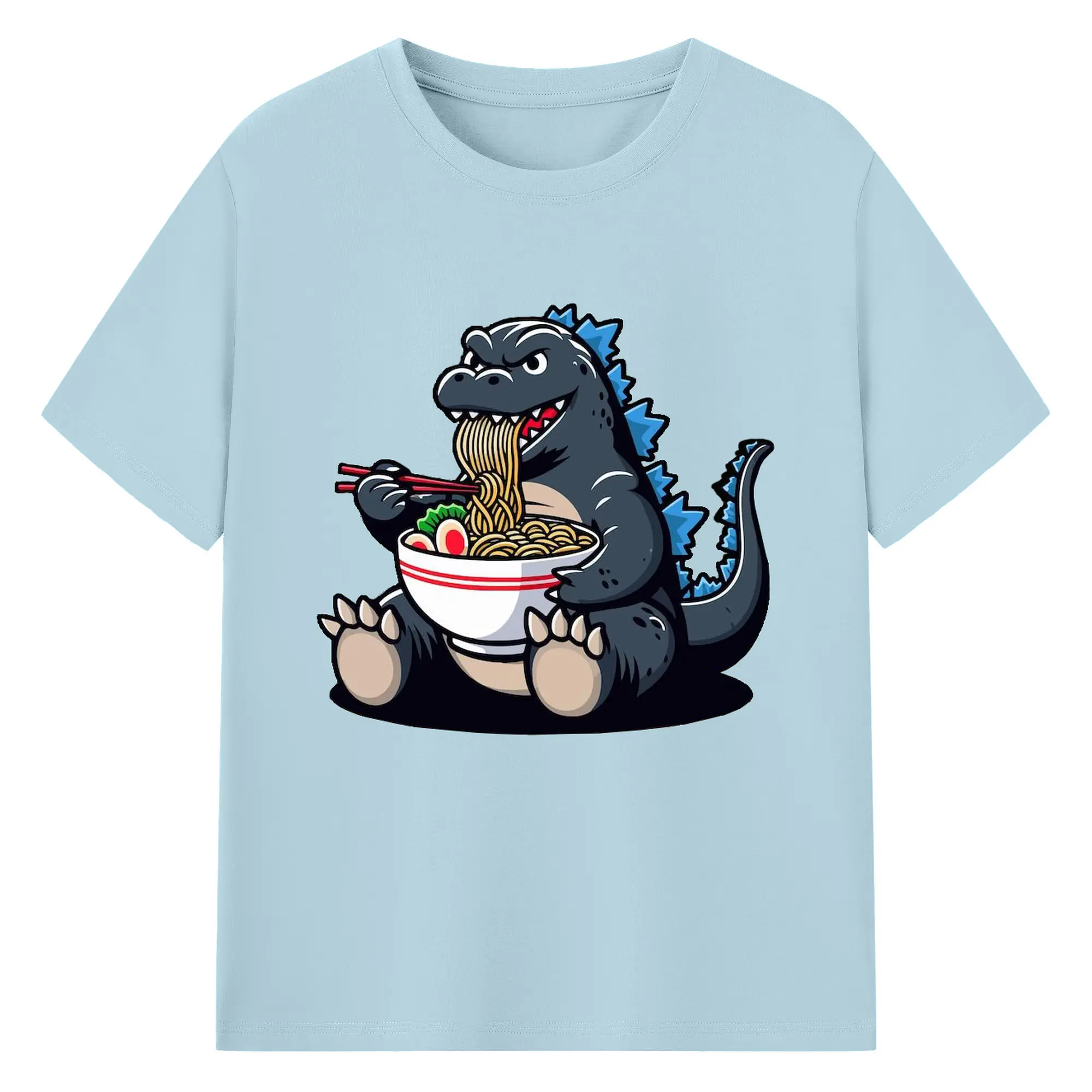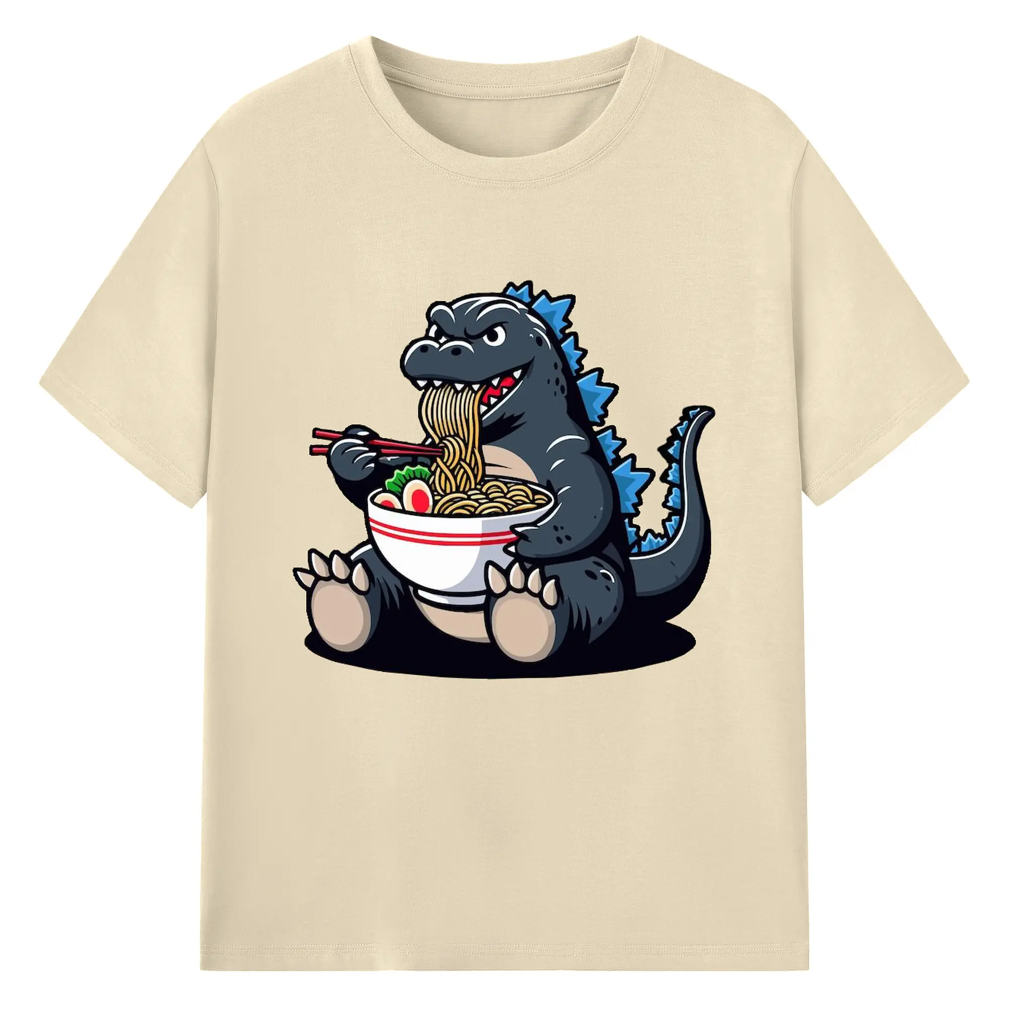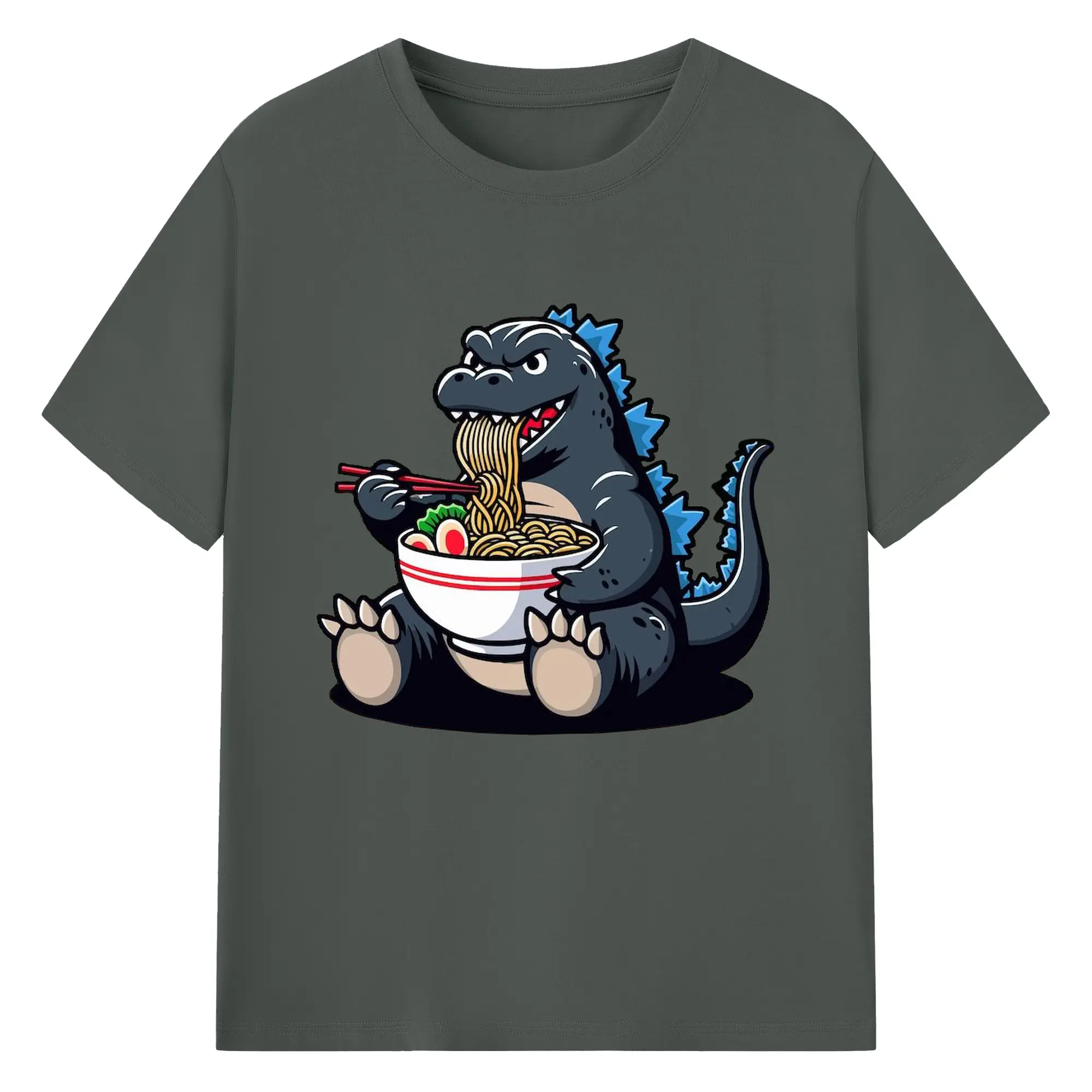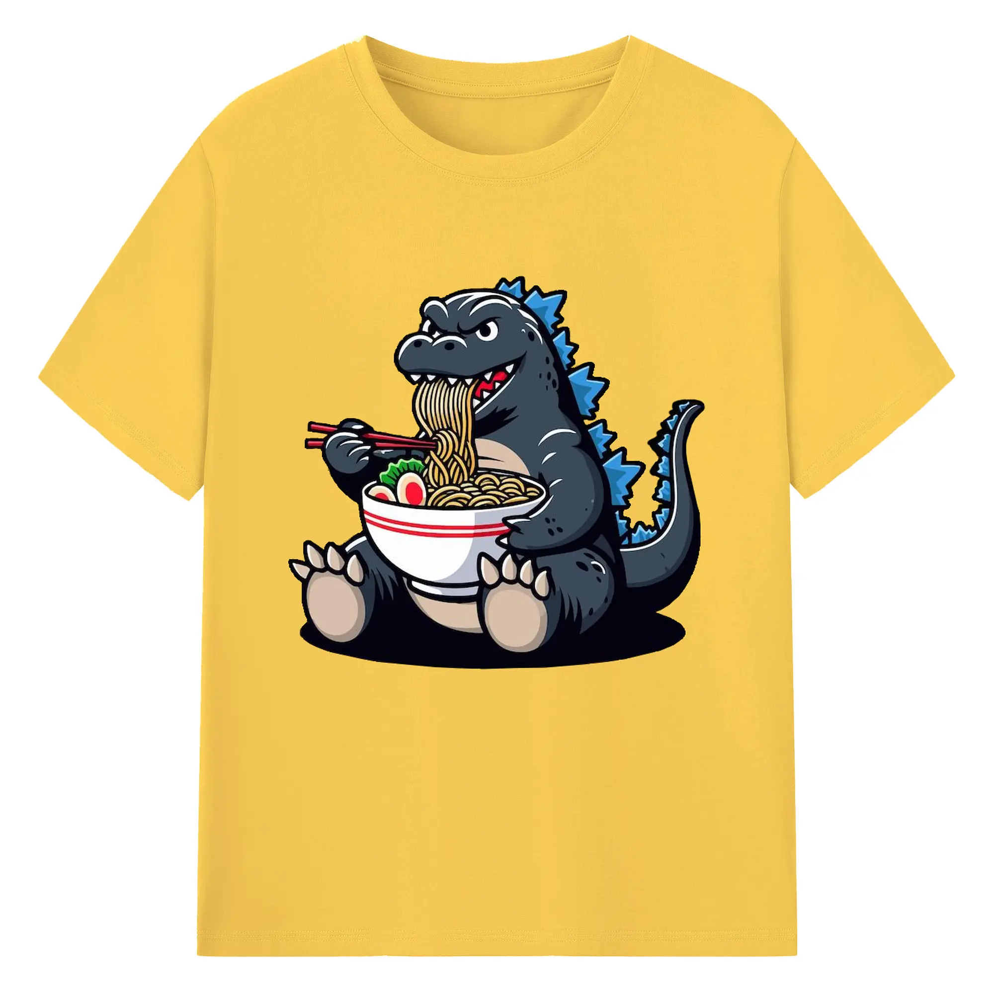 ゴジラの食事タイム - 綿100% 半袖Tシャツ ・ フロントプリント ・ 快適 通気性 ・ 日常使い 散歩 スポーツ用