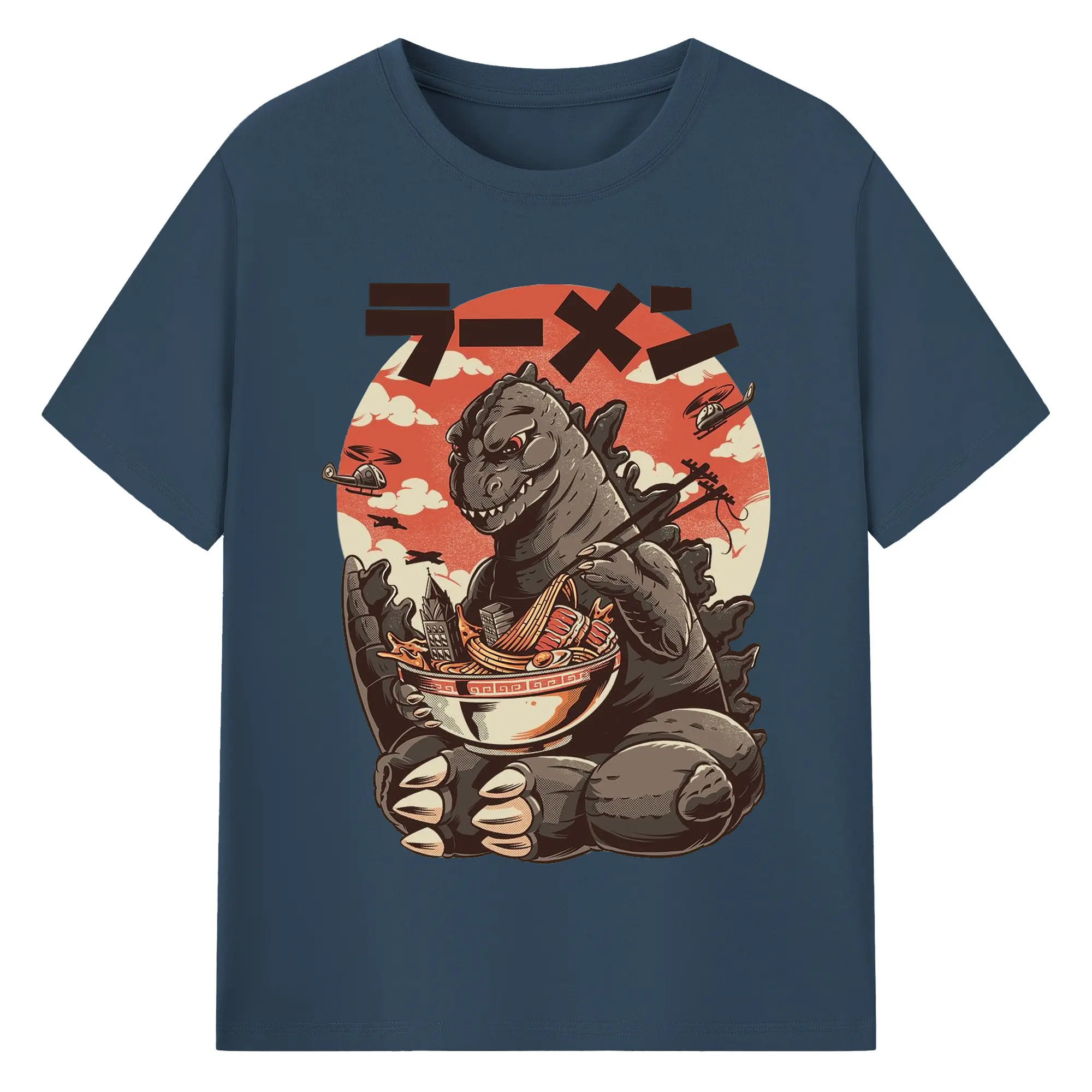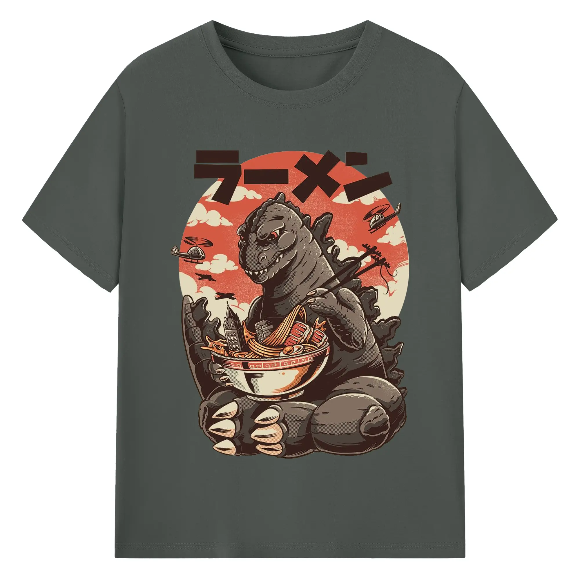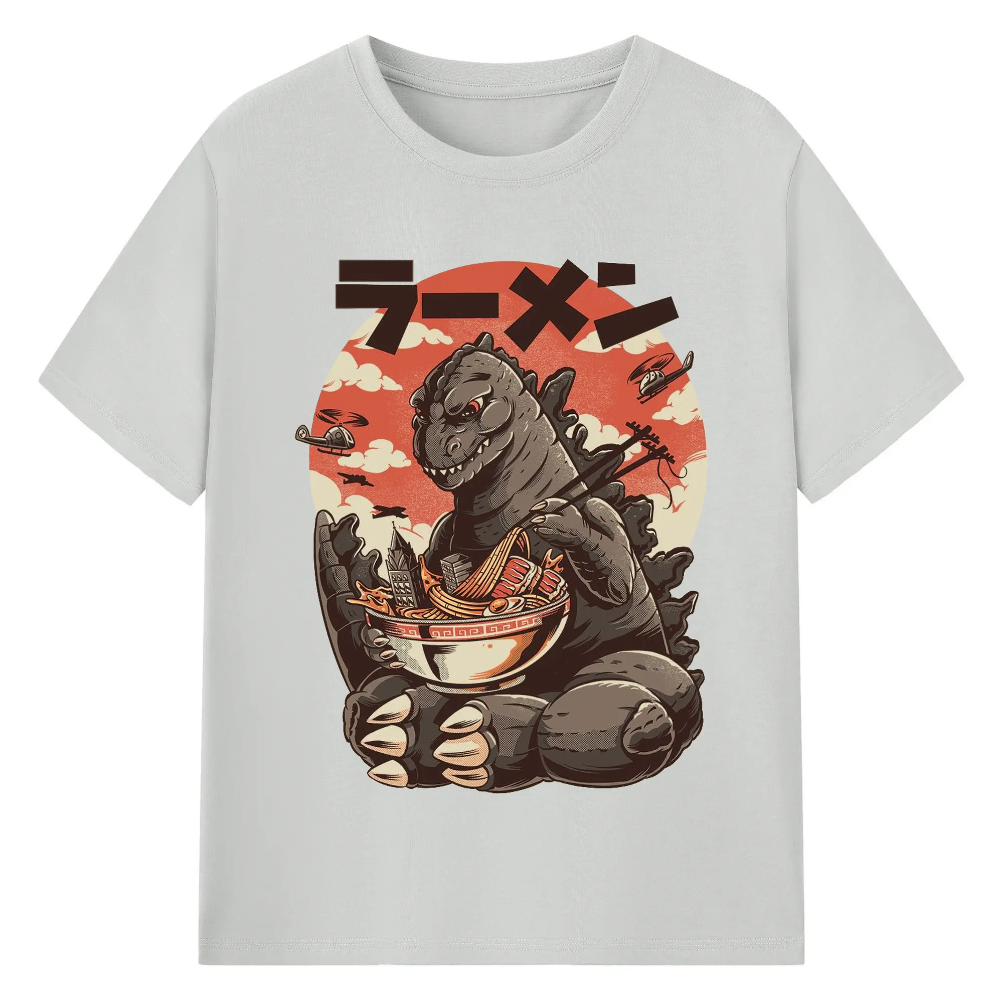 ゴジラの食事タイム - 綿100% 半袖Tシャツ ・ フロントプリント ・ 快適 通気性 ・ 日常使い 散歩 スポーツ用