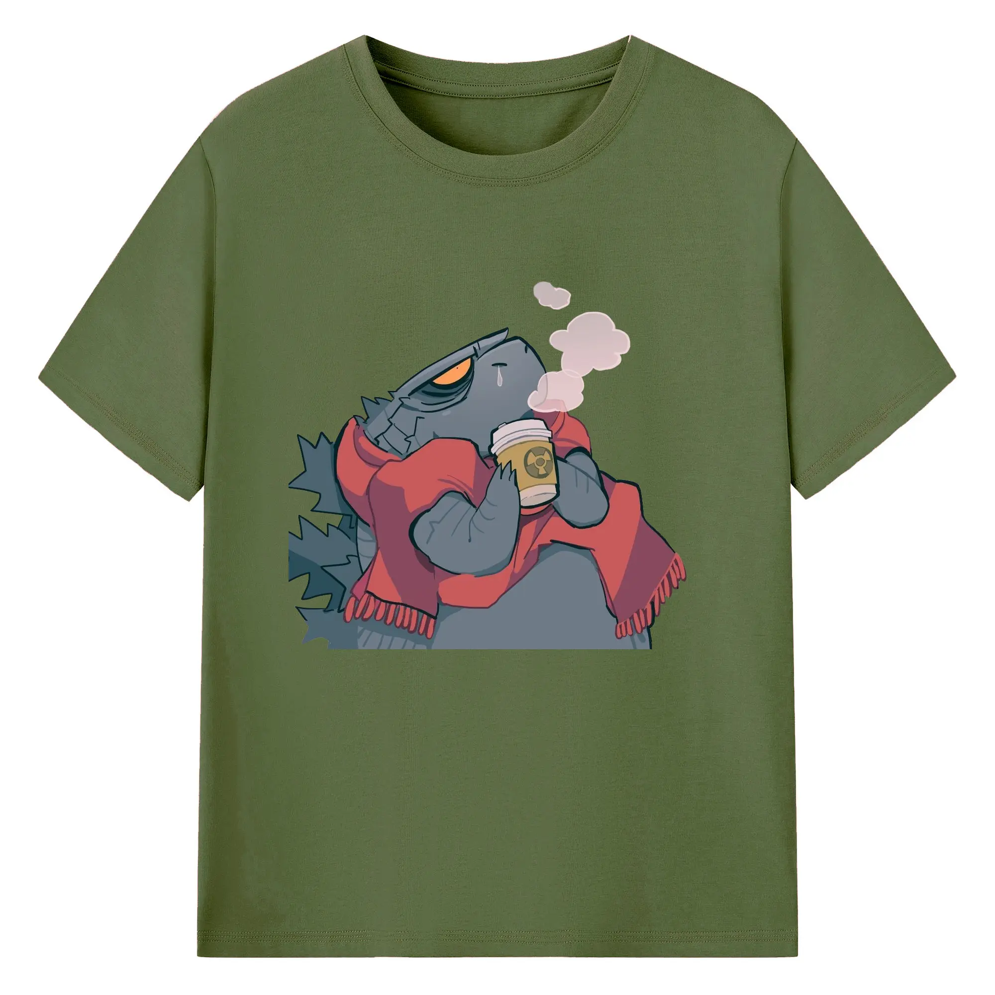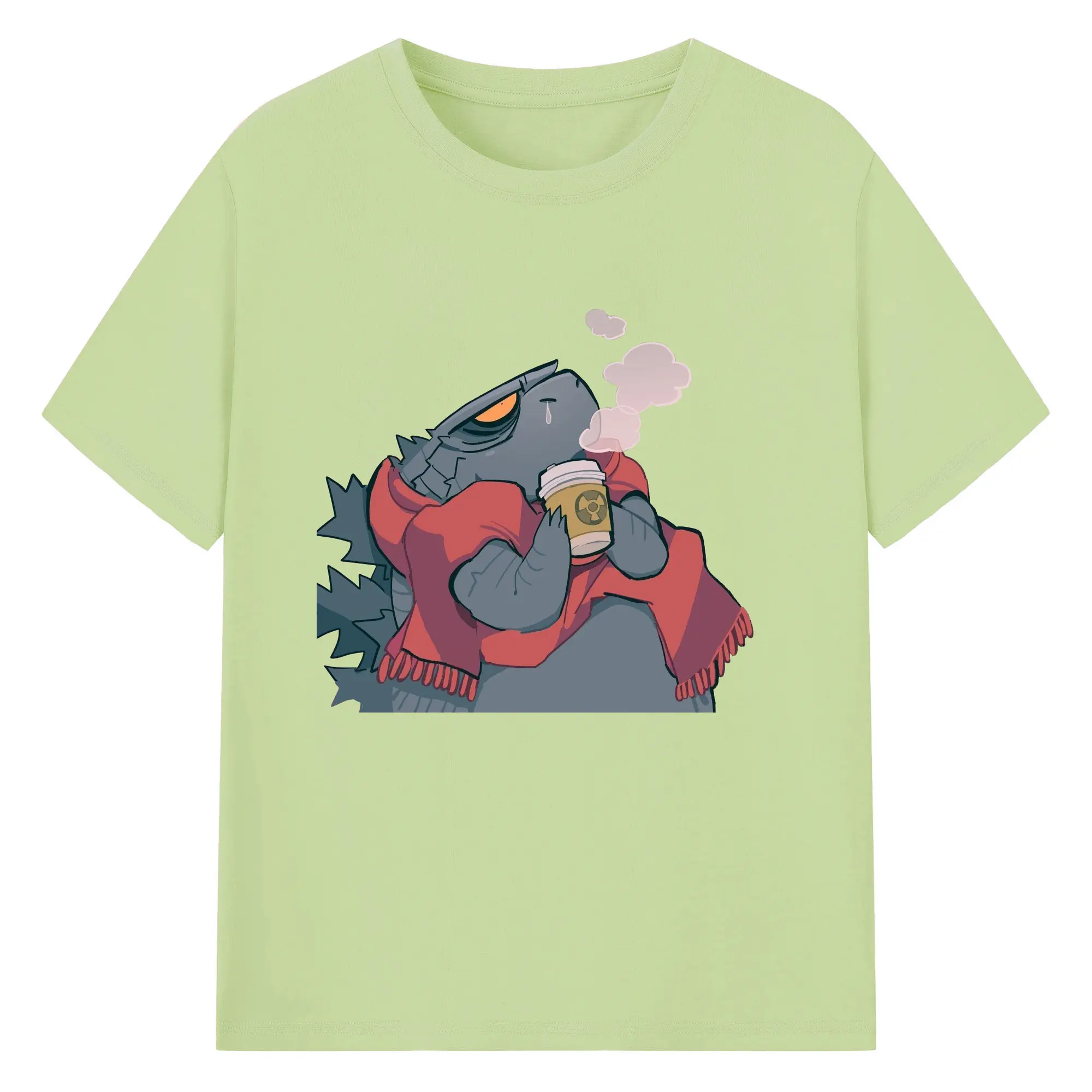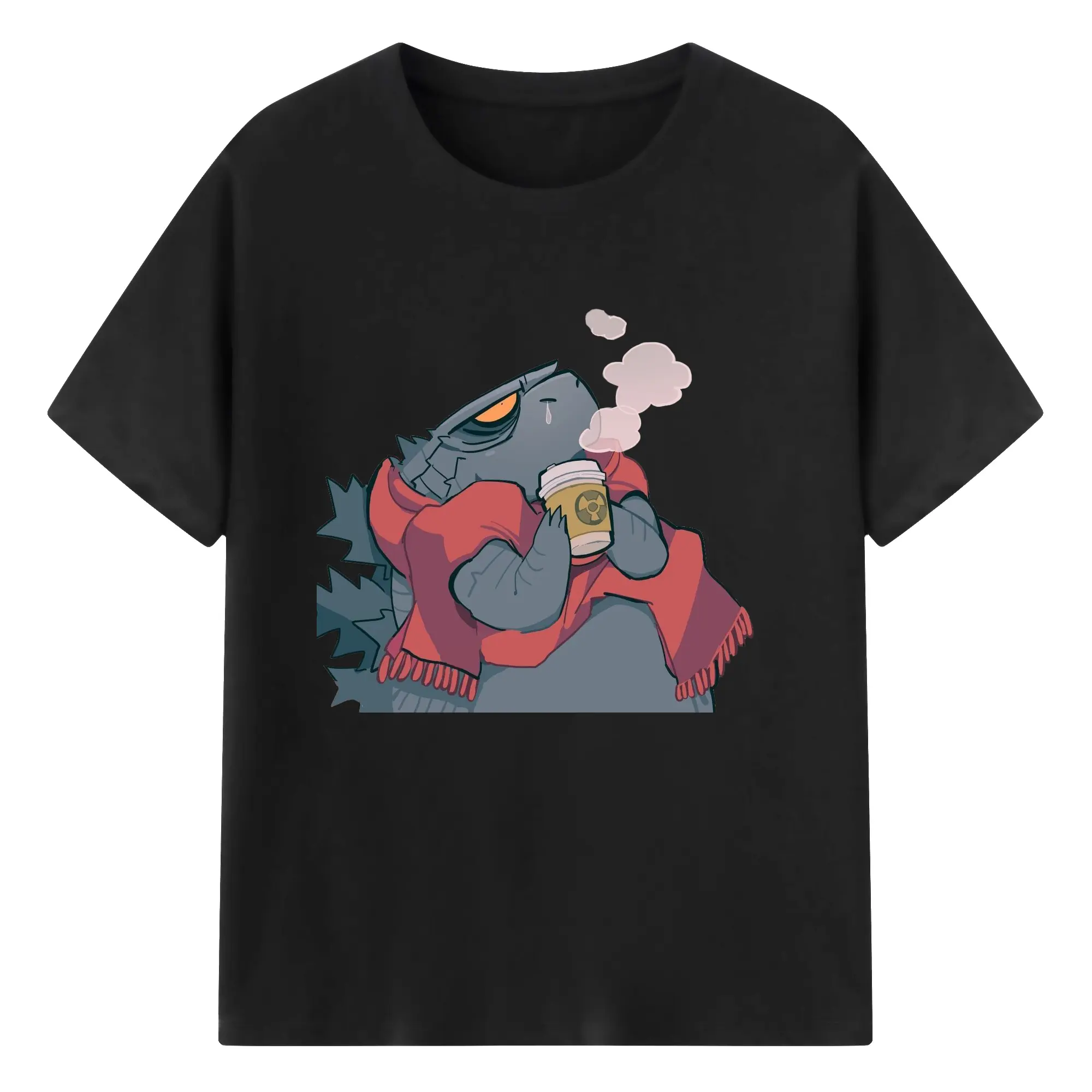 ゴジラの食事タイム - 綿100% 半袖Tシャツ ・ フロントプリント ・ 快適 通気性 ・ 日常使い 散歩 スポーツ用