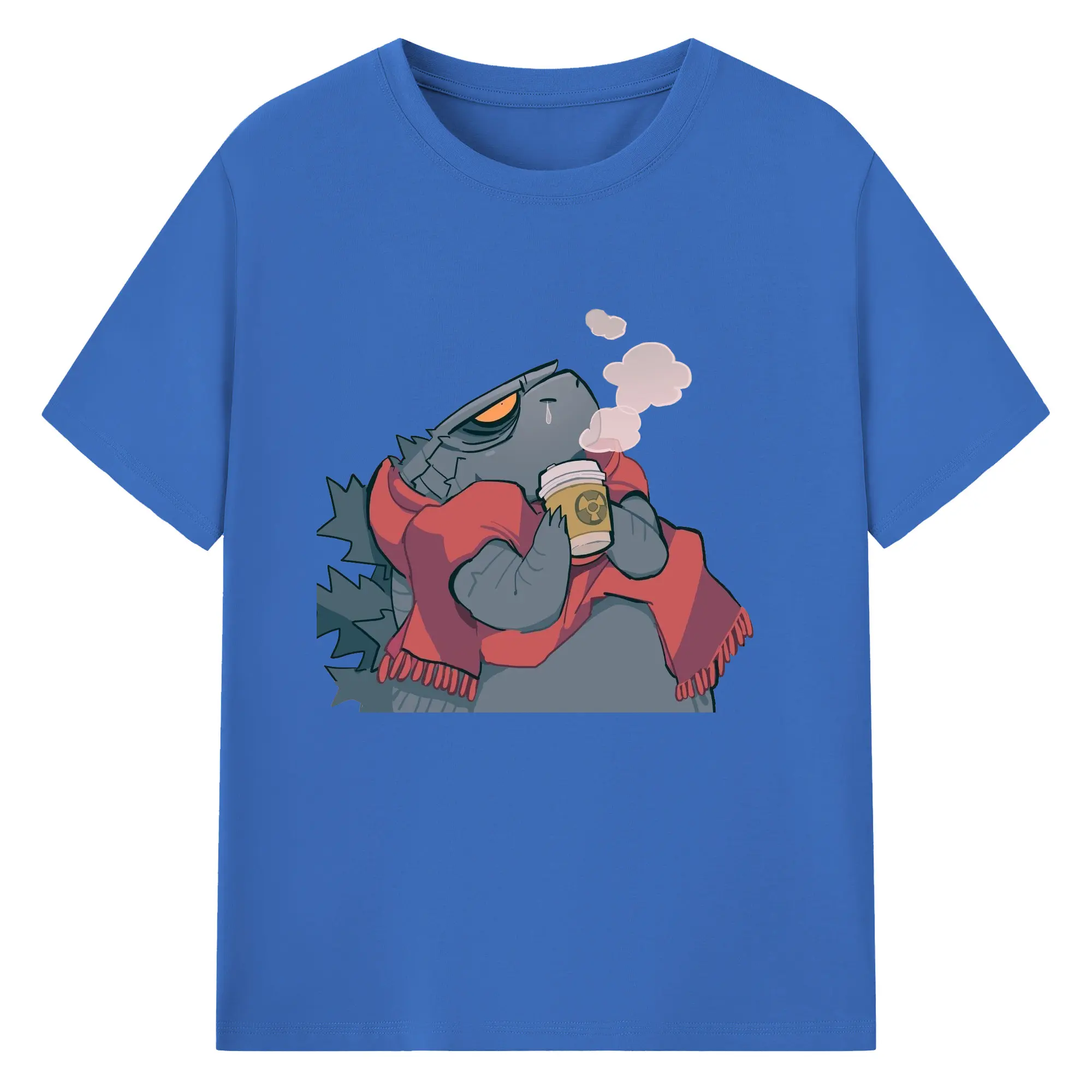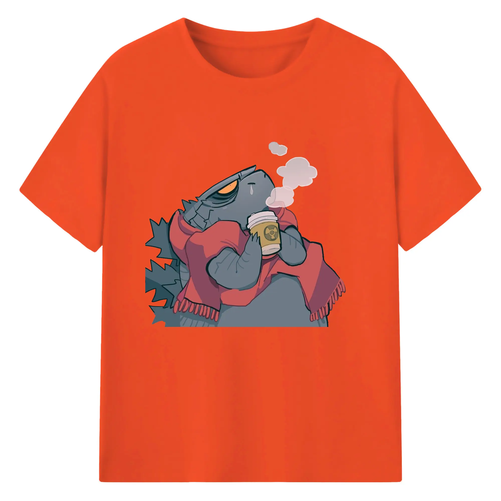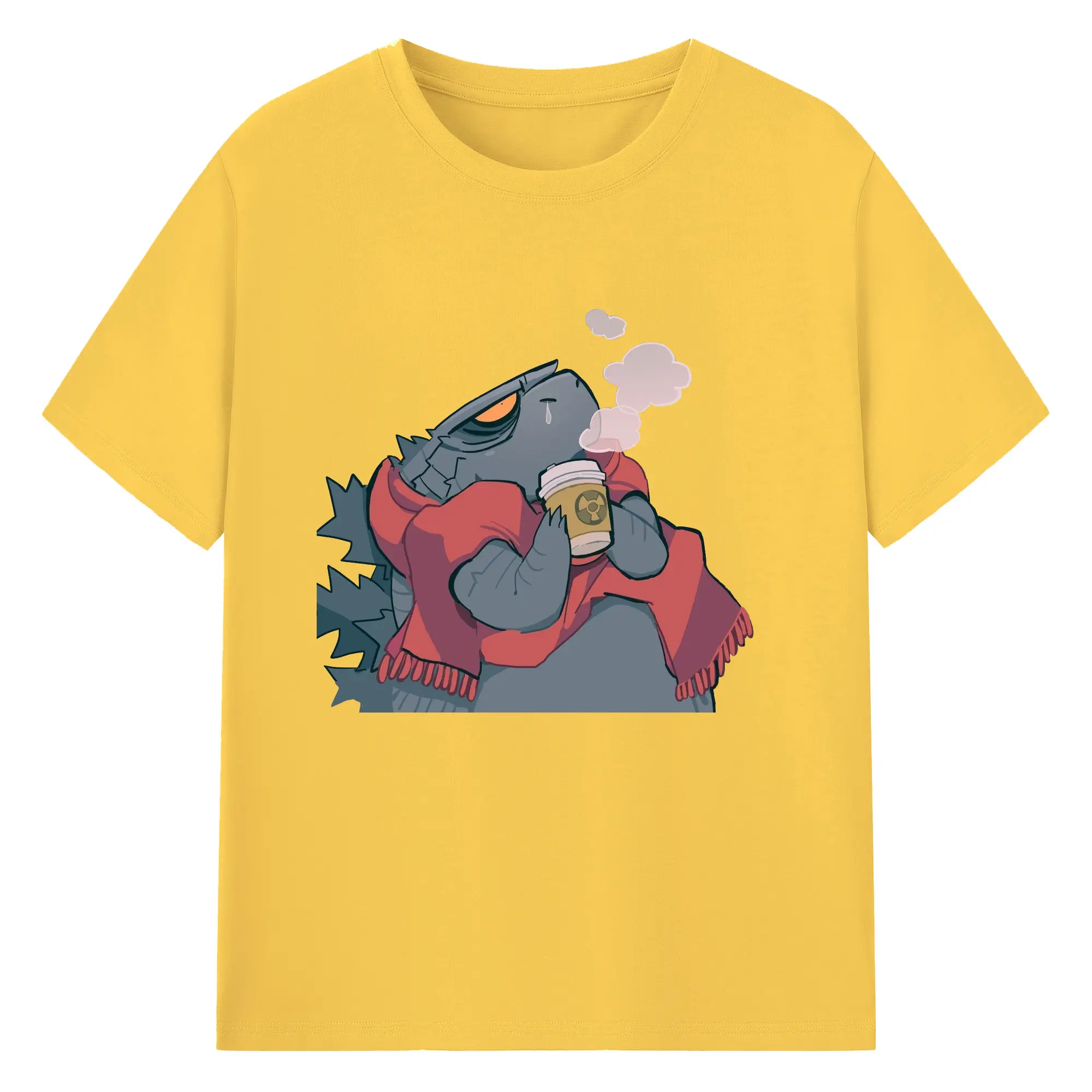 ゴジラの食事タイム - 綿100% 半袖Tシャツ ・ フロントプリント ・ 快適 通気性 ・ 日常使い 散歩 スポーツ用