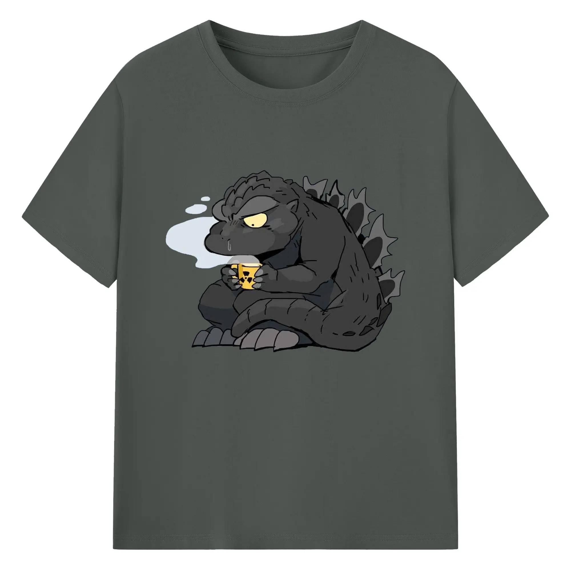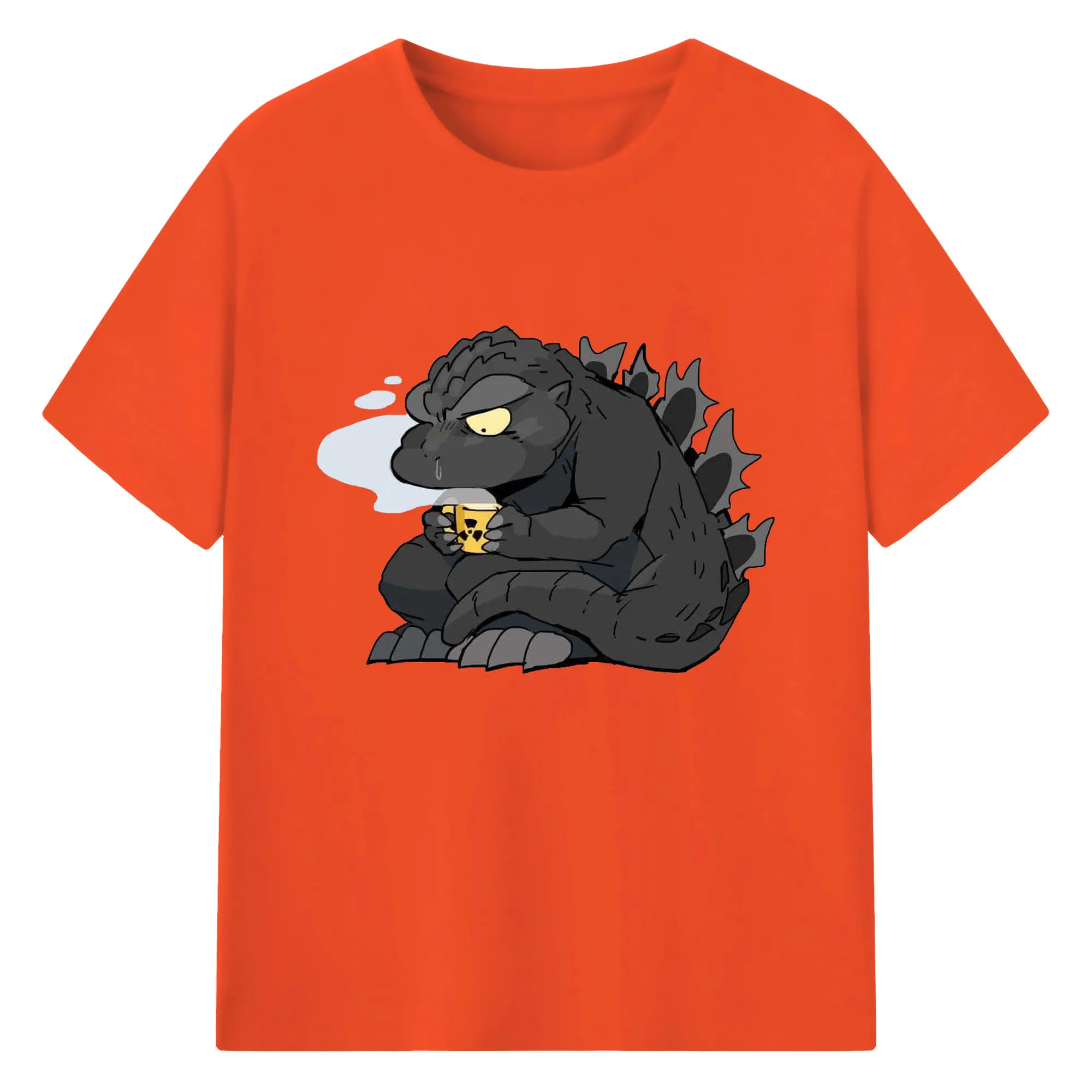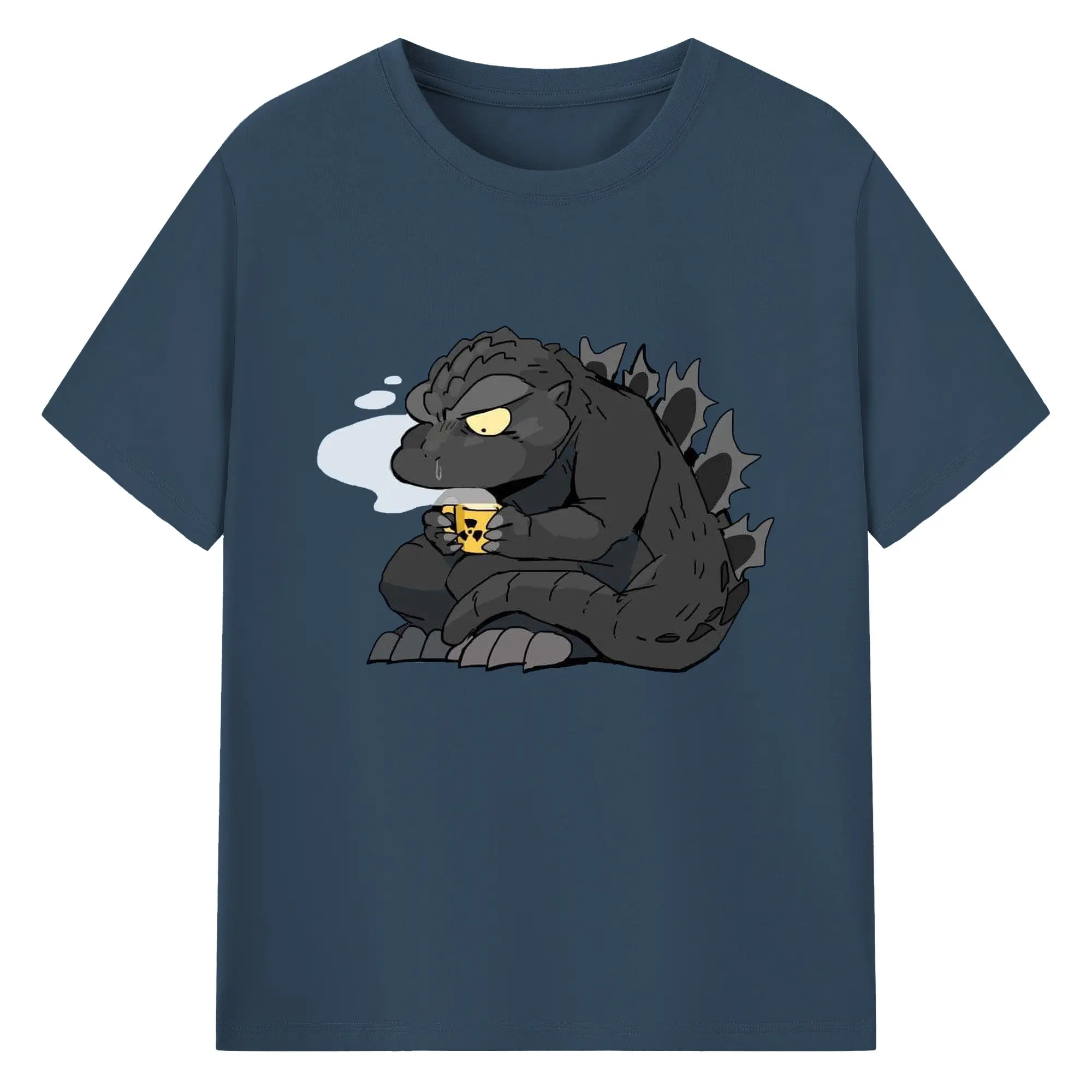 ゴジラの食事タイム - 綿100% 半袖Tシャツ ・ フロントプリント ・ 快適 通気性 ・ 日常使い 散歩 スポーツ用