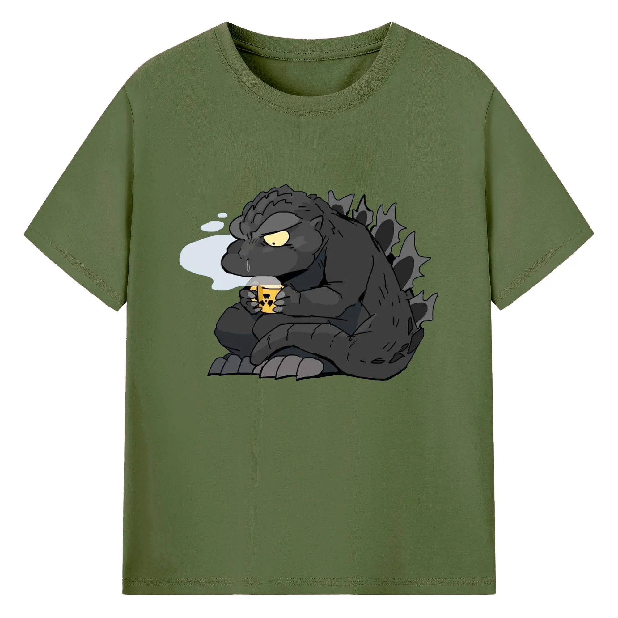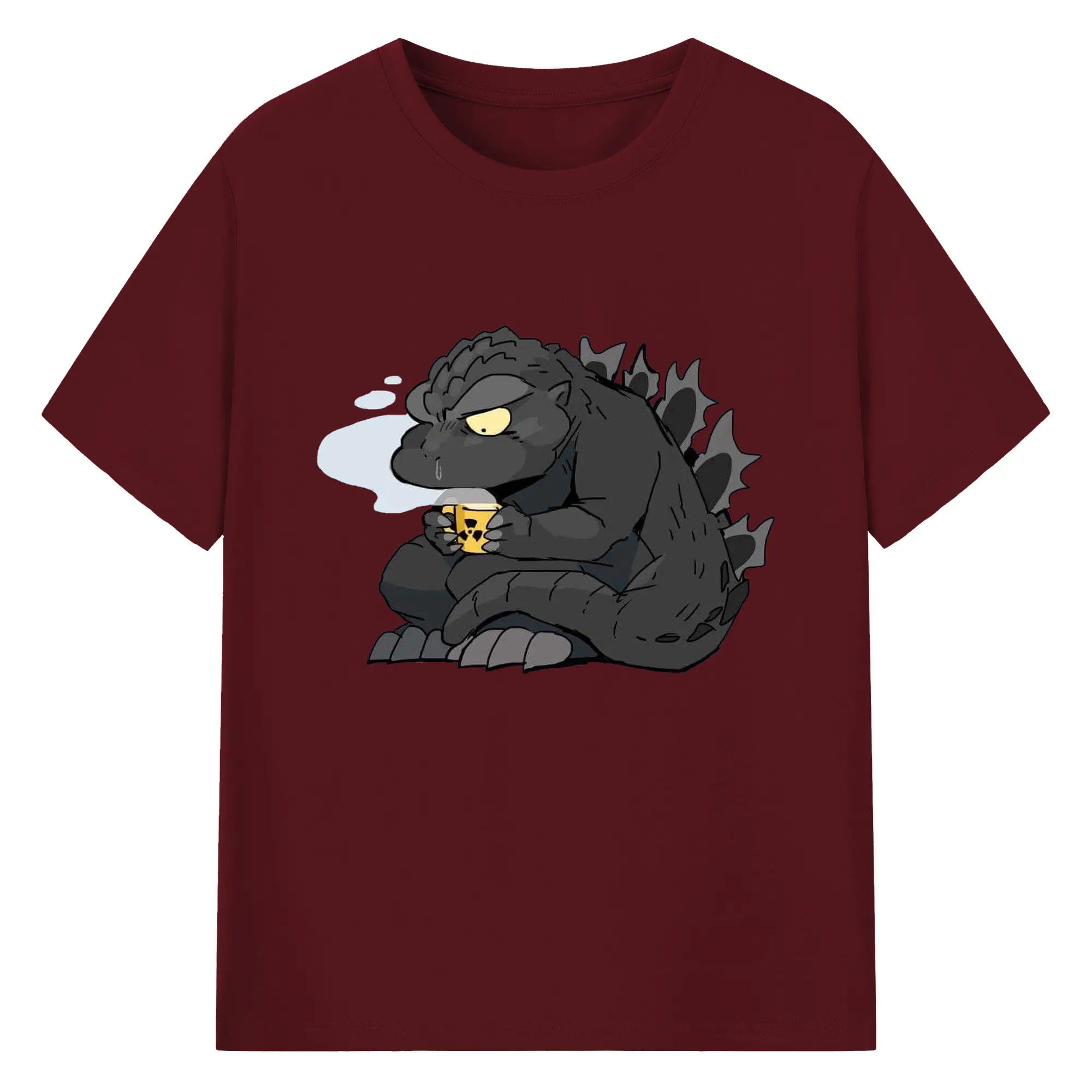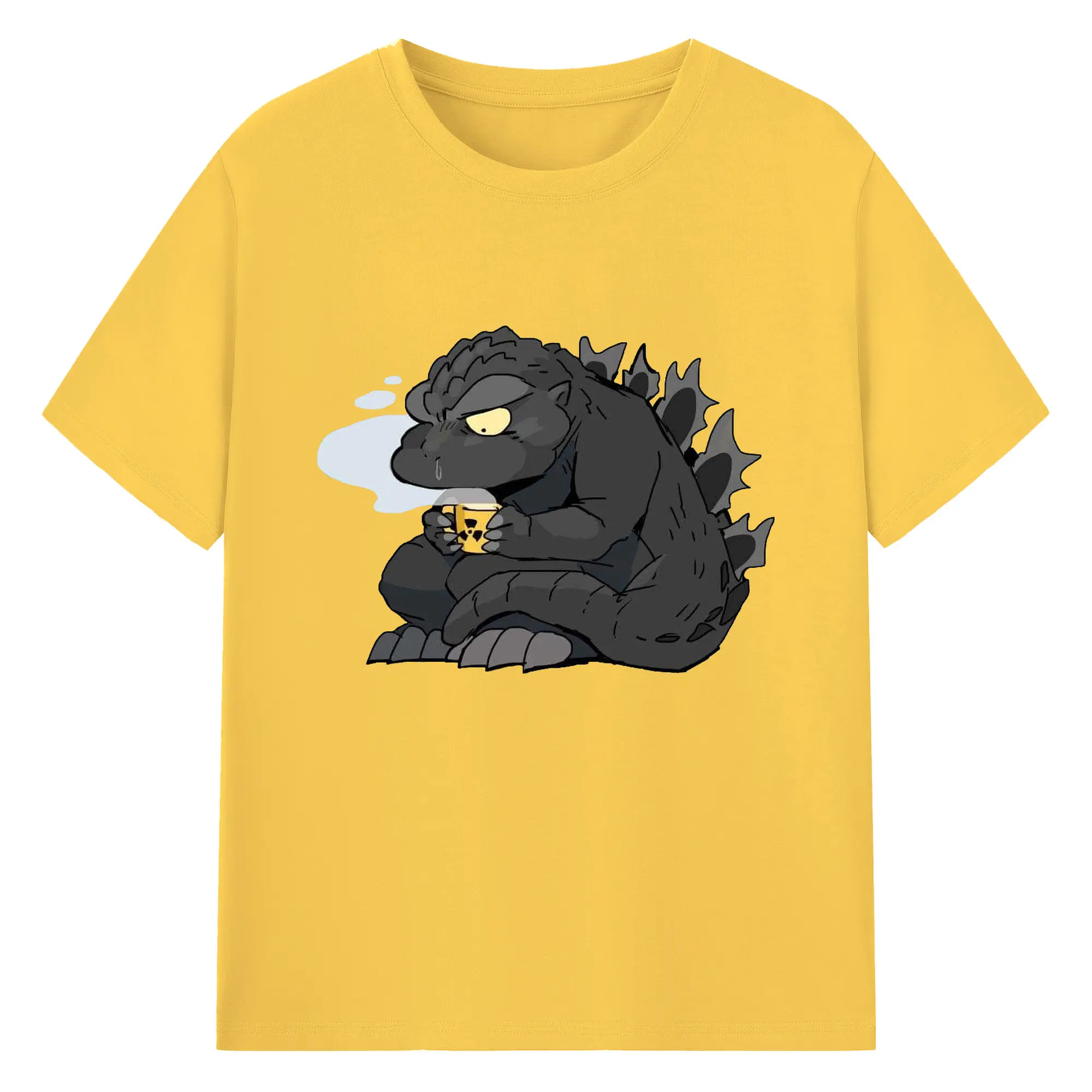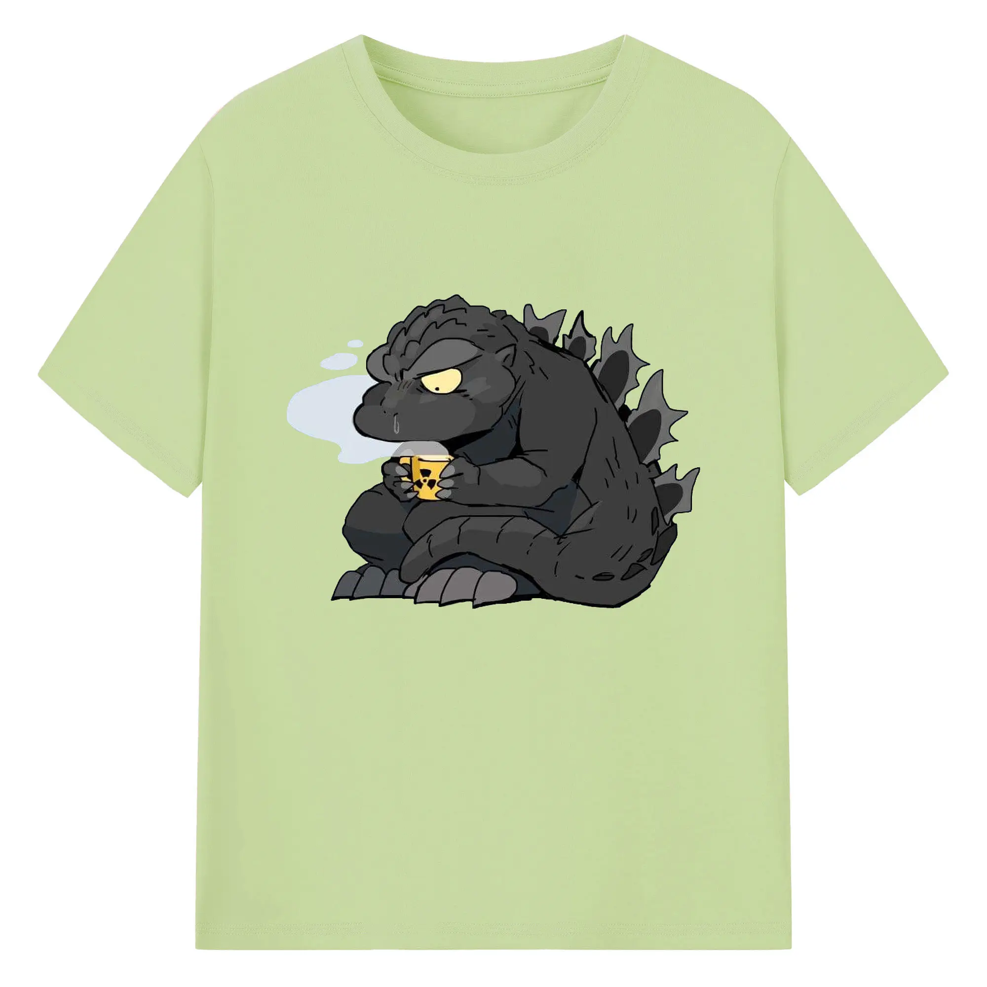 ゴジラの食事タイム - 綿100% 半袖Tシャツ ・ フロントプリント ・ 快適 通気性 ・ 日常使い 散歩 スポーツ用