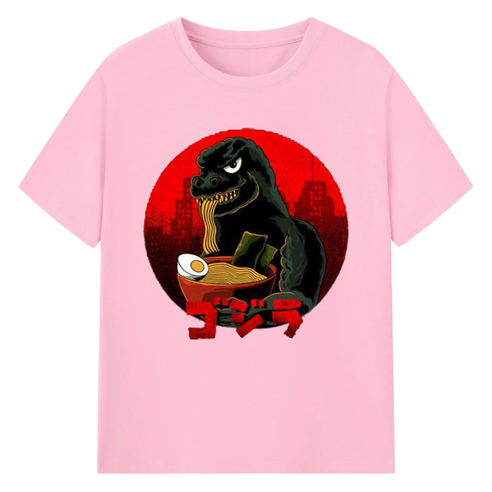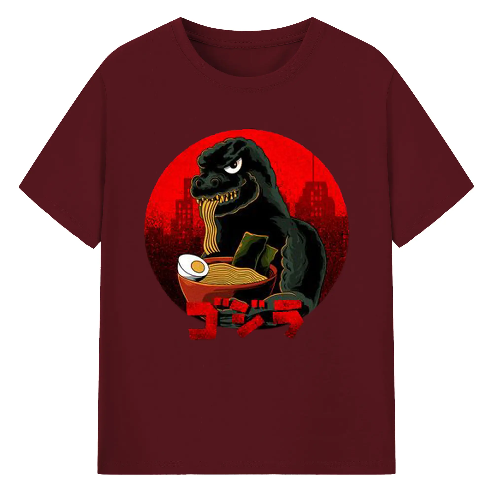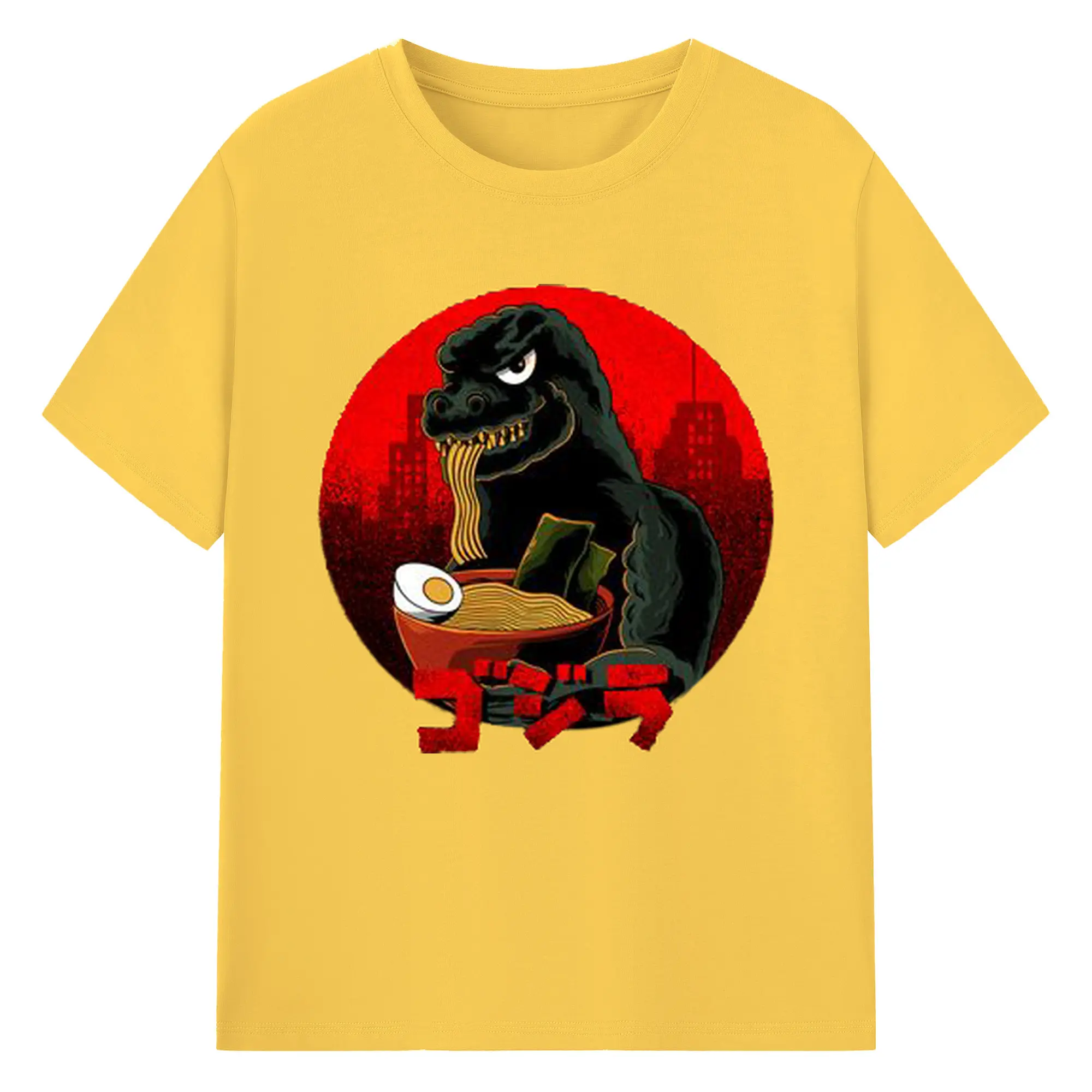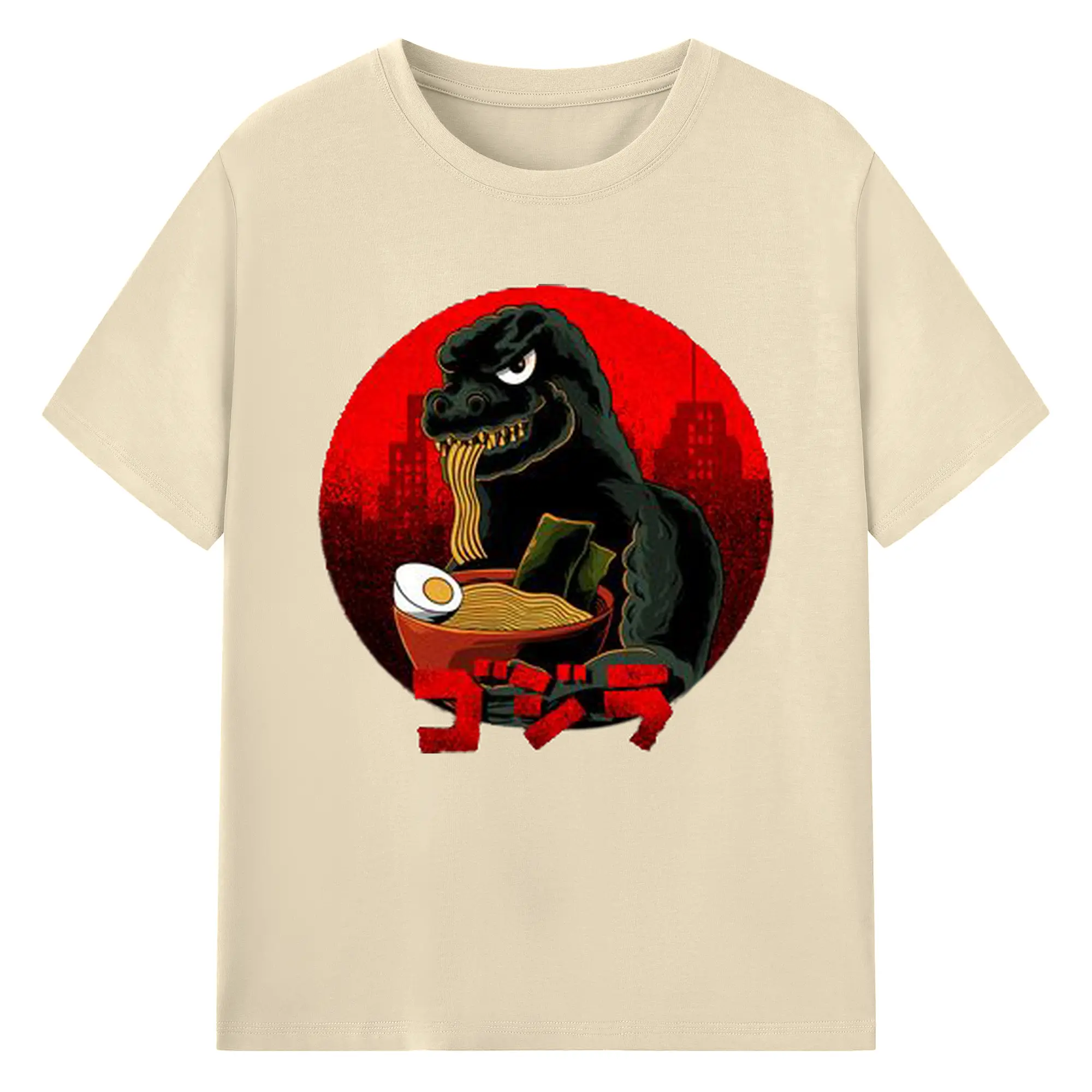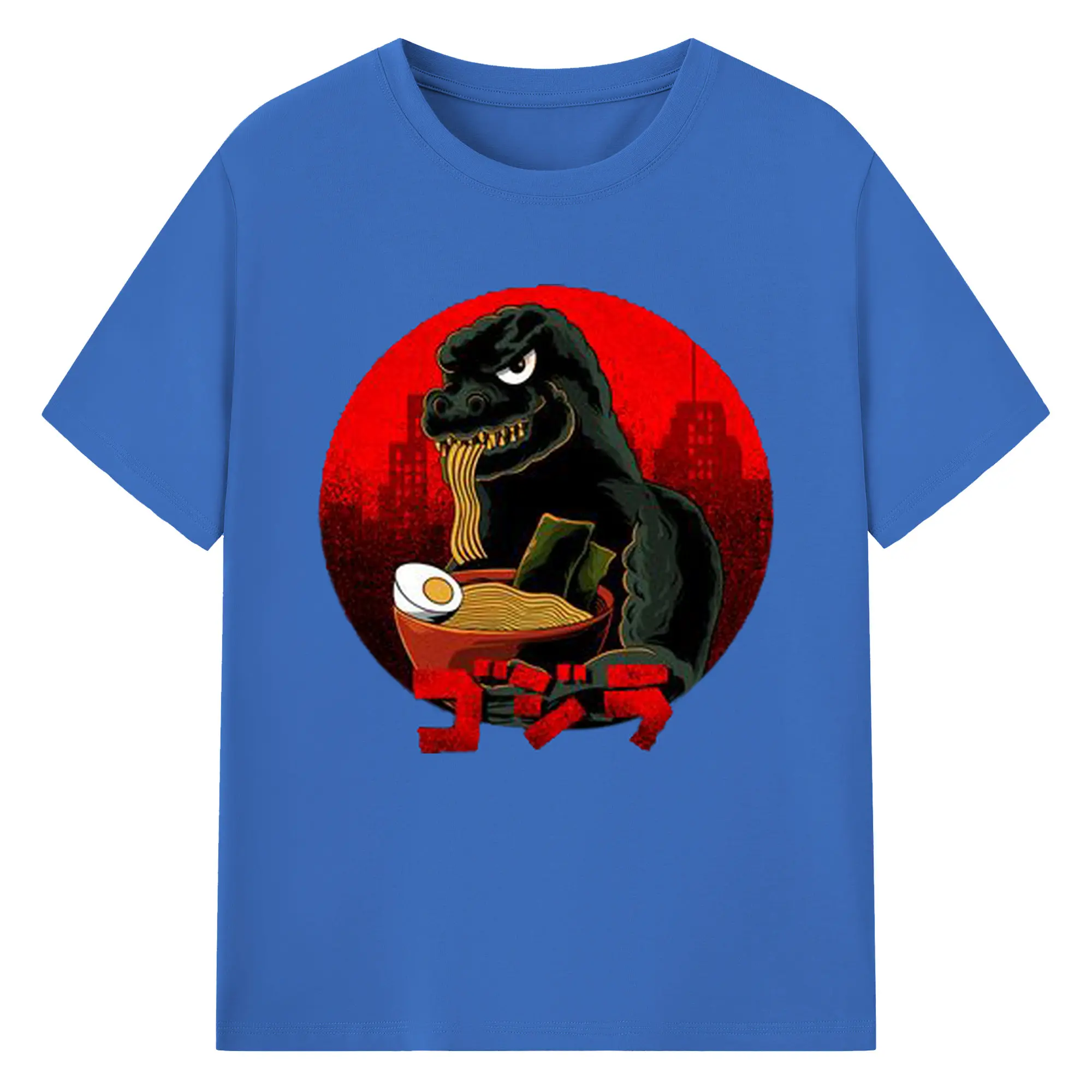 ゴジラの食事タイム - 綿100% 半袖Tシャツ ・ フロントプリント ・ 快適 通気性 ・ 日常使い 散歩 スポーツ用