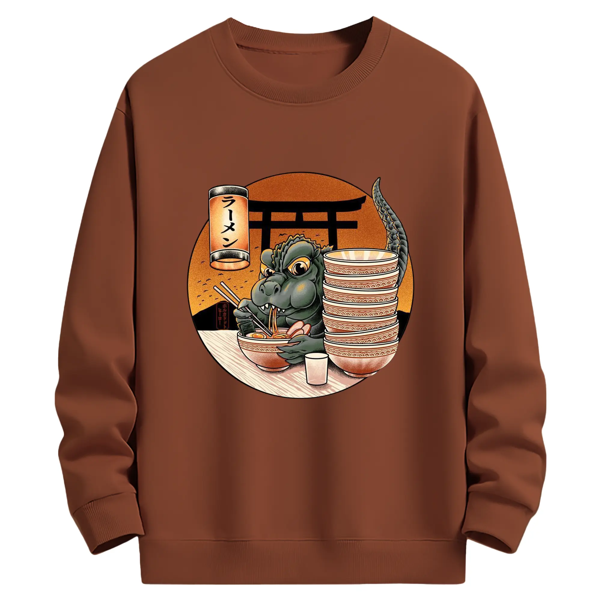 ゴジラの食事タイム - 高品質 クルーネック スウェット ・ コットン59% ポリエステル41% ・ ユニセックス 長袖 トレーナー ・ カジュアル デイリー スポーツ 散歩用