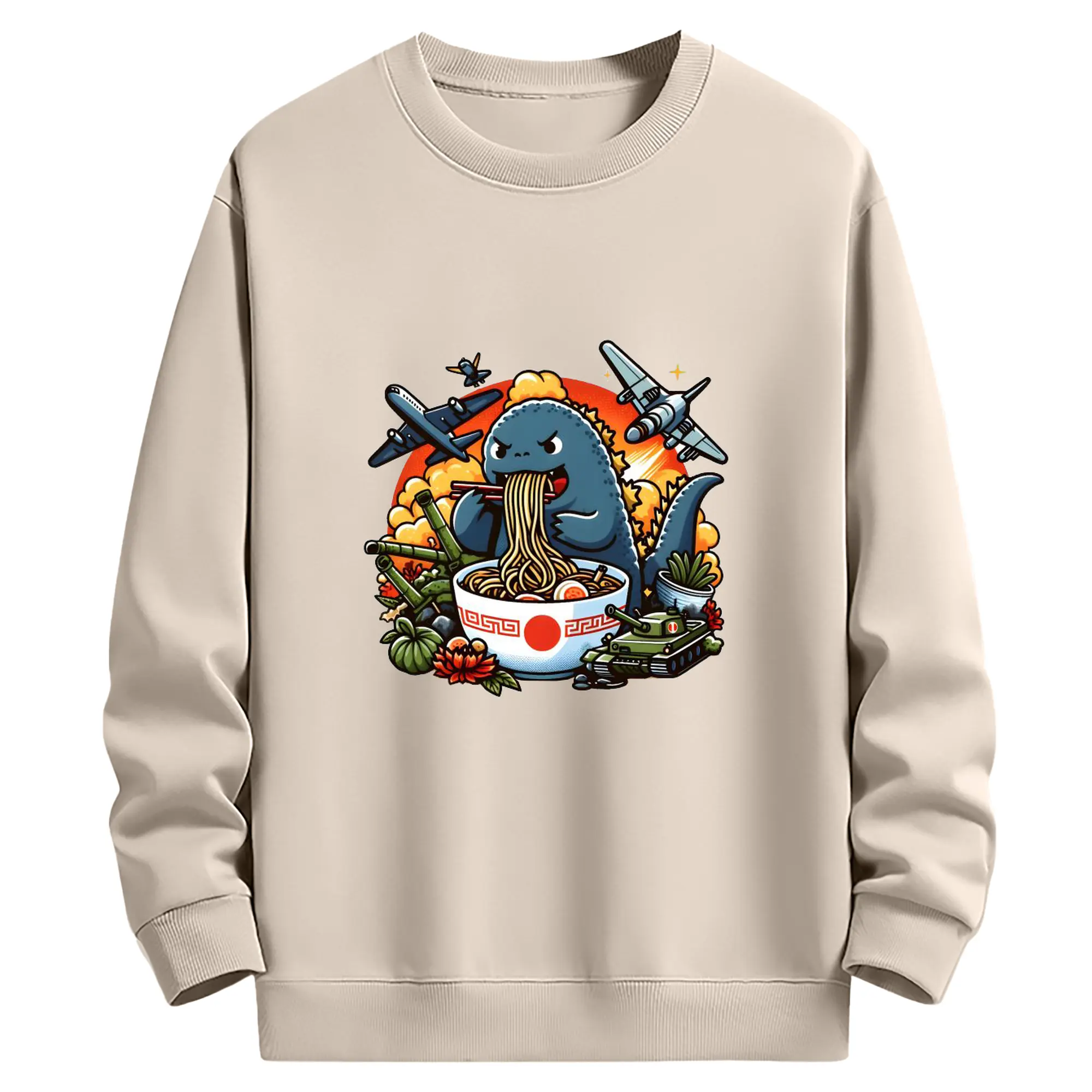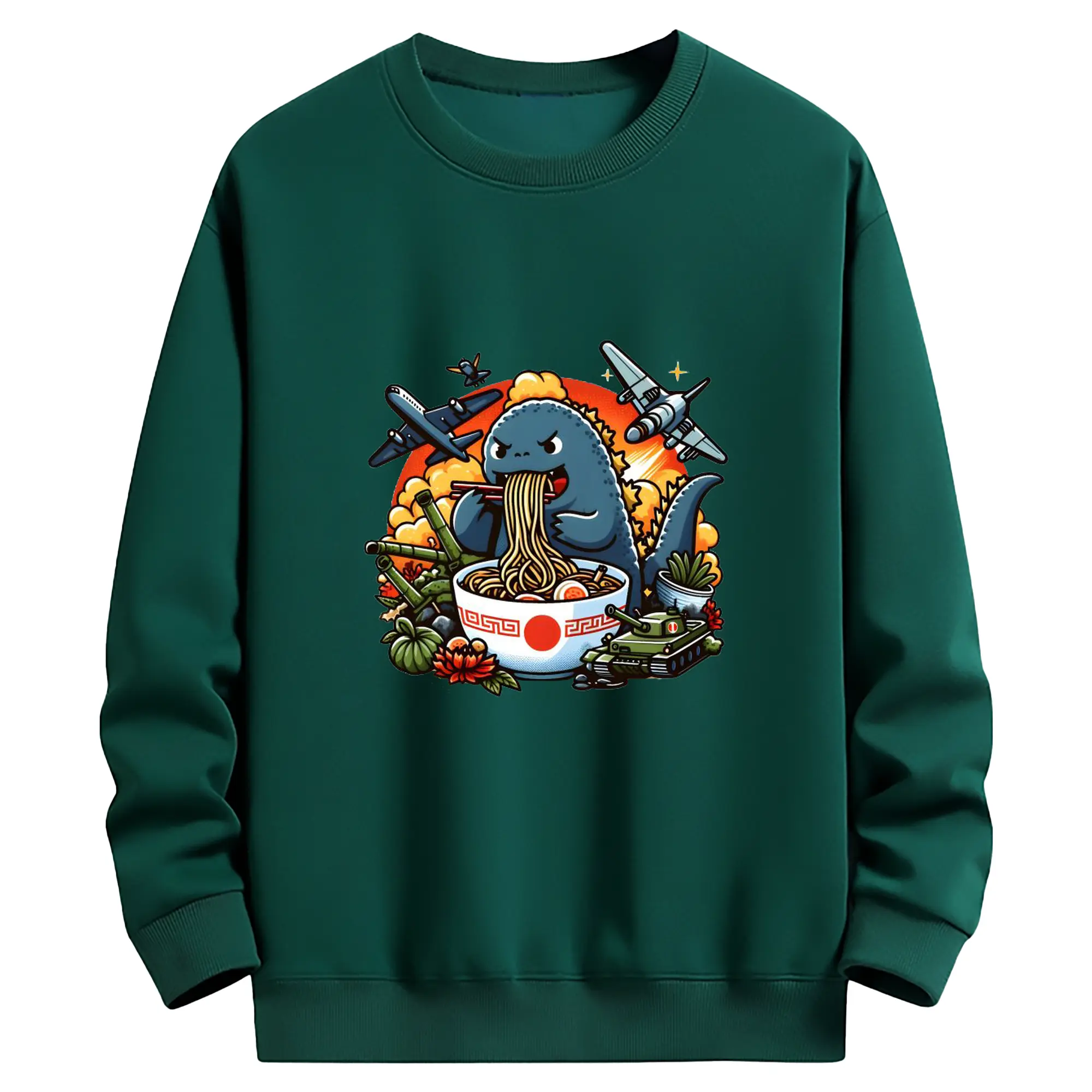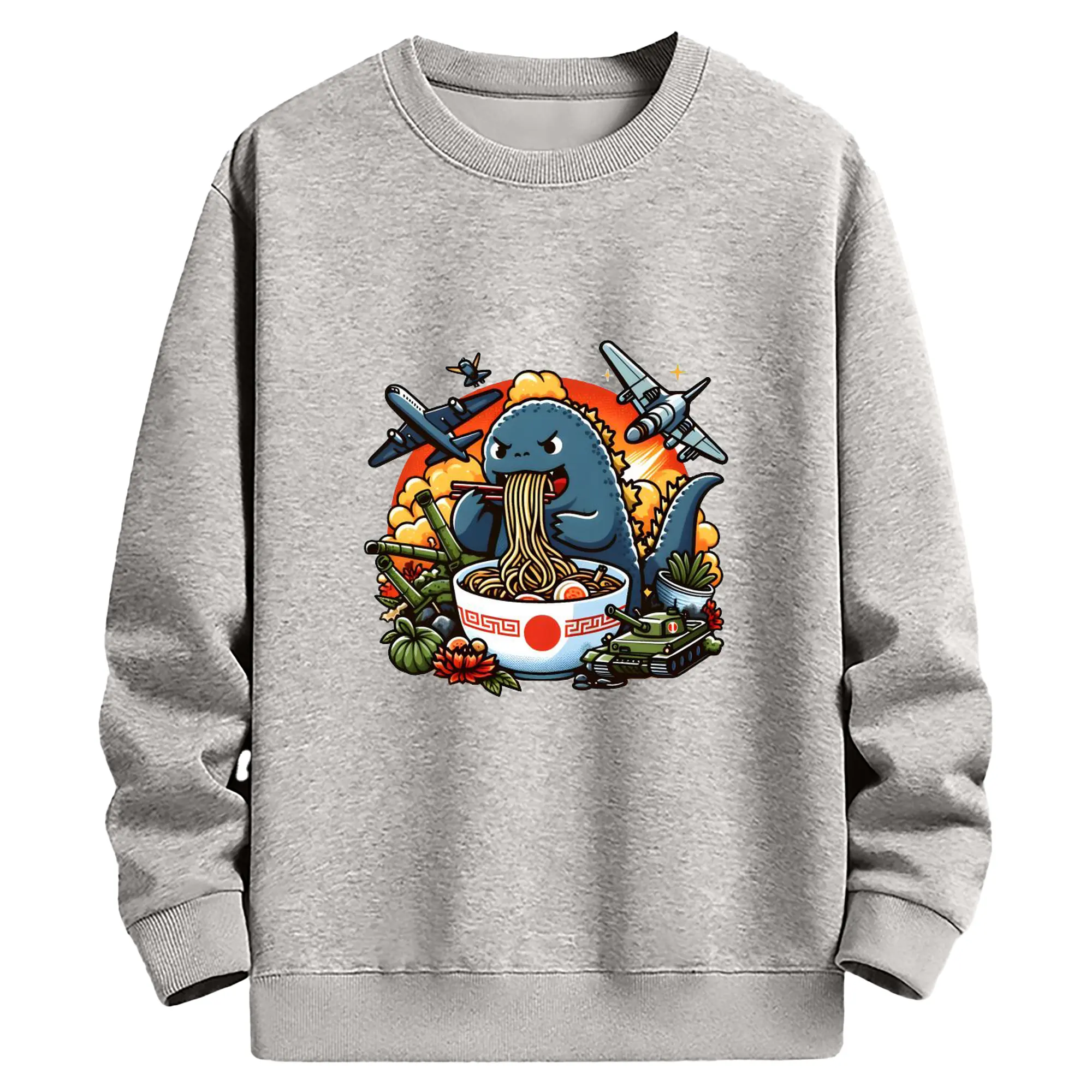 ゴジラの食事タイム - 高品質 クルーネック スウェット ・ コットン59% ポリエステル41% ・ ユニセックス 長袖 トレーナー ・ カジュアル デイリー スポーツ 散歩用