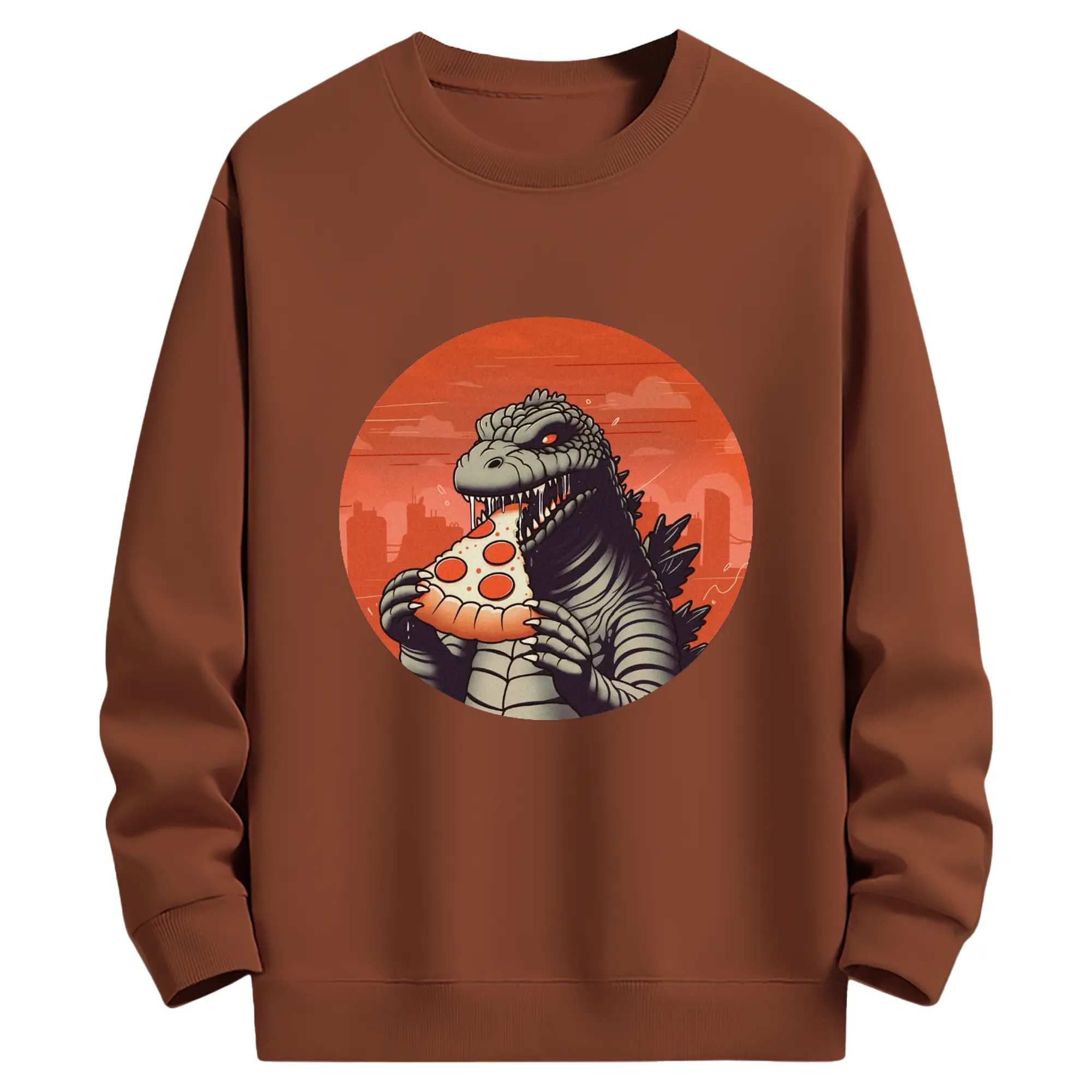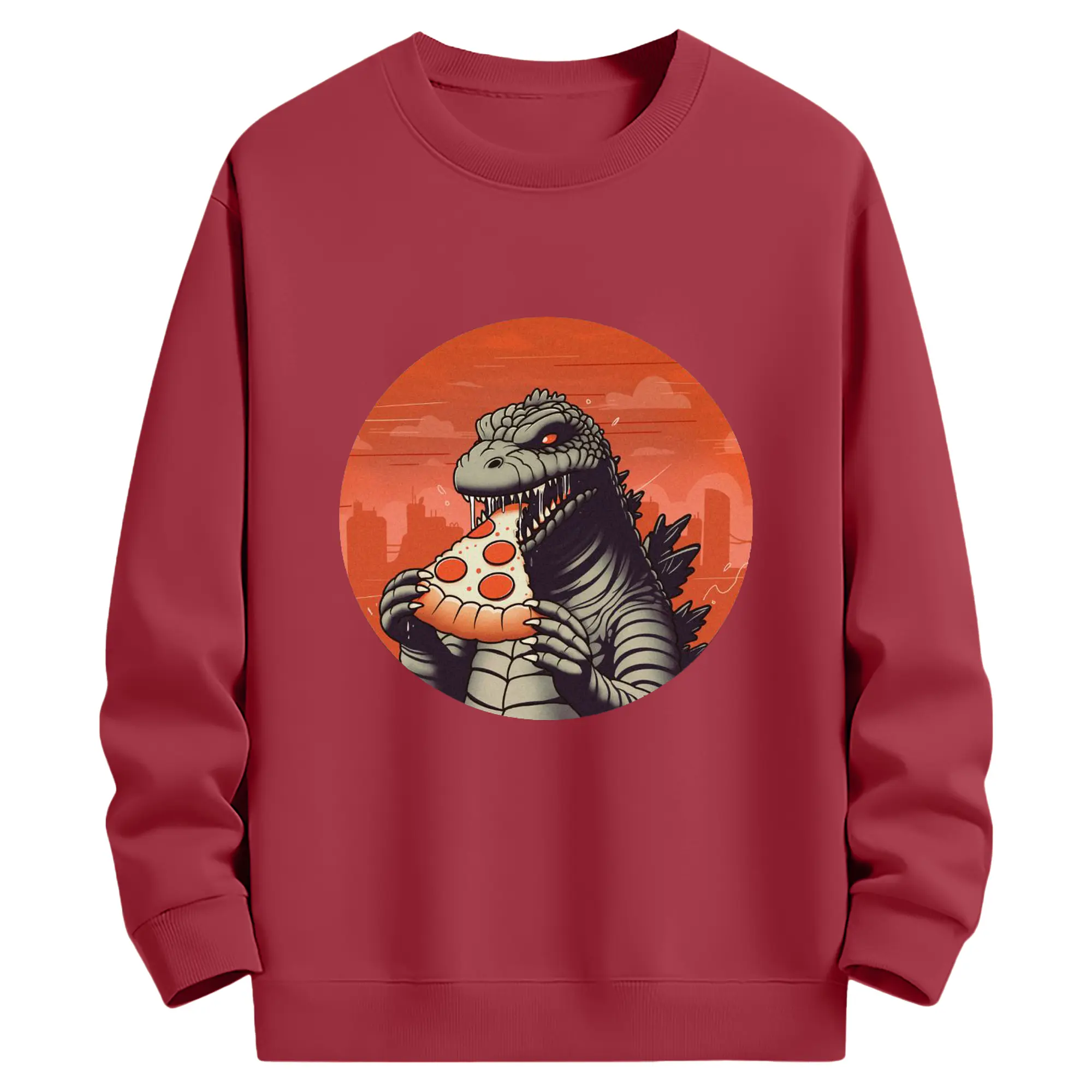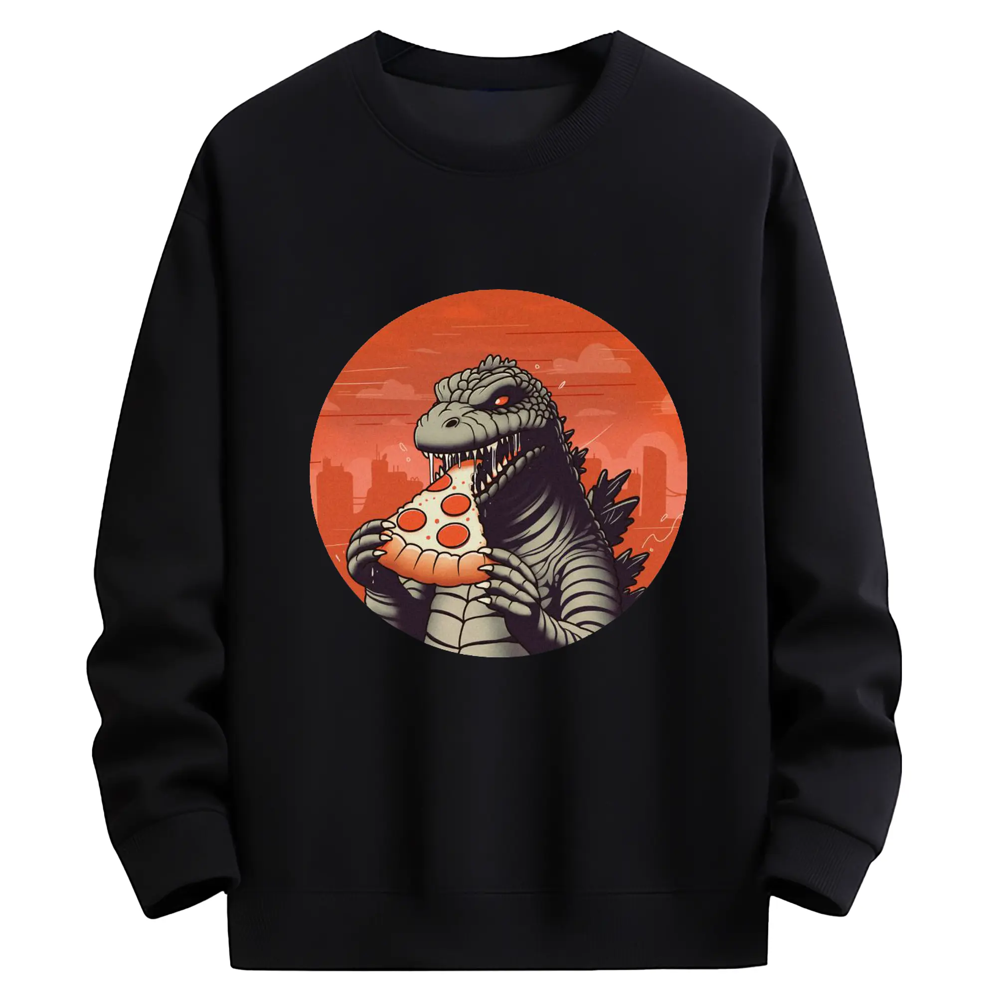 ゴジラの食事タイム - 高品質 クルーネック スウェット ・ コットン59% ポリエステル41% ・ ユニセックス 長袖 トレーナー ・ カジュアル デイリー スポーツ 散歩用