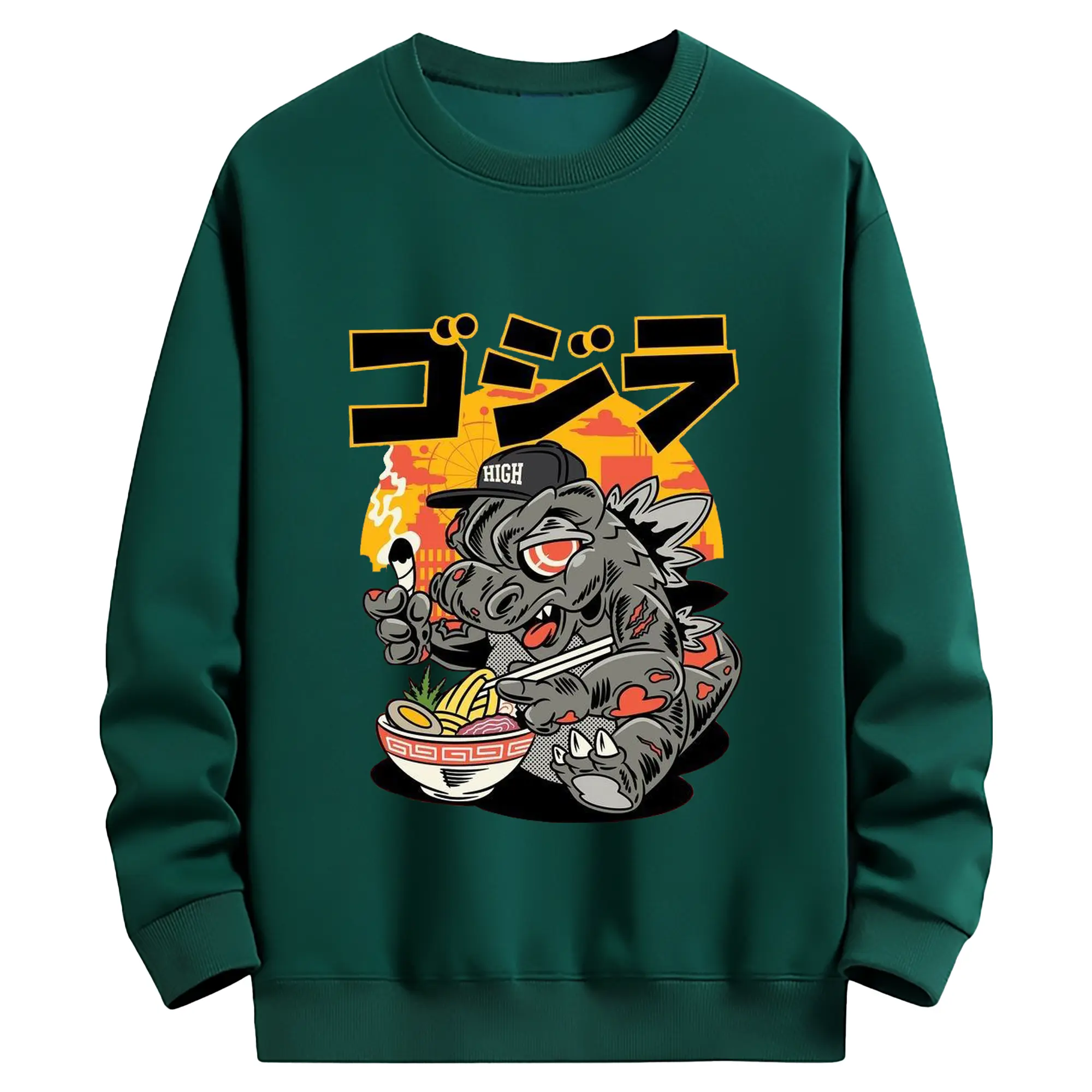 ゴジラの食事タイム - 高品質 クルーネック スウェット ・ コットン59% ポリエステル41% ・ ユニセックス 長袖 トレーナー ・ カジュアル デイリー スポーツ 散歩用