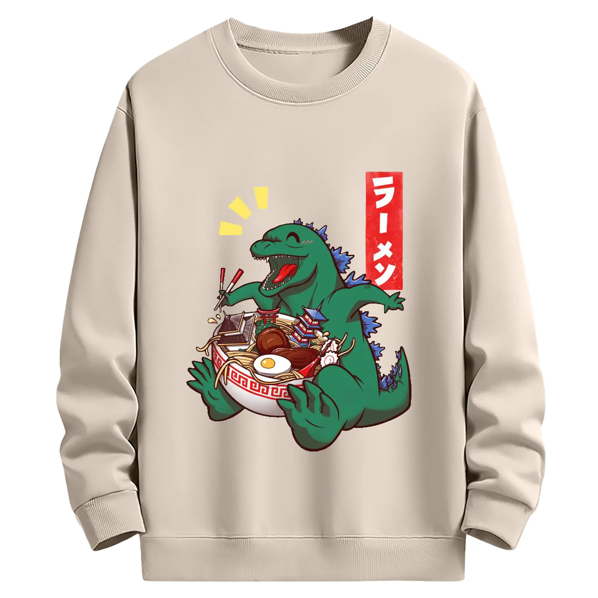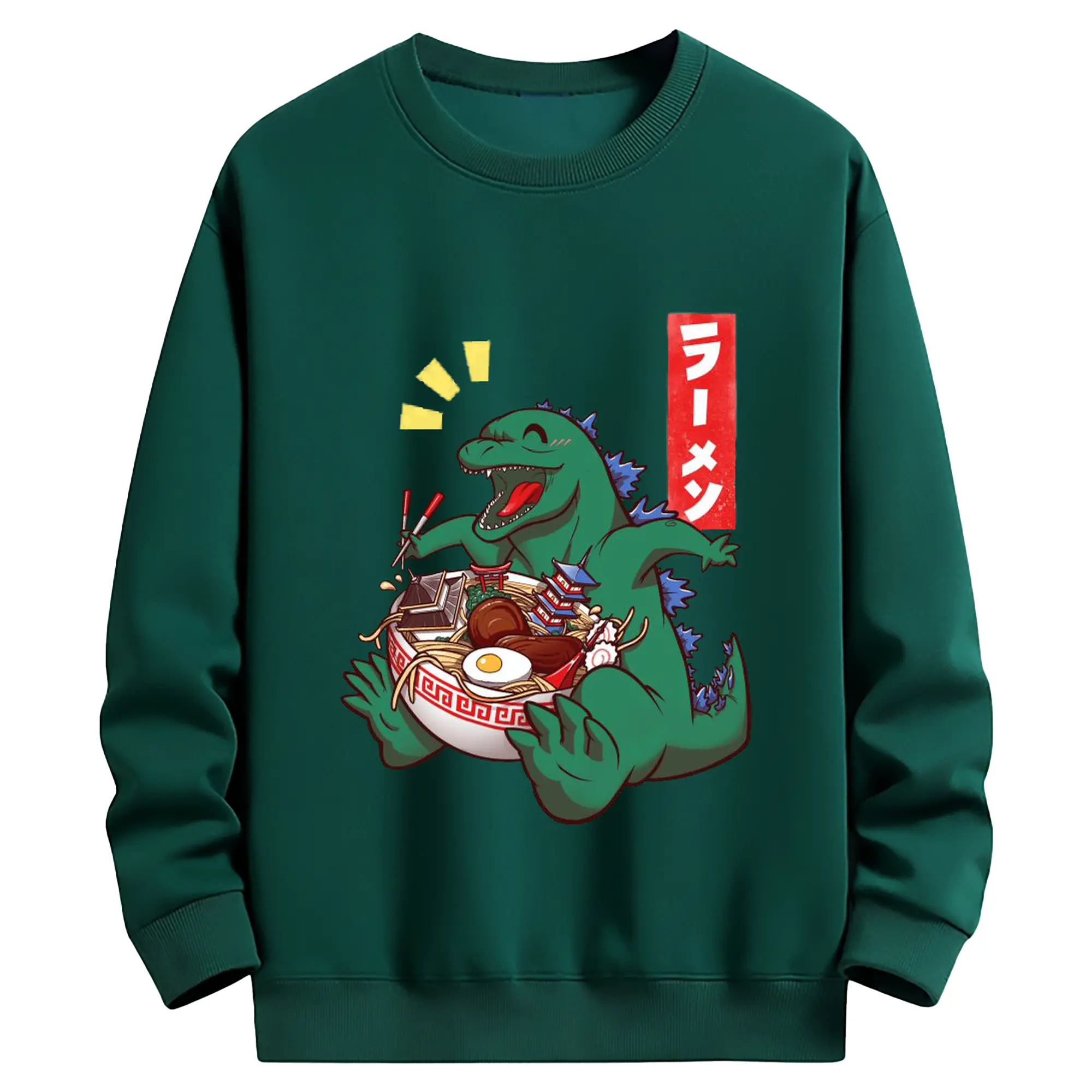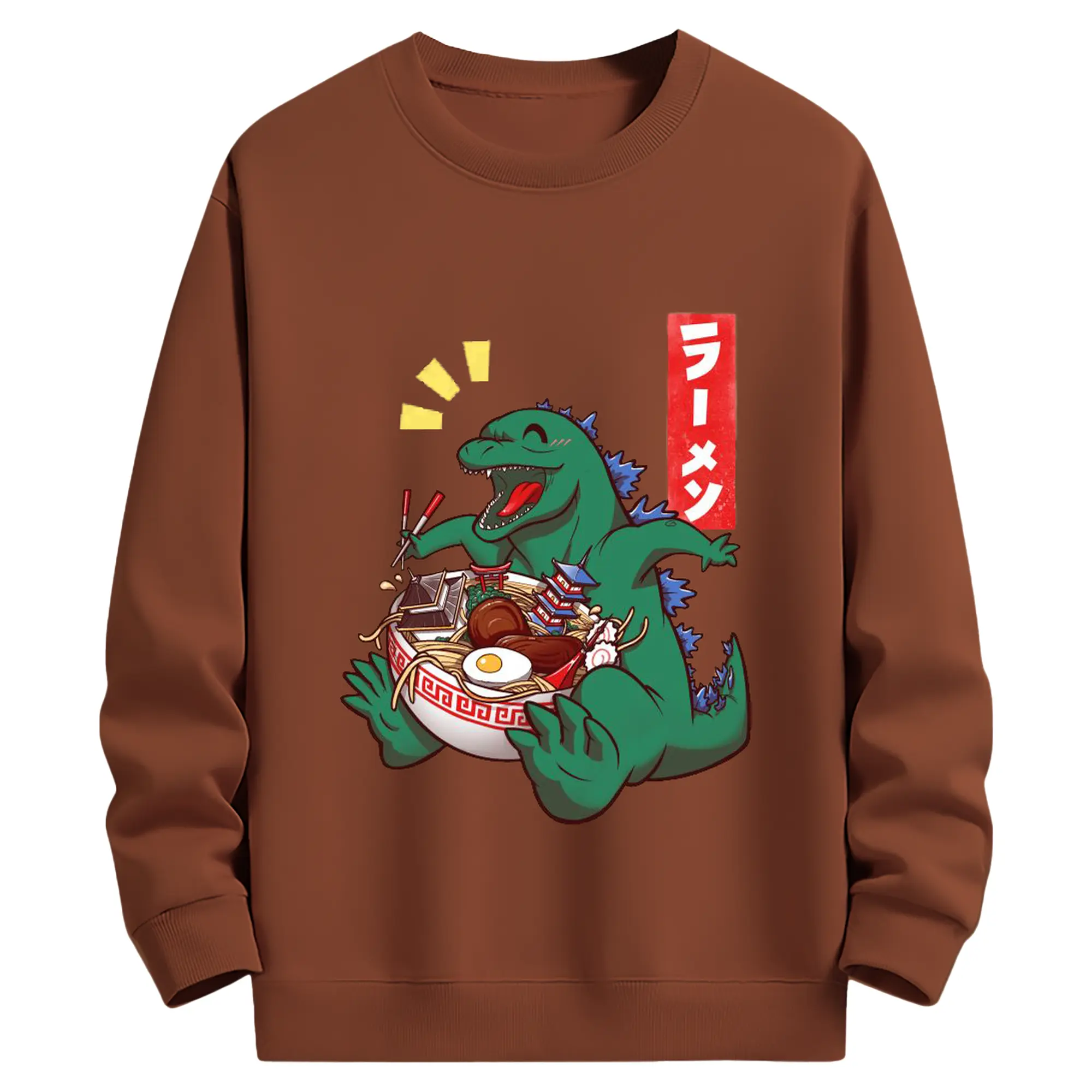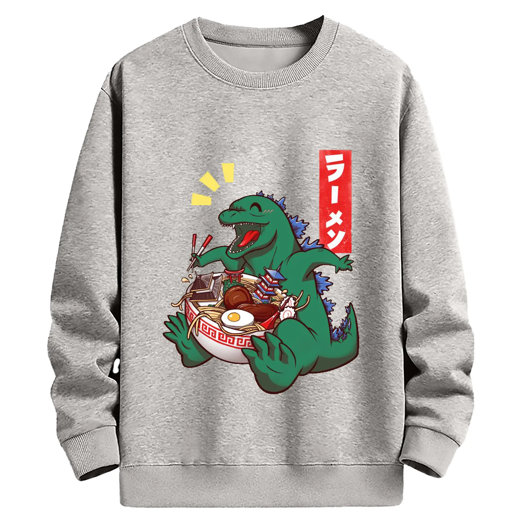 ゴジラの食事タイム - 高品質 クルーネック スウェット ・ コットン59% ポリエステル41% ・ ユニセックス 長袖 トレーナー ・ カジュアル デイリー スポーツ 散歩用