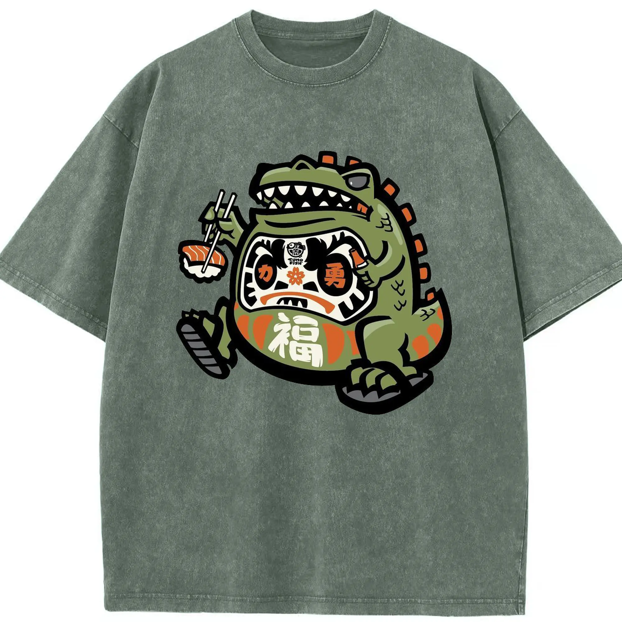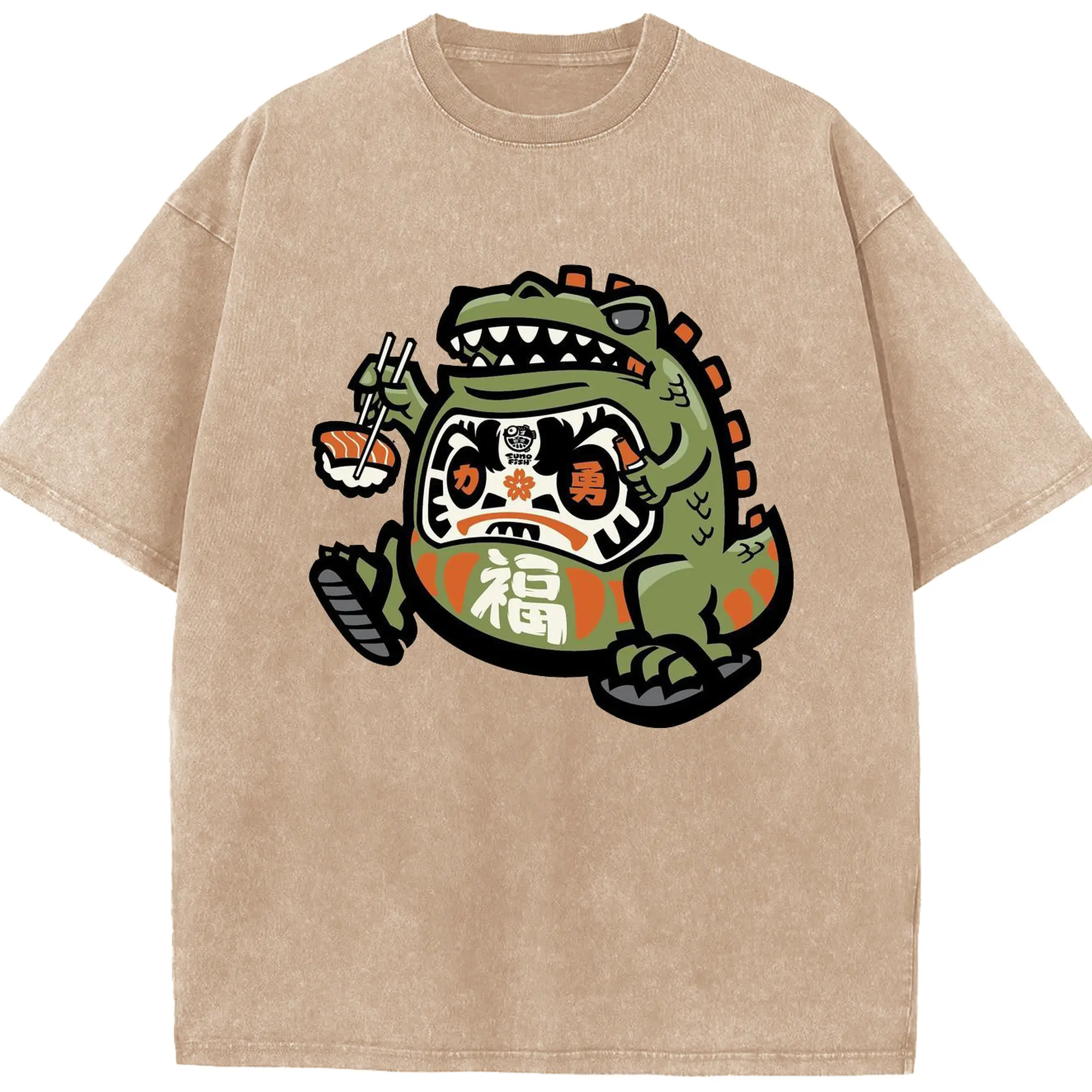 ゴジラの食事タイム - 綿100% ヴィンテージ風 半袖Tシャツ ・ フロントプリント ・ 柔らか肌触り ・ 通気性 快適 ・ スポーツ カジュアル 外出用
