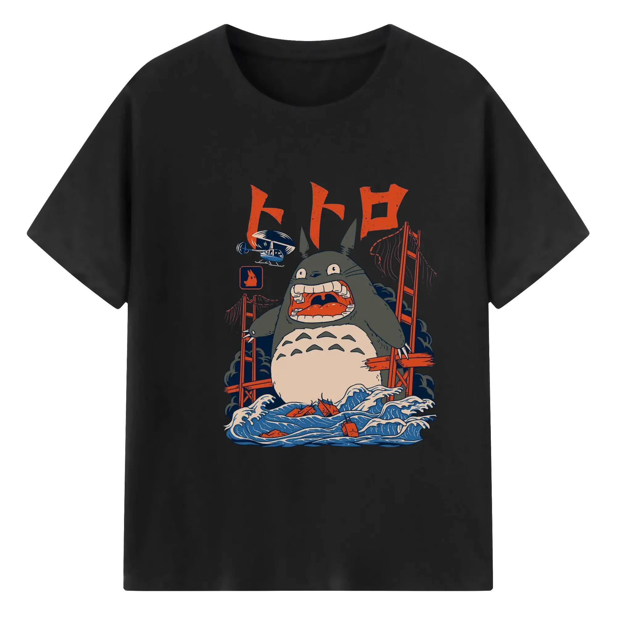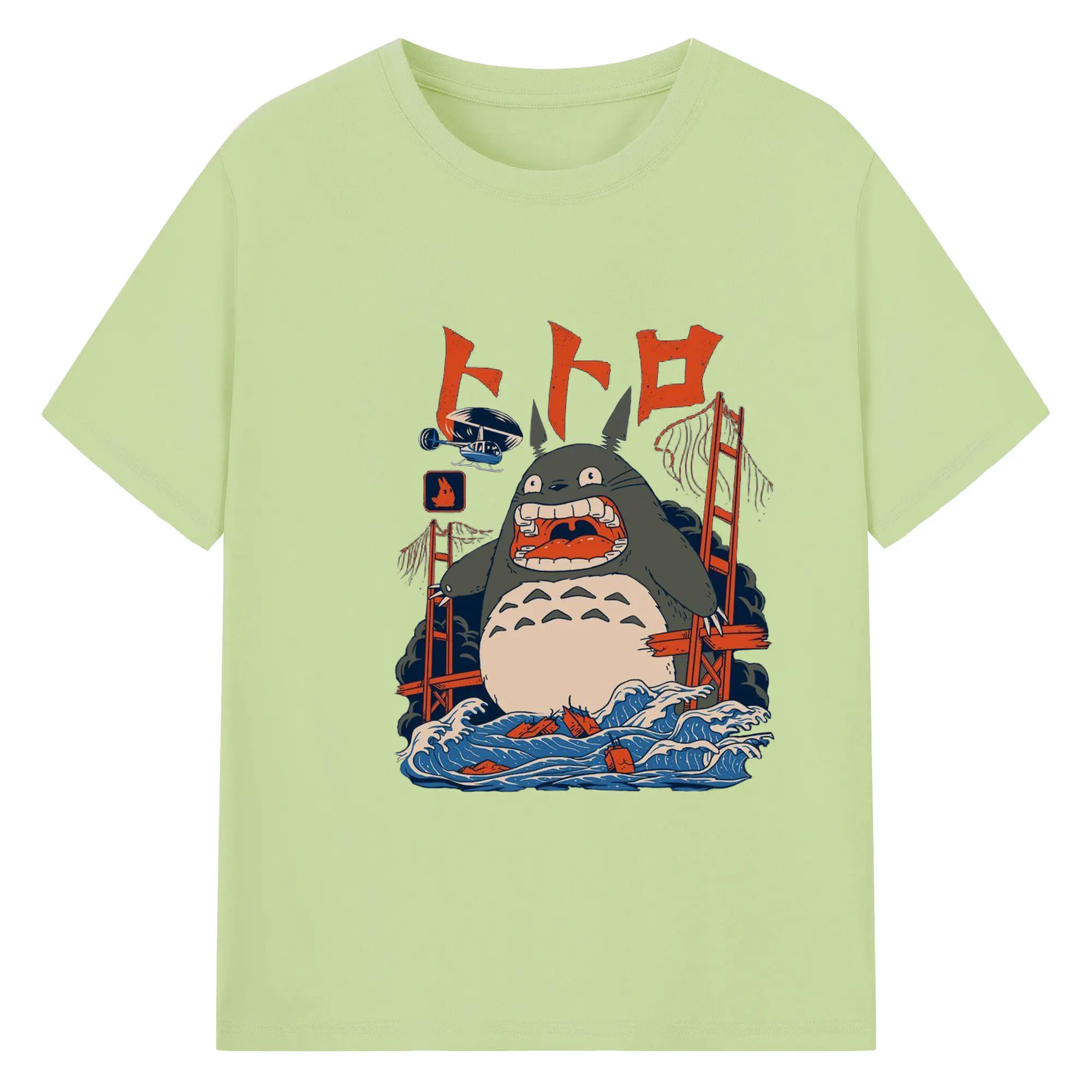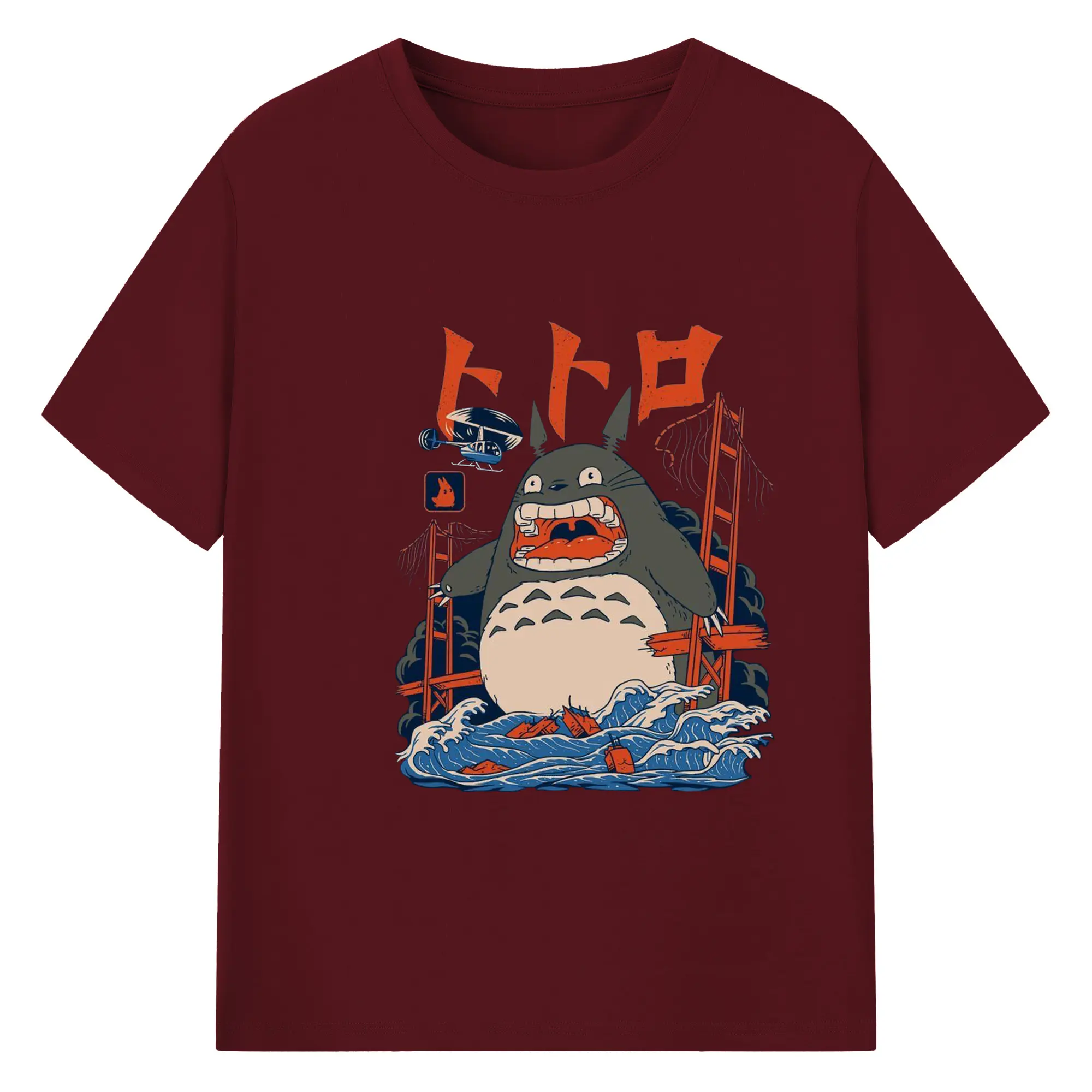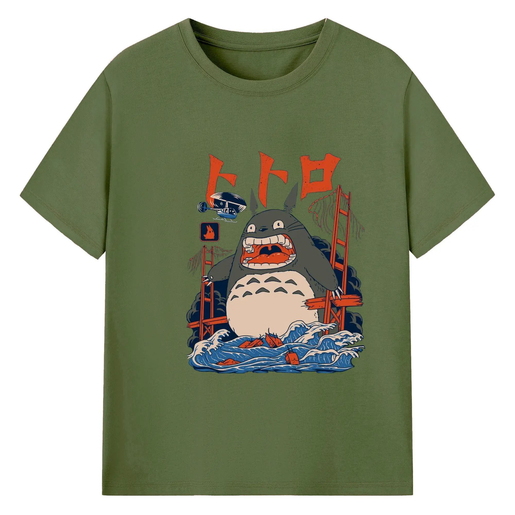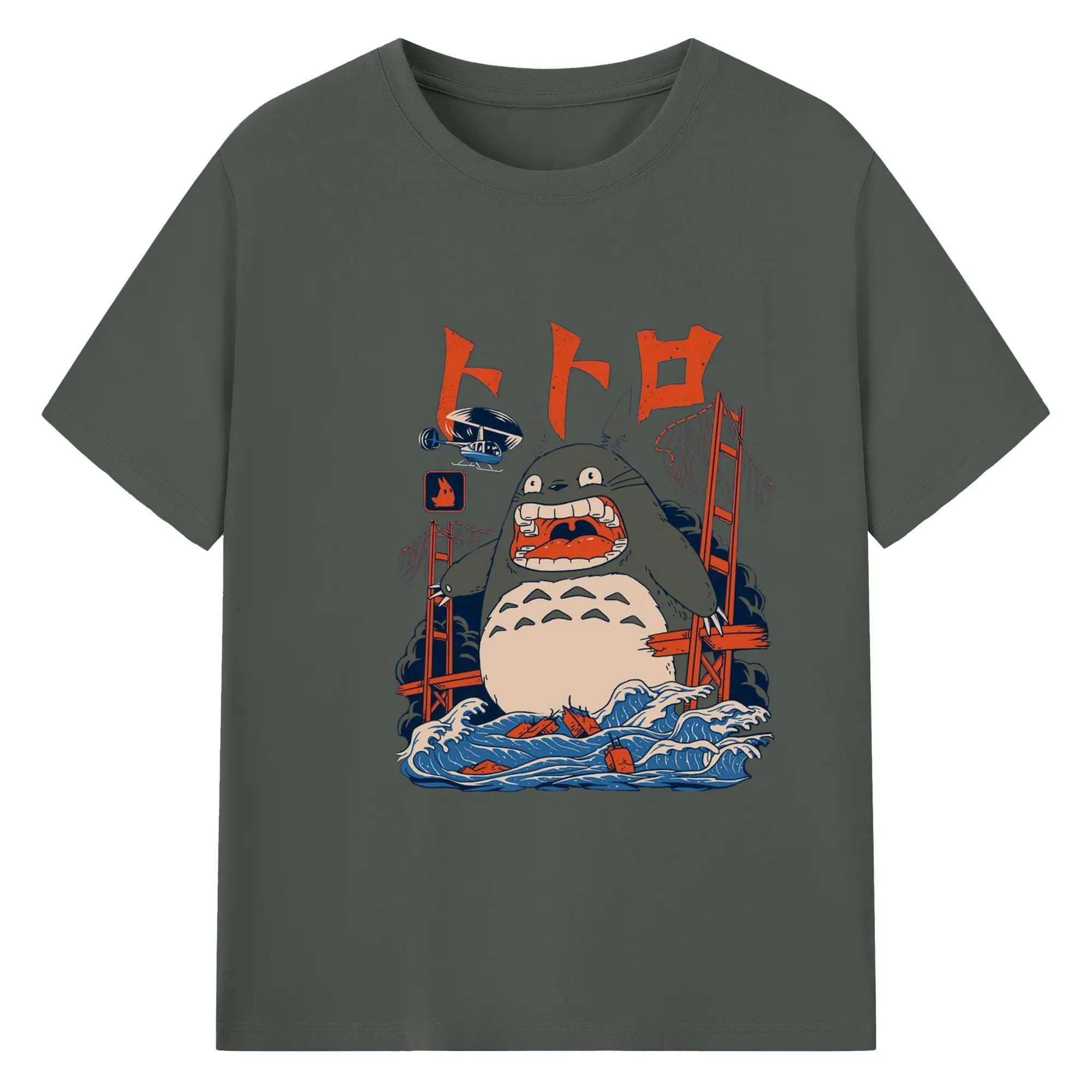 ゴジラトトロゴジラコラボ - 綿100% 半袖Tシャツ ・ フロントプリント ・ 快適 通気性 ・ 日常使い 散歩 スポーツ用