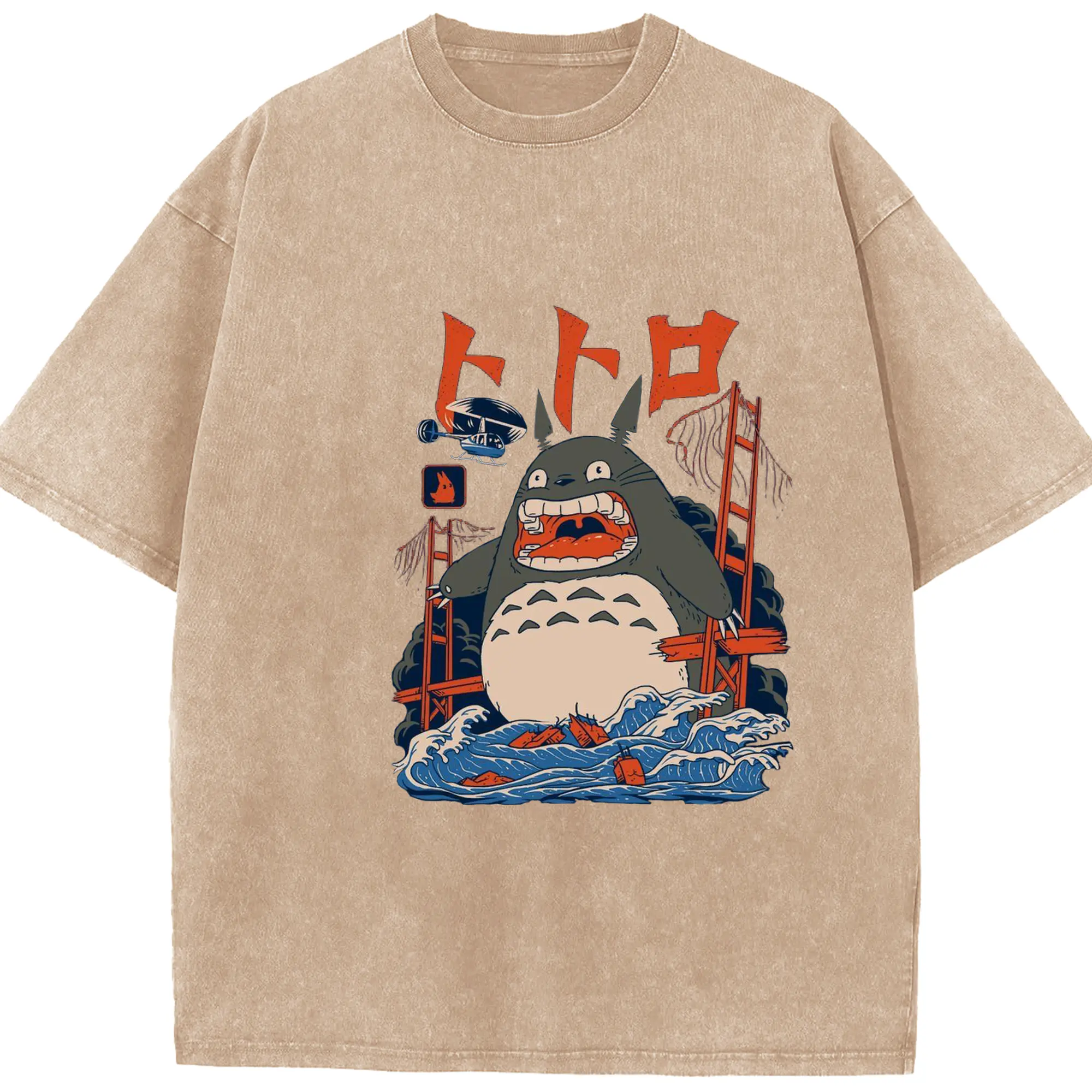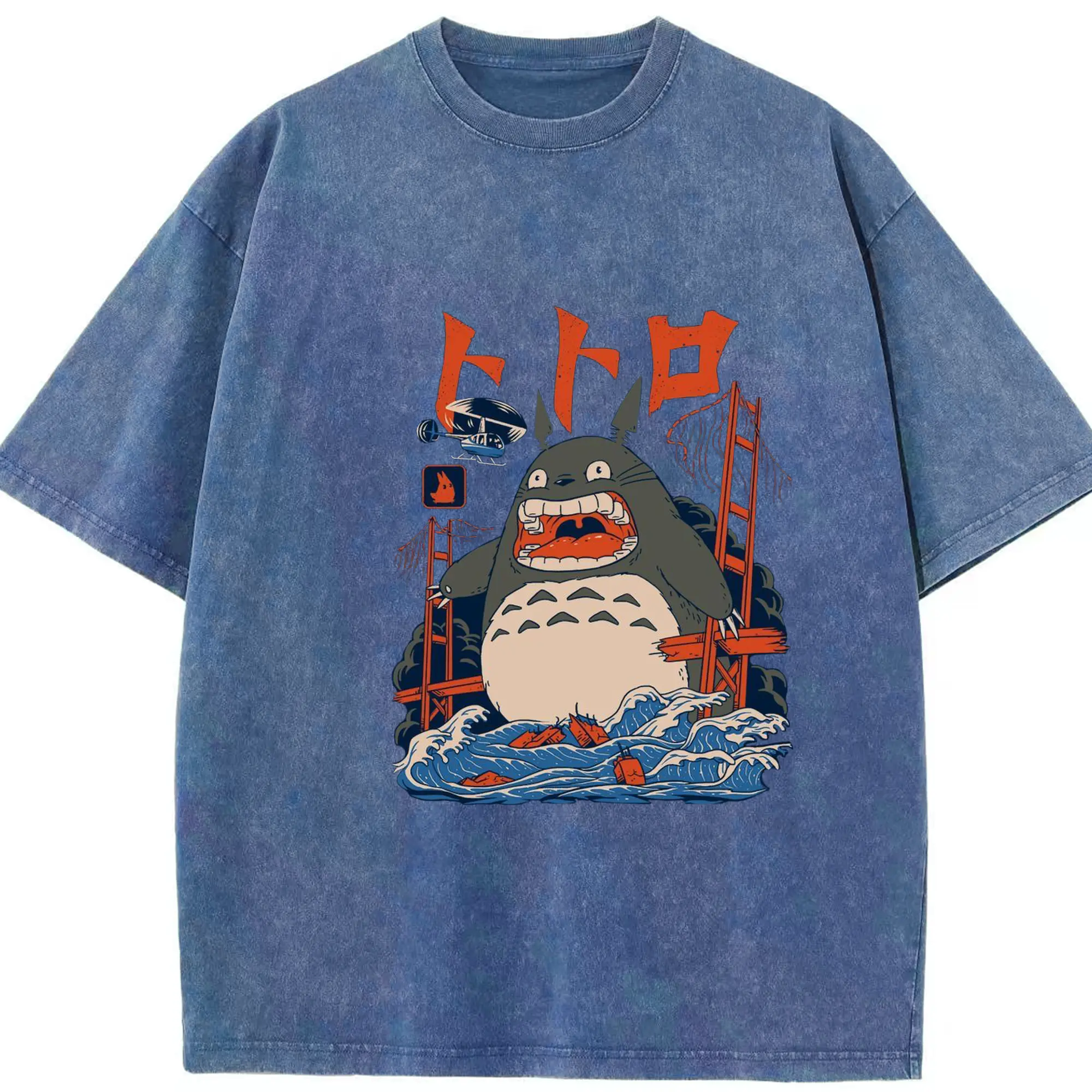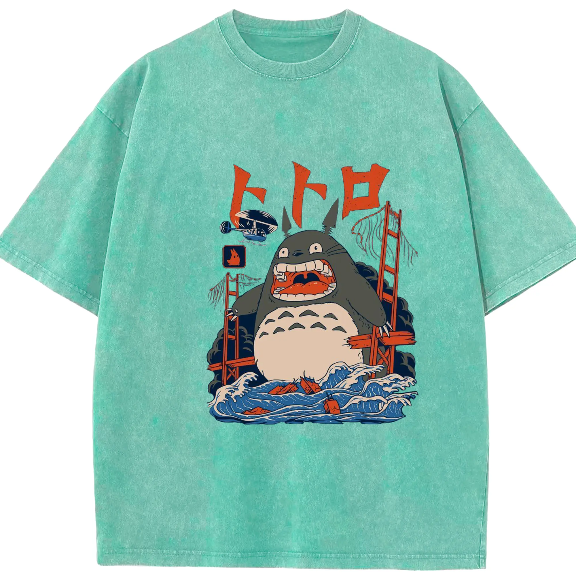 ゴジラトトロゴジラコラボ - 綿100% ヴィンテージ風 半袖Tシャツ ・ フロントプリント ・ 柔らか肌触り ・ 通気性 快適 ・ スポーツ カジュアル 外出用
