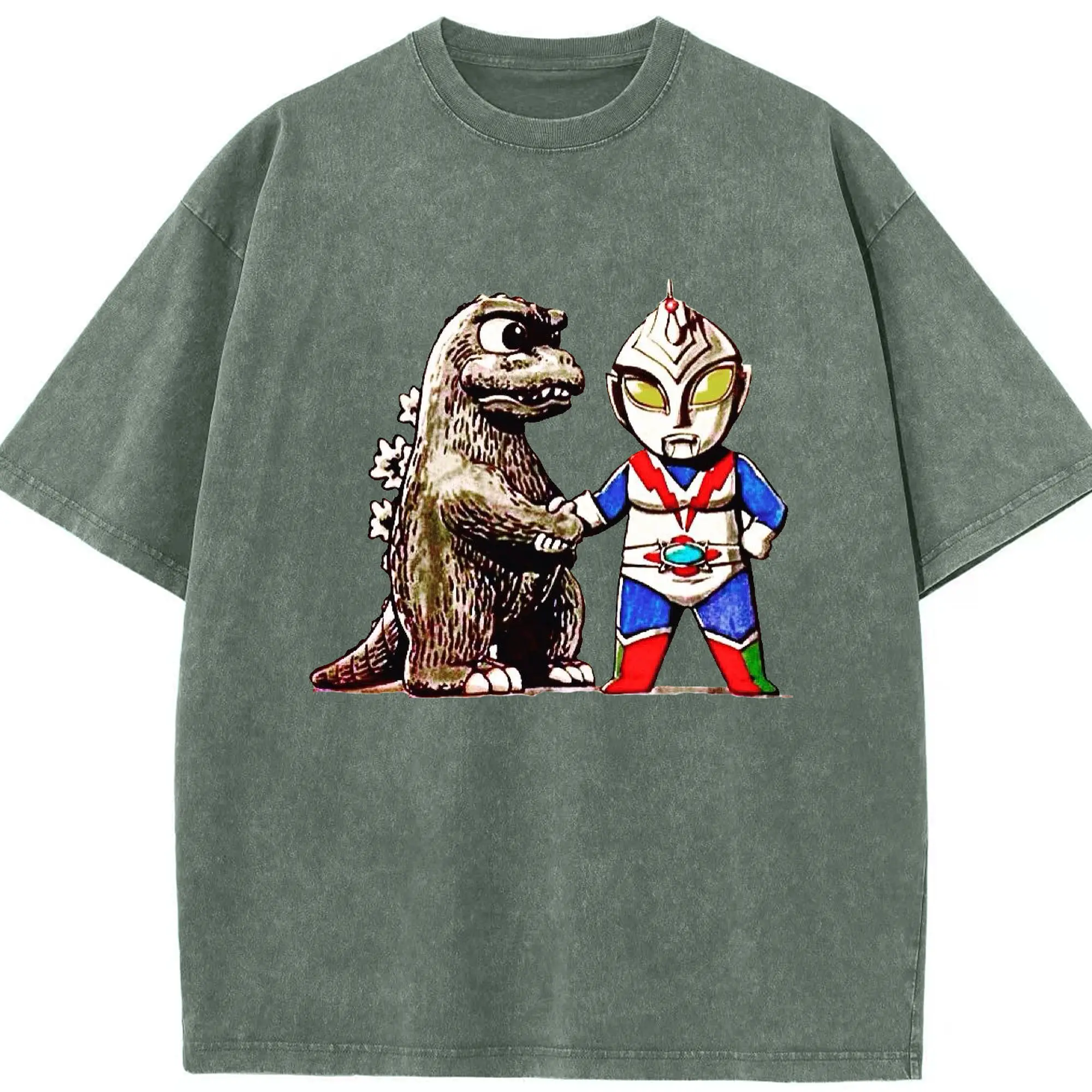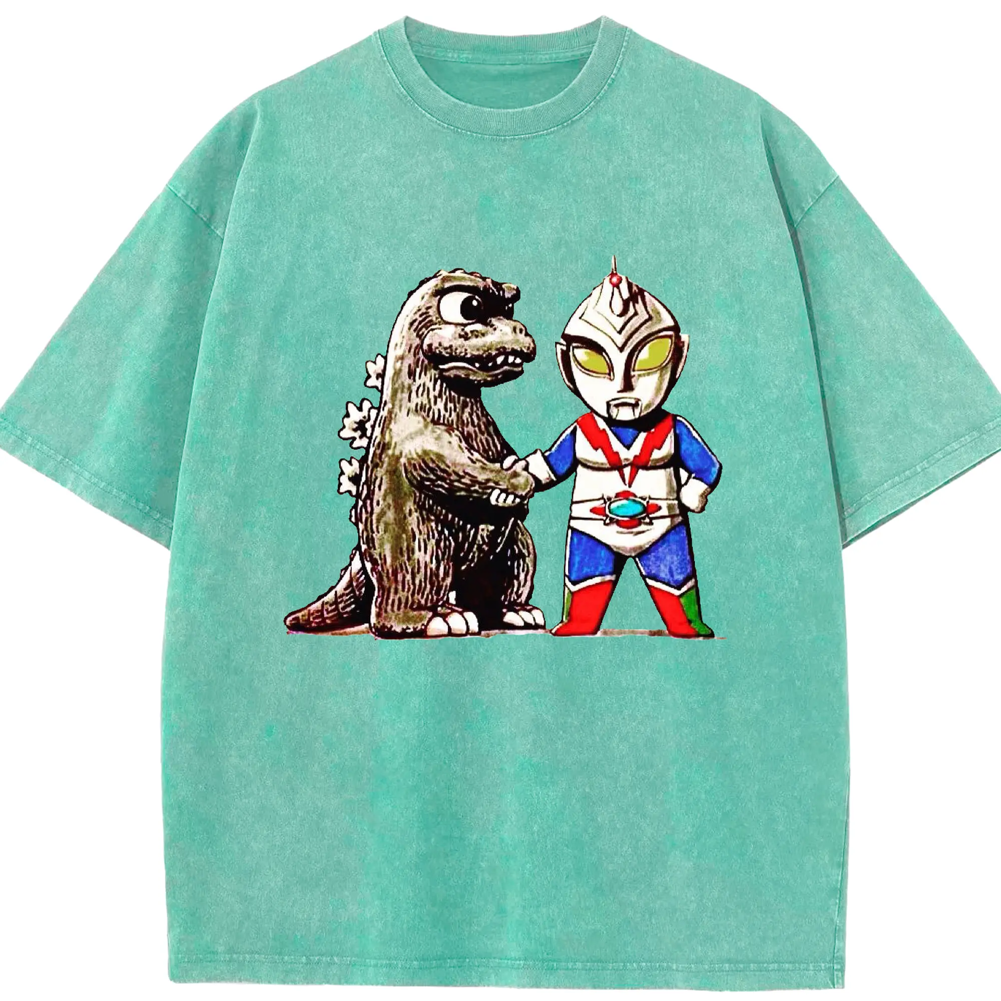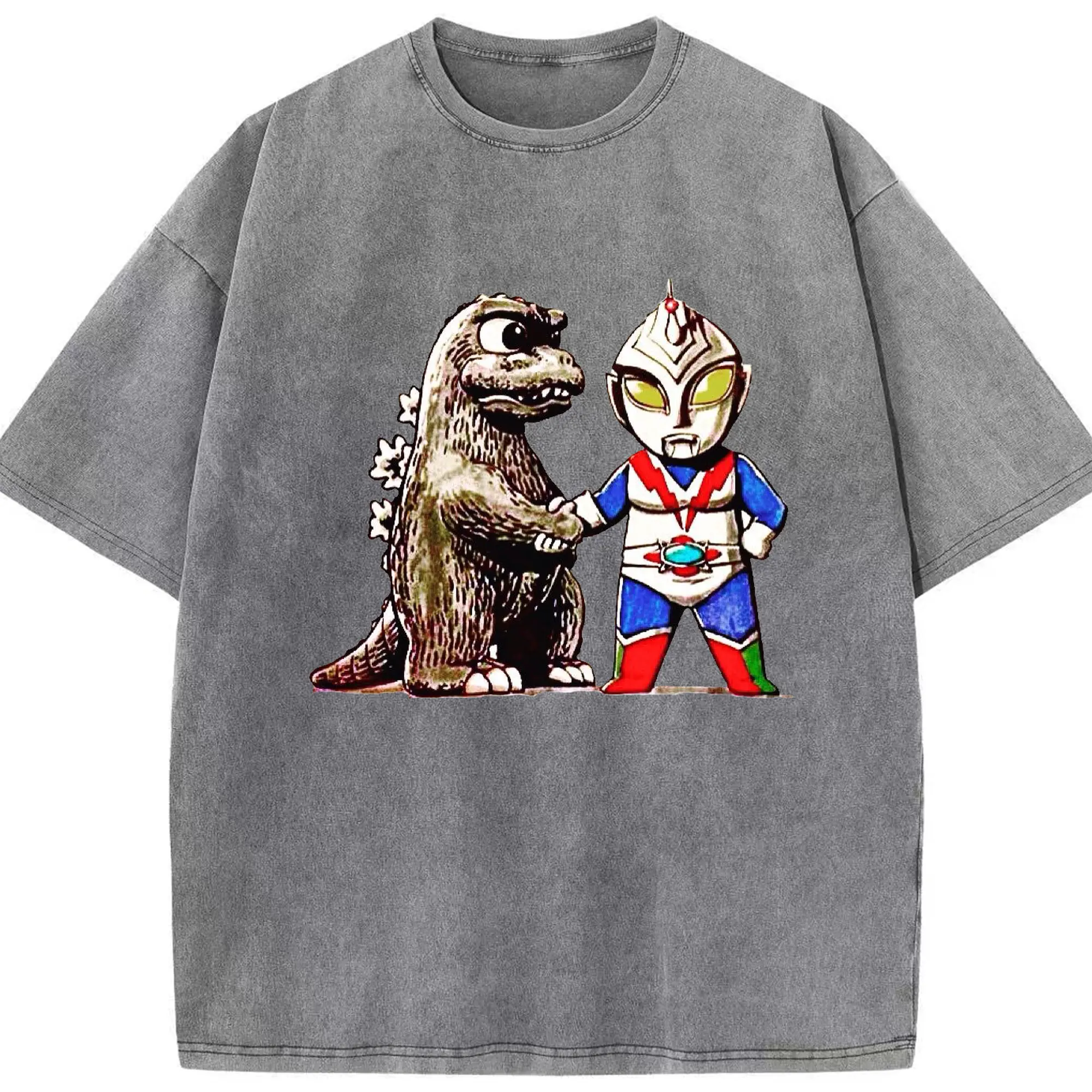 ゴジラ ウルトラマンコラボ - 綿100% ヴィンテージ風 半袖Tシャツ ・ フロントプリント ・ 柔らか肌触り ・ 通気性 快適 ・ スポーツ カジュアル 外出用