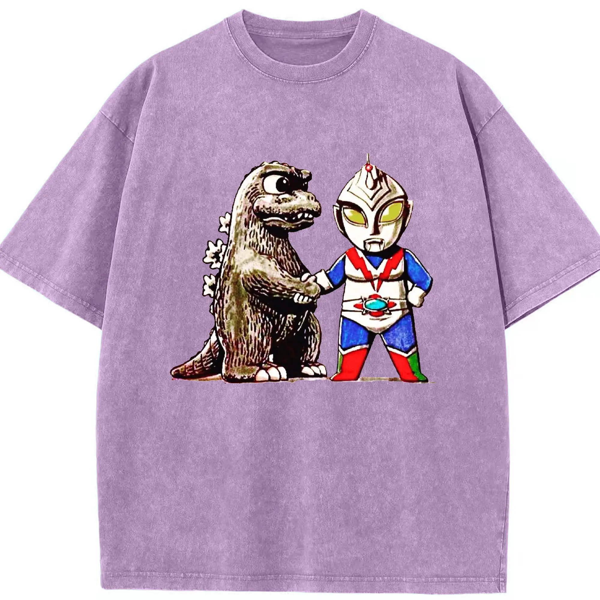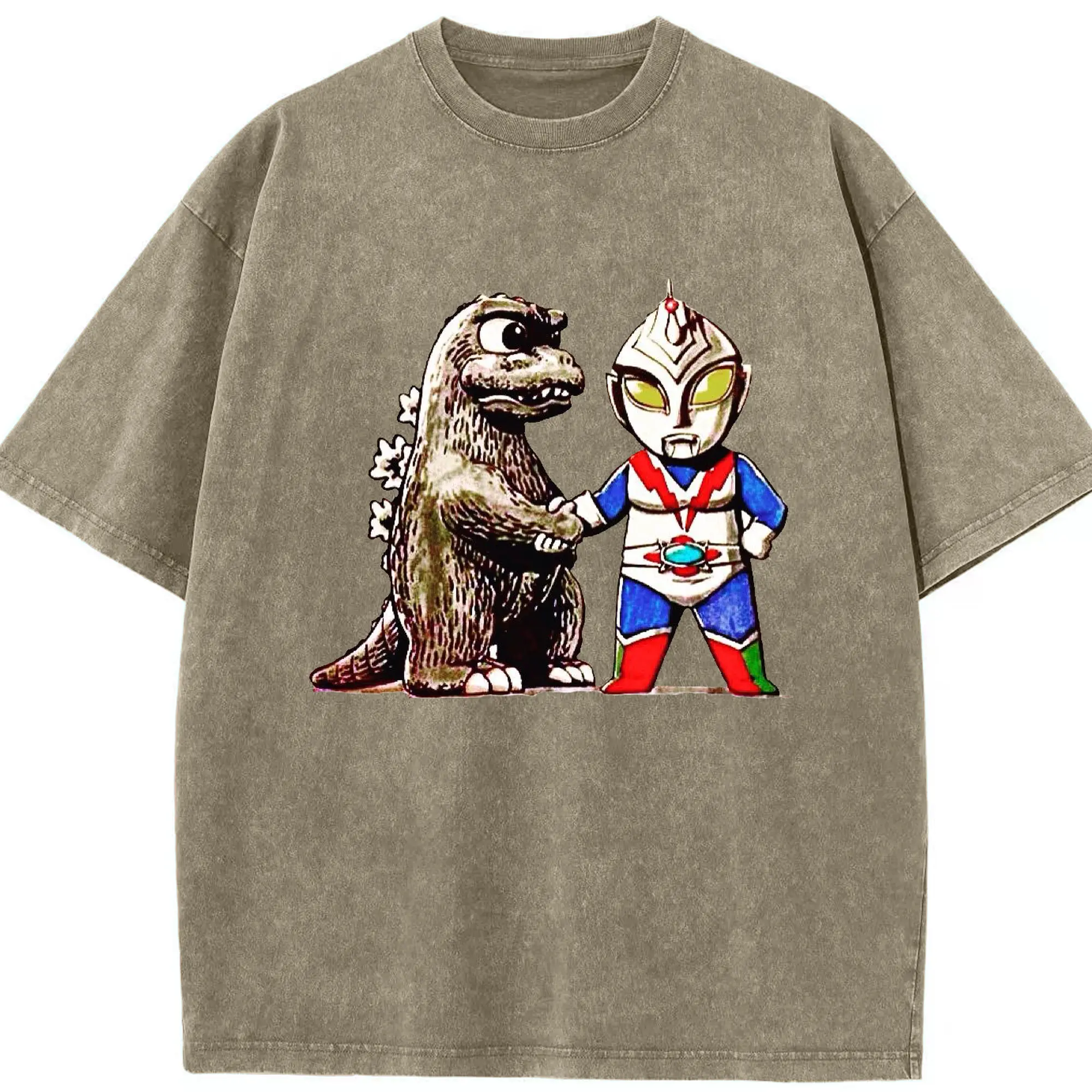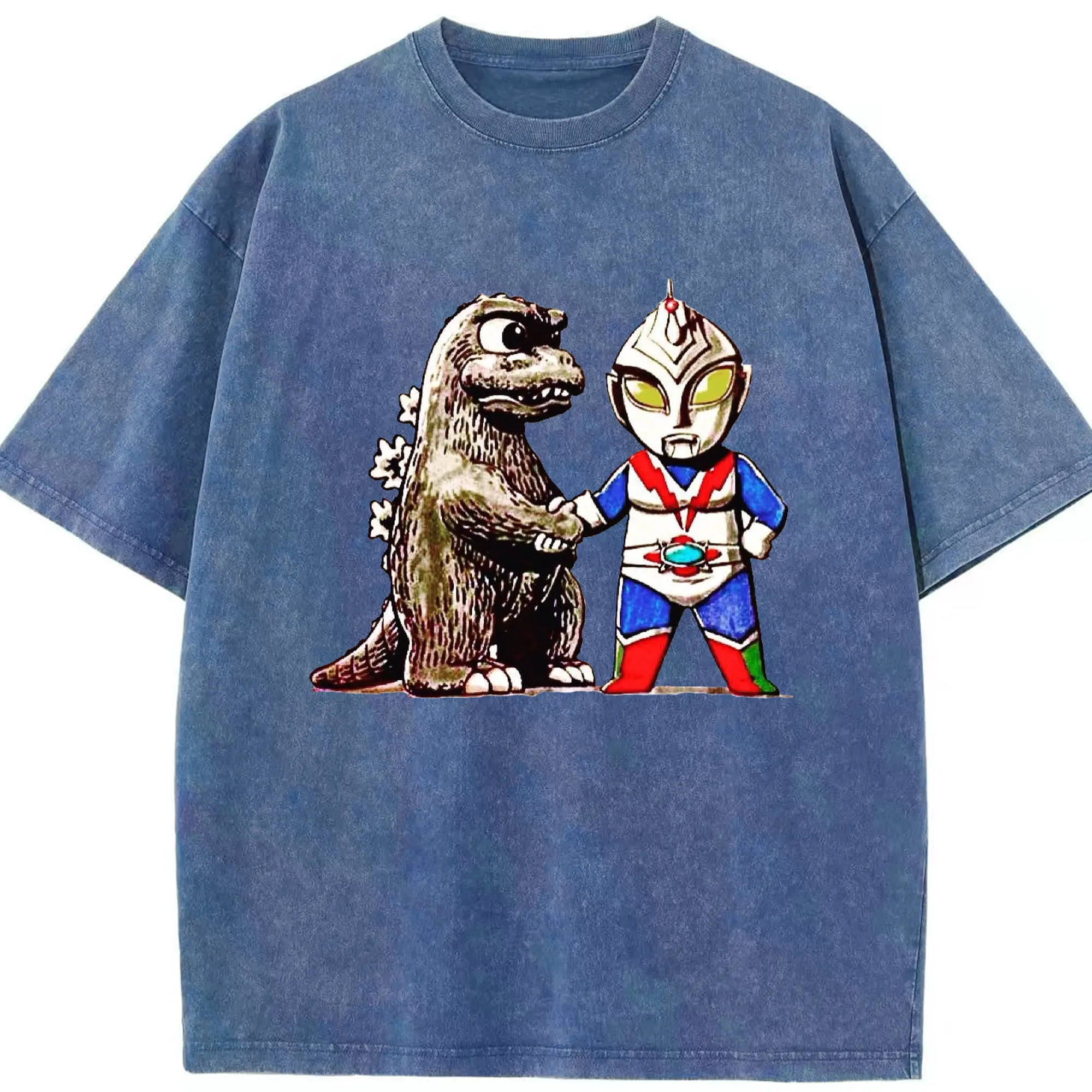 ゴジラ ウルトラマンコラボ - 綿100% ヴィンテージ風 半袖Tシャツ ・ フロントプリント ・ 柔らか肌触り ・ 通気性 快適 ・ スポーツ カジュアル 外出用