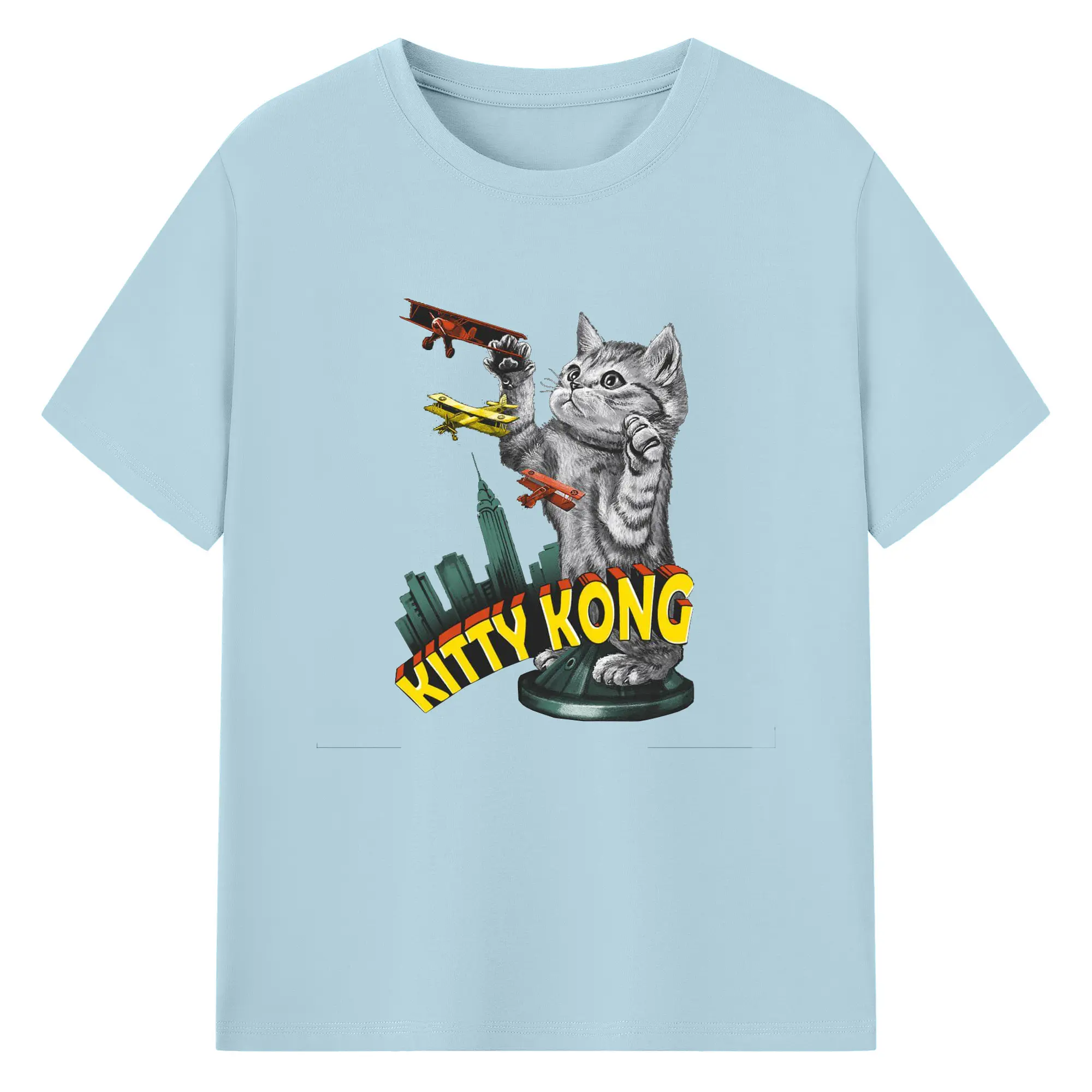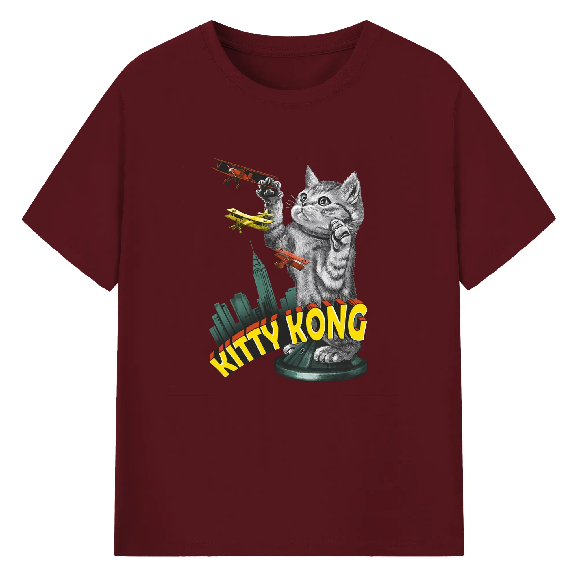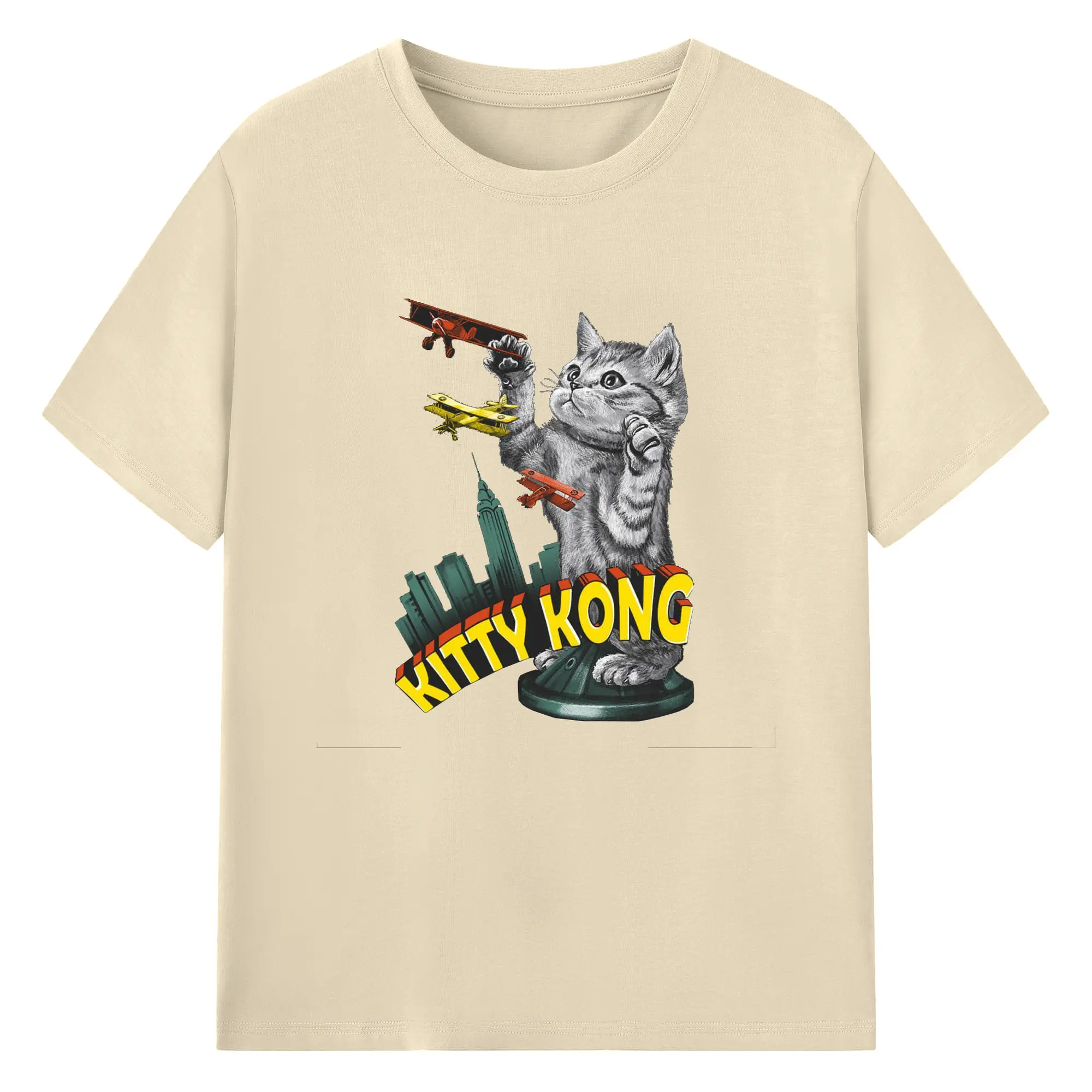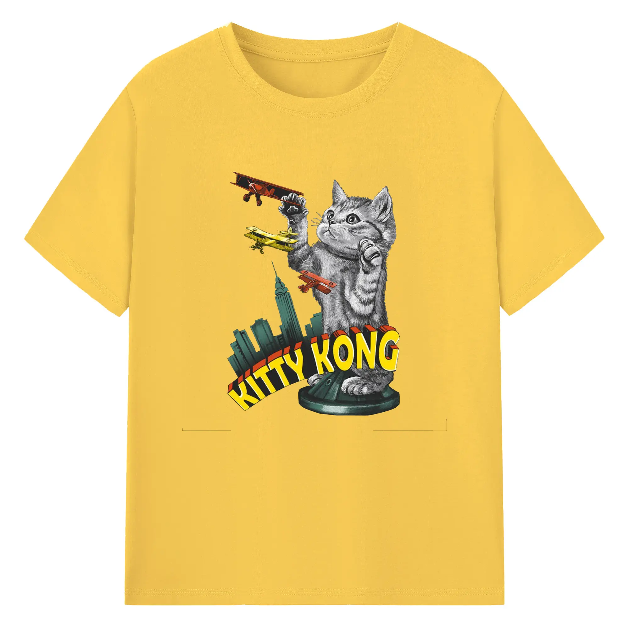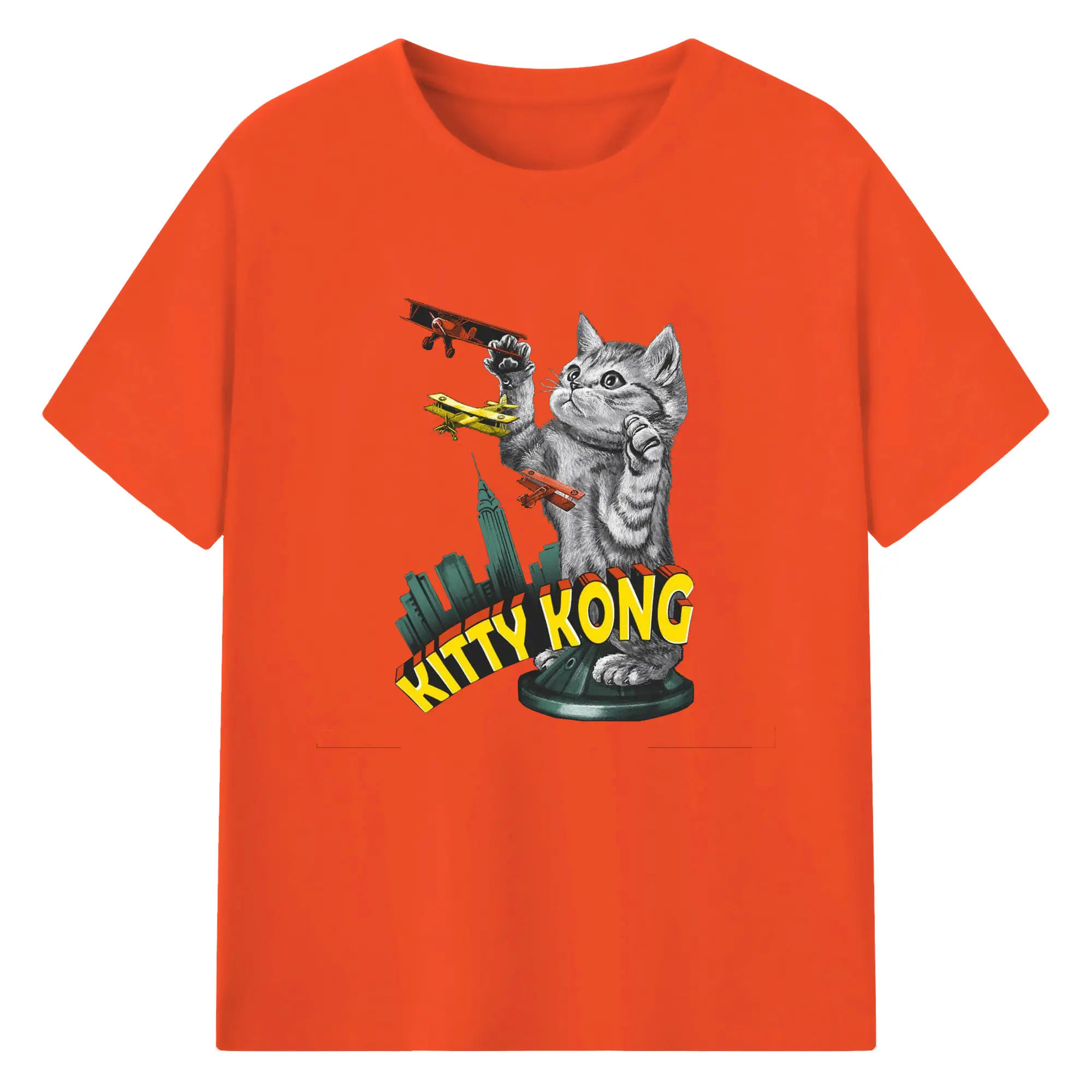ゴジラ キャットジラ CATZILLA 怪獣ねこ - 綿100% 半袖Tシャツ ・ フロントプリント ・ 快適 通気性 ・ 日常使い 散歩 スポーツ用