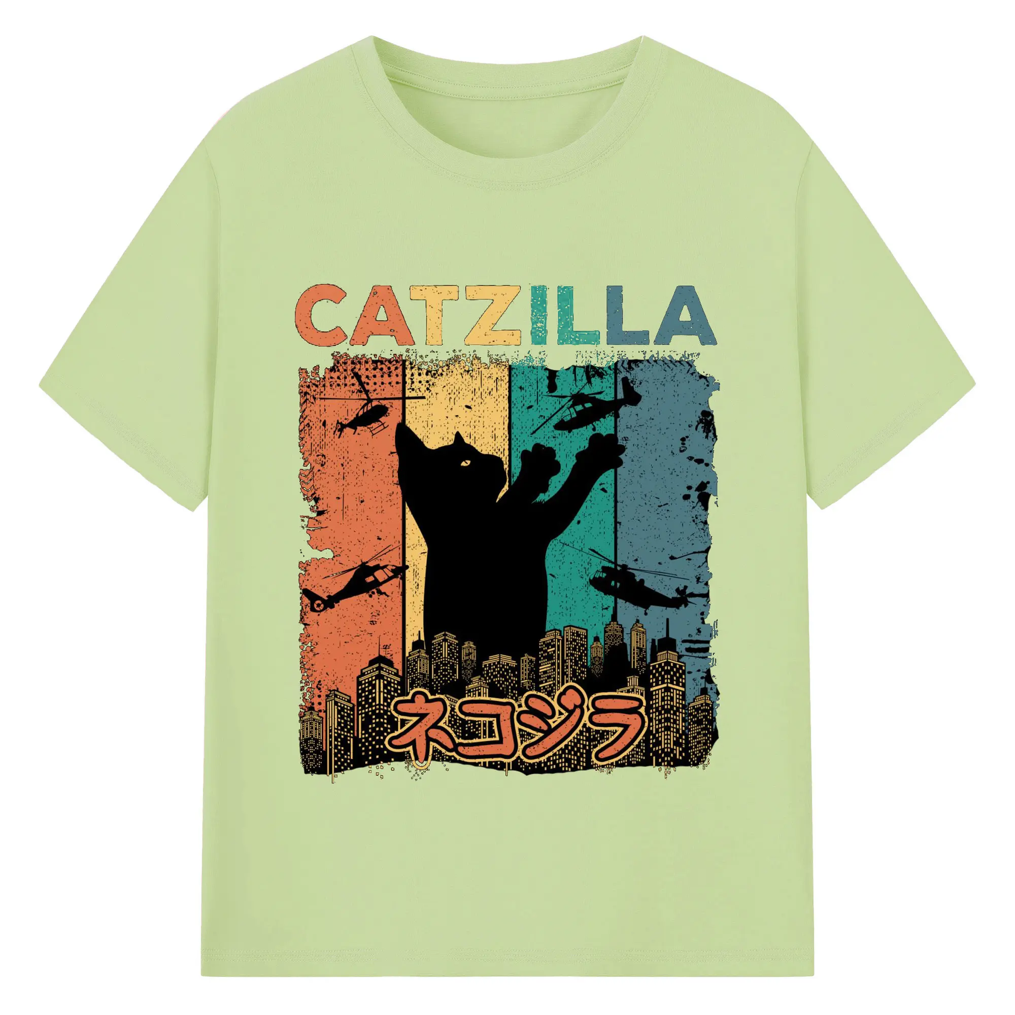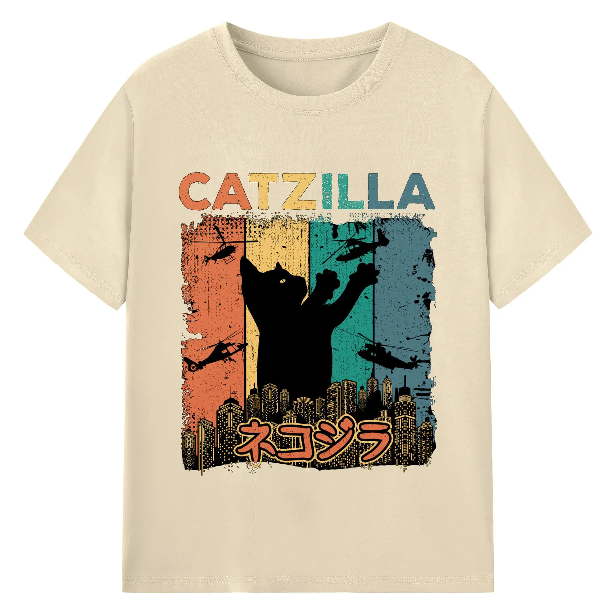 ゴジラ キャットジラ CATZILLA - 綿100% ヴィンテージ風 半袖Tシャツ ・ フロントプリント ・ 柔らか肌触り ・ 通気性 快適 ・ スポーツ カジュアル 外出用