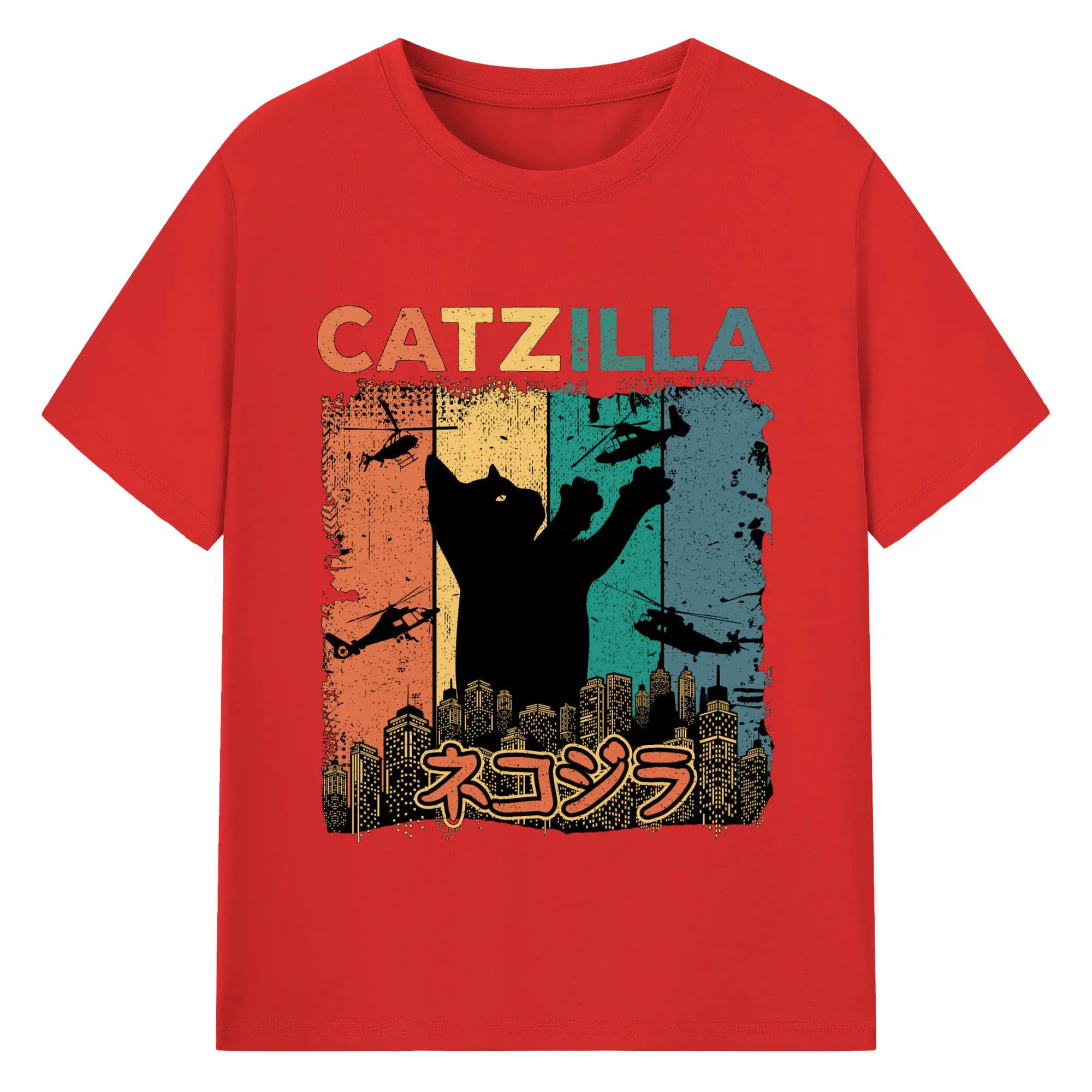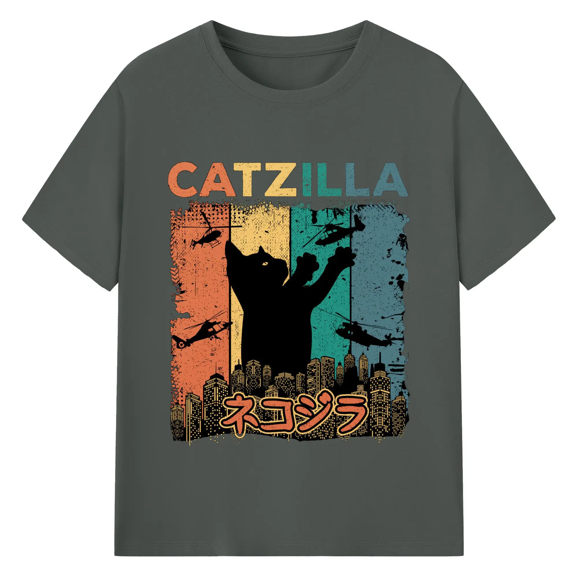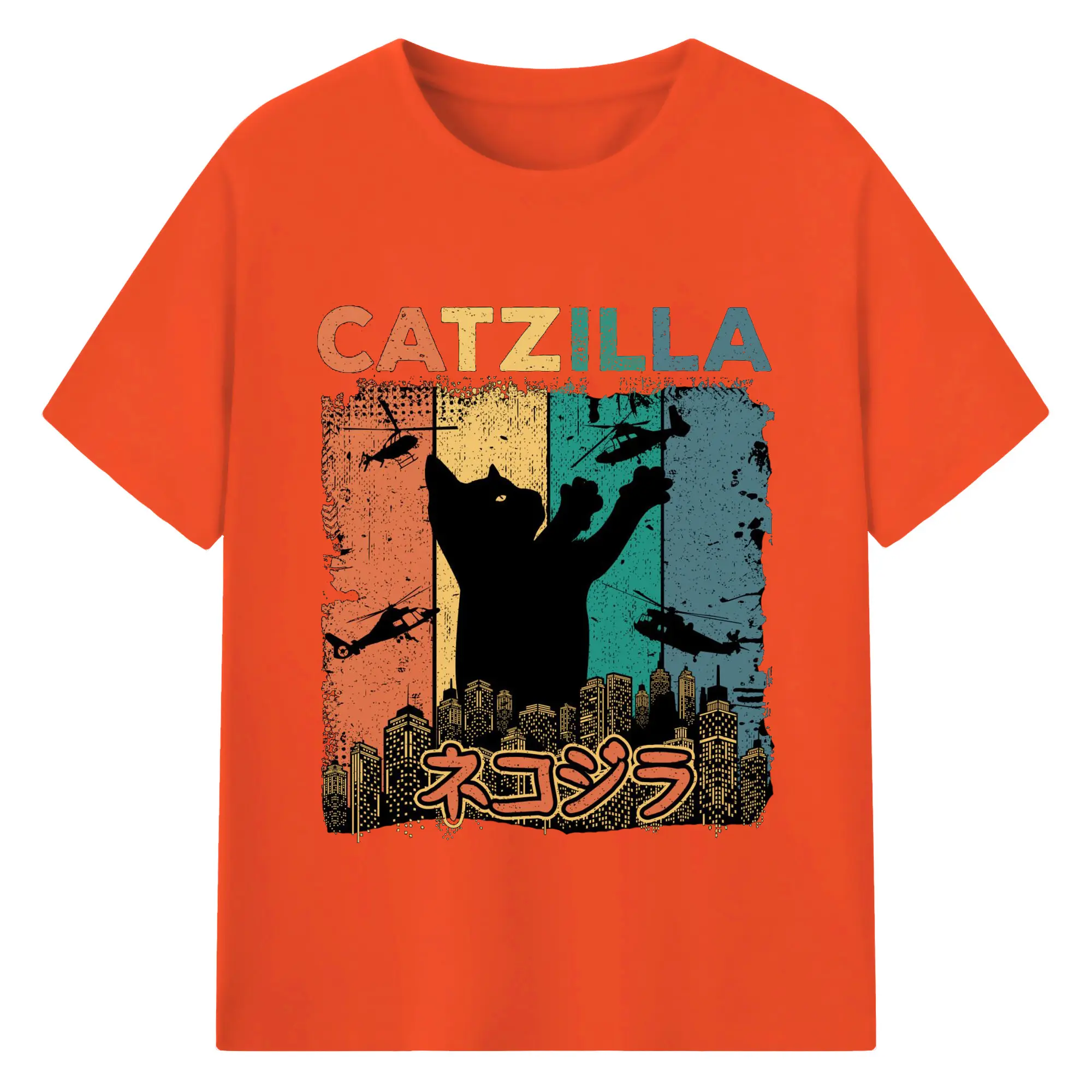 ゴジラ キャットジラ CATZILLA - 綿100% 半袖Tシャツ ・ フロントプリント ・ 快適 通気性 ・ 日常使い 散歩 スポーツ用