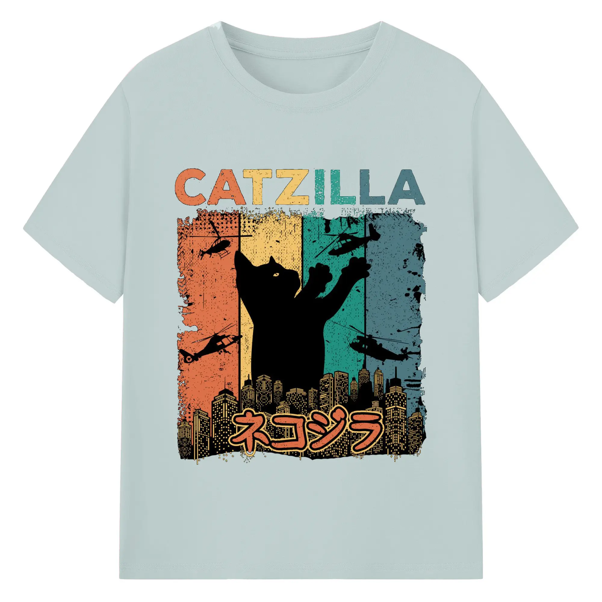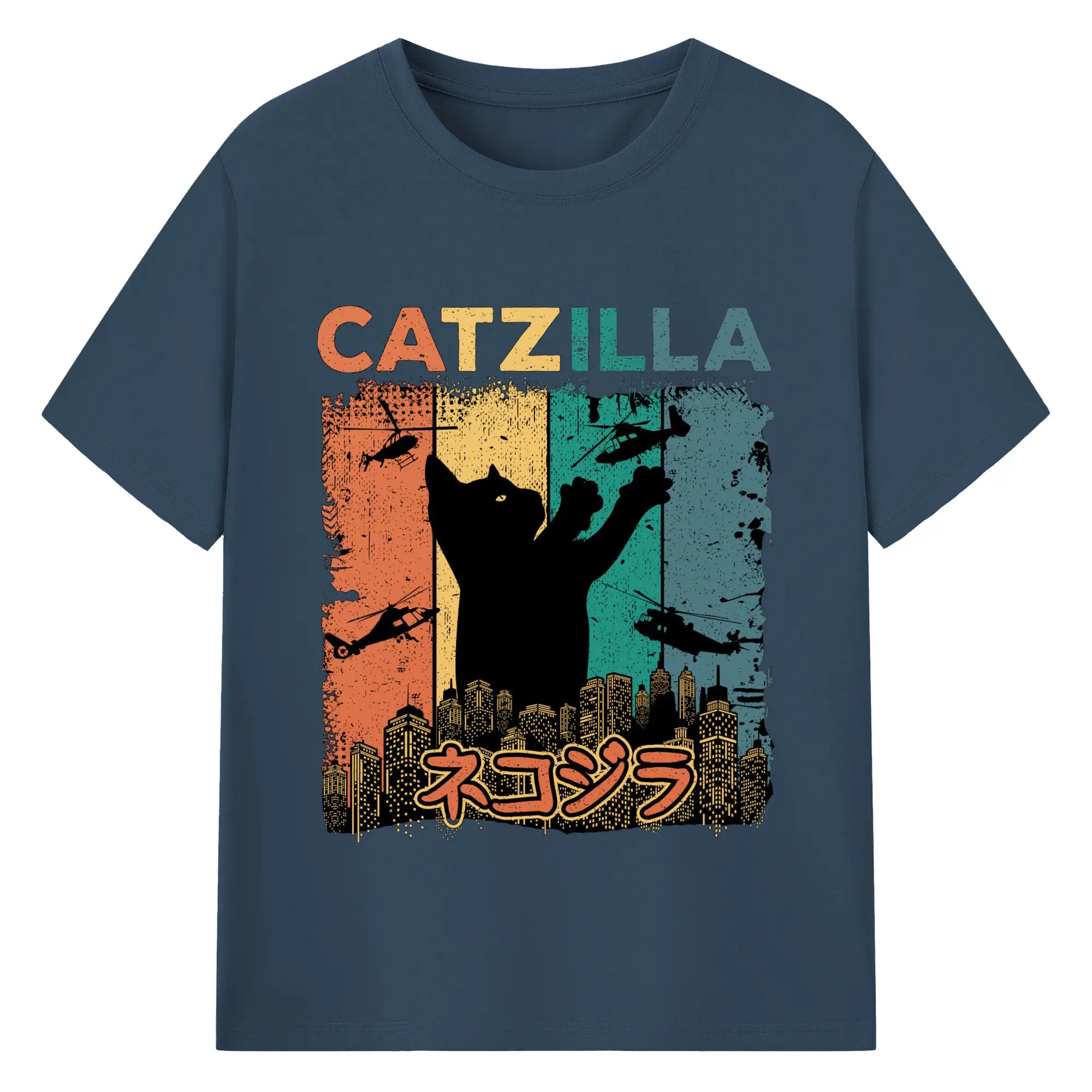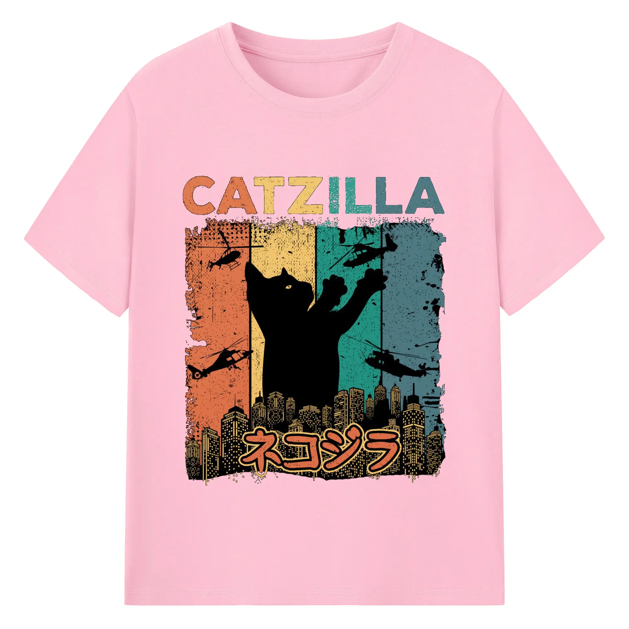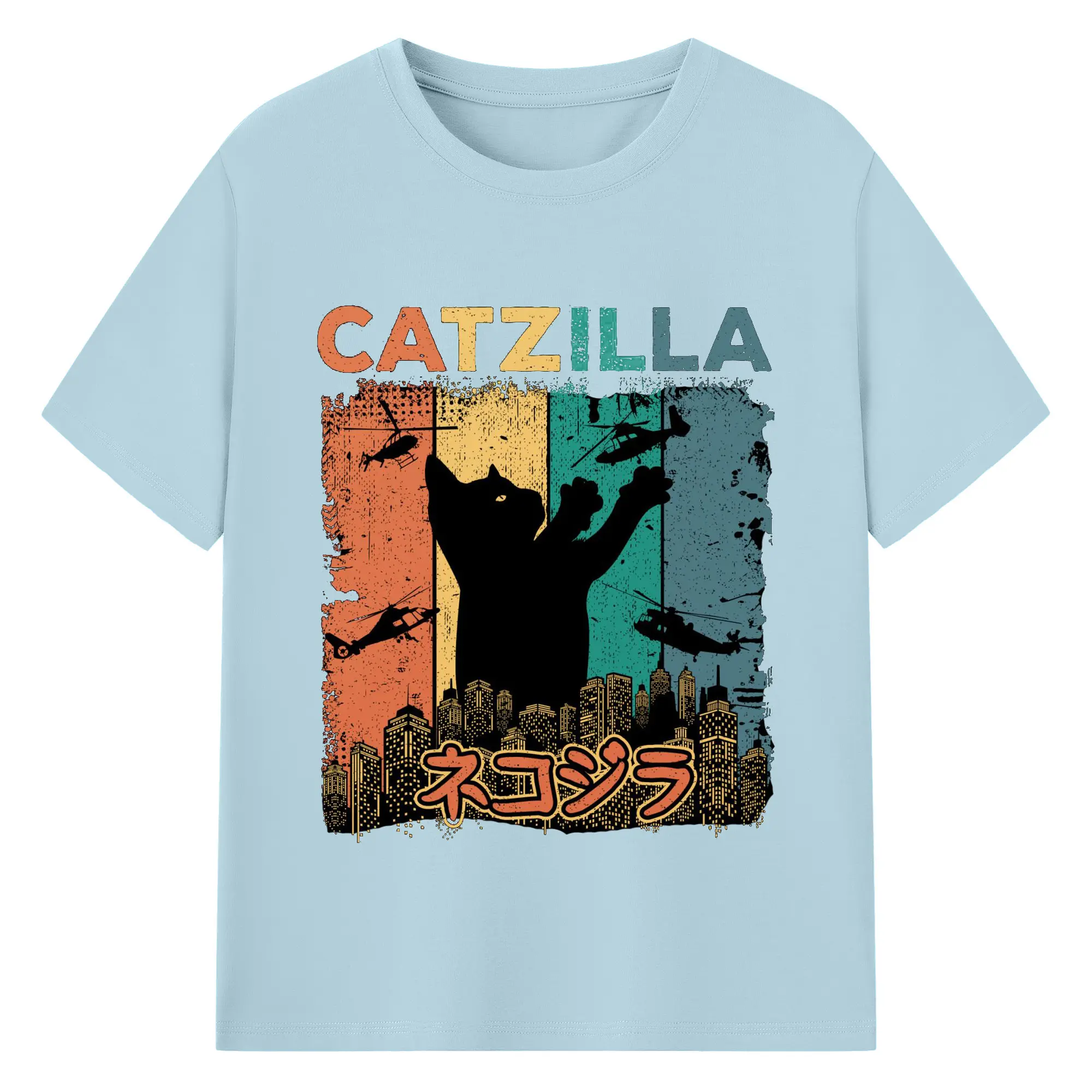 ゴジラ キャットジラ CATZILLA - 綿100% 半袖Tシャツ ・ フロントプリント ・ 快適 通気性 ・ 日常使い 散歩 スポーツ用