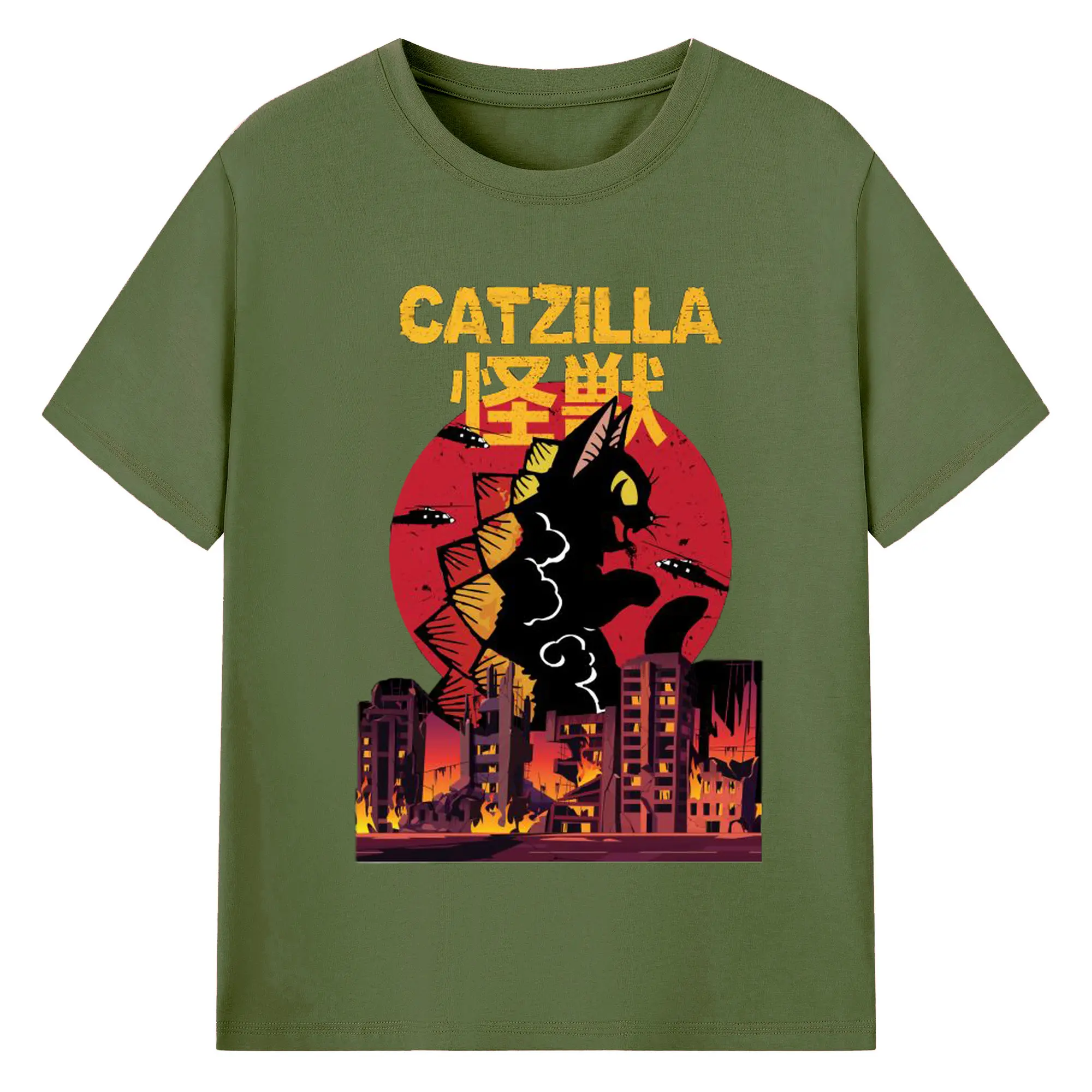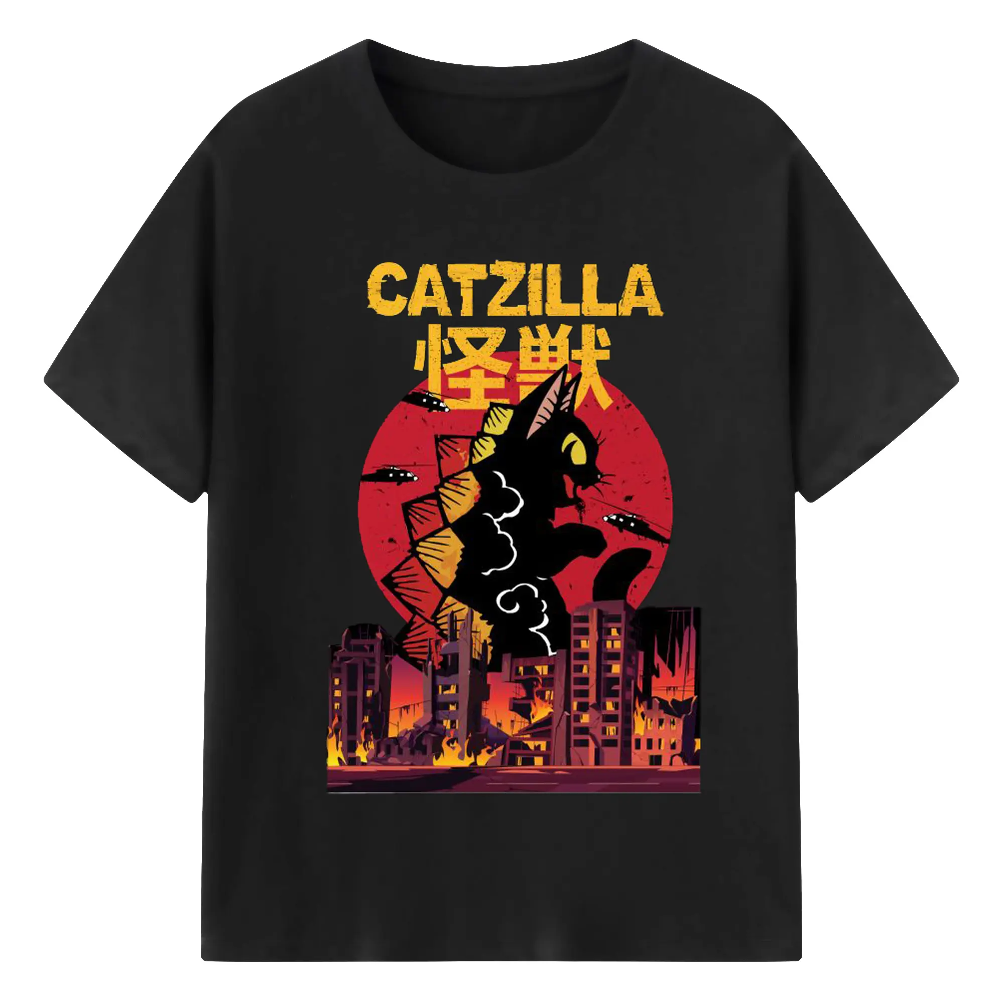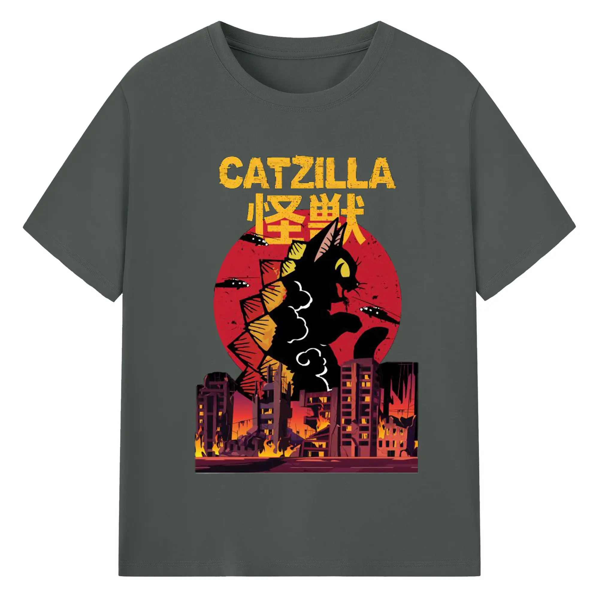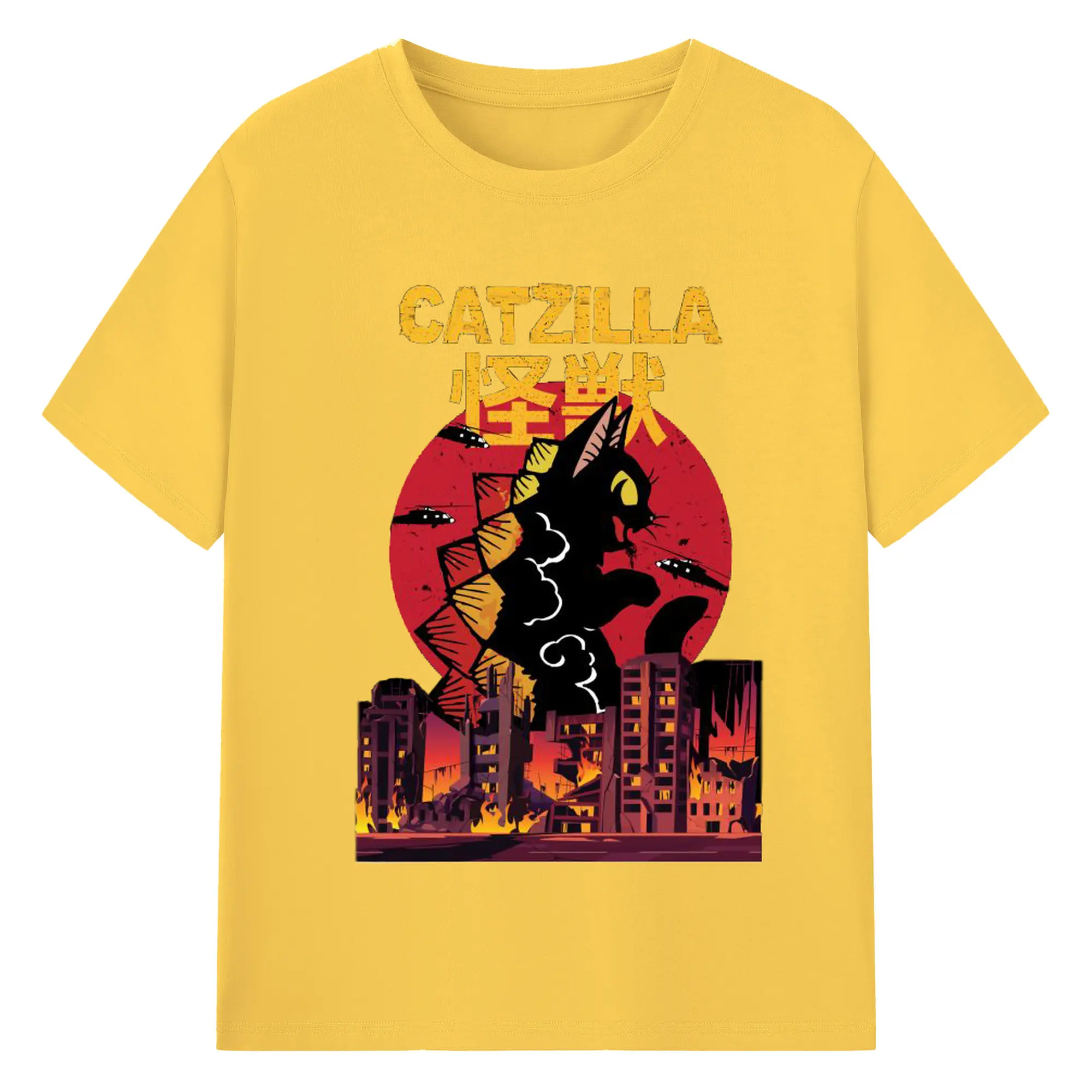 ゴジラ キャットジラ CATZILLA - 綿100% 半袖Tシャツ ・ フロントプリント ・ 快適 通気性 ・ 日常使い 散歩 スポーツ用