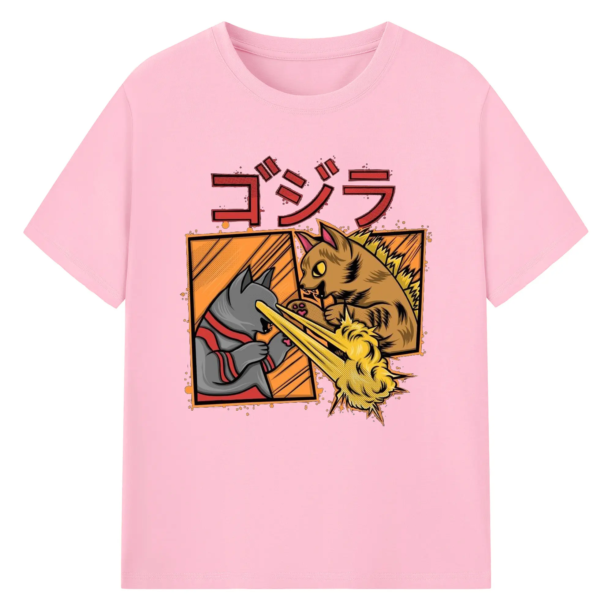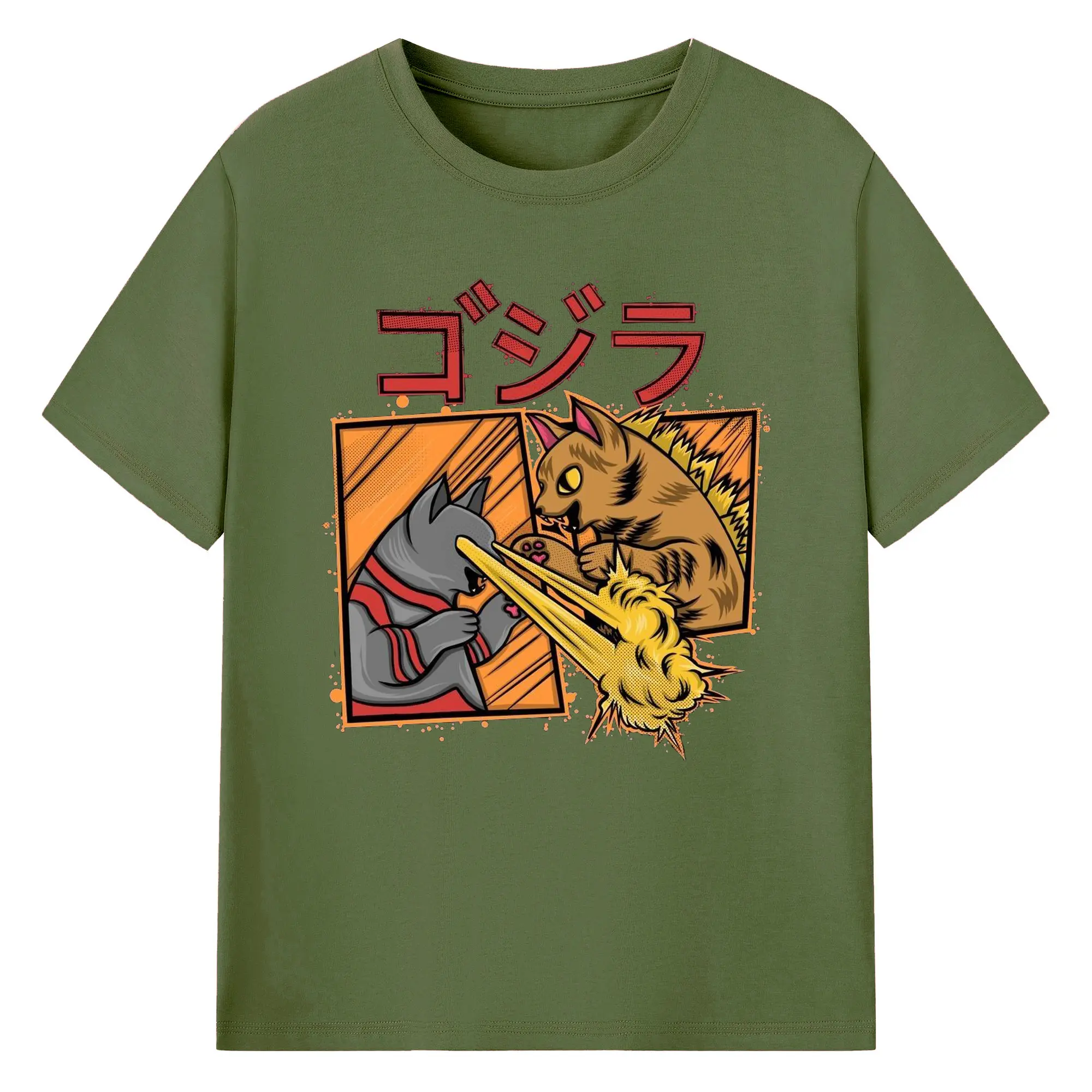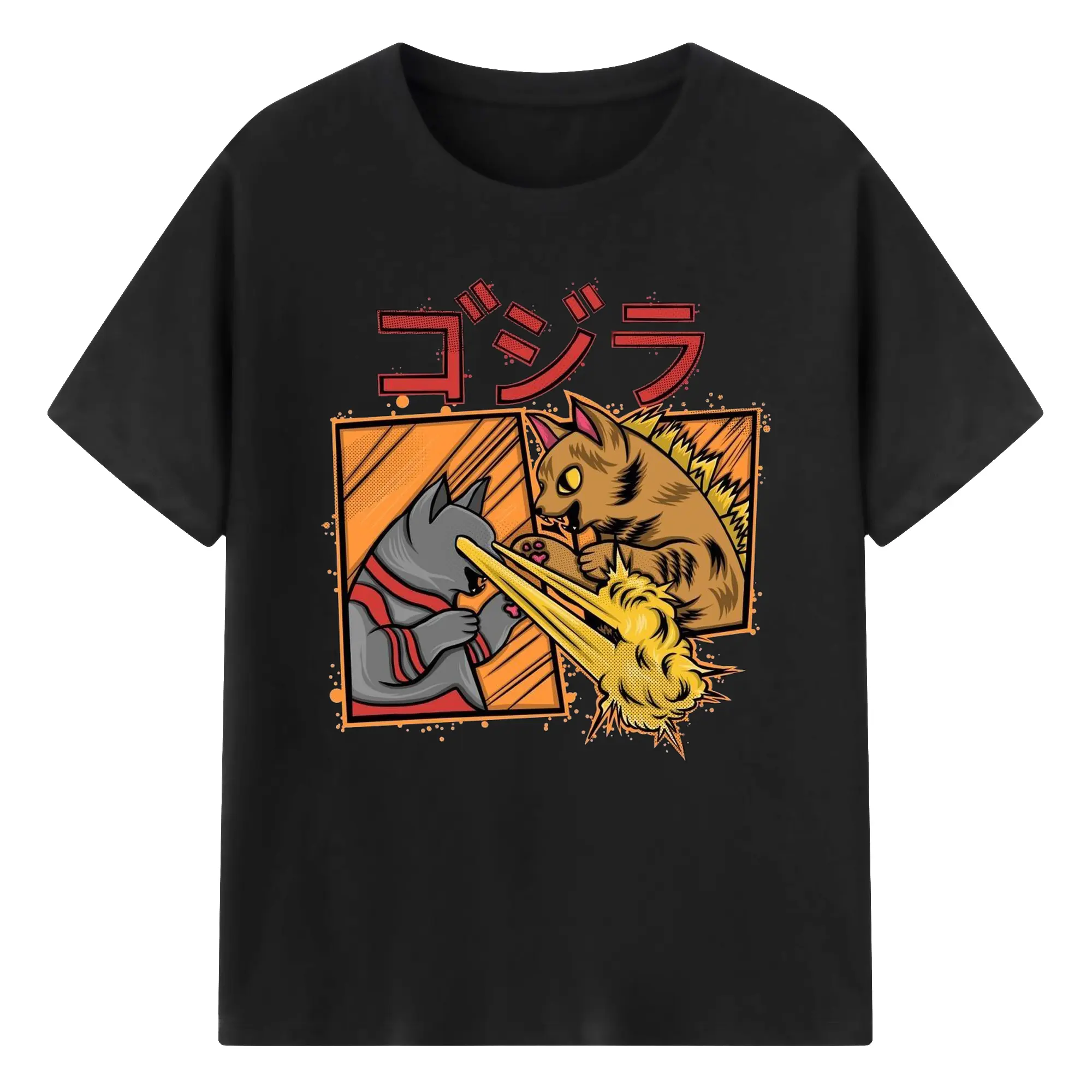 ゴジラ キャットジラ CATZILLA 怪獣ねこ - 綿100% 半袖Tシャツ ・ フロントプリント ・ 快適 通気性 ・ 日常使い 散歩 スポーツ用